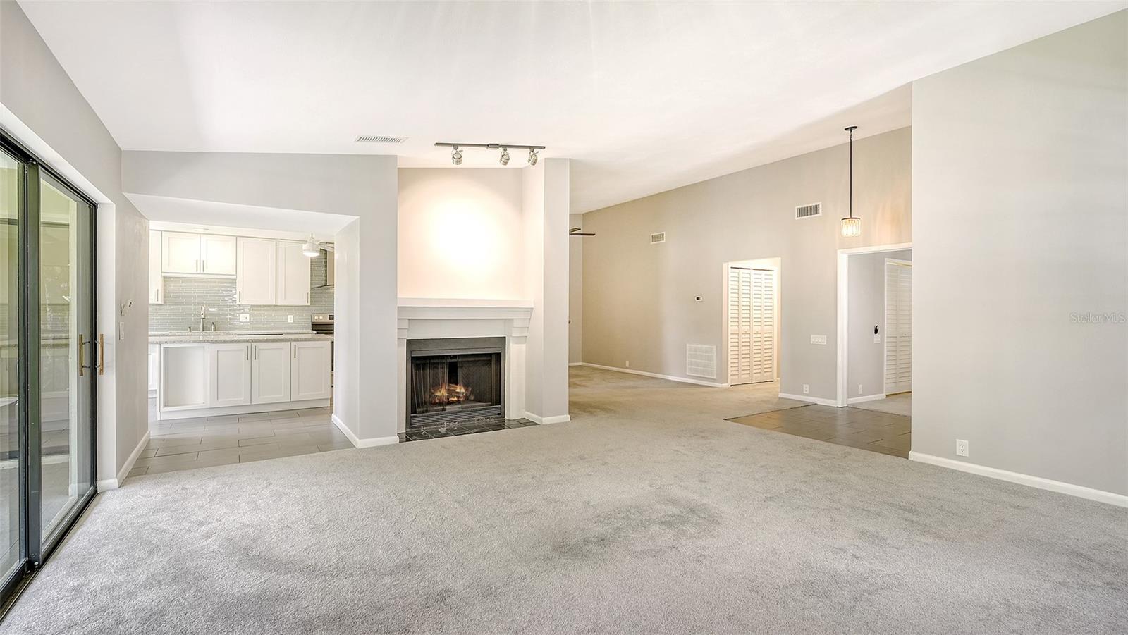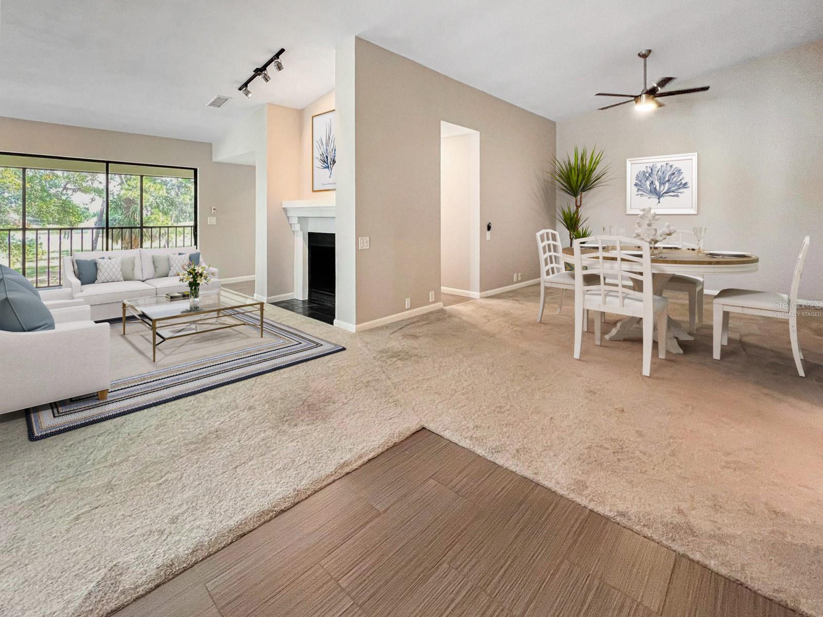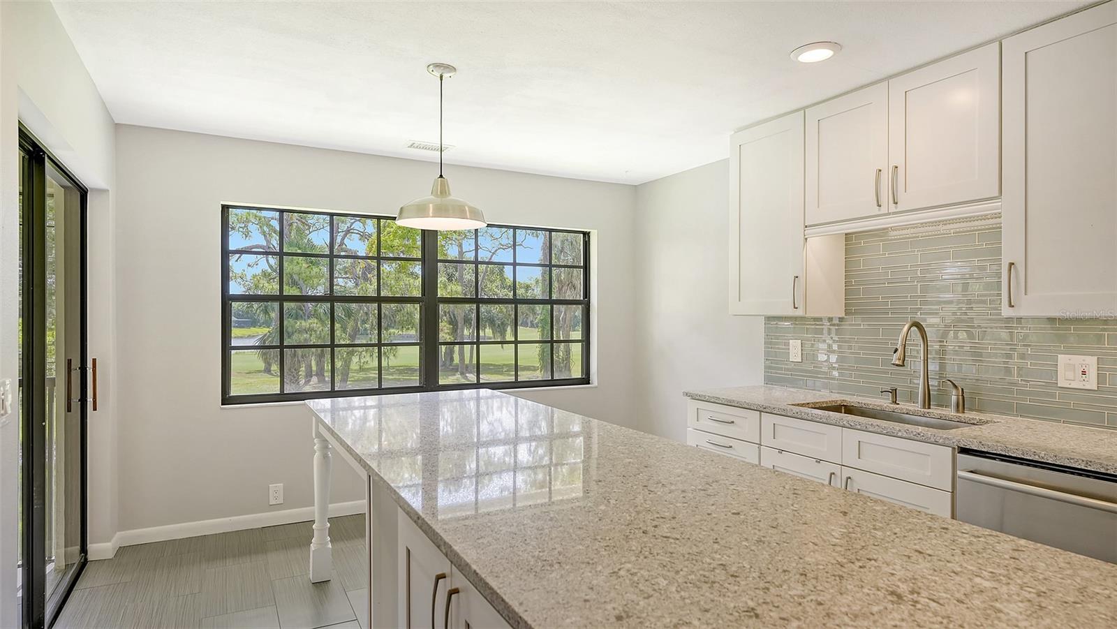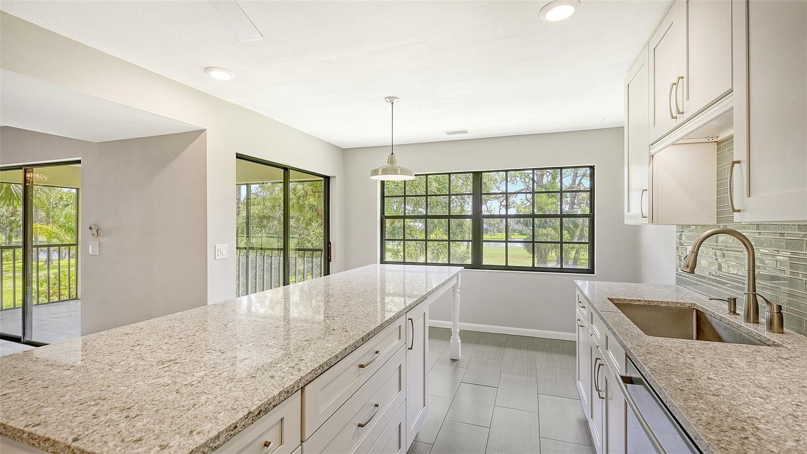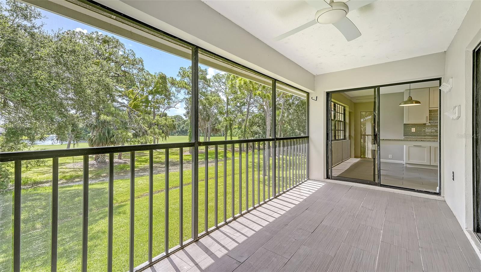 One or more photo(s) has been virtually staged. Experience serenity and comfort in this 2nd floor freshly painted 2BR/2BA + den Rutenberg condo conveniently located near the Serendipity Tennis Club, Legacy Trail, Costco, YMCA, with easy access to I75 and the famous award-winning Siesta Key beach. Immerse yourself in the tranquility and natural beauty of your outdoor space and expansive views of the Prestancia PGA golf course. You will entertain in style in this open floor plan featuring a formal dining room, expansive vaulted ceilings and a cozy fireplace. Unleash your culinary prowess in the elegantly remodeled, highly functional, eat-in gourmet kitchen with Quartz countertops, tile backsplash and stainless steel appliances. The primary suite is an owners' dream retreat including a spacious walk-in closet, elegantly updated master bath with double sinks and convenient walk-in shower. The den has a closet and is ideal for an office, work-out room, hobby room or could easily be converted into a 3rd bedroom. There is a 2-car detached garage, located steps away down the street, featuring built-in cupboards and attic space for your extra storage needs. Fairway Woods is a gated, charming, wooded, maintenance-free community with a heated pool and a recently updated covered pavilion for fun, organized neighborly social gatherings.