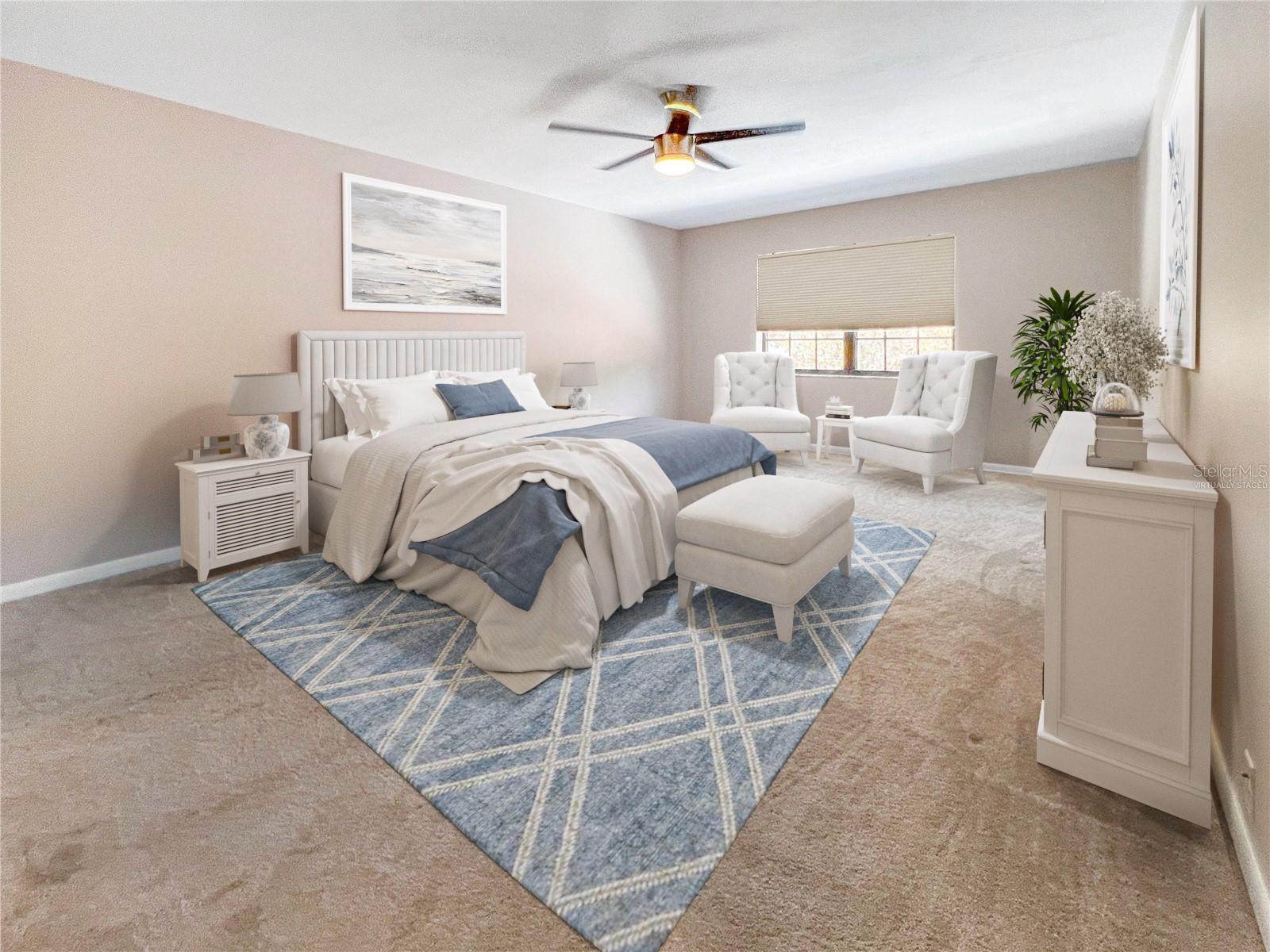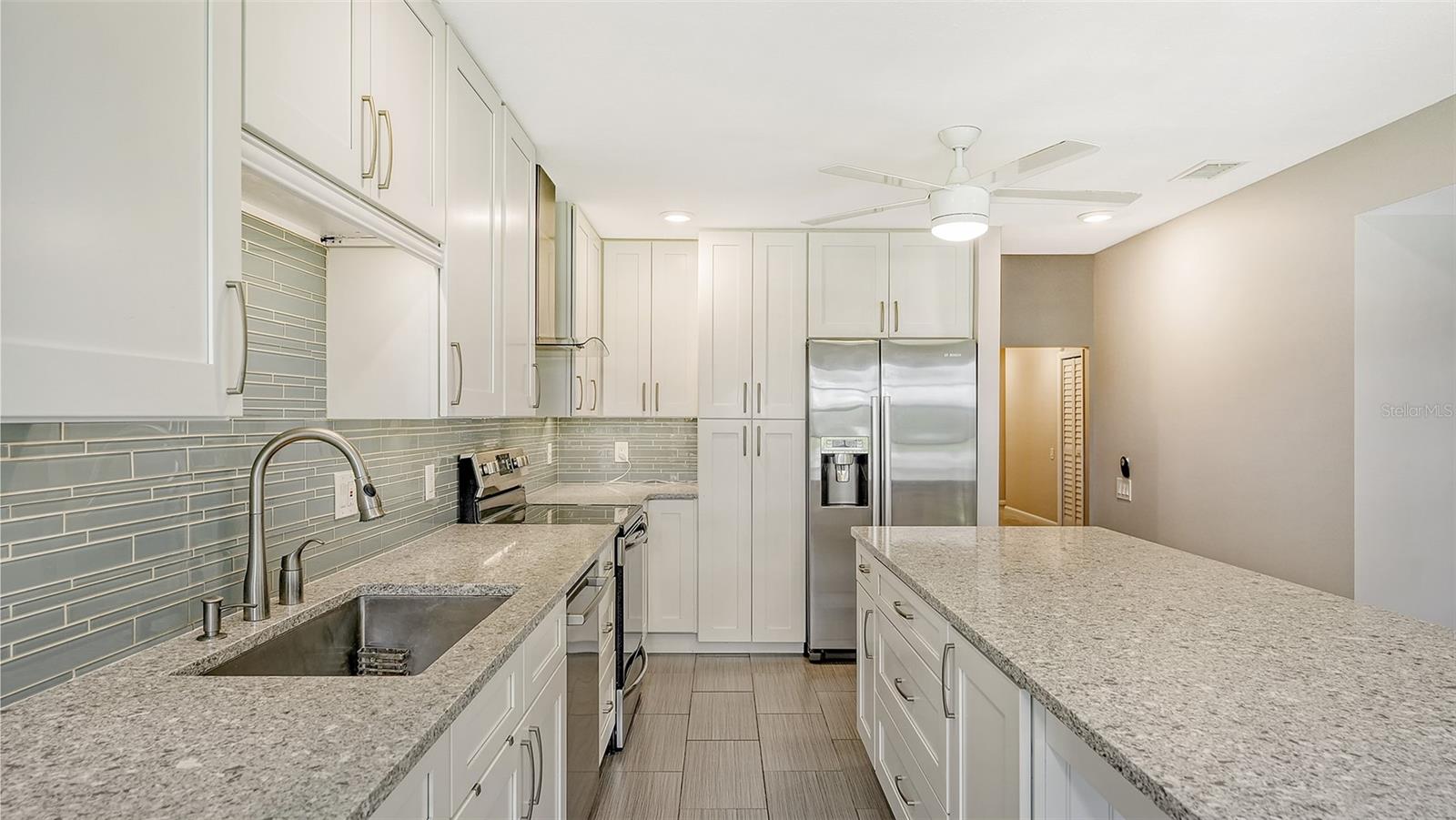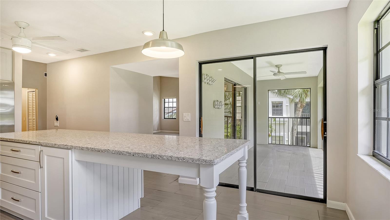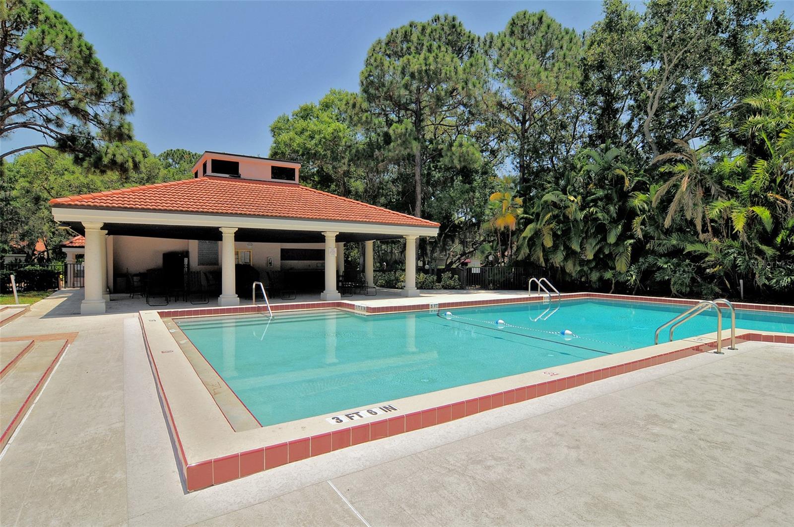One or more photo(s) has been virtually staged. Experience serenity and comfort in this 2nd floor freshly painted 2BR/2BA + den Rutenberg condo conveniently located near the Serendipity Tennis Club, Legacy Trail, Costco, YMCA, with easy access to I75 and the famous award-winning Siesta Key beach. Immerse yourself in the tranquility and natural beauty of your outdoor space and expansive views of the Prestancia PGA golf course. You will entertain in style in this open floor plan featuring a formal dining room, expansive vaulted ceilings and a cozy fireplace. Unleash your culinary prowess in the elegantly remodeled, highly functional, eat-in gourmet kitchen with Quartz countertops, tile backsplash and stainless steel appliances. The primary suite is an owners' dream retreat including a spacious walk-in closet, elegantly updated master bath with double sinks and convenient walk-in shower. The den has a closet and is ideal for an office, work-out room, hobby room or could easily be converted into a 3rd bedroom. There is a 2-car detached garage, located steps away down the street, featuring built-in cupboards and attic space for your extra storage needs. Fairway Woods is a gated, charming, wooded, maintenance-free community with a heated pool and a recently updated covered pavilion for fun, organized neighborly social gatherings.