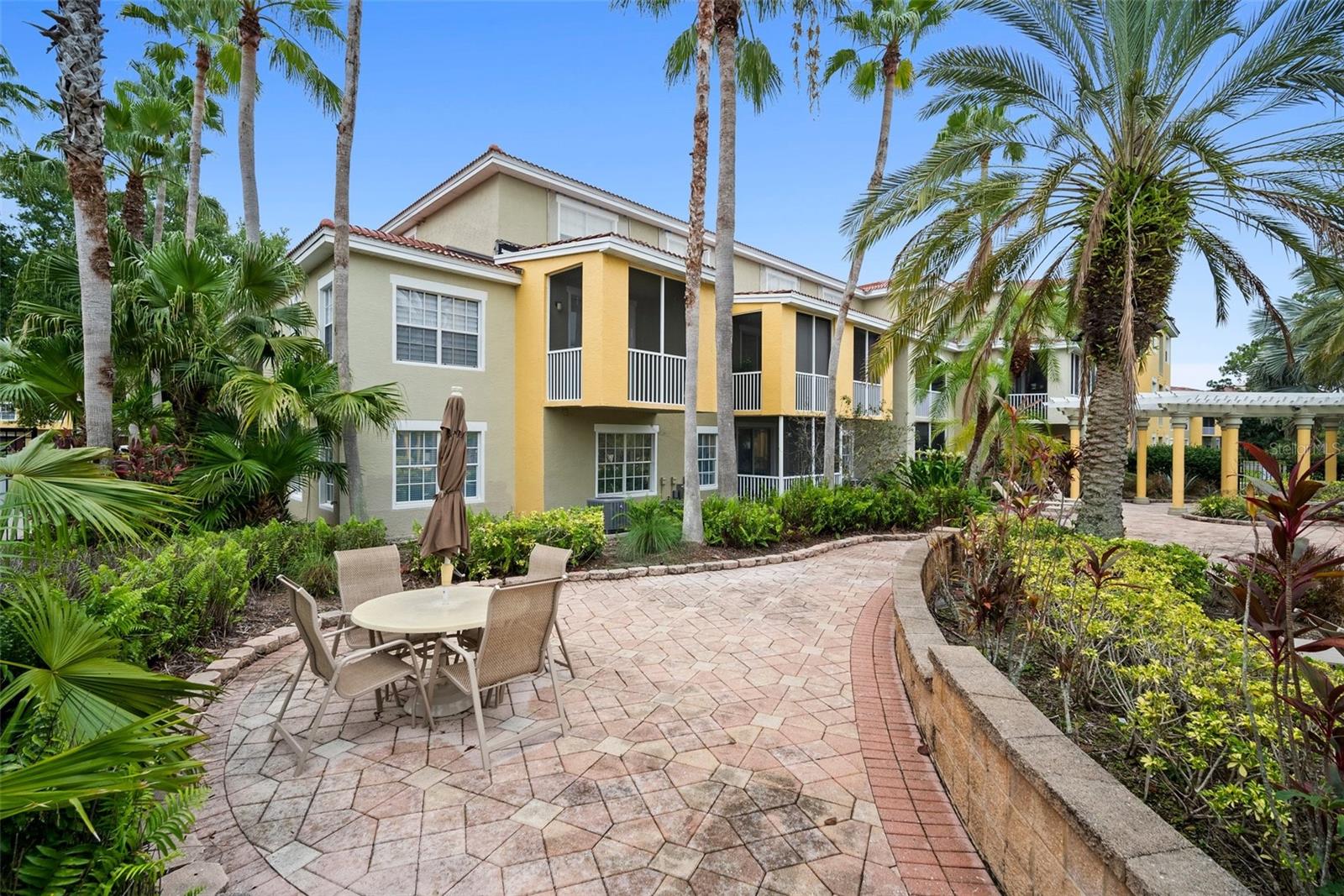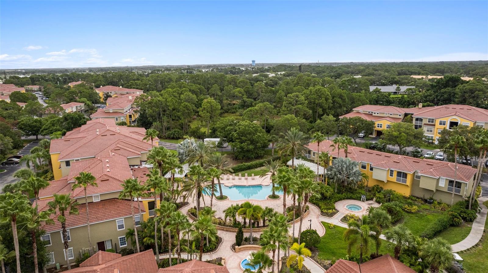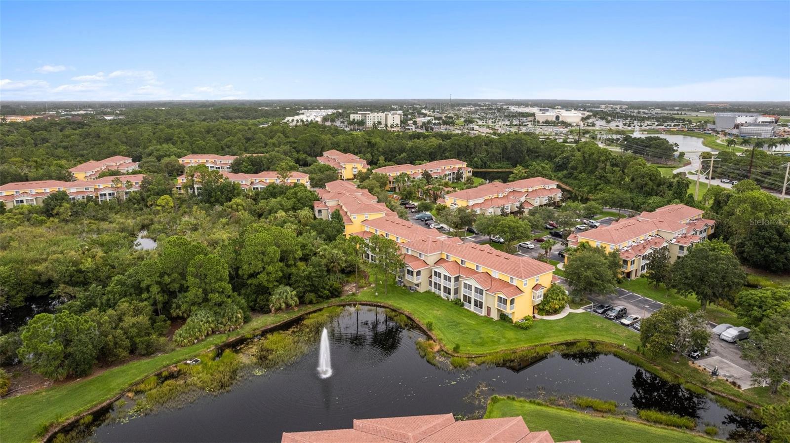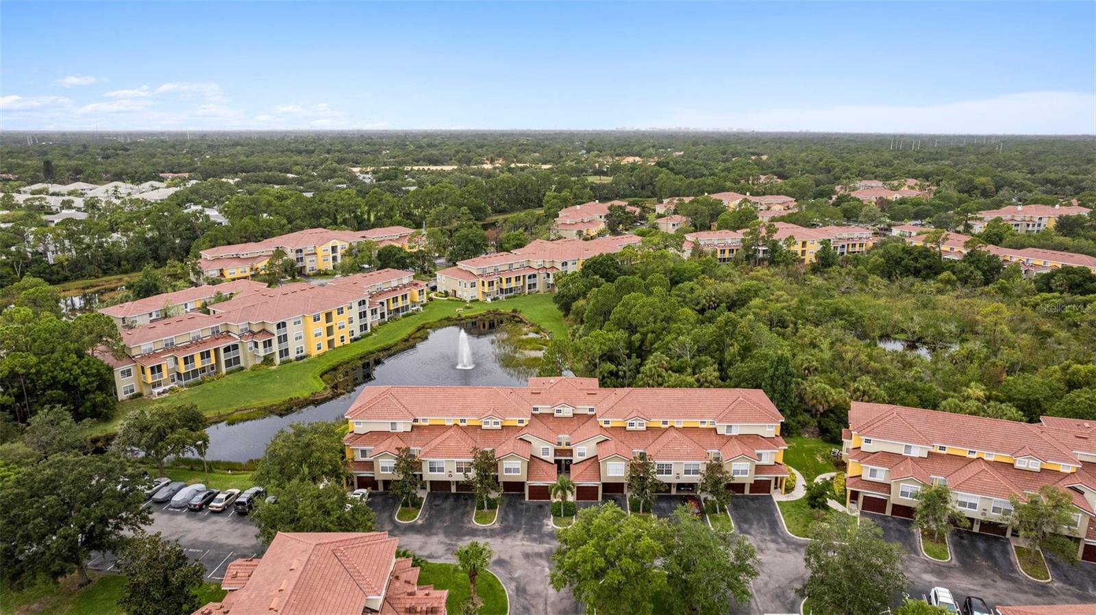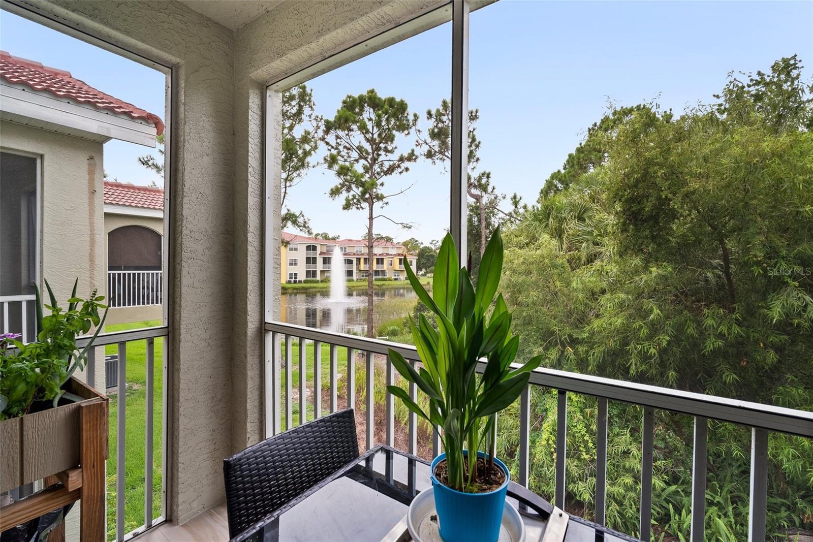 Welcome to resort style living! This two bedroom, two bath home offers comfort and convenience. The entry vestibule features direct access from your own private one-car garage with extra storage space. Up one flight of stairs, a great room with crown molding and luxury vinyl plank opens to a screened veranda with a view of the pond, fountain, and tranquil nature preserve. Luxury vinyl plank extends throughout the home with ceramic tile in the kitchen and bathrooms. The kitchen bar counter opens to the dining room, a shared space with the living room, great for social gathering. The kitchen adorns granite countertops, freshly painted cabinets, stainless steel appliances including a double oven. Down the hall is the second bedroom, full guest bath with an updated vanity, and a computer niche. Up stairs is the primary bedroom, en-suite bath that has updated vanities, and walk-in closet. Roof was recently replaced. AC and water heater are 2022. Washer and dryer located on the third floor are also 2022. Located across the parking lot is one of the two clubhouses that feature resort style pool, spa, exercise rooms, and outdoor grill. Las Palmas extensive park like site is adjacent to the Olympic world rowing and recreation park (Benderson) and close to University Town Center. Numerous restaurants and two upscale grocery stores are close at hand.