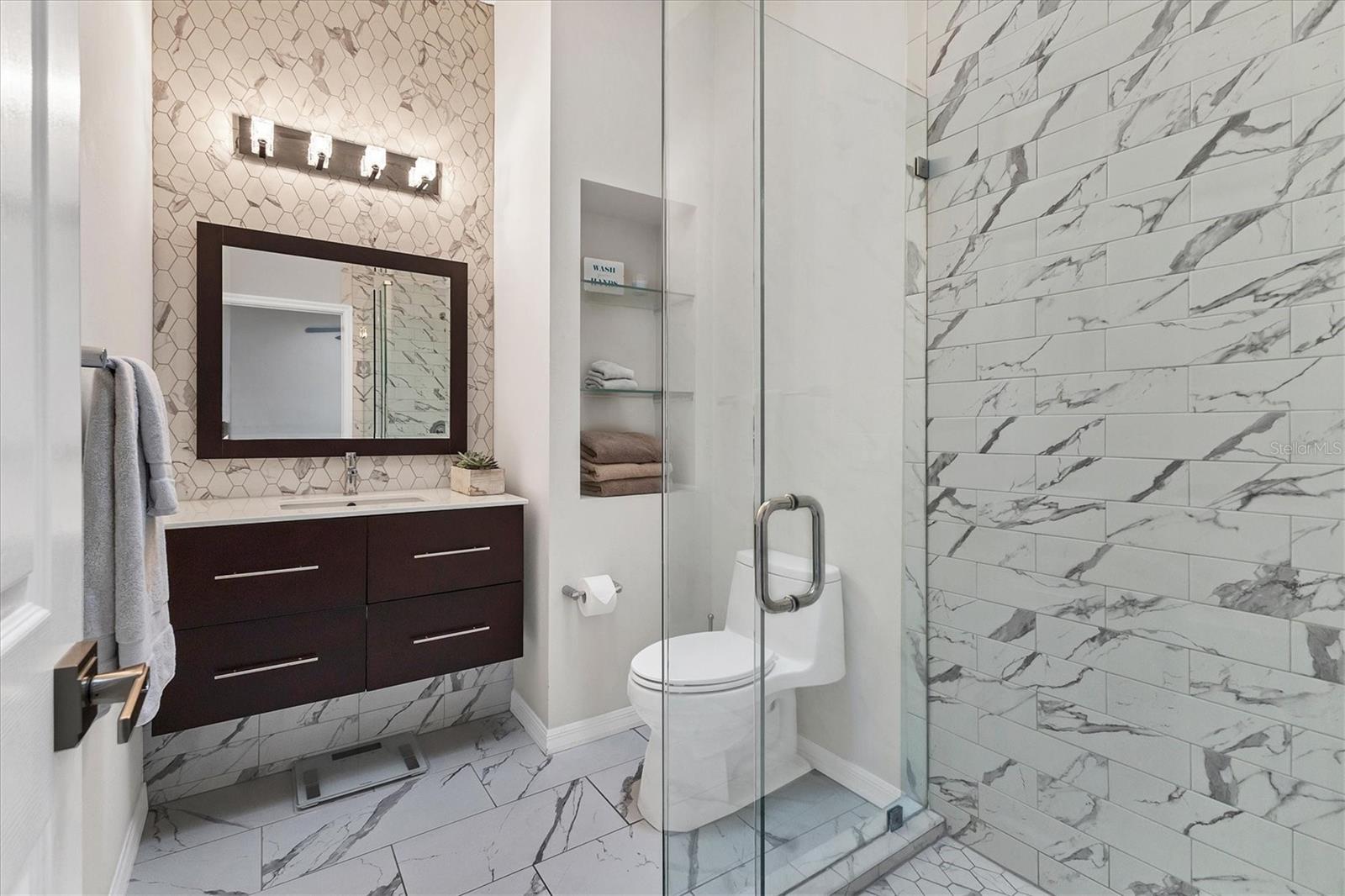 BRING ALL OFFERS - SELLER MOTIVATED - $100,000 price reduction. Welcome to this stunning updated 3-bedroom, 2.5-bathroom villa located in the prestigious Eagles Point community within The Landings. This exquisite property offers luxury living in a serene and picturesque setting. As you enter the villa, you are greeted by a spacious open concept living area that is perfect for entertaining guests or relaxing with family. The large, eat-in kitchen features modern appliances, granite countertops, and ample storage space, making it a chef's dream. The main floor primary bedroom is a true retreat with a large walk-in closet and en-suite bathroom complete with a luxurious soaking tub and separate shower. The two additional bedrooms are generously sized and share a beautifully appointed bathroom. Step outside onto the private screened patio and enjoy the lush landscaping and peaceful ambiance overlooking the preserve. The villa also boasts high-end hardwood floors throughout, volume ceilings, and many windows that allow the natural light to filter throughout the home. Also included is a private two-car garage, perfect for storing vehicles or outdoor gear. Residents of The Landings have access to a host of amenities, including a community pool, tennis courts, and fitness center and clubhouse. Enjoy a round of golf at the nearby course or take a stroll along the scenic walking paths that lead to the Sarasota Bay pavilion, the perfect spot to enjoy sunset. Don't miss your opportunity to own this exceptional villa in Eagles Point at The Landings. Schedule a viewing today and experience luxury living at its finest.