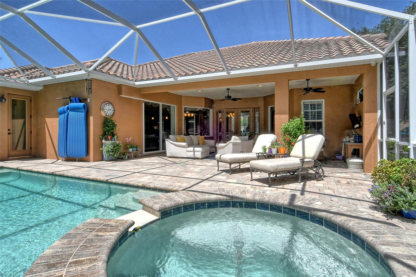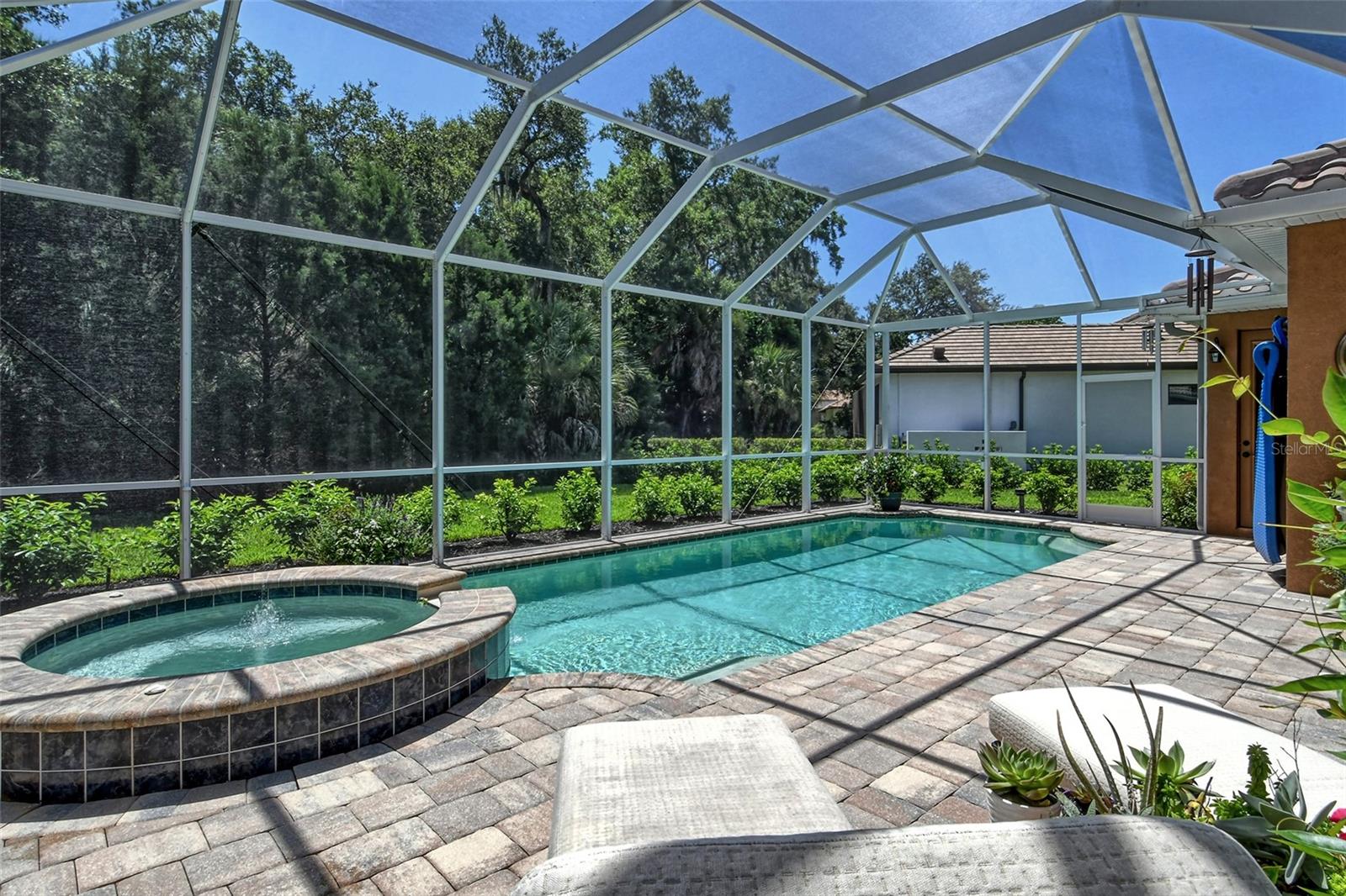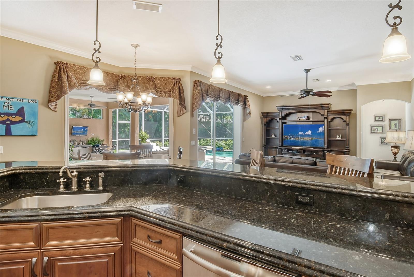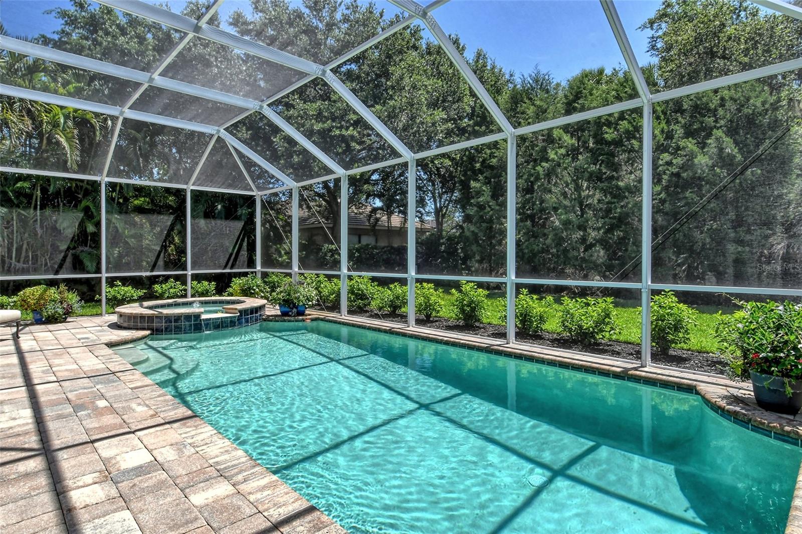 Welcome to your dream home, a meticulously crafted masterpiece by Tivoli Custom Home Builders in 2015, where luxury and sophistication come together seamlessly. Spanning 2,563 square feet, this residence features an open floor plan that effortlessly connects the expansive living and dining areas with the family room and breakfast nook. From these spaces, you can enjoy breathtaking views of the heated saltwater pool and jacuzzi through large aquarium windows. The ambiance is further enhanced by custom honeycomb blinds and ambient lighting, creating a serene and inviting atmosphere throughout. The owner suite offers a tranquil retreat with direct access to the pool and lanai deck. It boasts an oversized walk-in closet with custom features including jewelry drawers, a pull-out ironing board, and a hamper, all highlighted by ambient lighting. The en-suite bath is a spa-inspired haven with a spacious walk-in shower, a relaxing soaking tub, and a private water closet. For the culinary enthusiast, the gourmet kitchen is a dream come true, featuring floor-to-ceiling custom cabinets, a large island, a convenient water pot filler over the gas stove, and the a custom pantry with ambient lighting. The adjacent laundry room is equipped with an extra-large sink. This open design makes the kitchen perfect for both intimate family meals and grand entertaining. Step outside to your private oasis, where the heated saltwater pool and jacuzzi await. Surrounded by custom pavers and a newly installed pool screen (June 2024), this outdoor area is ideal for relaxation and entertaining. The expansive yard offers endless possibilities for vibrant gardens, lush landscaping, or simply enjoying the serene environment. This home stands out with its exceptional features, including a large private office or den, perfect for remote work or a quiet escape, complete with double doors and natural light. The open floor plan enhances the home's seamless flow, while ceiling fans throughout ensure year-round comfort and energy efficiency. Additional highlights include two generously sized guest bedrooms with custom closets, a practical pool bath with a walk-in shower, and energy-efficient Icynene insulation. Located in a pet-friendly community with a low $1,600 2024 HOA fee covering maintenance, security, and amenities, this home is ideally situated close to Siesta Key Beach, UTC Mall, dining, arts, and top-rated schools. Offering a blend of luxury, functionality, and comfort, this move-in ready home is ready to welcome you—schedule your private tour today and experience refined living at its finest.