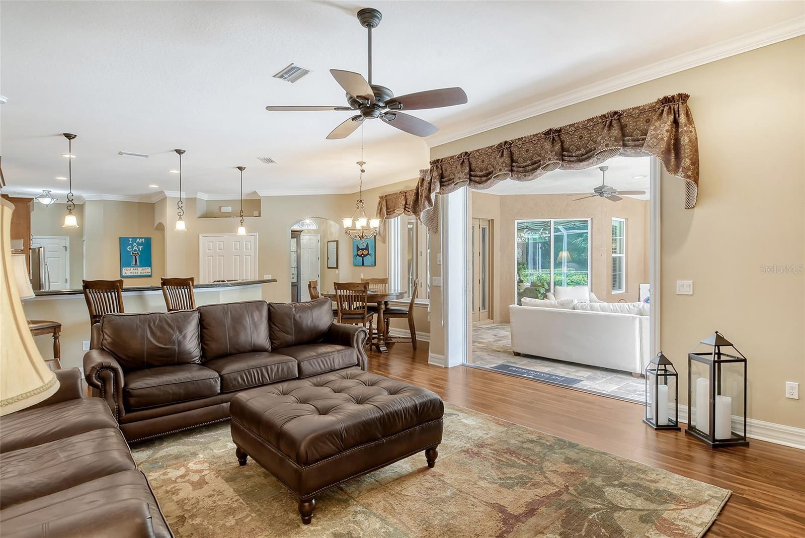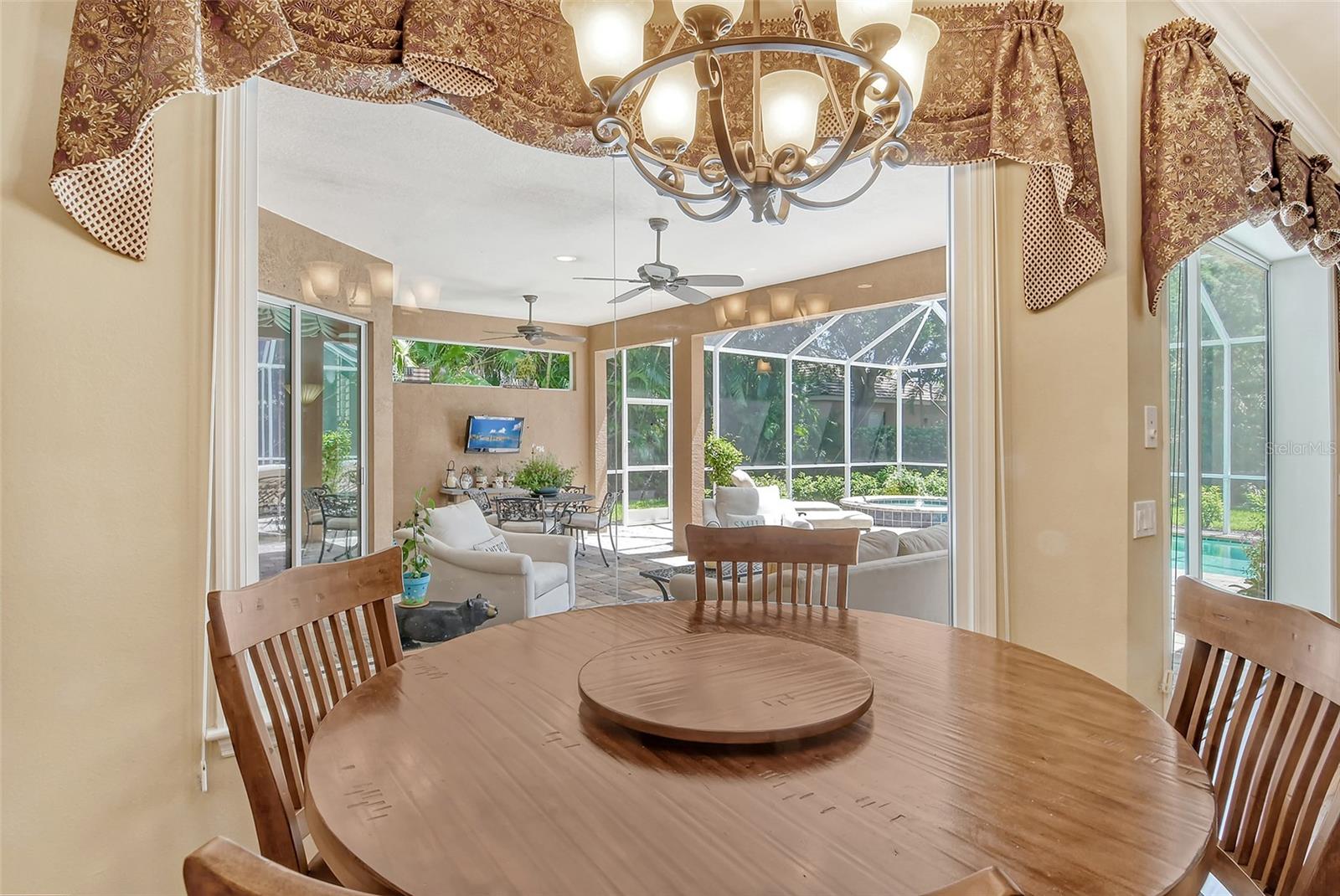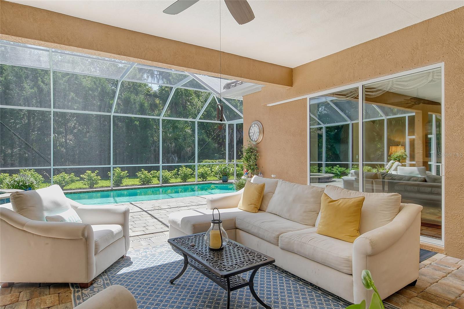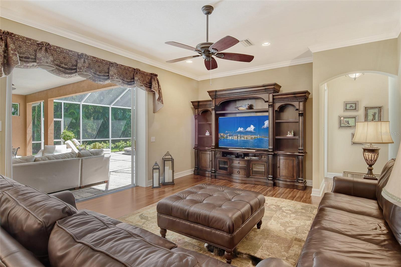 Welcome to your dream home, a meticulously crafted masterpiece by Tivoli Custom Home Builders in 2015, where luxury and sophistication come together seamlessly. Spanning 2,563 square feet, this residence features an open floor plan that effortlessly connects the expansive living and dining areas with the family room and breakfast nook. From these spaces, you can enjoy breathtaking views of the heated saltwater pool and jacuzzi through large aquarium windows. The ambiance is further enhanced by custom honeycomb blinds and ambient lighting, creating a serene and inviting atmosphere throughout. The owner suite offers a tranquil retreat with direct access to the pool and lanai deck. It boasts an oversized walk-in closet with custom features including jewelry drawers, a pull-out ironing board, and a hamper, all highlighted by ambient lighting. The en-suite bath is a spa-inspired haven with a spacious walk-in shower, a relaxing soaking tub, and a private water closet. For the culinary enthusiast, the gourmet kitchen is a dream come true, featuring floor-to-ceiling custom cabinets, a large island, a convenient water pot filler over the gas stove, and the a custom pantry with ambient lighting. The adjacent laundry room is equipped with an extra-large sink. This open design makes the kitchen perfect for both intimate family meals and grand entertaining. Step outside to your private oasis, where the heated saltwater pool and jacuzzi await. Surrounded by custom pavers and a newly installed pool screen (June 2024), this outdoor area is ideal for relaxation and entertaining. The expansive yard offers endless possibilities for vibrant gardens, lush landscaping, or simply enjoying the serene environment. This home stands out with its exceptional features, including a large private office or den, perfect for remote work or a quiet escape, complete with double doors and natural light. The open floor plan enhances the home's seamless flow, while ceiling fans throughout ensure year-round comfort and energy efficiency. Additional highlights include two generously sized guest bedrooms with custom closets, a practical pool bath with a walk-in shower, and energy-efficient Icynene insulation. Located in a pet-friendly community with a low $1,600 2024 HOA fee covering maintenance, security, and amenities, this home is ideally situated close to Siesta Key Beach, UTC Mall, dining, arts, and top-rated schools. Offering a blend of luxury, functionality, and comfort, this move-in ready home is ready to welcome you—schedule your private tour today and experience refined living at its finest.