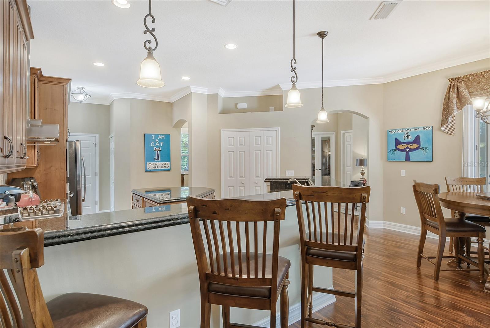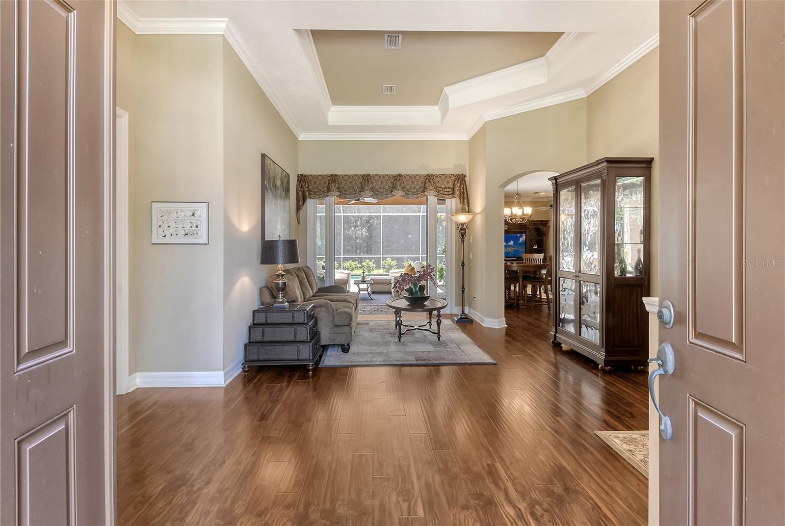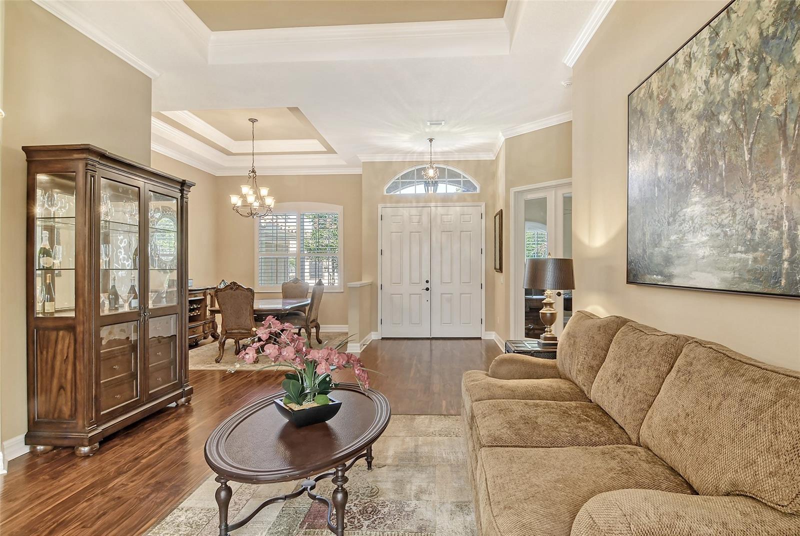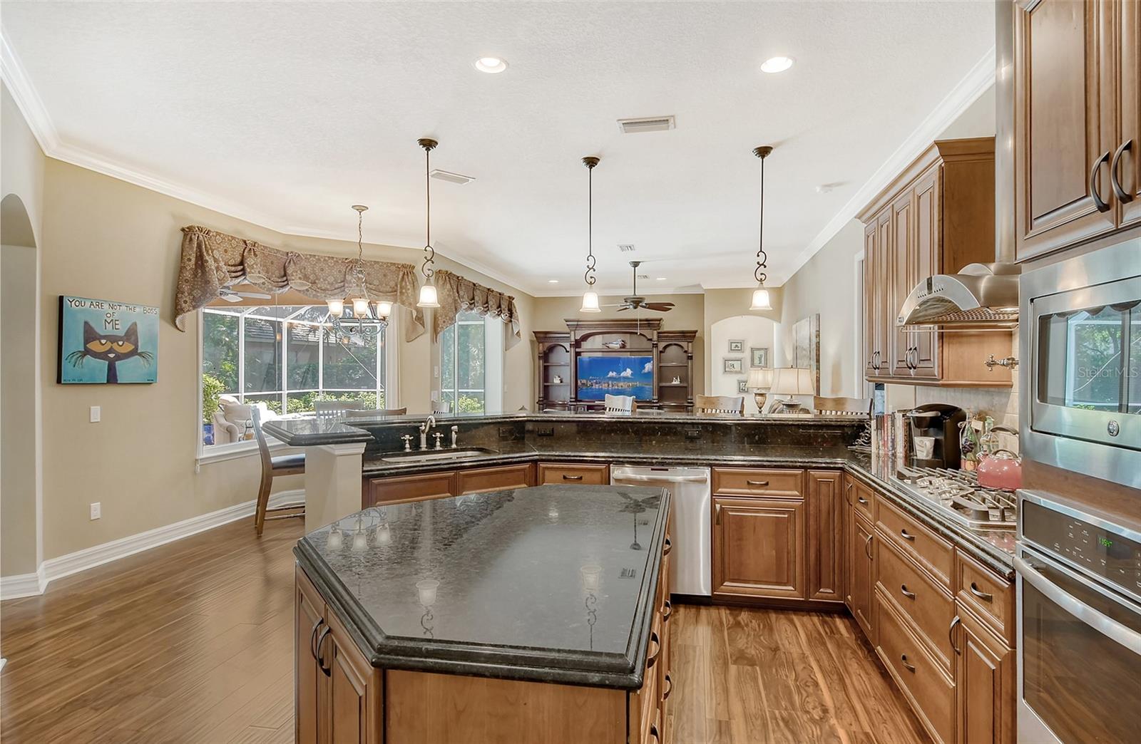 Welcome to your dream home, a meticulously crafted masterpiece by Tivoli Custom Home Builders in 2015, where luxury and sophistication come together seamlessly. Spanning 2,563 square feet, this residence features an open floor plan that effortlessly connects the expansive living and dining areas with the family room and breakfast nook. From these spaces, you can enjoy breathtaking views of the heated saltwater pool and jacuzzi through large aquarium windows. The ambiance is further enhanced by custom honeycomb blinds and ambient lighting, creating a serene and inviting atmosphere throughout. The owner suite offers a tranquil retreat with direct access to the pool and lanai deck. It boasts an oversized walk-in closet with custom features including jewelry drawers, a pull-out ironing board, and a hamper, all highlighted by ambient lighting. The en-suite bath is a spa-inspired haven with a spacious walk-in shower, a relaxing soaking tub, and a private water closet. For the culinary enthusiast, the gourmet kitchen is a dream come true, featuring floor-to-ceiling custom cabinets, a large island, a convenient water pot filler over the gas stove, and the a custom pantry with ambient lighting. The adjacent laundry room is equipped with an extra-large sink. This open design makes the kitchen perfect for both intimate family meals and grand entertaining. Step outside to your private oasis, where the heated saltwater pool and jacuzzi await. Surrounded by custom pavers and a newly installed pool screen (June 2024), this outdoor area is ideal for relaxation and entertaining. The expansive yard offers endless possibilities for vibrant gardens, lush landscaping, or simply enjoying the serene environment. This home stands out with its exceptional features, including a large private office or den, perfect for remote work or a quiet escape, complete with double doors and natural light. The open floor plan enhances the home's seamless flow, while ceiling fans throughout ensure year-round comfort and energy efficiency. Additional highlights include two generously sized guest bedrooms with custom closets, a practical pool bath with a walk-in shower, and energy-efficient Icynene insulation. Located in a pet-friendly community with a low $1,600 2024 HOA fee covering maintenance, security, and amenities, this home is ideally situated close to Siesta Key Beach, UTC Mall, dining, arts, and top-rated schools. Offering a blend of luxury, functionality, and comfort, this move-in ready home is ready to welcome you—schedule your private tour today and experience refined living at its finest.