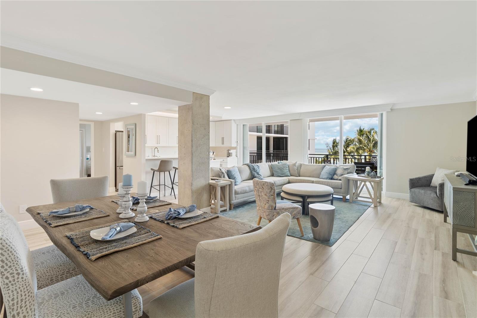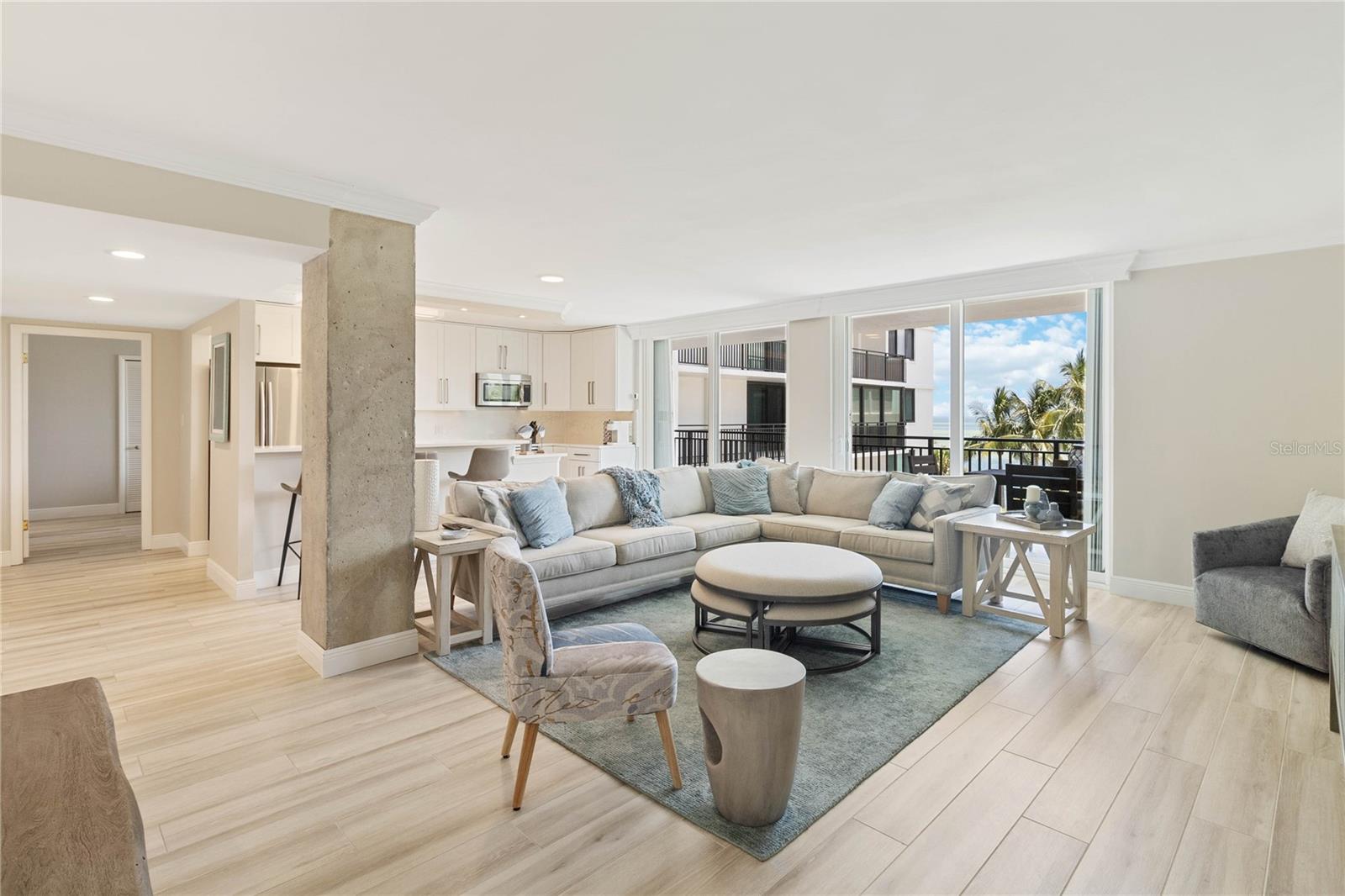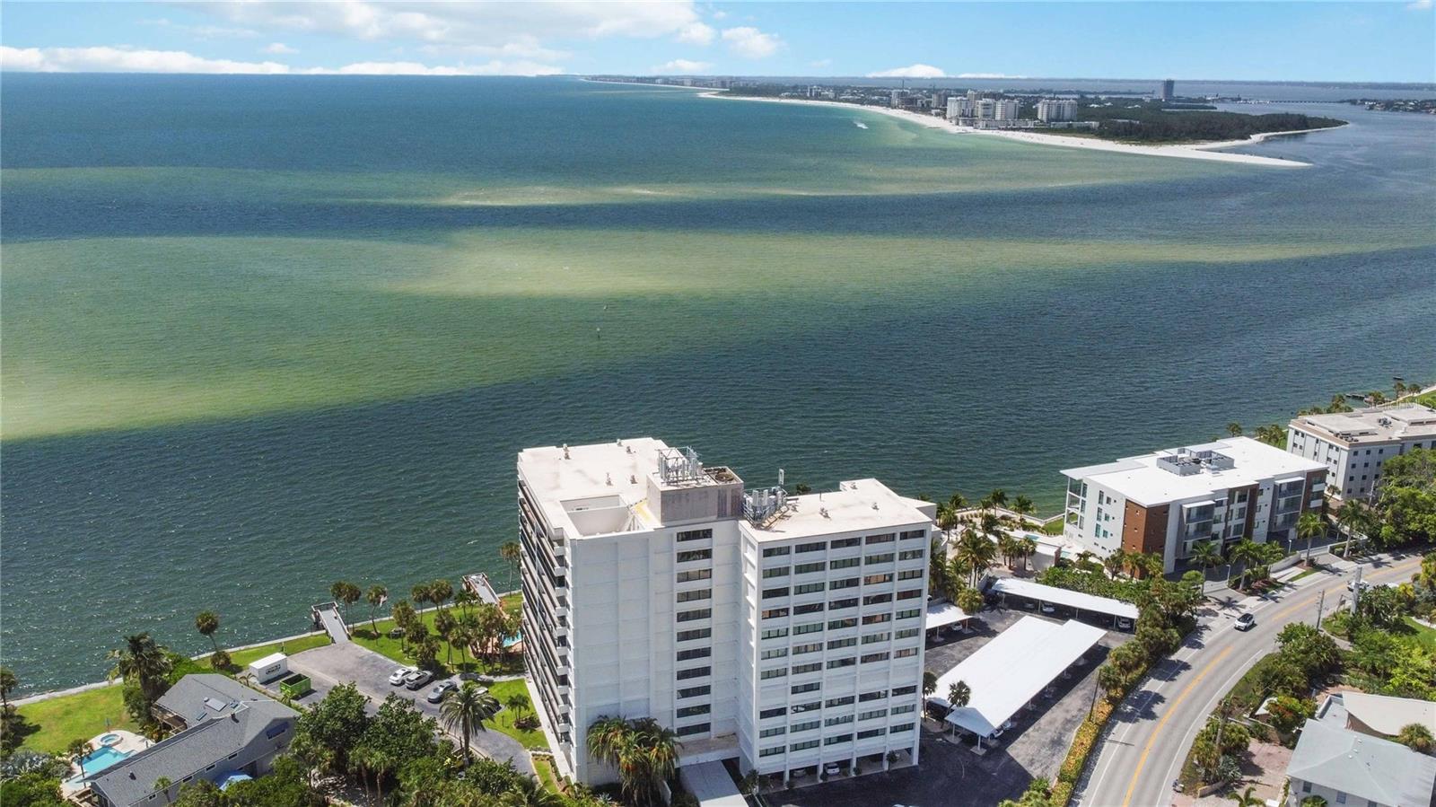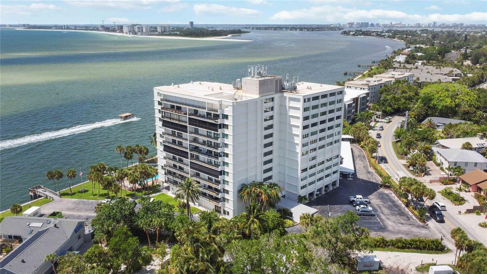 Welcome to your new home, a meticulously crafted TURNKEY 2 BED 2 BATH condo nestled in the newly renovated Siesta Towers. SELLER OVERING TO PAY 1ST 6 MONTHS OF CONDO FEES FOR AN ACCEPTED OFFER. Positioned along "THE BIG PASS," where the Gulf's azure waters meet the intercoastal, this residence offers a seamless blend of luxury and coastal living. Step inside to discover a light-filled open concept design that showcases breathtaking views from every room. Recently upgraded, this condo features stunning soundproof tile floors throughout, a spacious renovated balcony with outdoor furnishings, and a sleek modern kitchen boasting new countertops, soft-close custom cabinetry, stainless steel appliances, a wine cooler, and accent lighting. Both master bedrooms are adorned with automated blinds and boast upgraded ensuites complete with dual sinks, European toilets, and stylish finishes. The unit comes fully furnished with designer pieces, ensuring comfort and elegance at every turn. Residents will enjoy the convenience of a dedicated storage space in a secure community-shared area located off the main lobby. Siesta Towers offers upgraded amenities including a newly designed 9 ft main pool, bicycle storage room, community room for gatherings, and a state-of-the-art fitness center nearing completion. For outdoor enthusiasts, there's a tackle and fishing room available, along with access to a shared private dock perfect for fishing lovers. Property is also Miami Dade Compliant! A quick stroll through Siesta Village leads to Siesta Beach, renowned for its white sands, while nearby restaurants, shops, bars, and vibrant nightlife ensure endless entertainment options. Don't miss this rare opportunity to own at Siesta Towers. Unit 4D promises a lifetime of enjoyment, spectacular sunsets, and cherished memories in one of Siesta Key's most desirable locations.