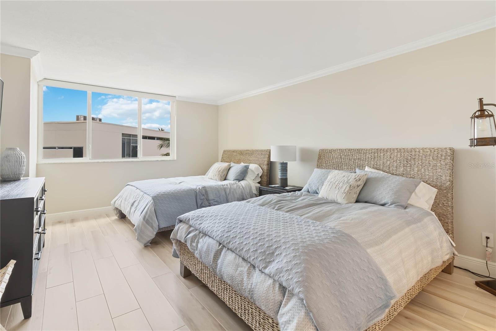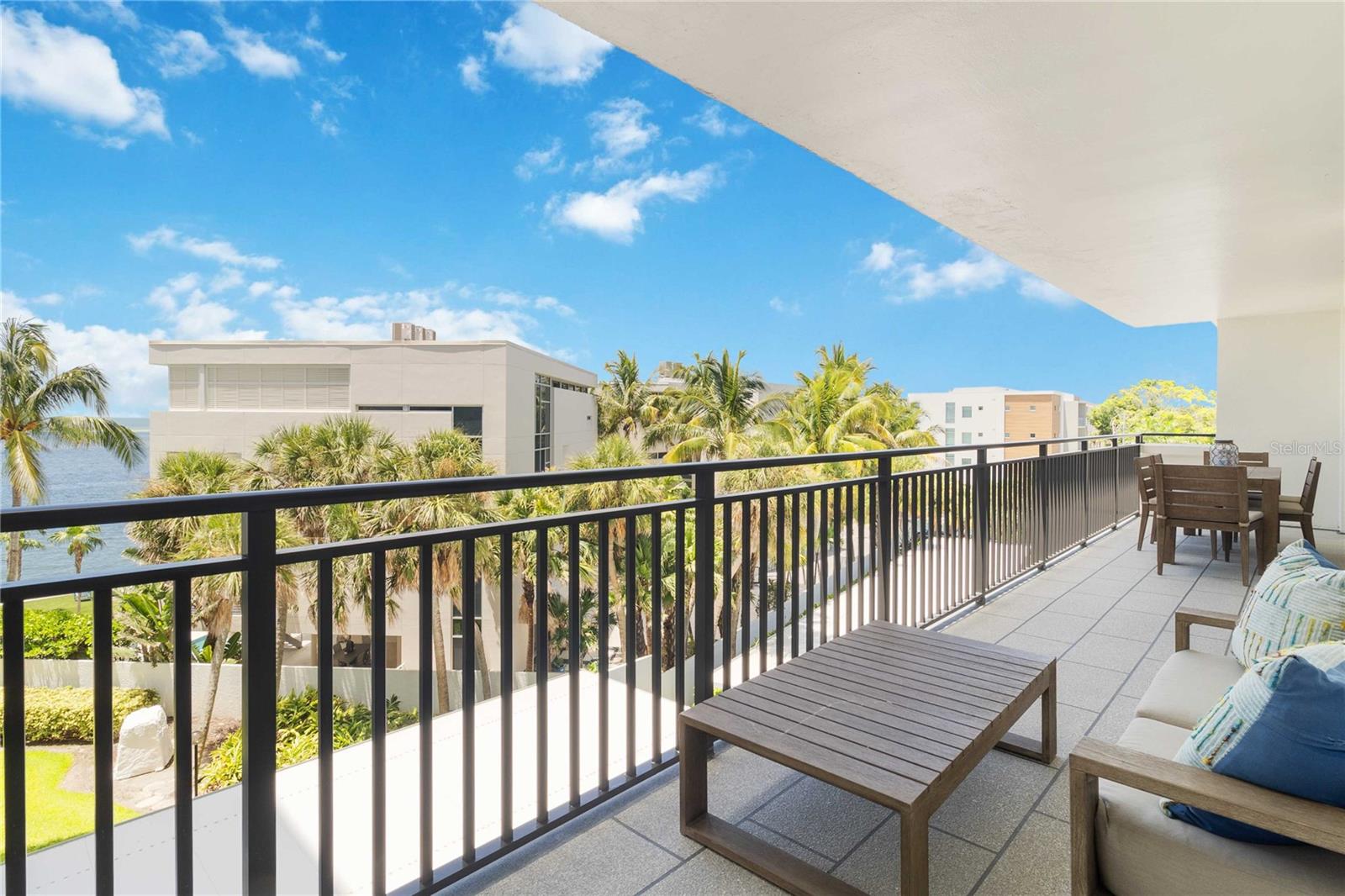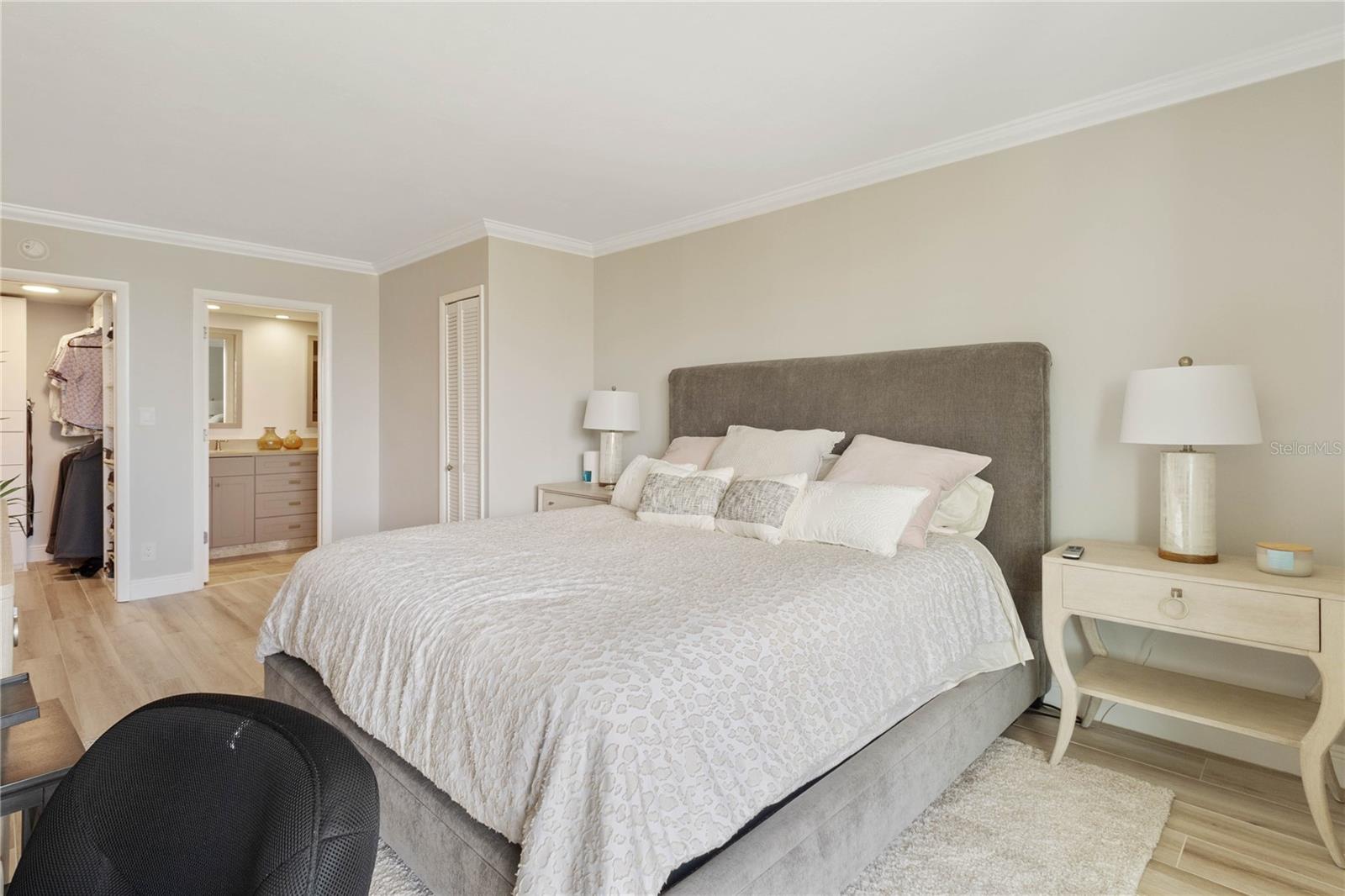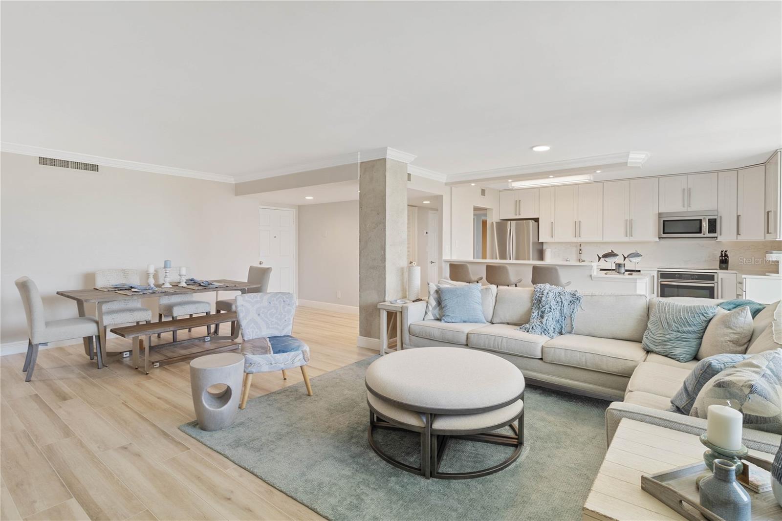 Welcome to your new home, a meticulously crafted TURNKEY 2 BED 2 BATH condo nestled in the newly renovated Siesta Towers. SELLER OVERING TO PAY 1ST 6 MONTHS OF CONDO FEES FOR AN ACCEPTED OFFER. Positioned along "THE BIG PASS," where the Gulf's azure waters meet the intercoastal, this residence offers a seamless blend of luxury and coastal living. Step inside to discover a light-filled open concept design that showcases breathtaking views from every room. Recently upgraded, this condo features stunning soundproof tile floors throughout, a spacious renovated balcony with outdoor furnishings, and a sleek modern kitchen boasting new countertops, soft-close custom cabinetry, stainless steel appliances, a wine cooler, and accent lighting. Both master bedrooms are adorned with automated blinds and boast upgraded ensuites complete with dual sinks, European toilets, and stylish finishes. The unit comes fully furnished with designer pieces, ensuring comfort and elegance at every turn. Residents will enjoy the convenience of a dedicated storage space in a secure community-shared area located off the main lobby. Siesta Towers offers upgraded amenities including a newly designed 9 ft main pool, bicycle storage room, community room for gatherings, and a state-of-the-art fitness center nearing completion. For outdoor enthusiasts, there's a tackle and fishing room available, along with access to a shared private dock perfect for fishing lovers. Property is also Miami Dade Compliant! A quick stroll through Siesta Village leads to Siesta Beach, renowned for its white sands, while nearby restaurants, shops, bars, and vibrant nightlife ensure endless entertainment options. Don't miss this rare opportunity to own at Siesta Towers. Unit 4D promises a lifetime of enjoyment, spectacular sunsets, and cherished memories in one of Siesta Key's most desirable locations.