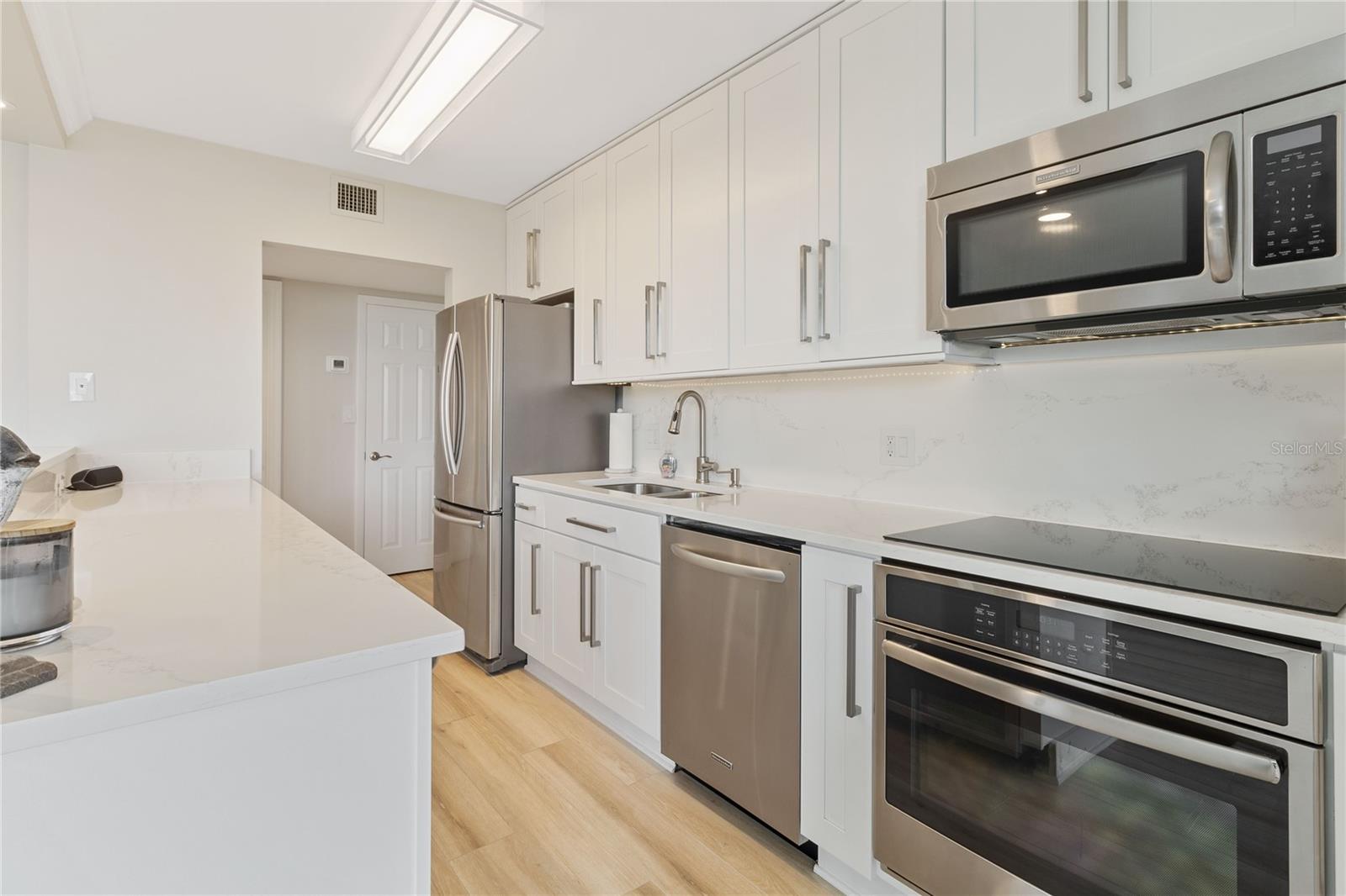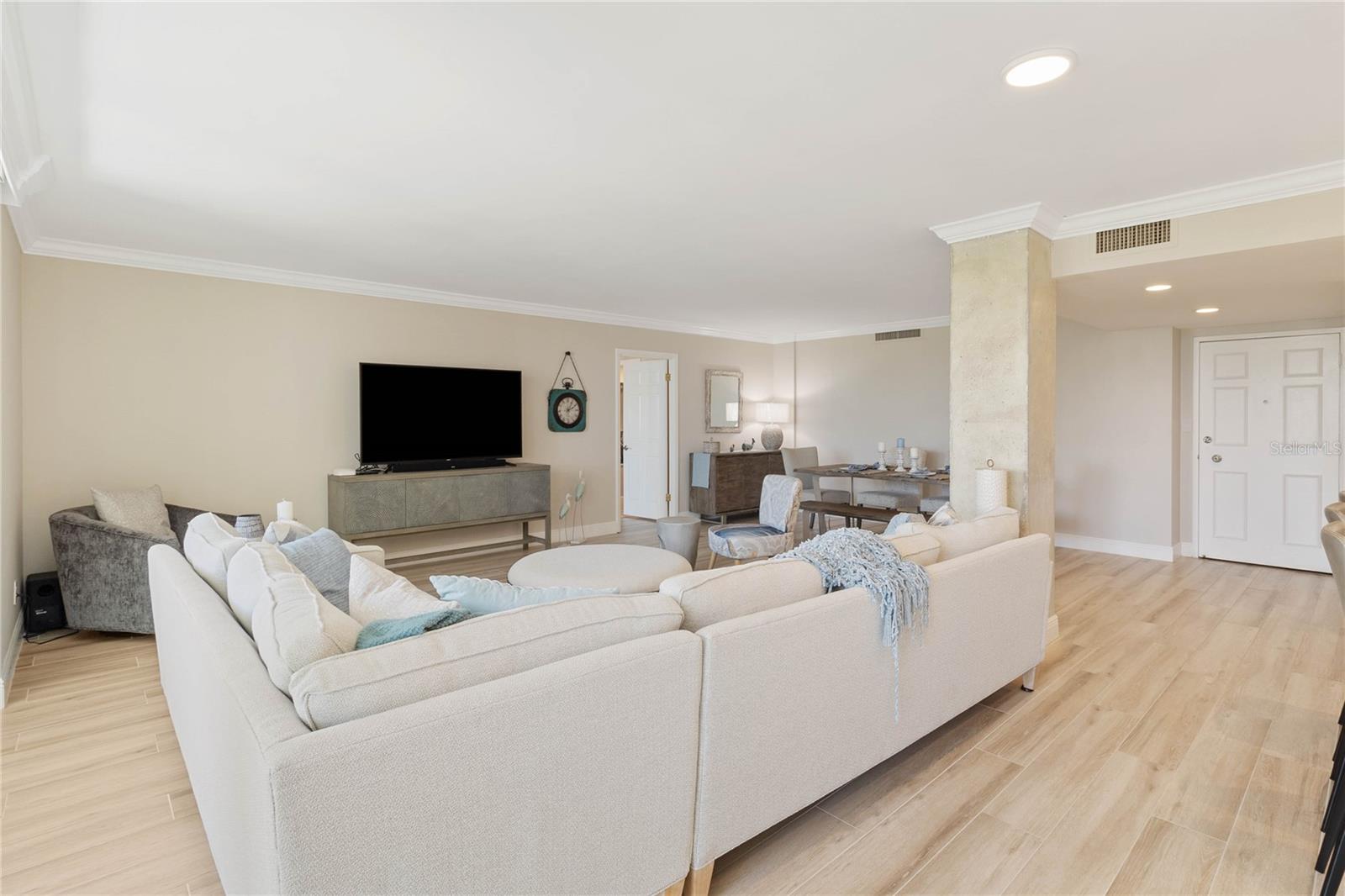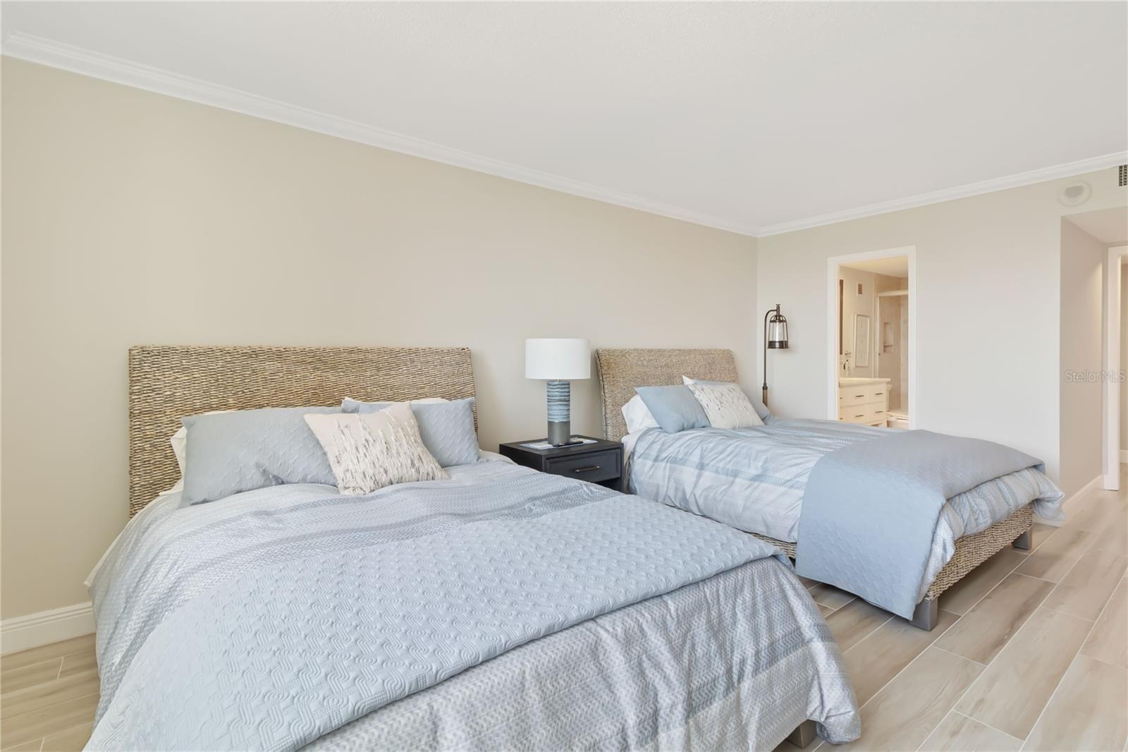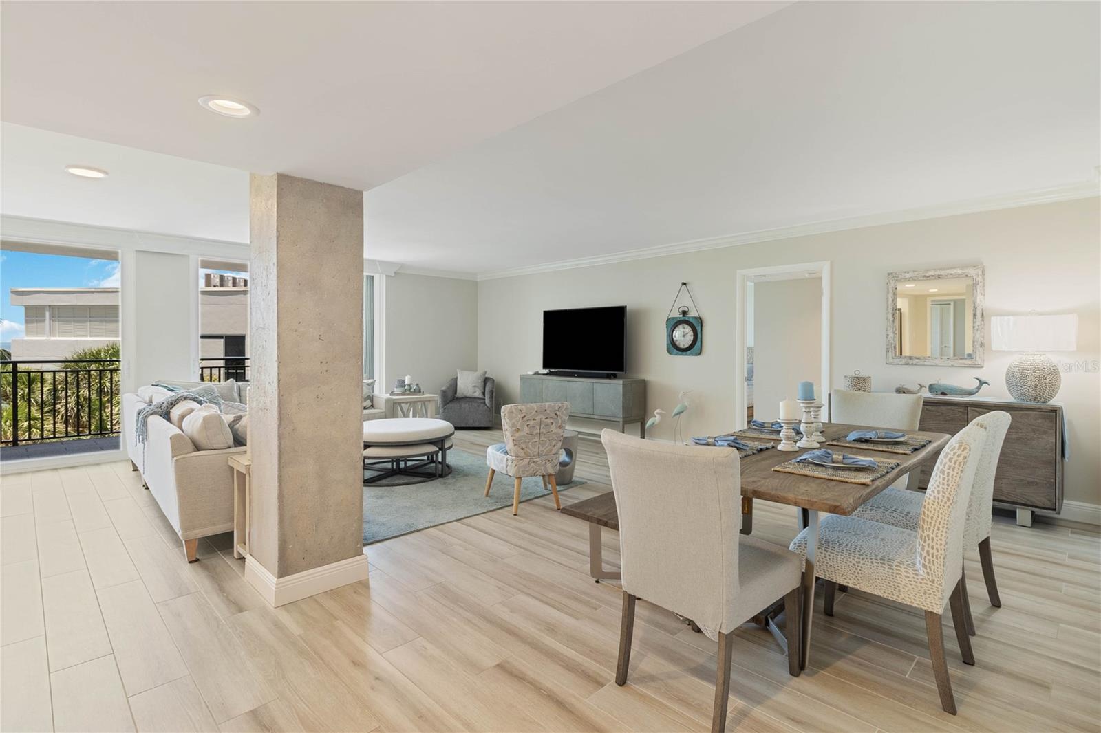 Welcome to your new home, a meticulously crafted TURNKEY 2 BED 2 BATH condo nestled in the newly renovated Siesta Towers. SELLER OVERING TO PAY 1ST 6 MONTHS OF CONDO FEES FOR AN ACCEPTED OFFER. Positioned along "THE BIG PASS," where the Gulf's azure waters meet the intercoastal, this residence offers a seamless blend of luxury and coastal living. Step inside to discover a light-filled open concept design that showcases breathtaking views from every room. Recently upgraded, this condo features stunning soundproof tile floors throughout, a spacious renovated balcony with outdoor furnishings, and a sleek modern kitchen boasting new countertops, soft-close custom cabinetry, stainless steel appliances, a wine cooler, and accent lighting. Both master bedrooms are adorned with automated blinds and boast upgraded ensuites complete with dual sinks, European toilets, and stylish finishes. The unit comes fully furnished with designer pieces, ensuring comfort and elegance at every turn. Residents will enjoy the convenience of a dedicated storage space in a secure community-shared area located off the main lobby. Siesta Towers offers upgraded amenities including a newly designed 9 ft main pool, bicycle storage room, community room for gatherings, and a state-of-the-art fitness center nearing completion. For outdoor enthusiasts, there's a tackle and fishing room available, along with access to a shared private dock perfect for fishing lovers. Property is also Miami Dade Compliant! A quick stroll through Siesta Village leads to Siesta Beach, renowned for its white sands, while nearby restaurants, shops, bars, and vibrant nightlife ensure endless entertainment options. Don't miss this rare opportunity to own at Siesta Towers. Unit 4D promises a lifetime of enjoyment, spectacular sunsets, and cherished memories in one of Siesta Key's most desirable locations.