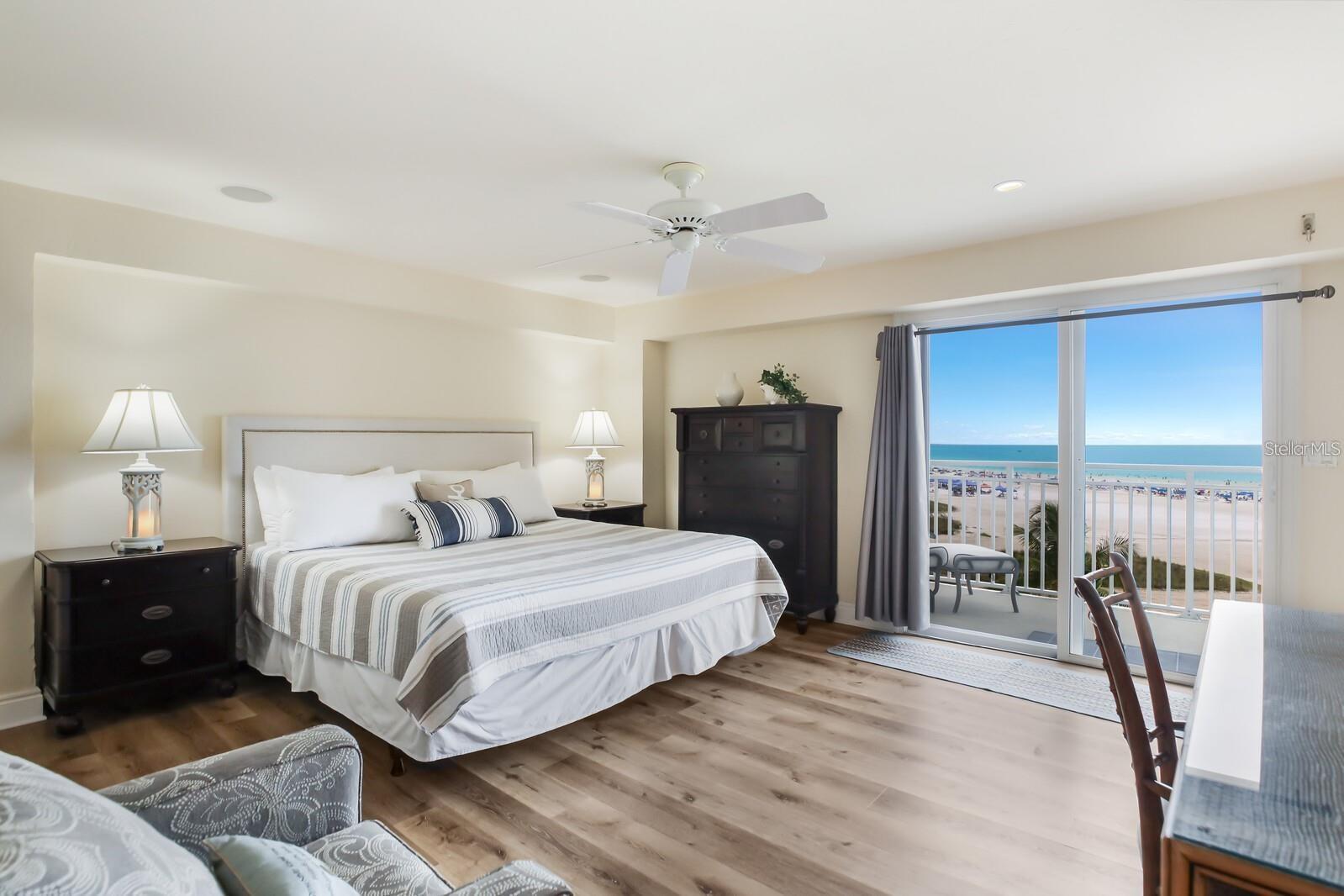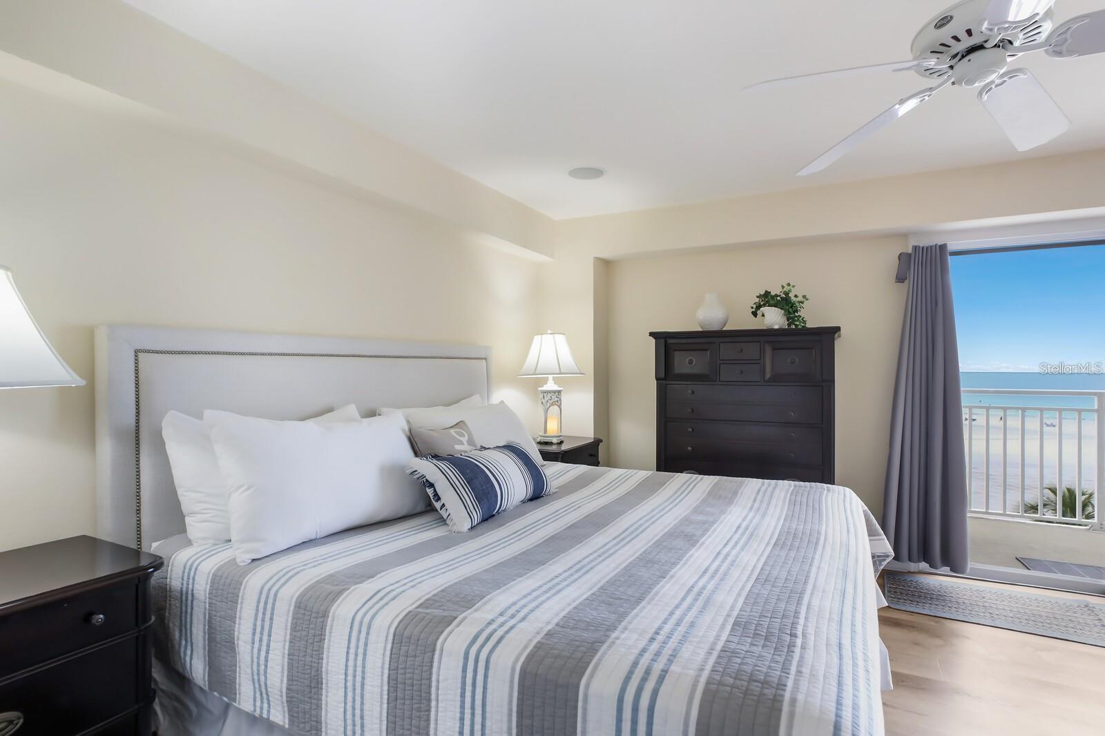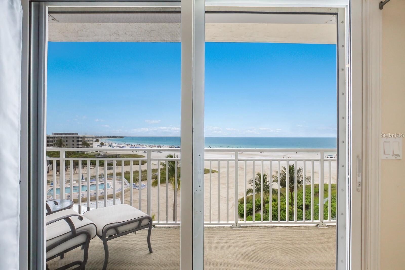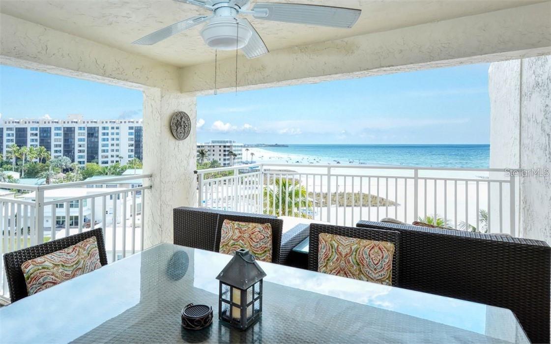 The Beach Elevated this updated 5th floor high above the Gulf a Golden opportunity to own directly on Siesta Key Beach. Rarely available perfectly situated direct beach front with a weekly rental program managed on site 52 weeks a year. Endless BEACH VIEWs in the wrap around deck specific to this unit on the 5th floor you will be well protected from high tides. NEW HURRICANE WINDOWS and/or shutters 2023 new railings on the balconies and fresh interior and exterior paint assessments have been paid. This unit comes turnkey furnished a top performer when rented Unit 502 has earned $80k in rental income so far 2024. You will love the large wine refrigerator great for chilling soft drinks and water too enjoy on your open balcony hovering over the beach cannot get closer that this and still able to sleep at night. You will appreciate the extra owners storage unit on the first level of the building convenient for your personal beach chairs and umbrellas. Jamaica Royale features 3 swimming pools and beach side chairs for relaxing on Crescent Beach. Central island location for easy access to south and north villages on Siesta key shopping dining and live entertainment. Access the trolley for free rides to either end of Siesta Key. This unit is rented through August 3, 2024 and then will be available showings and inspections. This property has had the "MILESTONE" inspection for the complex
