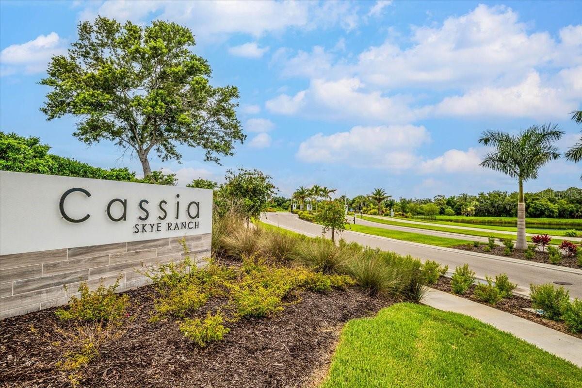 One or more photo(s) has been virtually staged. Quick move in to Skye Ranch's Cassia! This newly constructed and fully settled (April 2023), ready for immediate occupancy Antigua model features a highly practical four-bedroom, three-bathroom single-level floorplan in the Cassia part of Skye Ranch community, Sarasota. This brand-new home features one of the largest lots in the community (located on a semi-private street of a fully developed block), a spacious open layout, GE stainless steel kitchen appliances, top of the line Samsung washer and dryer, natural gas range, an oversized walk-in kitchen pantry, a two-car garage with finished epoxy flooring, spacious backyard with outdoor kitchen rough-ins, and much much more. The house is available for a quick move in! The community’s amenities include the state-of-the-art HUB recreational center with stunning full-size gym, indoor basketball courts, an immense laguna pool, an olympic lap pool, a café, a climbing wall, a cozy lounge, tennis and pickleball courts, full size soccer fields, kids’ playground, dog runs and much more! Skye Ranch is a gated community located east of I-75’s exit 205, about 25 minutes to drive to the Siesta Key beach, and about 16 miles north to the UTC mall with all its countless restaurants, shopping, and top-notch entertainment. Schedule a viewing today!
