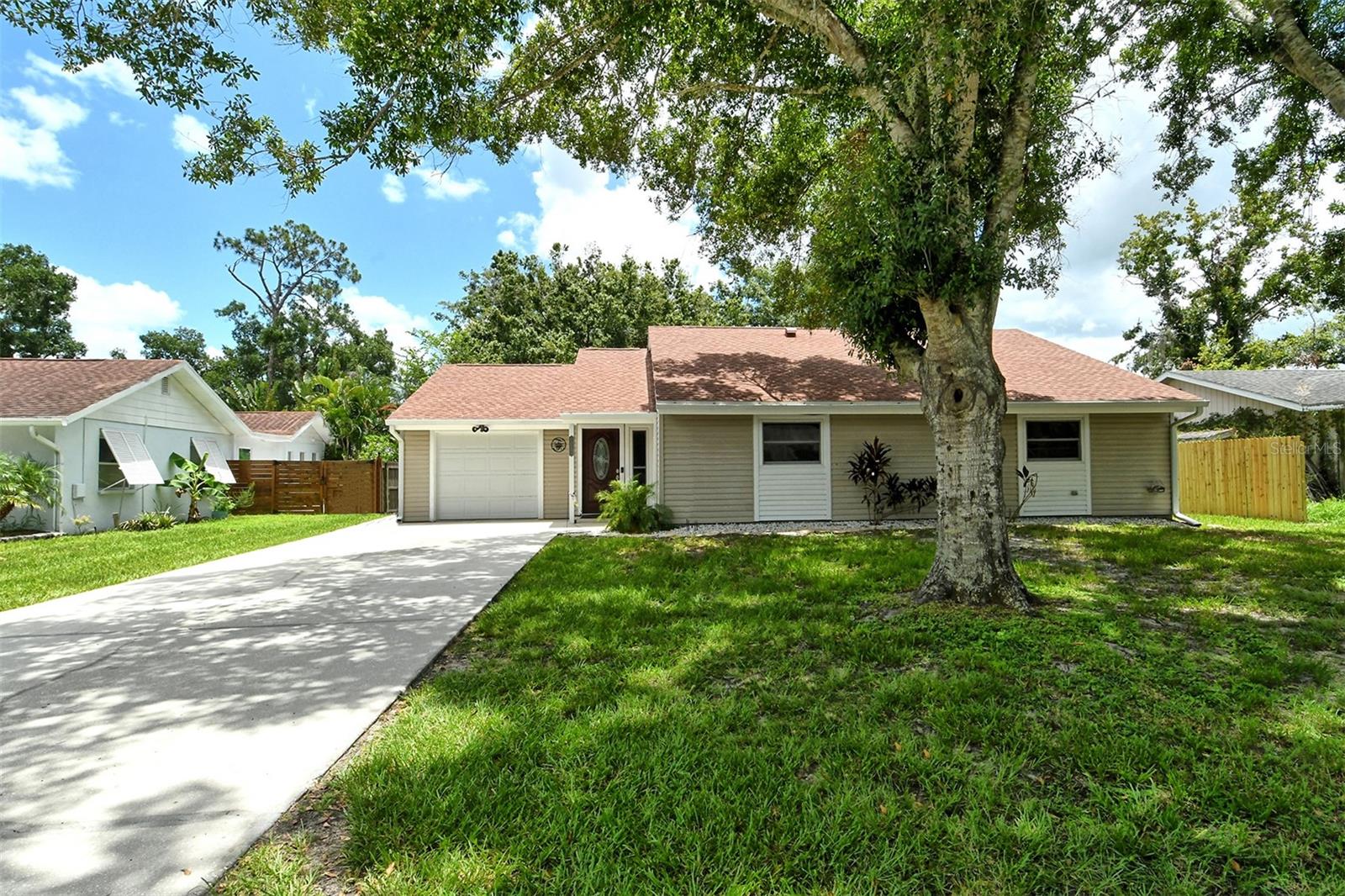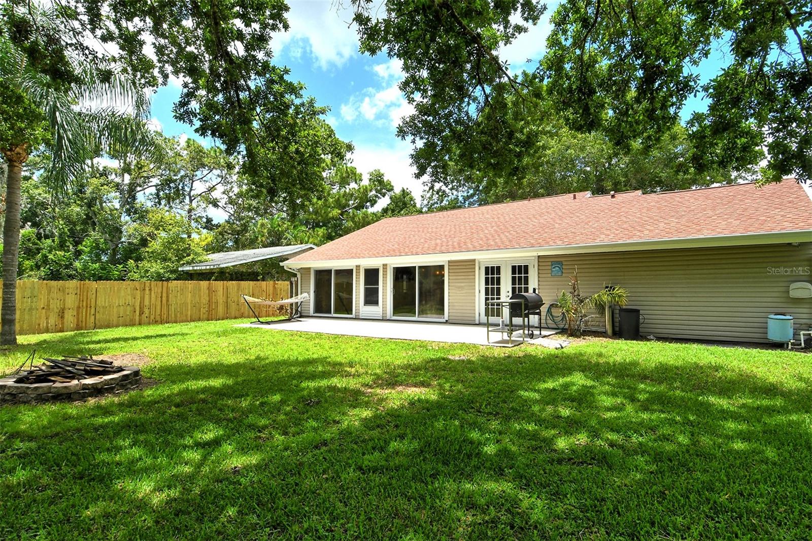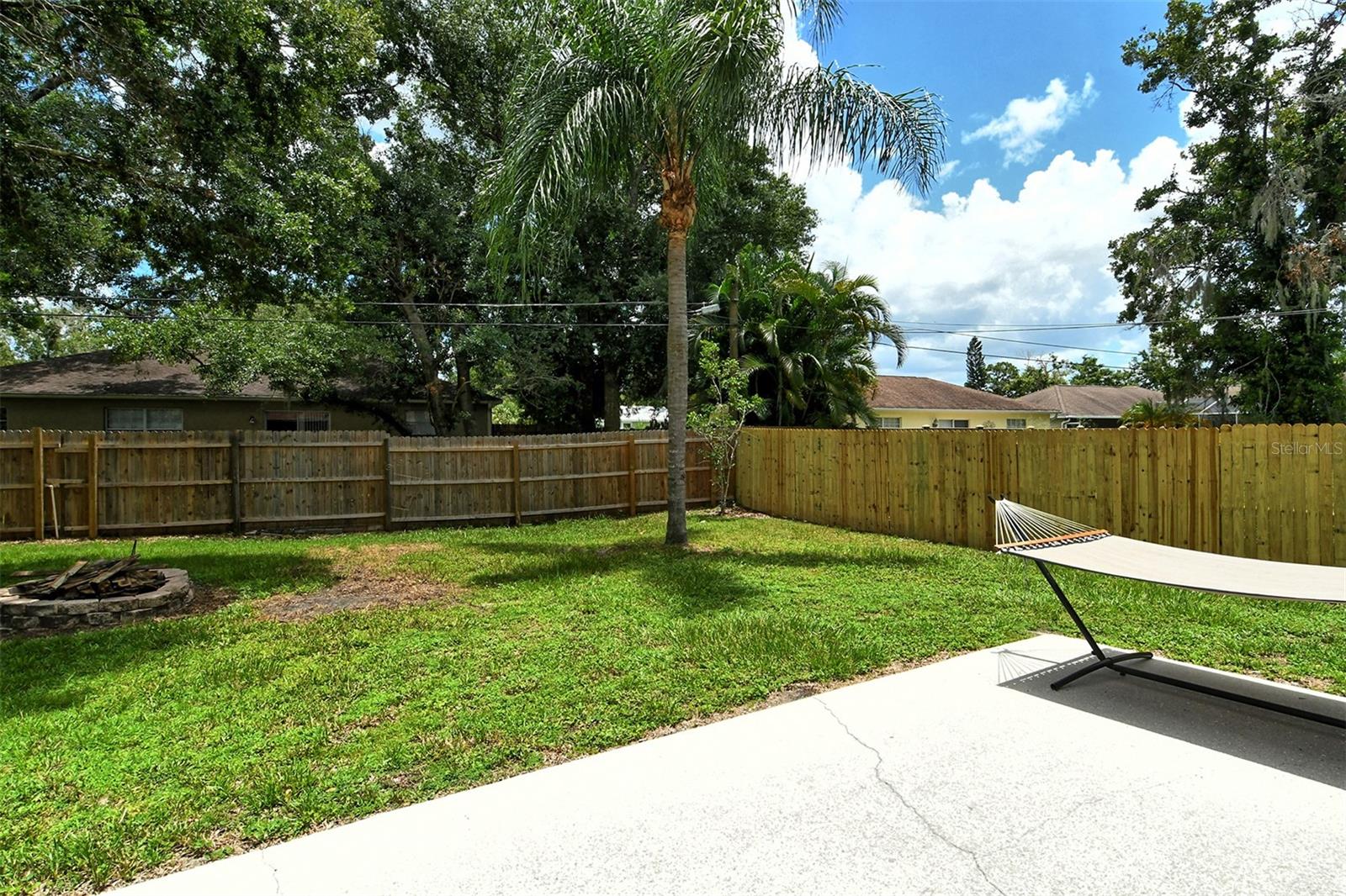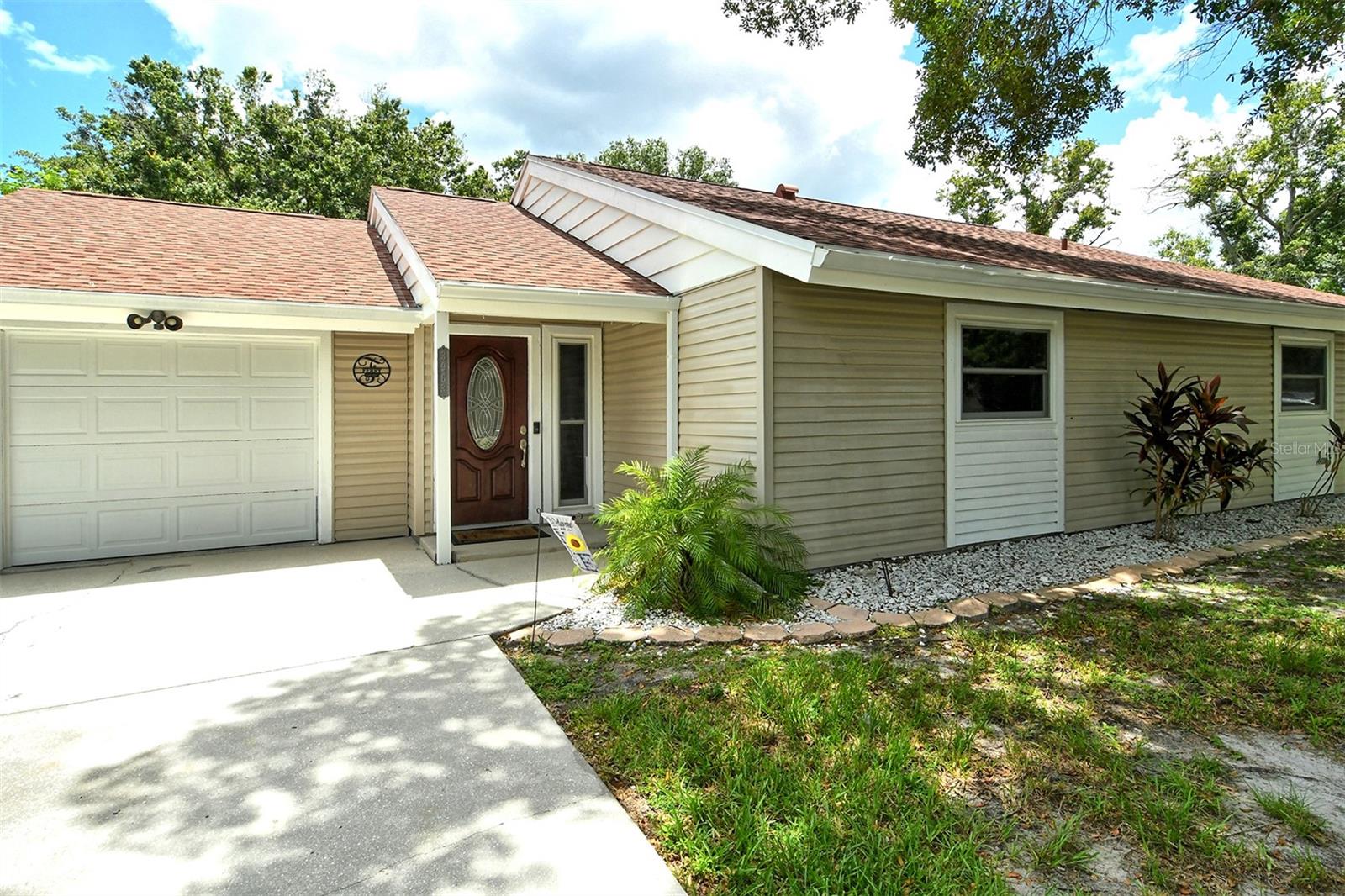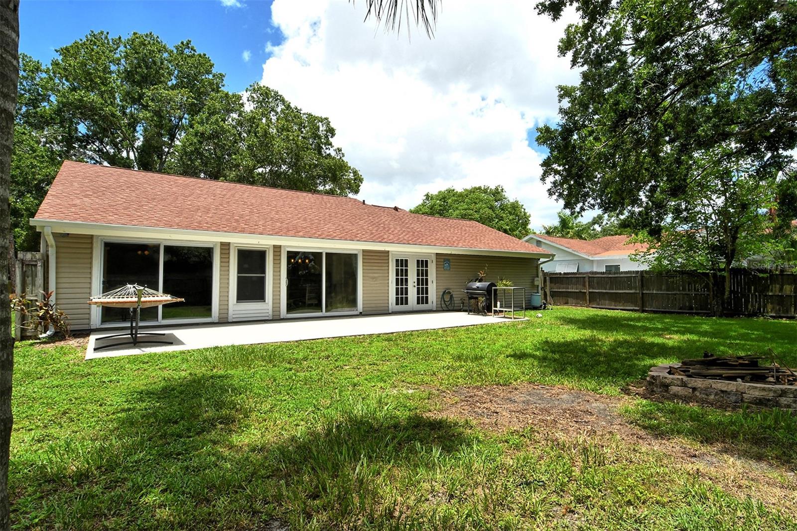 Delightful home is ready for new owners. This 3BR/2BA split plan offers tile and laminate throughout. NEW roof, new water heater, updated baths, and 3-year young stainless appliances. French doors from primary bedroom lead to back porch. The oversized 1 car garage offers a new garage door and a semi-finished area that could be converted to a nursery or reading room with door off the primary bedroom. The back yard is fabulous with oversized concrete patio, fire pit and wood fence. Close to I-75, shopping, banking, restaurants, Home Depot and more.