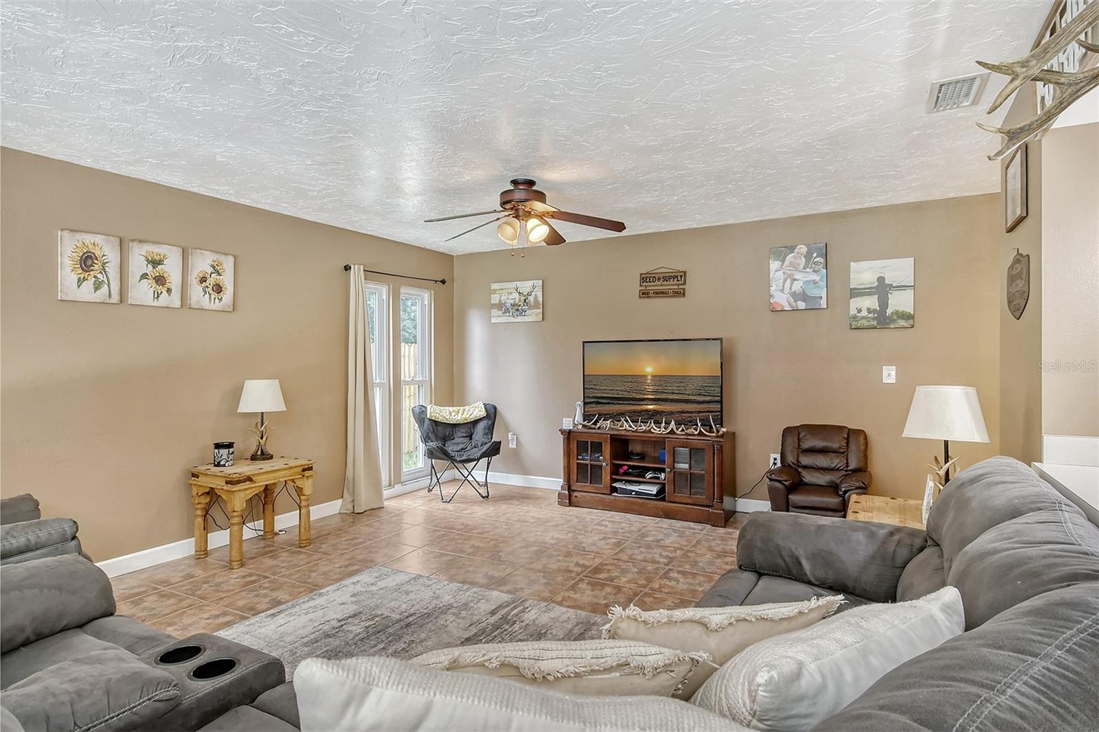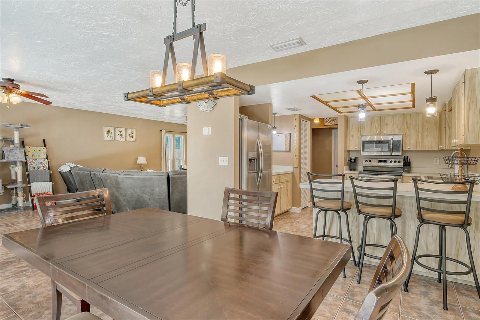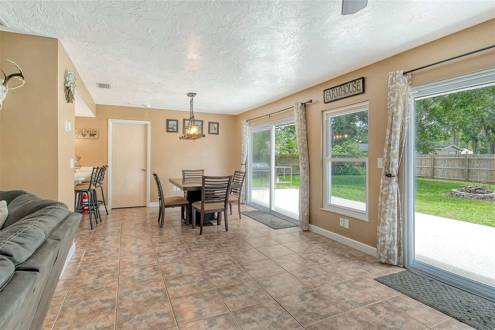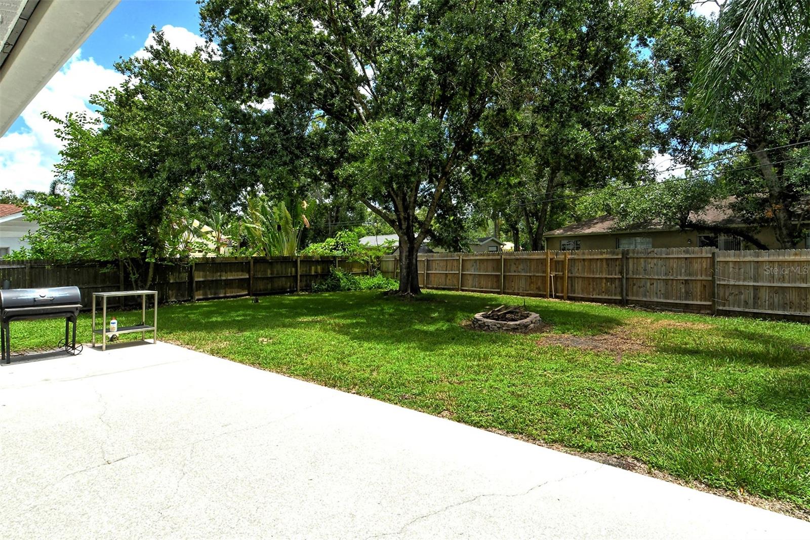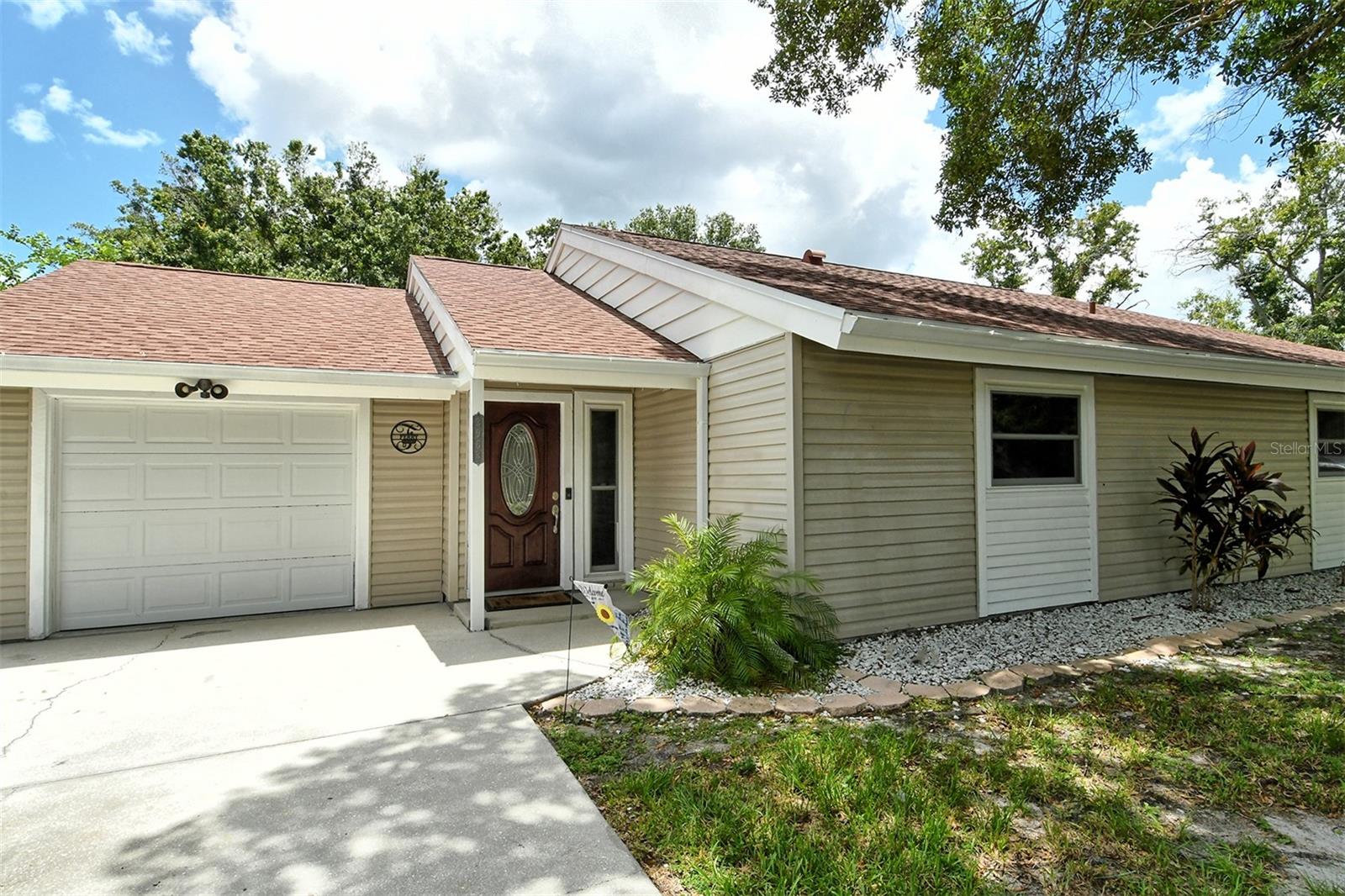 Delightful home is ready for new owners. This 3BR/2BA split plan offers tile and laminate throughout. NEW roof, new water heater, updated baths, and 3-year young stainless appliances. French doors from primary bedroom lead to back porch. The oversized 1 car garage offers a new garage door and a semi-finished area that could be converted to a nursery or reading room with door off the primary bedroom. The back yard is fabulous with oversized concrete patio, fire pit and wood fence. Close to I-75, shopping, banking, restaurants, Home Depot and more.