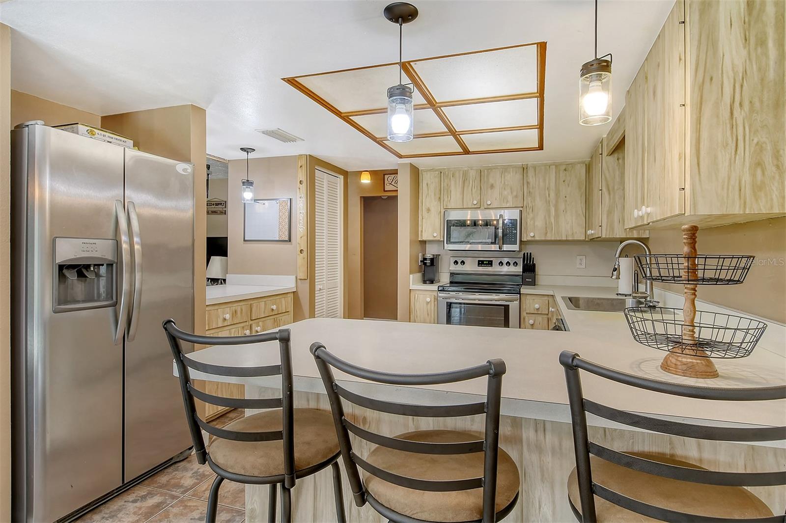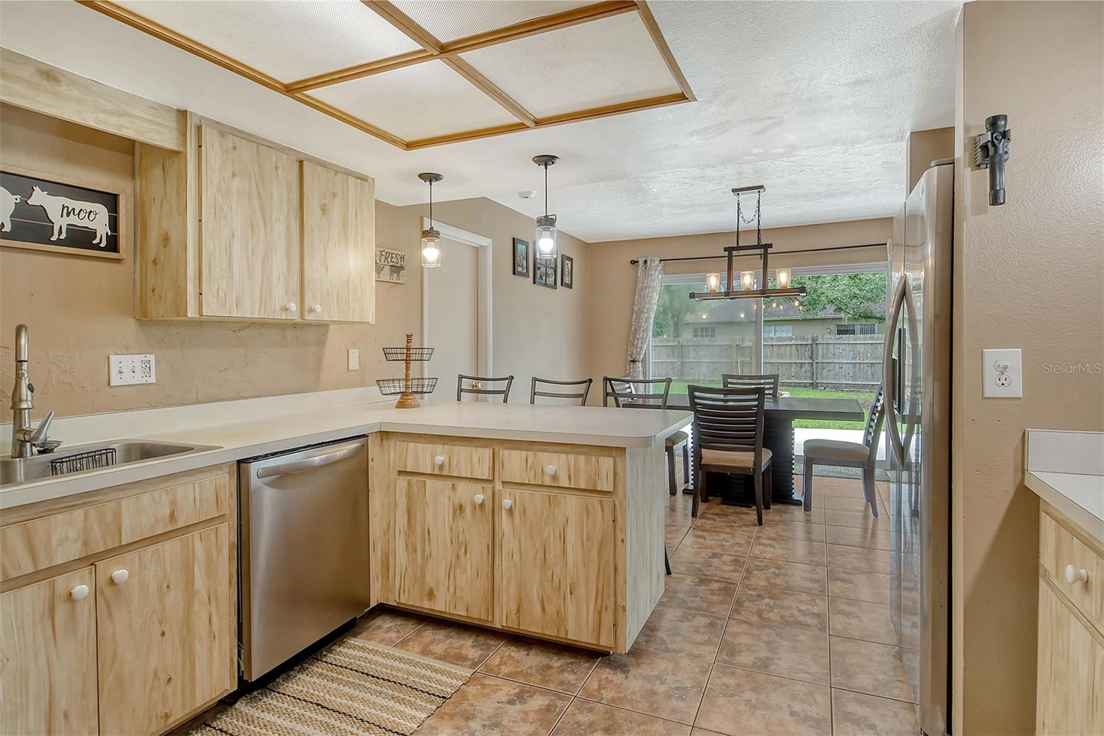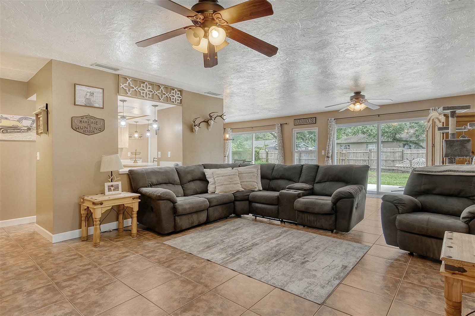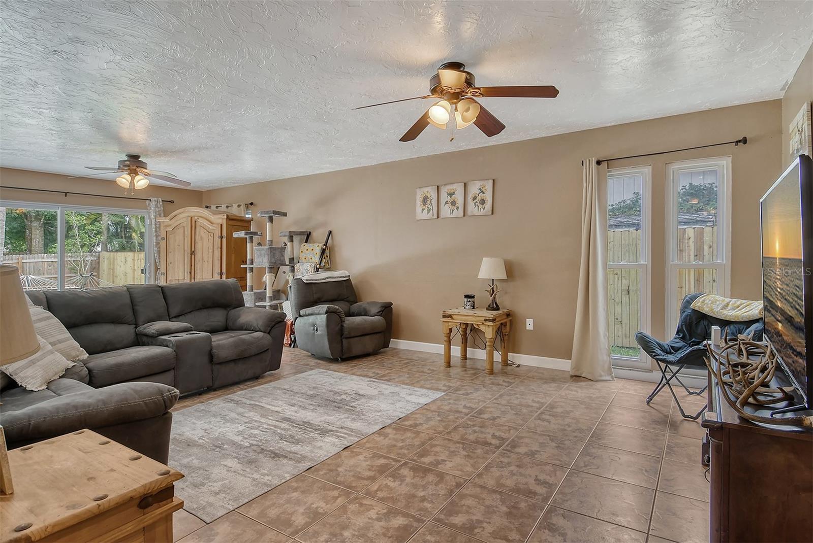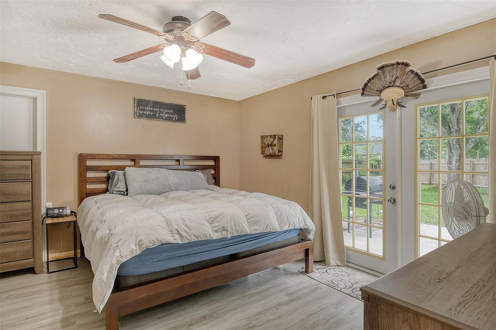 Delightful home is ready for new owners. This 3BR/2BA split plan offers tile and laminate throughout. NEW roof, new water heater, updated baths, and 3-year young stainless appliances. French doors from primary bedroom lead to back porch. The oversized 1 car garage offers a new garage door and a semi-finished area that could be converted to a nursery or reading room with door off the primary bedroom. The back yard is fabulous with oversized concrete patio, fire pit and wood fence. Close to I-75, shopping, banking, restaurants, Home Depot and more.