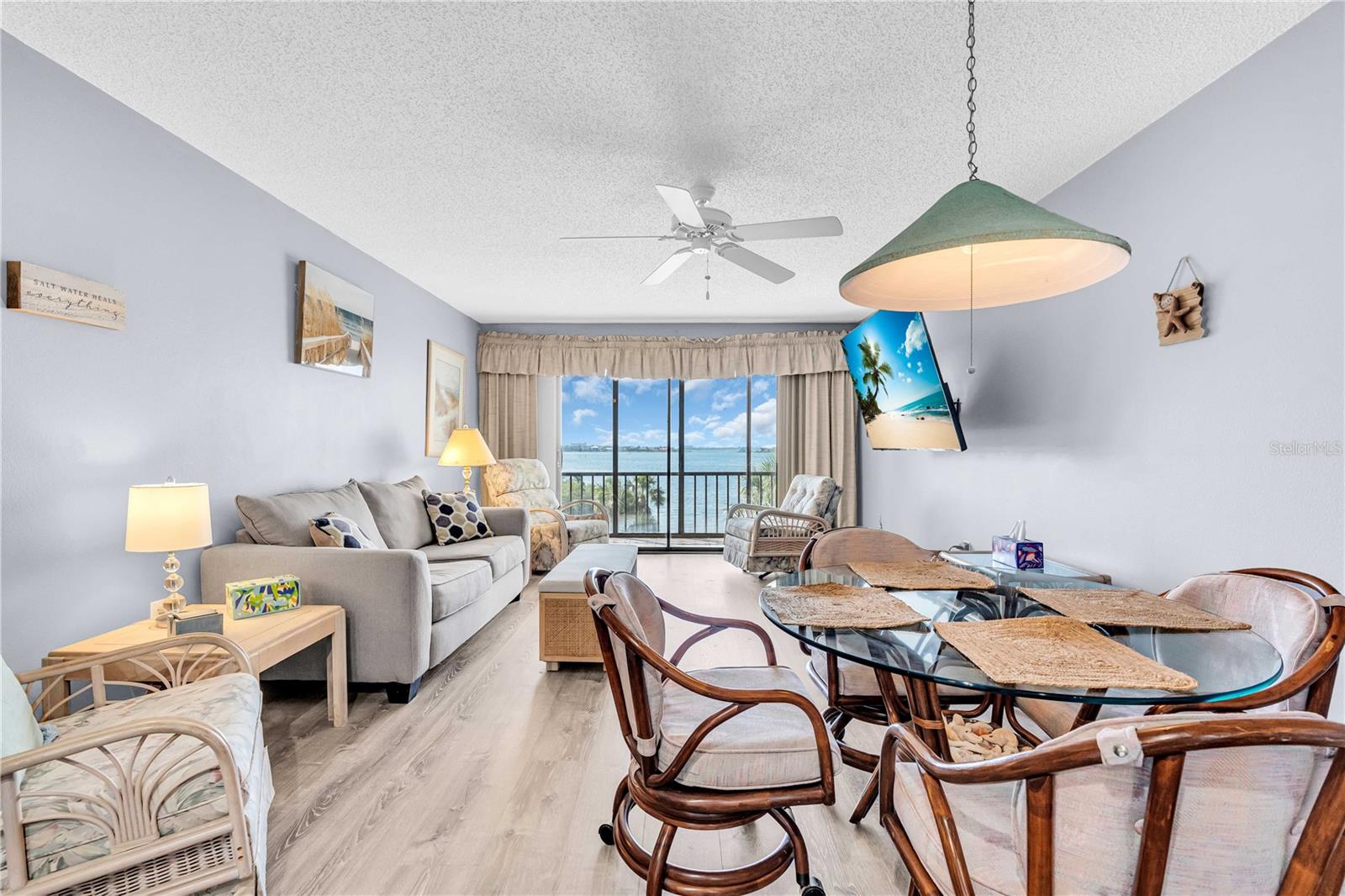Move in ready. New appliances. Fully furnished. Water views from every room. The feeling of being at your very own piece of heaven on earth. Constant smells of the fresh ocean breezes. Unrestricted ocean water views and beautiful sunsets. This is the best building in Castel Del Mare offering the most beautiful views and the utmost privacy in the entire complex as you are overlooking the Intracoastal Waterway from the kitchen, living room, master bedroom and lanai! The 3rd floor condo, elevator accessible, is a fully furnished with one bedroom and one bath. The full-length lanai comes with storm sliding glass doors. Updated new central air conditioner and new hot water heater. Additionally, there is a covered designated parking spot with an attached storage unit. This condo is turnkey move in ready. This complex has been nicknamed "The Jewel of the Bay" because of the super convenient location. It serves as your entry way to Siesta Key! Just a short walk or ride over to the best beaches, world class restaurants and the finest shopping in all of Sarasota. It is move in ready whether you are looking to make this your "Vacation Getaway" or your full-time residence. It is the best of the best! Turnkey bring your suitcase. Make your appointment today to see this once in a lifetime affordable opportunity.