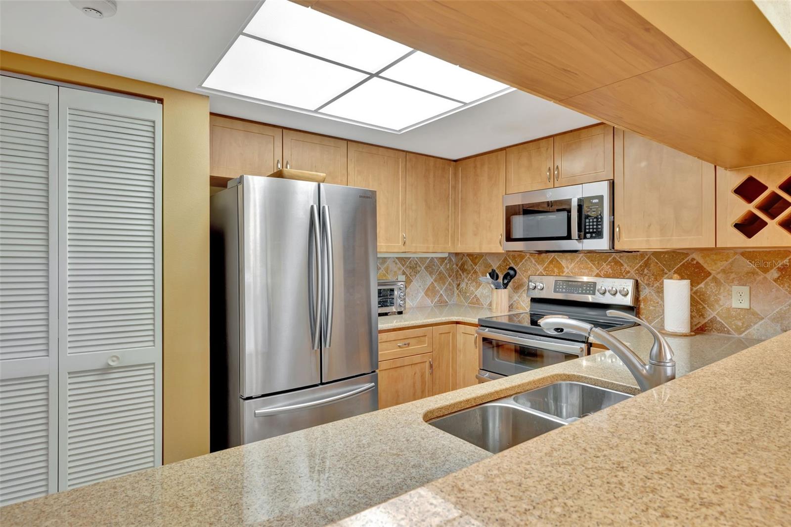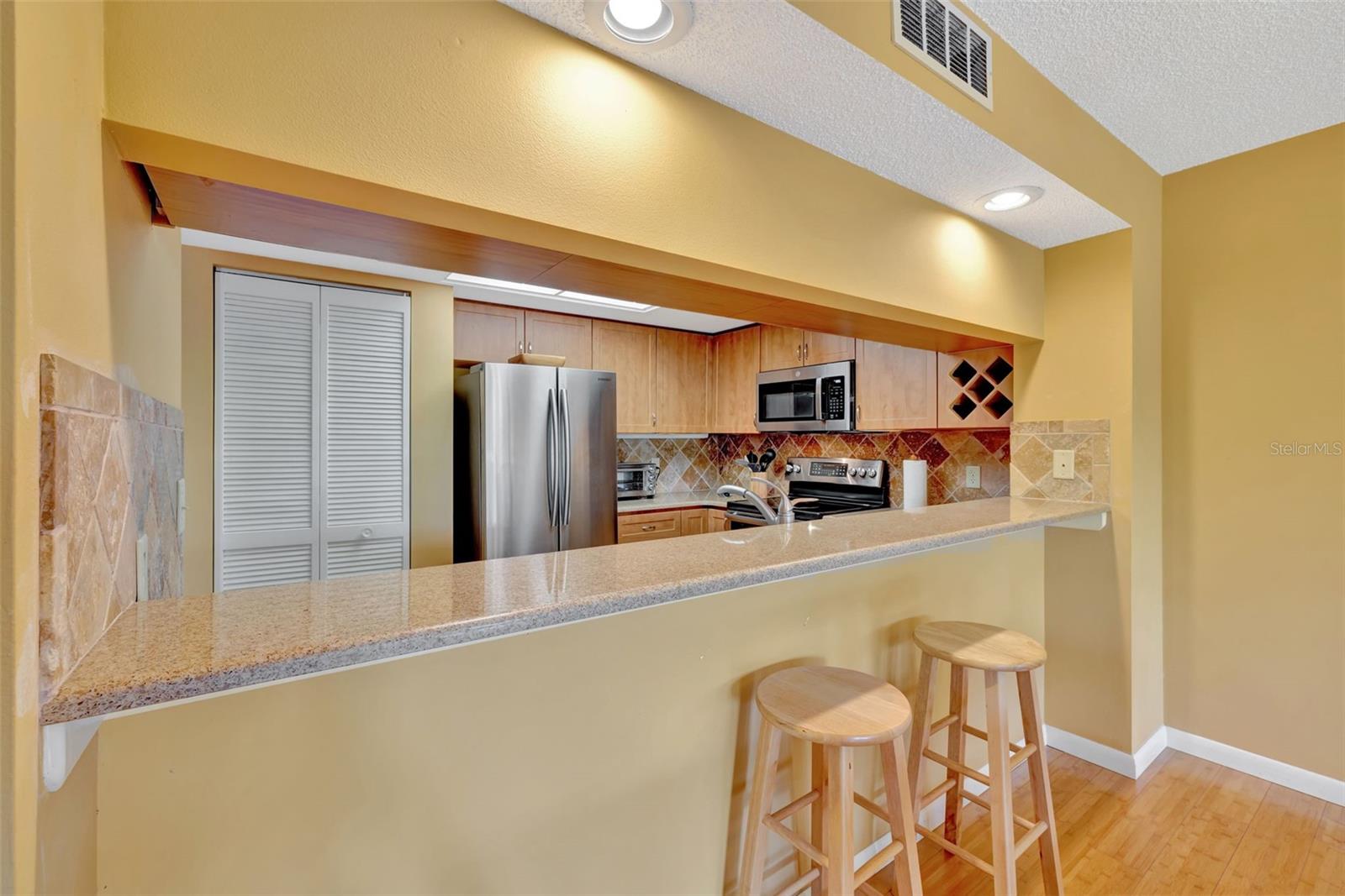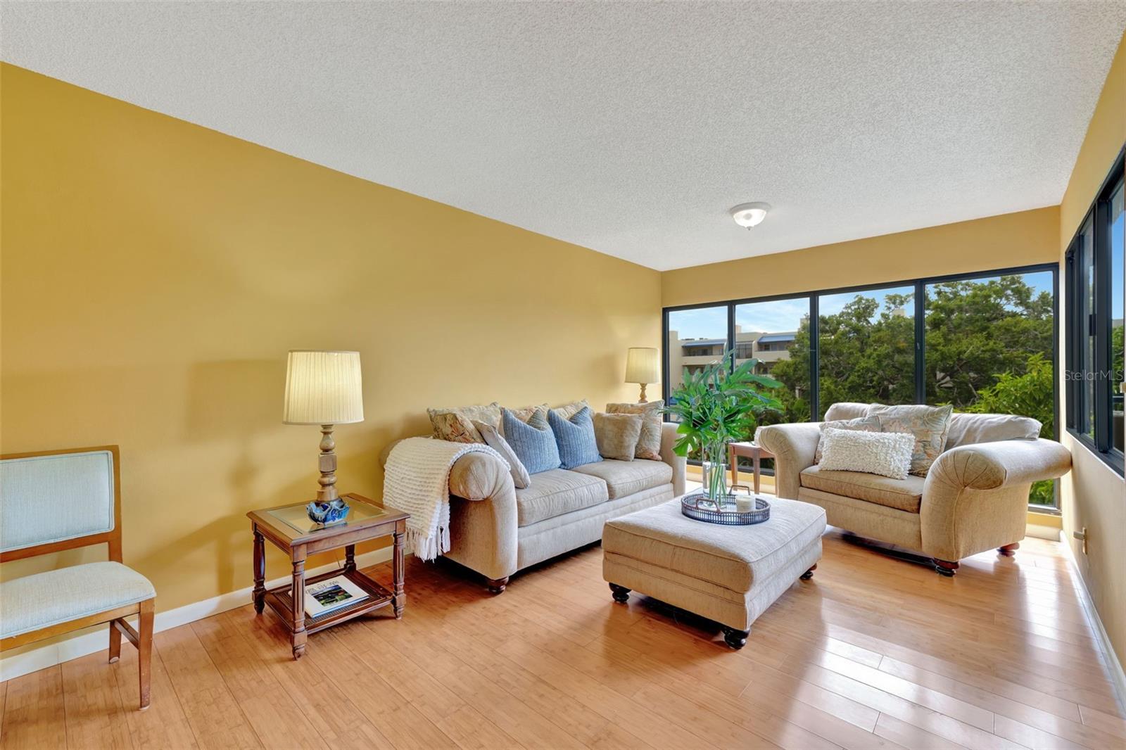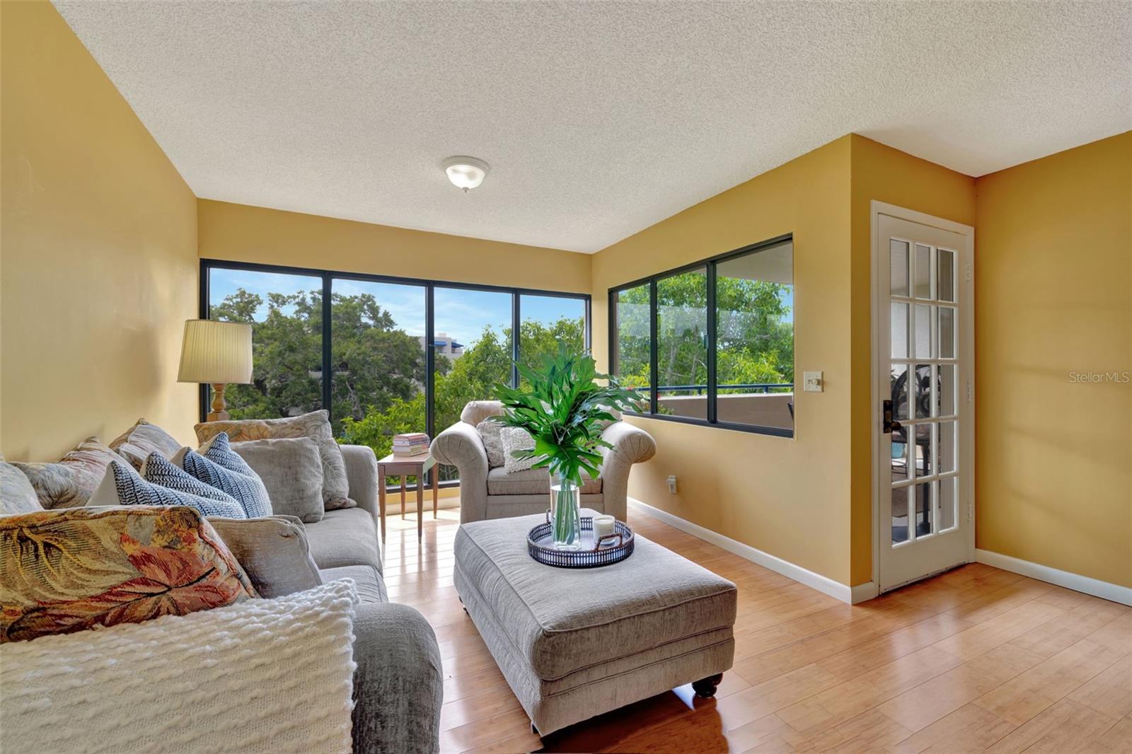 Welcome to Central Park! Milestone inspections passed. NO upcoming assessments. Home warranty included for even MORE peace of mind! Nestled along the Hudson Bayou and plentiful lush Banyan and Palms, you’ll enjoy an urban lifestyle in this 6 acre, park-like setting. This pet-friendly community is only a short distance to experiencing the very best of Sarasota. Beach lovers will enjoy the easy access and close proximity to Lido, Longboat and the world-famous Siesta Key Beach. Launch your kayak or SUP off Central Park's private dock, and paddle just a short distance to the open waters of Sarasota Bay. This 2 bedroom, 2 bath open floor plan offers plentiful natural light with large west-facing windows. Two separate doorways lead to a private balcony for a serene and rare outdoor living space with garden and slight bayou views. This unit features engineered hardwood and ceramic tile floors throughout, granite countertops and stainless steel appliances. Enter the balcony thru the living area or the primary suite, also featuring dual sinks and a walk-in closet. You'll also love the convenience of an in-unit washer and dryer. Head to the pool area for year-round heated swimming and full days of sunshine. Grills and table seating are perfect for entertaining and dining Al Fresco. Your under-building parking space is just steps away from the elevator, and bicycle racks and storage round out the amenities in this highly sought-after Sarasota location. Furnishing included but optional.