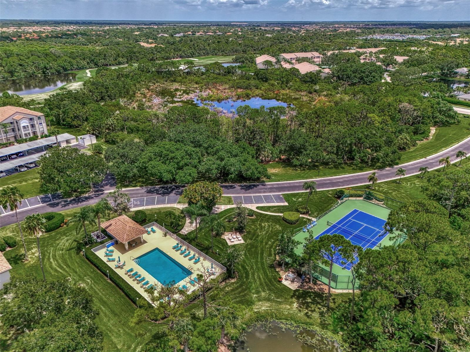 Beautiful Ground Floor Condo overlooking the 8th Fairway of the Stoneybrook Golf Course. Price Reduction don't miss this opportunity. Ready for immediate occupancy. Move in ready! Open floor plan with split bedroom floor plan. Kitchen has granite countertops, wood cabinetry, newer refrigerator and dishwasher. Brand new garbage disposal, newer dishwasher and master bath shower has upgraded Tile. High end sculped carpet in the living/dining room area. Glass enclosed lanai with remote control sunshade blinds. Carport Parking space is just steps away from your unit. Extra Storage Closet for your bicycles. Membership to Stoneybrook Golf and Country Club required. The amenities include; Golf, Tennis, Pickleball, Dining, Pool, Fitness and club activities. Play unlimited Golf and Tennis with the Membership to this very active Club. This iis a gated community only a short distance from Siesta Key and offers easy access to beaches, shopping and restaurants. Golf Course was recently renovated. Golf Course Assessment is paid in Full by Seller. Hurry this is the best price in Stoneybrook!!