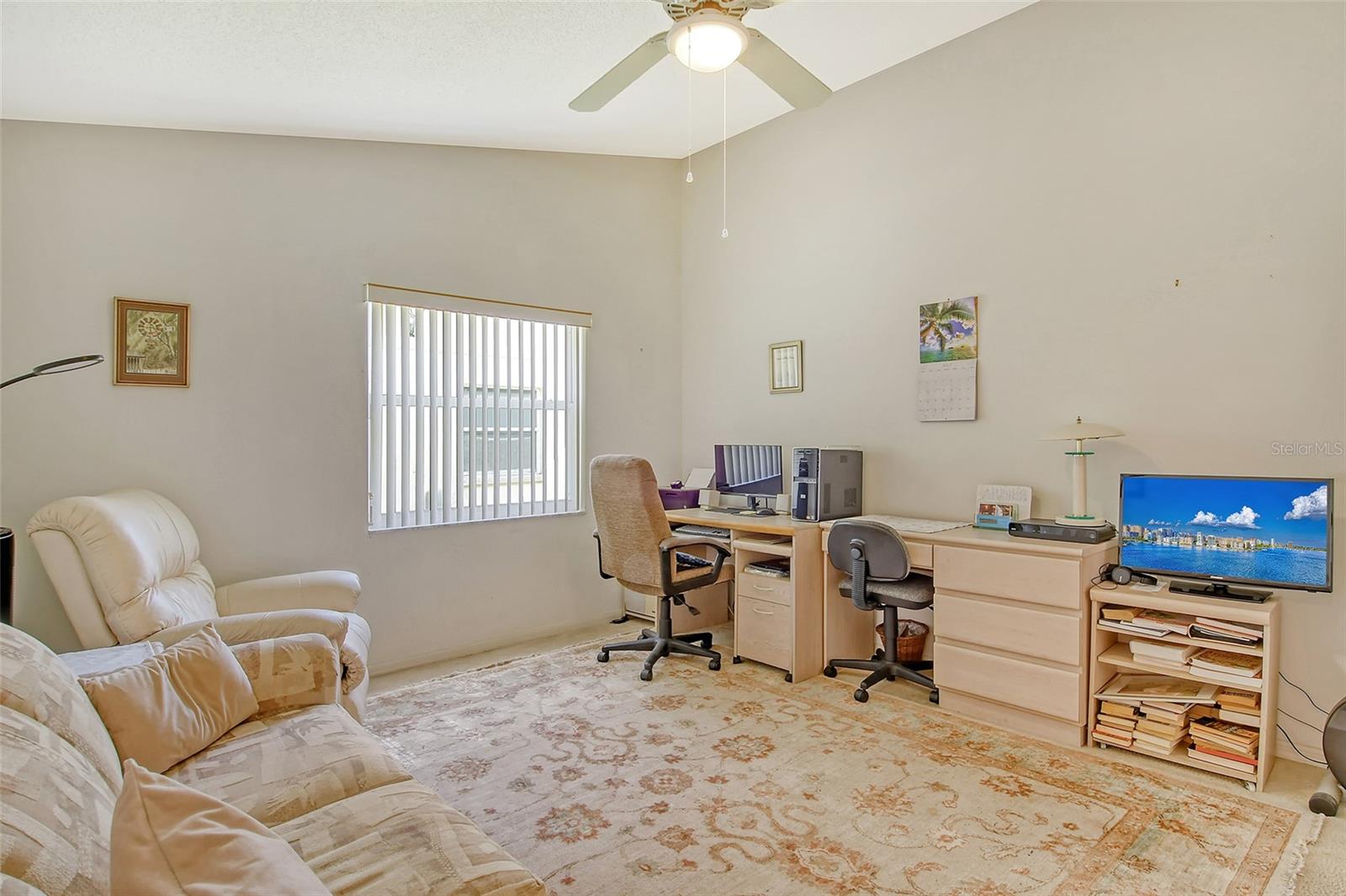 Welcome to the community of Del Sol Village. This great pool home is currently used as a 2-bedroom, 2-bathroom home, plus a den/office and a 2-car-garage. Well priced and ready for a new owner. The completely open floor plan features beautiful, vaulted ceilings and the primary bedroom overlooks the pool area, offers his and hers walk-in closets and an ensuite bathroom. Stack the sliding glass doors in the great room for seamless indoor-outdoor flow, leading to the covered patio and the screened caged pool deck. New tile roof in 2020. The easily accessible laundry room just off the kitchen is equipped with an washer and dryer and a utility sink. With low HOA fees compared to other comparable neighborhoods, this home is a rare find in such a prime location. Del Sol Village is ideally situated close to Sarasota’s world-famous beaches, the unparalleled shopping of UTC, and the vibrant downtown area with its restaurants and nightlife. Cultural attractions such as the Ringling Museum, the Van Wezel Performing Arts Hall, Asolo Repertory Theater, and the serenity of Nathan Benderson Park are just minutes away. In addition, easy access to SRQ Int'l Airport and the excellent pickleball courts across the street at Longwood Run Park. Don’t miss out on this incredible opportunity to own a beautifully home in one of Sarasota’s best neighborhoods. Schedule your showing today!