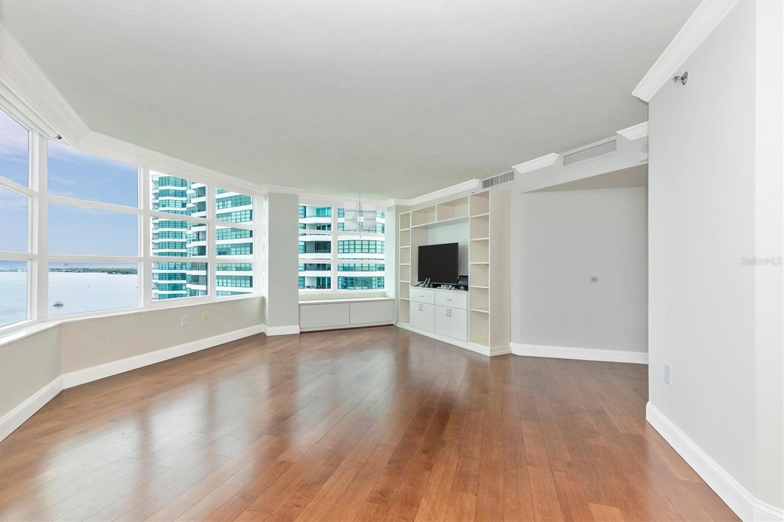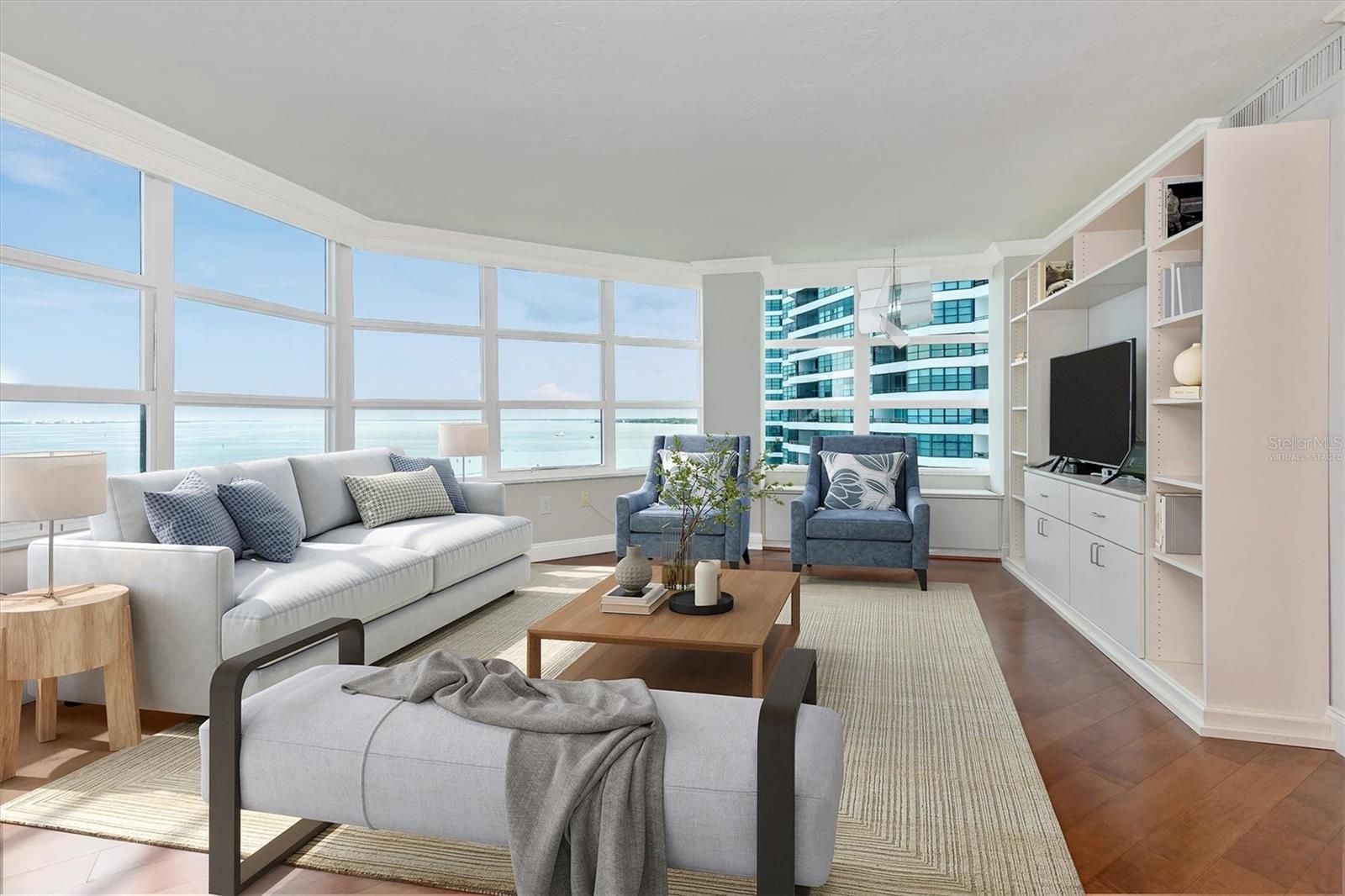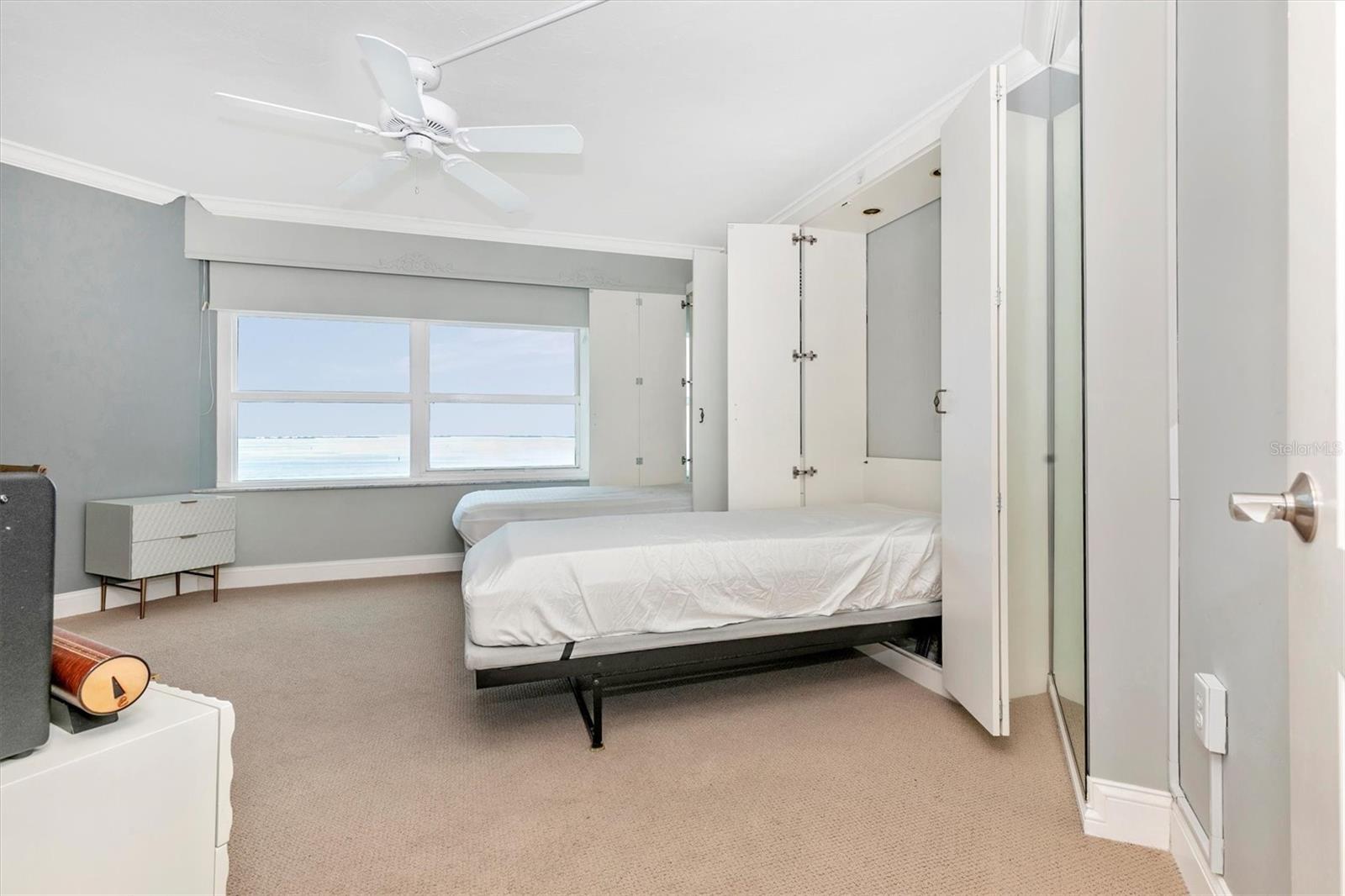 Premier 10th-Floor Condo with Stunning Water Views. Introducing a rare gem in the coveted Condo on the Bay community—an impeccably maintained 10th-floor home featuring breathtaking water views. This exquisite two-bedroom (and THIS UNIT 2nd BEDROOM HAS the rare WINDOW VIEWS!!!), two-bath unit offers the ultimate in modern living and convenience, close to Sarasota’s newly acclaimed The Bay park. Enjoy the luxury of a great room design with an open kitchen, ideal for entertaining against the backdrop of spectacular sunsets. The master suite boasts a private terrace, custom walk-in closet, dual sinks, and a spa-like shower. The versatile guest bedroom doubles as an office, with built-in Murphy beds for guests. The community offers unparalleled amenities: bayfront pools, a 24/7 security gatehouse, concierge service, tennis/pickleball courts, boat docking, kayak storage, a fishing pier, fitness rooms, and a social gathering room. Embrace the vibrant community life with morning exercise classes, happy hours, trivia nights, and more. With over 53 acres of parkland, including a concert stage, mangrove walkways, play areas, public gardens, and an event center, this location offers endless opportunities for outdoor enjoyment. Plus, you’re within short distance of downtown Sarasota and a short drive from St. Armand’s Circle, Lido Key, and Siesta Key beaches. Don’t miss this chance to own a premier residence in one of Sarasota’s most desirable locations.