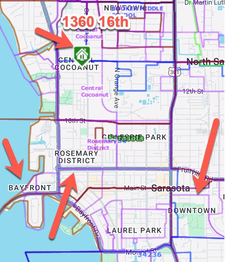 ****ROCKING LOCATION NEAR SARASOTA DOWNTOWN. QUALIFIES FOR THE COMMUNITY LENDING PROGRAM! Located in Valencia Terrace in the Central Coconut district, this location is an urban area that is vibrant, safe, and in the middle of an exciting transformation. 1.6 Miles to downtown Sarasota/Main Street, 2 Blocks to Whitaker Park and the Bay of Sarasota. Close to the The Quay and the Van Wezel Performing Arts Center. This house is situated just north of the Sarasota downtown area called "the Rosemary District". 7 minutes to the wonderful airport, SRQ, only 10 minutes drive to St. Armand's Circle and Lido Beach. THE HOME IS SITUATED IN THE HEART OF IT-- ALL THE CULTURAL COAST/SARASOTA HAS -- RIGHT OUTSIDE YOUR FRONT DOOR. ****EXTRA LONG DRIVE WITH ROOM FOR BOAT, RV, and guests. No flood zone, no CDD and no HOA. House lives so large with quaint features. Both bedrooms easily fit a king. ****2 bedroom 1 bath beautiful historic bungalow that has been tastefully and LOVE-enly upgraded from top to bottom. Luxury Vinyl Panels, stone counters, tons of natural light and new piping in baths and kitchen. This home has an electric stove but is piped for natural gas. Back concrete pad for garage-- ready to go. This home has been upgraded with taste. *****HUGE INCOME POTENTIAL: Make it your own Air BNB for great income. Tons of room for pool or additional add-on space.