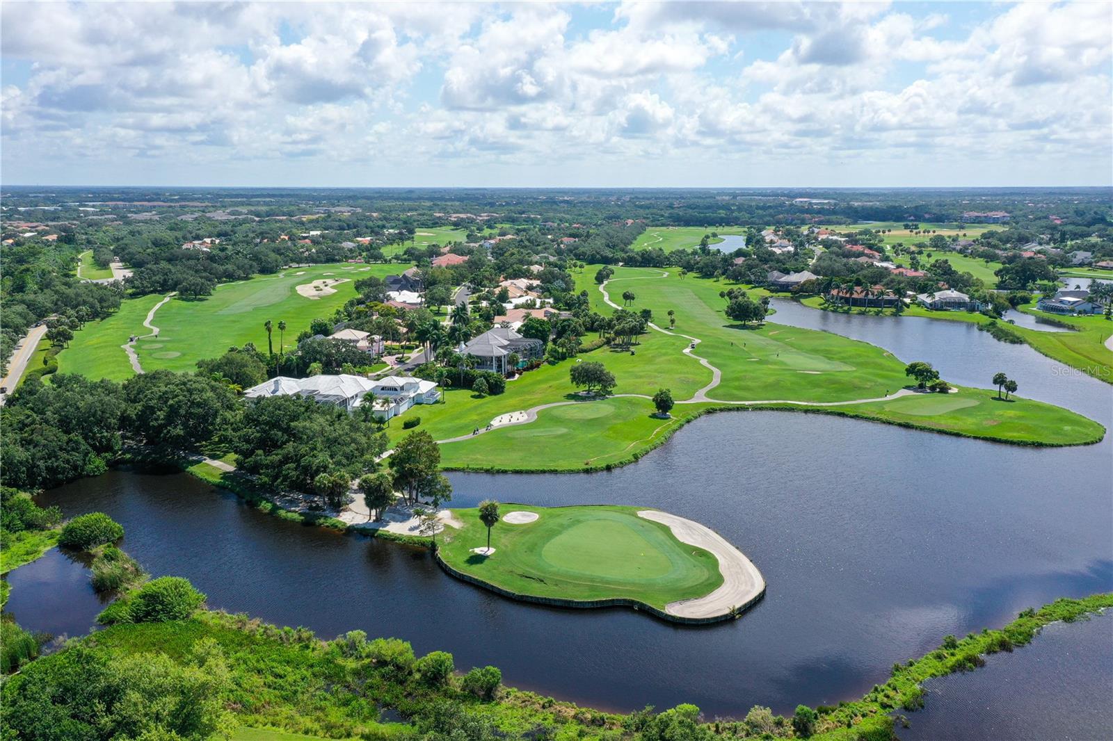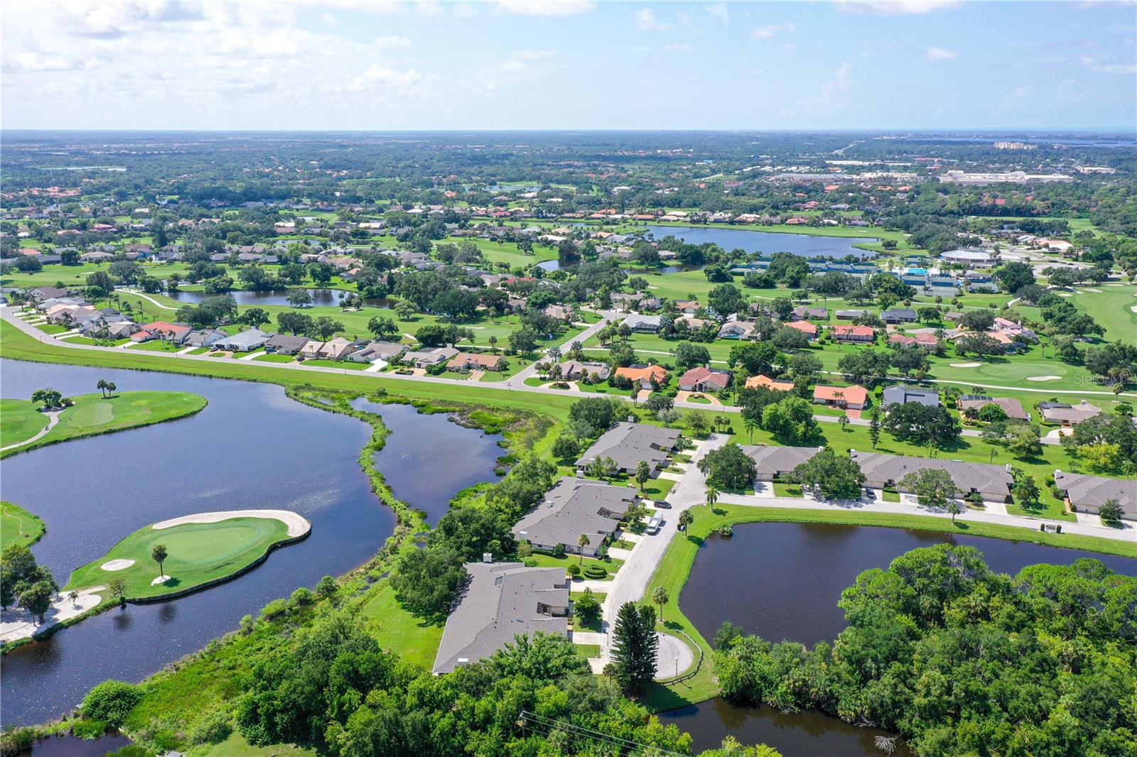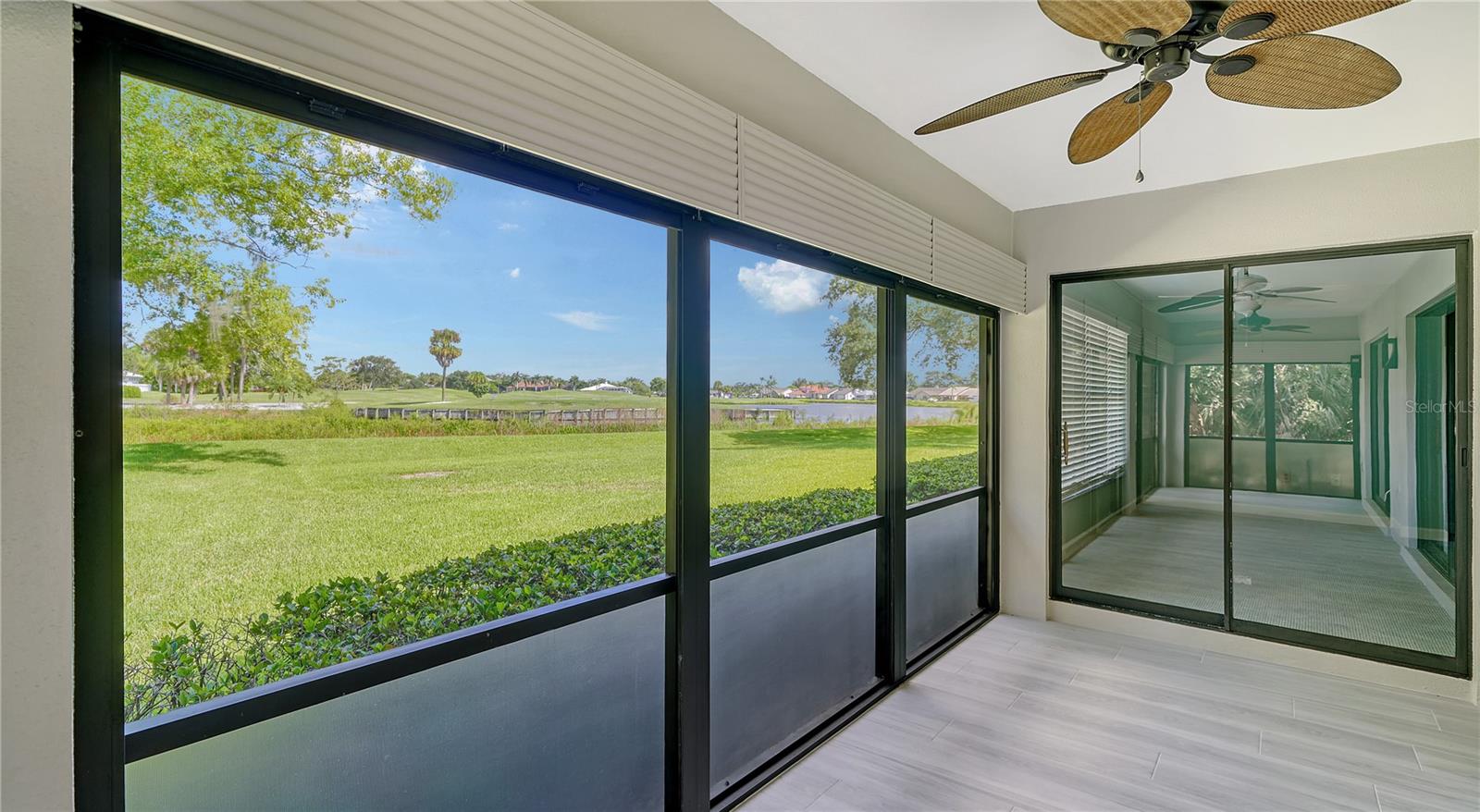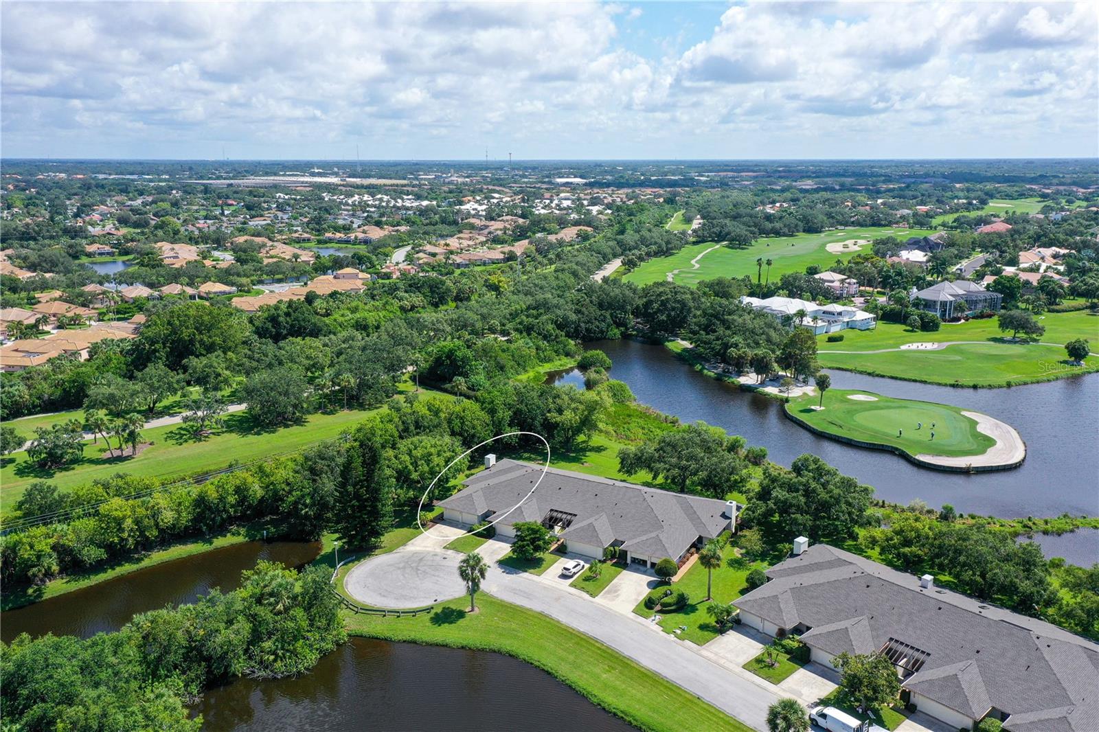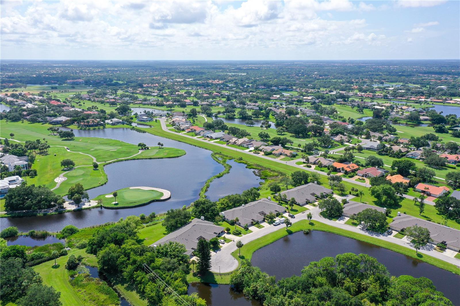 One or more photo(s) has been virtually staged. This is the most private location in the neighborhood! A truly rare find...Only here can you find long views of the lake which some consider a bird sanctuary, a view of the signature hole of Prestancia TPC golf course & wildlife abounding throughout the community! This 2 car garage, one level 3 bedroom (or study) 2 bath home is approximately 2200 square feet of immaculate modern luxury. The amazing privacy & the stunning views along with the impressive renovations create a palette ready for the creative you! Freshly painted inside and out, this light & bright open floor plan with a lot of attention to design & detail is so inviting. All this & nature’s backdrop calls you home and makes you want to stay. The dazzling dream kitchen is adorned with beautiful quartz countertops, attractive tile backsplash & GE Profile appliances. This end unit villa has windows on 3 sides bring light form the east in the morning and the west in the evening. The oversized primary bedroom suite encompasses the alluring views and in addition provides a sitting (or office) area to take it all in. The view is forever changing with so much to see. Grab your binoculars, sit back and be entertained! The ensuite bathroom provides an abundance of storage cabinets & drawers as well as dual sinks. The very tasteful walk-in shower with diamond coated glass provides an extra sparkle! You will find plenty of storage in the walk-in closet. This villa has a “split-plan” where the large guest bedroom is at the opposite end of the living space. It too, is a large bedroom with a walk-in closet. This quiet room has a view of another lake and a plethora of wildlife coming and going all day long. The guest bathroom has been updated with tasteful tiling & fixtures. The study or third bedroom provides ample room to spread out and also to use a second guest bedroom when needed, with double entry doors that can be opened up to the rest of the living area or closed for privacy. The new porcelain tiles and screens on the lanai & in the breezeway front entry add another quality touch to this vibrant living space. The air conditioning unit was replaced in 2020. New gutters & gutter guards were installed in 2022. A complete home water filtration system was installed in 2022. Hurricane shutters were new in 2023. The garage has a newly textured epoxy coating floor, cabinetry & a sink. Ready to move in! A delightful home to make your own!