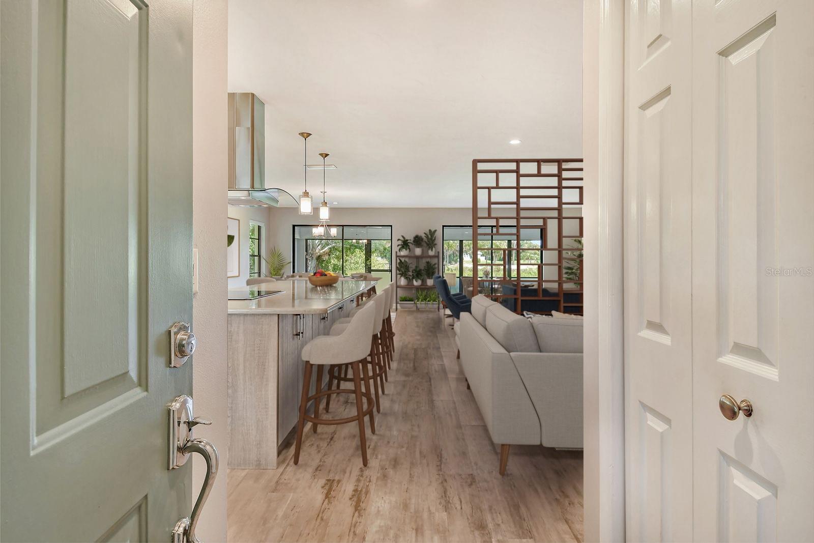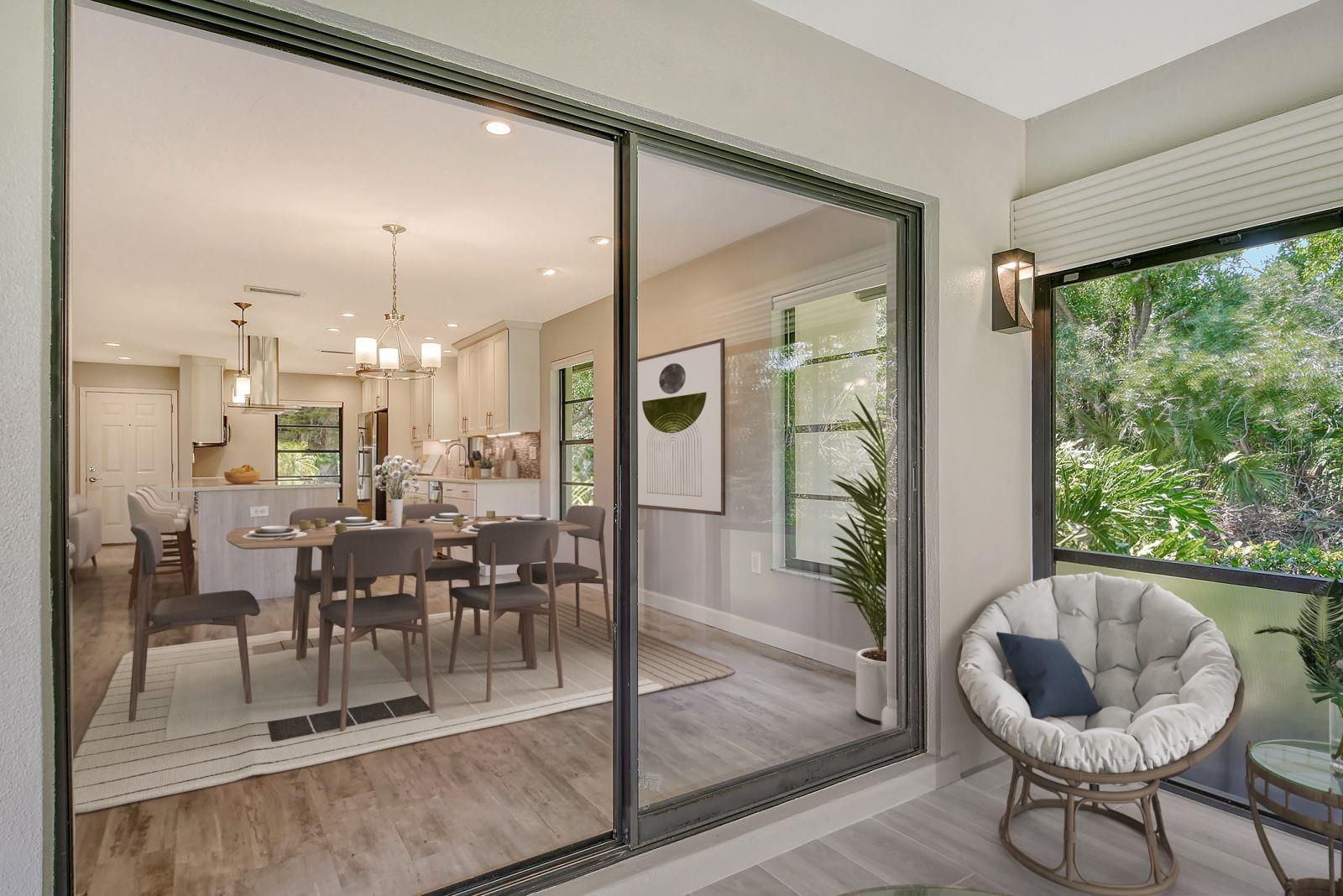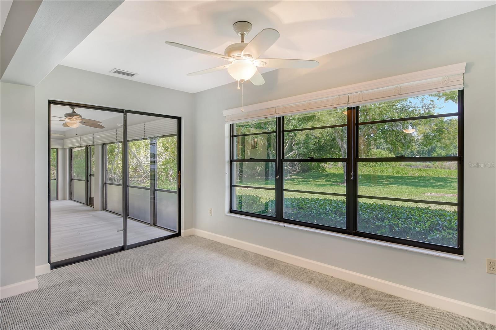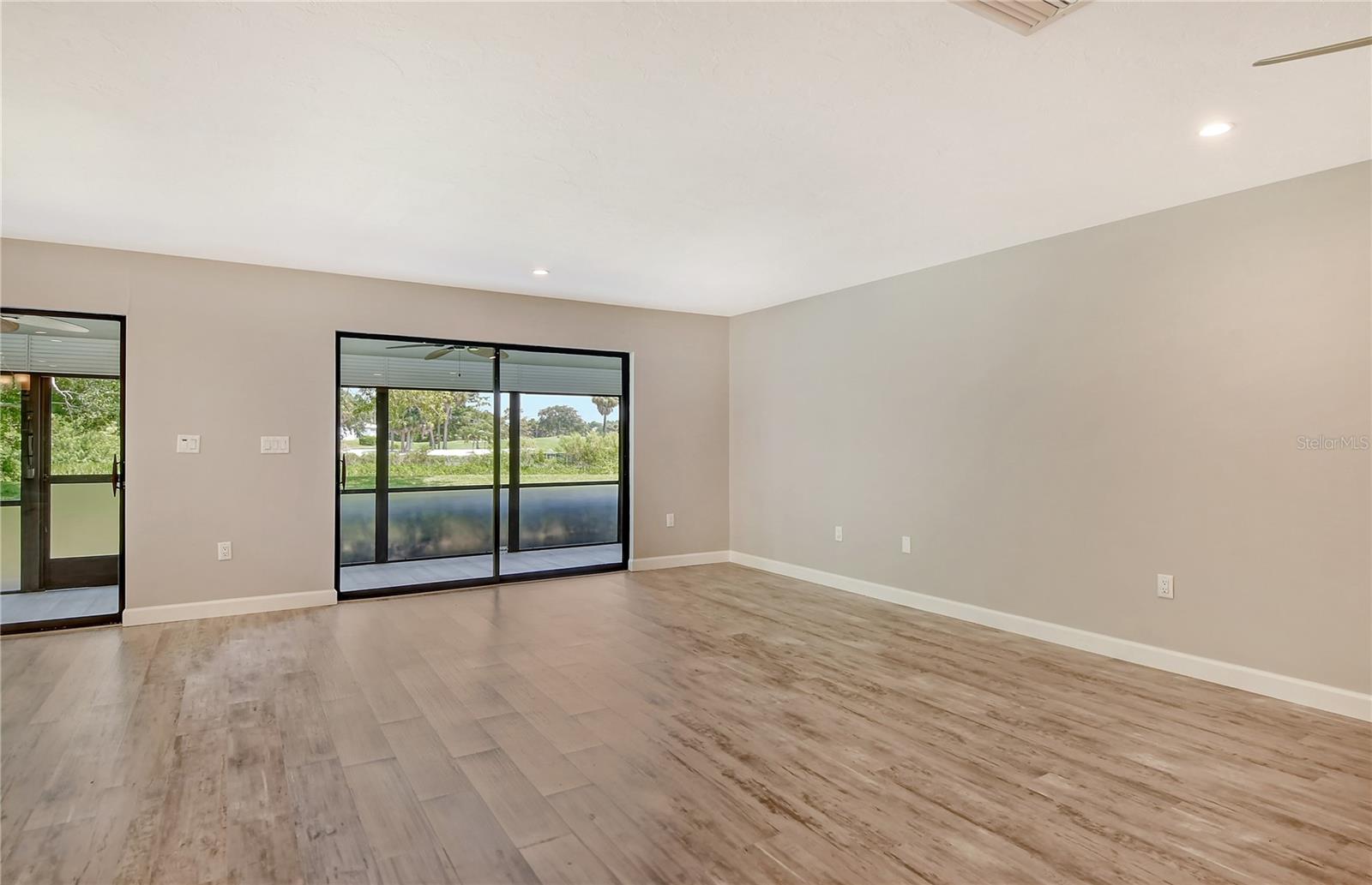 One or more photo(s) has been virtually staged. This is the most private location in the neighborhood! A truly rare find...Only here can you find long views of the lake which some consider a bird sanctuary, a view of the signature hole of Prestancia TPC golf course & wildlife abounding throughout the community! This 2 car garage, one level 3 bedroom (or study) 2 bath home is approximately 2200 square feet of immaculate modern luxury. The amazing privacy & the stunning views along with the impressive renovations create a palette ready for the creative you! Freshly painted inside and out, this light & bright open floor plan with a lot of attention to design & detail is so inviting. All this & nature’s backdrop calls you home and makes you want to stay. The dazzling dream kitchen is adorned with beautiful quartz countertops, attractive tile backsplash & GE Profile appliances. This end unit villa has windows on 3 sides bring light form the east in the morning and the west in the evening. The oversized primary bedroom suite encompasses the alluring views and in addition provides a sitting (or office) area to take it all in. The view is forever changing with so much to see. Grab your binoculars, sit back and be entertained! The ensuite bathroom provides an abundance of storage cabinets & drawers as well as dual sinks. The very tasteful walk-in shower with diamond coated glass provides an extra sparkle! You will find plenty of storage in the walk-in closet. This villa has a “split-plan” where the large guest bedroom is at the opposite end of the living space. It too, is a large bedroom with a walk-in closet. This quiet room has a view of another lake and a plethora of wildlife coming and going all day long. The guest bathroom has been updated with tasteful tiling & fixtures. The study or third bedroom provides ample room to spread out and also to use a second guest bedroom when needed, with double entry doors that can be opened up to the rest of the living area or closed for privacy. The new porcelain tiles and screens on the lanai & in the breezeway front entry add another quality touch to this vibrant living space. The air conditioning unit was replaced in 2020. New gutters & gutter guards were installed in 2022. A complete home water filtration system was installed in 2022. Hurricane shutters were new in 2023. The garage has a newly textured epoxy coating floor, cabinetry & a sink. Ready to move in! A delightful home to make your own!
