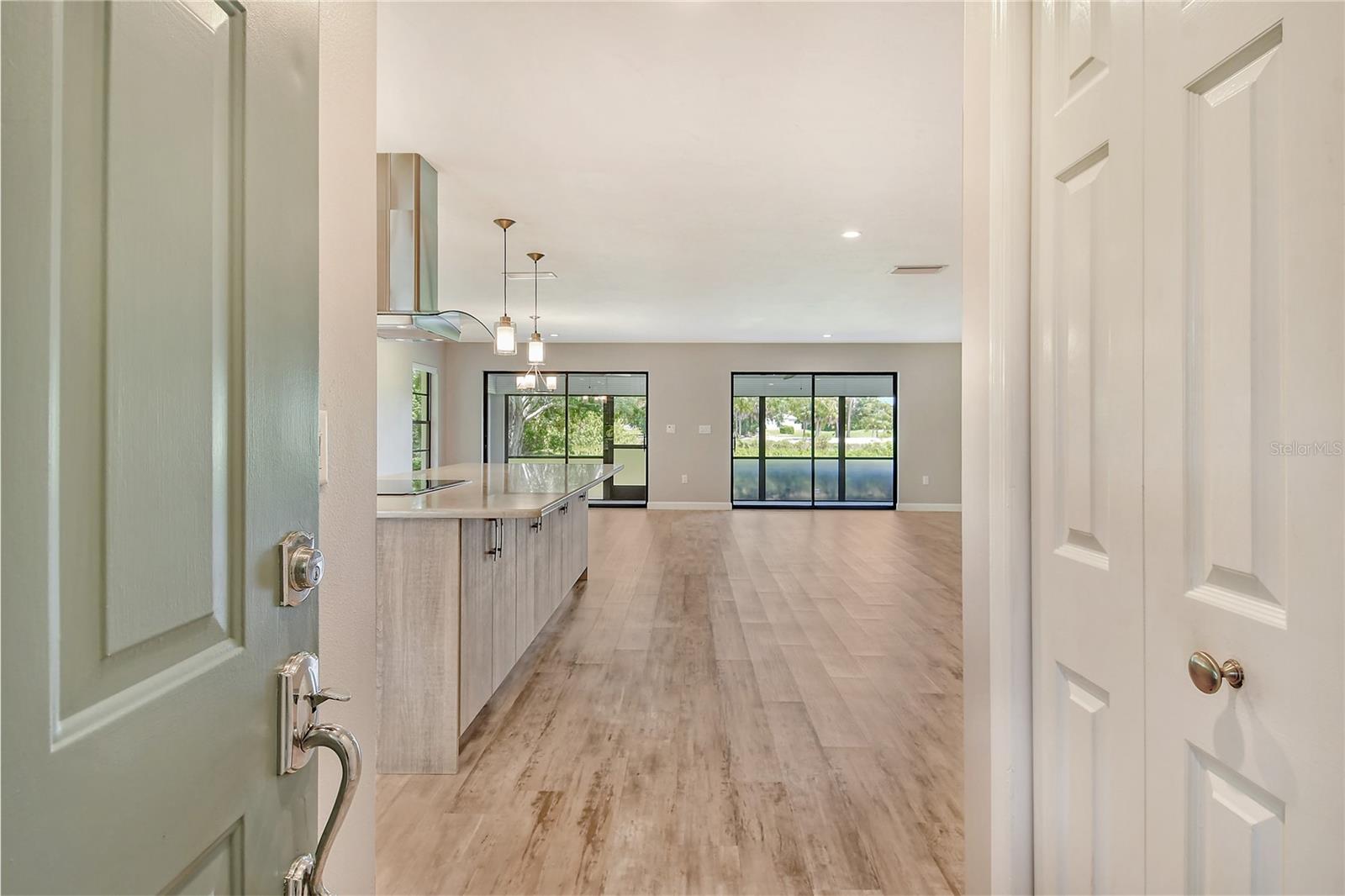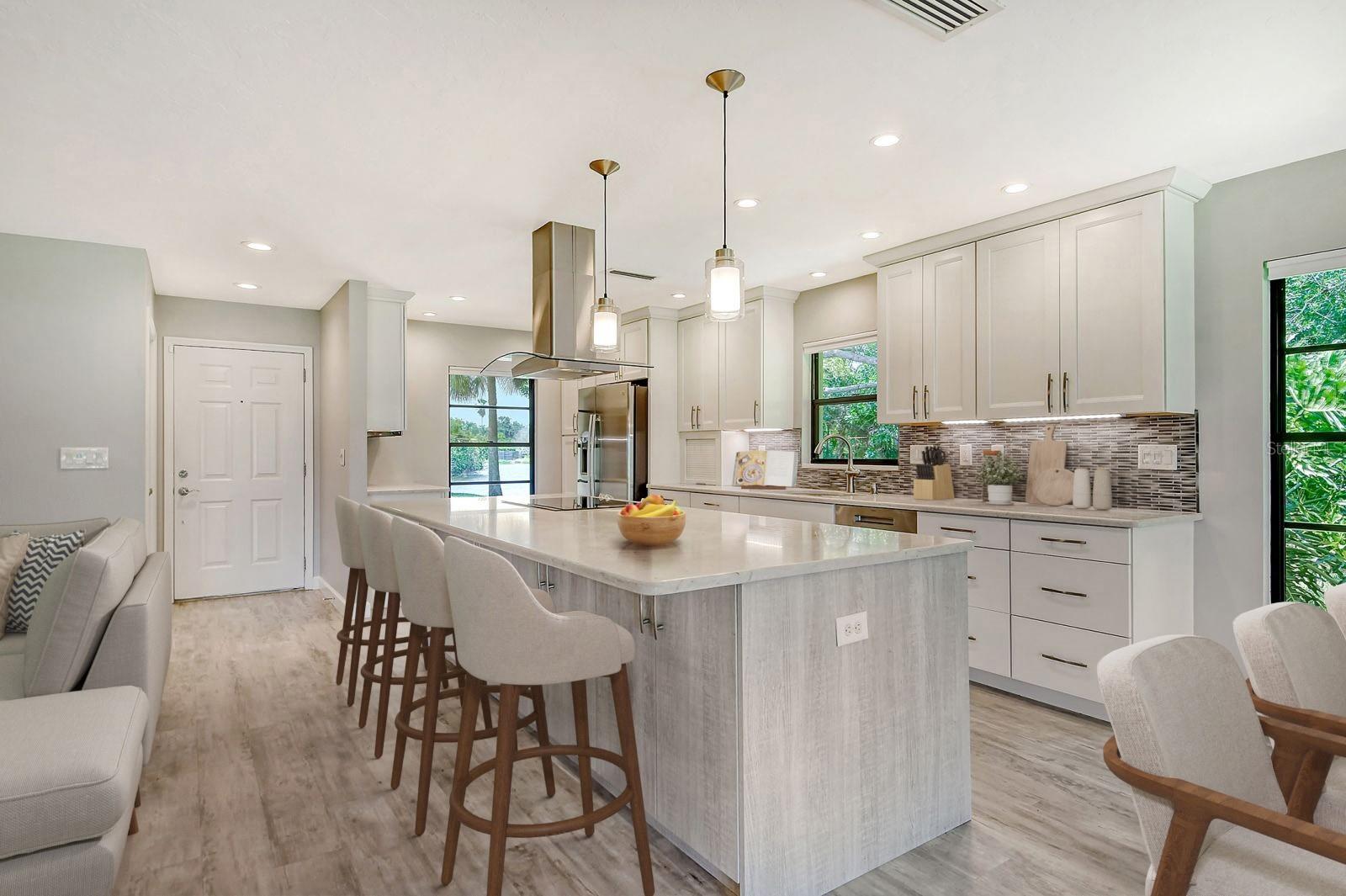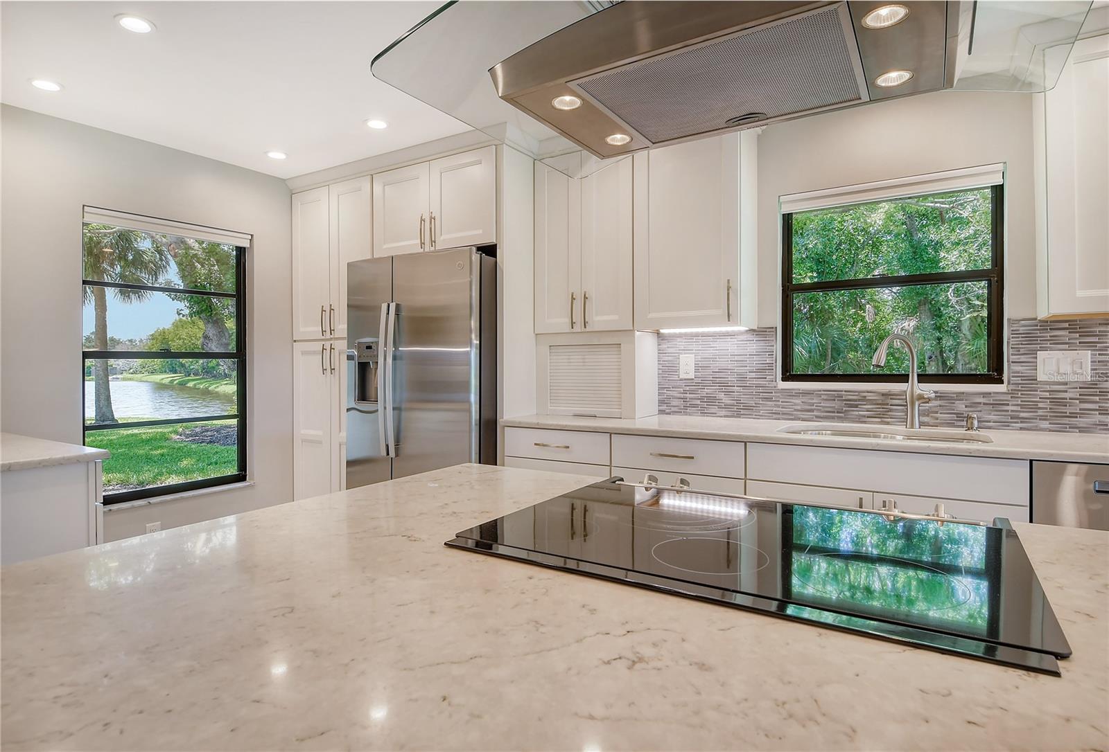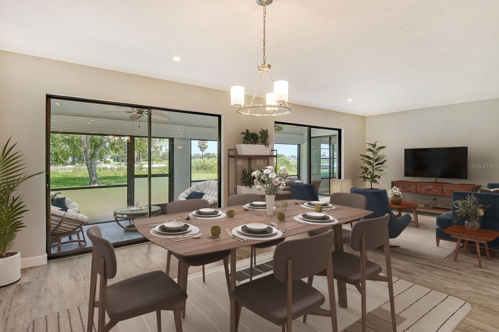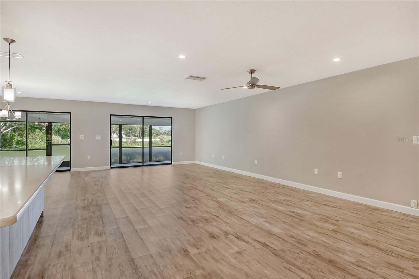 One or more photo(s) has been virtually staged. This is the most private location in the neighborhood! A truly rare find...Only here can you find long views of the lake which some consider a bird sanctuary, a view of the signature hole of Prestancia TPC golf course & wildlife abounding throughout the community! This 2 car garage, one level 3 bedroom (or study) 2 bath home is approximately 2200 square feet of immaculate modern luxury. The amazing privacy & the stunning views along with the impressive renovations create a palette ready for the creative you! Freshly painted inside and out, this light & bright open floor plan with a lot of attention to design & detail is so inviting. All this & nature’s backdrop calls you home and makes you want to stay. The dazzling dream kitchen is adorned with beautiful quartz countertops, attractive tile backsplash & GE Profile appliances. This end unit villa has windows on 3 sides bring light form the east in the morning and the west in the evening. The oversized primary bedroom suite encompasses the alluring views and in addition provides a sitting (or office) area to take it all in. The view is forever changing with so much to see. Grab your binoculars, sit back and be entertained! The ensuite bathroom provides an abundance of storage cabinets & drawers as well as dual sinks. The very tasteful walk-in shower with diamond coated glass provides an extra sparkle! You will find plenty of storage in the walk-in closet. This villa has a “split-plan” where the large guest bedroom is at the opposite end of the living space. It too, is a large bedroom with a walk-in closet. This quiet room has a view of another lake and a plethora of wildlife coming and going all day long. The guest bathroom has been updated with tasteful tiling & fixtures. The study or third bedroom provides ample room to spread out and also to use a second guest bedroom when needed, with double entry doors that can be opened up to the rest of the living area or closed for privacy. The new porcelain tiles and screens on the lanai & in the breezeway front entry add another quality touch to this vibrant living space. The air conditioning unit was replaced in 2020. New gutters & gutter guards were installed in 2022. A complete home water filtration system was installed in 2022. Hurricane shutters were new in 2023. The garage has a newly textured epoxy coating floor, cabinetry & a sink. Ready to move in! A delightful home to make your own!