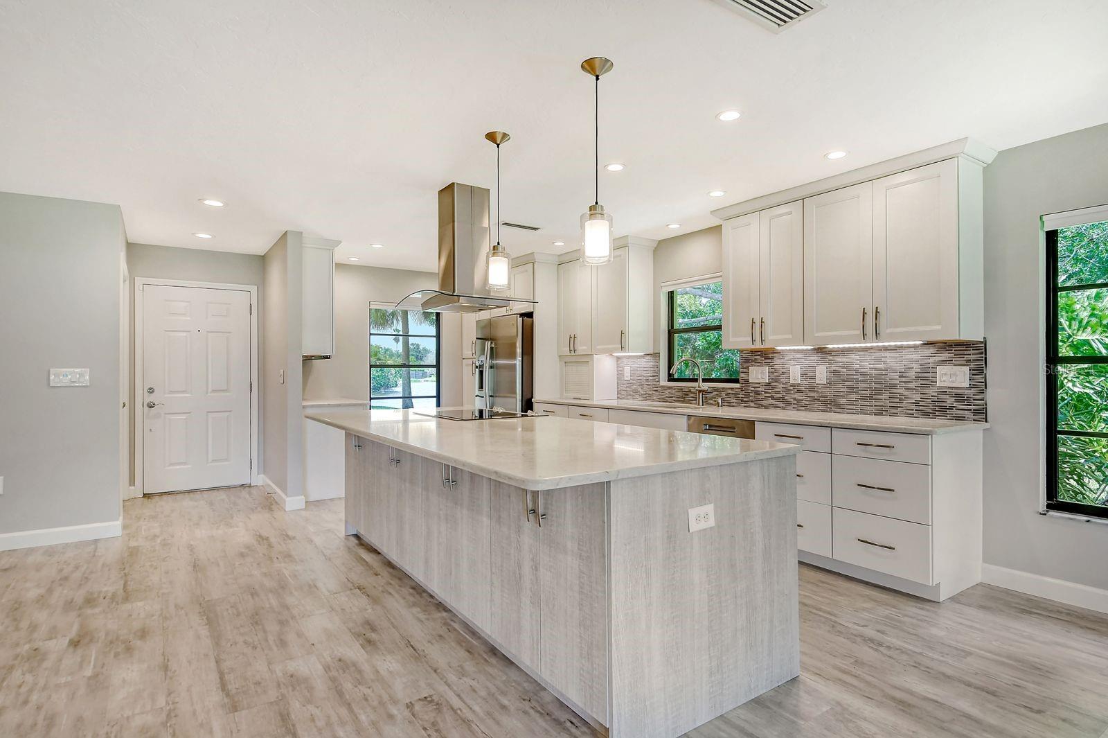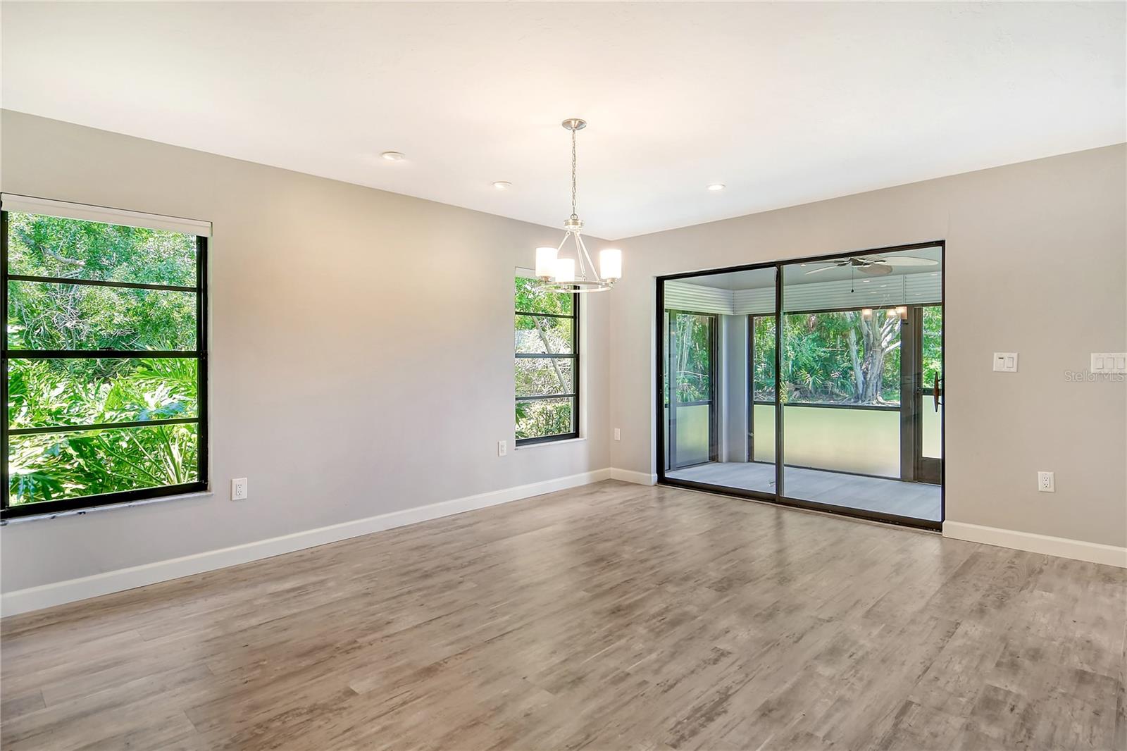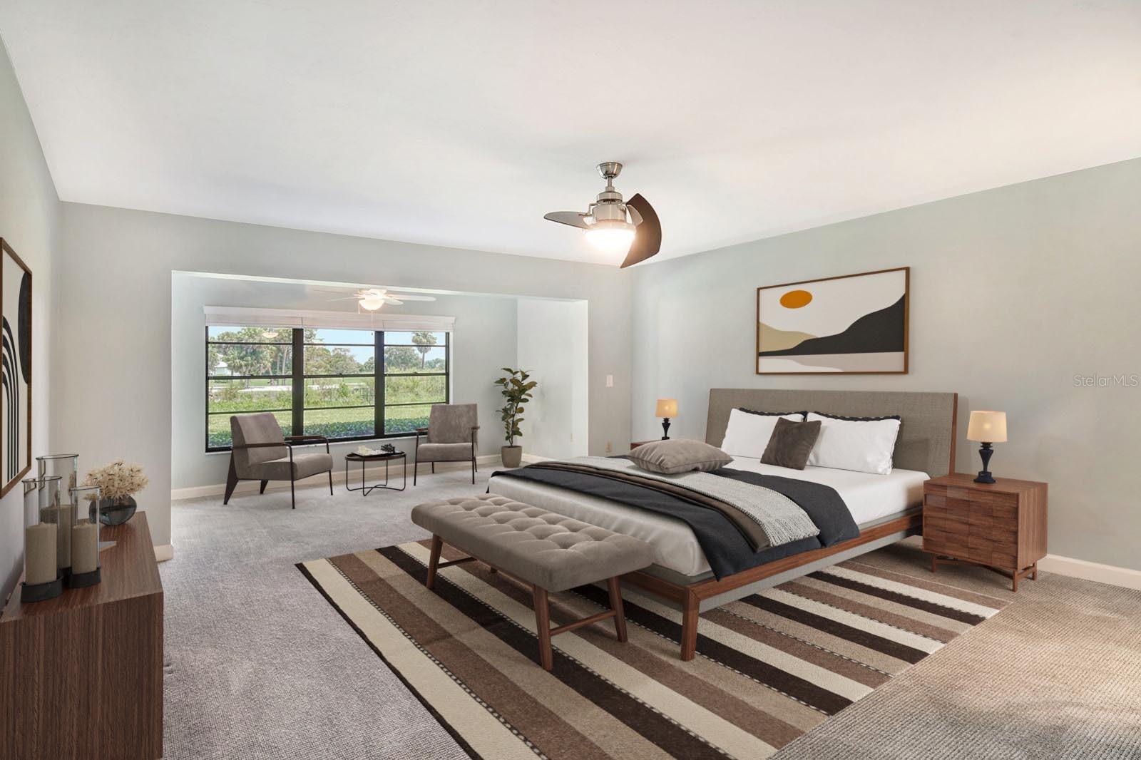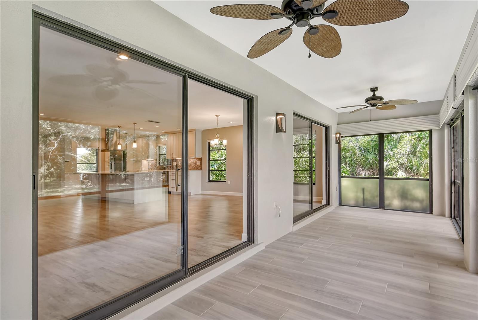 One or more photo(s) has been virtually staged. This is the most private location in the neighborhood! A truly rare find...Only here can you find long views of the lake which some consider a bird sanctuary, a view of the signature hole of Prestancia TPC golf course & wildlife abounding throughout the community! This 2 car garage, one level 3 bedroom (or study) 2 bath home is approximately 2200 square feet of immaculate modern luxury. The amazing privacy & the stunning views along with the impressive renovations create a palette ready for the creative you! Freshly painted inside and out, this light & bright open floor plan with a lot of attention to design & detail is so inviting. All this & nature’s backdrop calls you home and makes you want to stay. The dazzling dream kitchen is adorned with beautiful quartz countertops, attractive tile backsplash & GE Profile appliances. This end unit villa has windows on 3 sides bring light form the east in the morning and the west in the evening. The oversized primary bedroom suite encompasses the alluring views and in addition provides a sitting (or office) area to take it all in. The view is forever changing with so much to see. Grab your binoculars, sit back and be entertained! The ensuite bathroom provides an abundance of storage cabinets & drawers as well as dual sinks. The very tasteful walk-in shower with diamond coated glass provides an extra sparkle! You will find plenty of storage in the walk-in closet. This villa has a “split-plan” where the large guest bedroom is at the opposite end of the living space. It too, is a large bedroom with a walk-in closet. This quiet room has a view of another lake and a plethora of wildlife coming and going all day long. The guest bathroom has been updated with tasteful tiling & fixtures. The study or third bedroom provides ample room to spread out and also to use a second guest bedroom when needed, with double entry doors that can be opened up to the rest of the living area or closed for privacy. The new porcelain tiles and screens on the lanai & in the breezeway front entry add another quality touch to this vibrant living space. The air conditioning unit was replaced in 2020. New gutters & gutter guards were installed in 2022. A complete home water filtration system was installed in 2022. Hurricane shutters were new in 2023. The garage has a newly textured epoxy coating floor, cabinetry & a sink. Ready to move in! A delightful home to make your own!