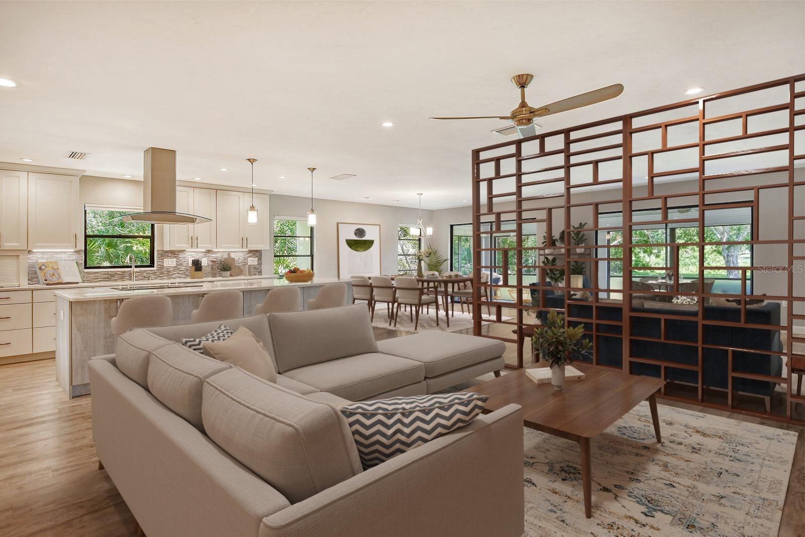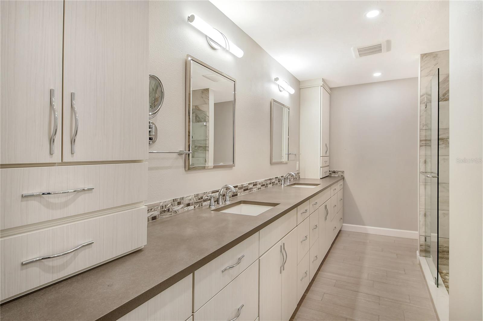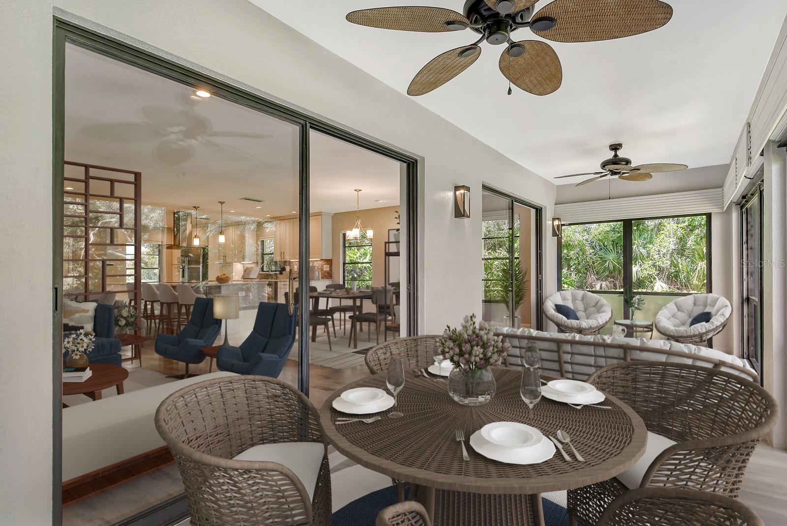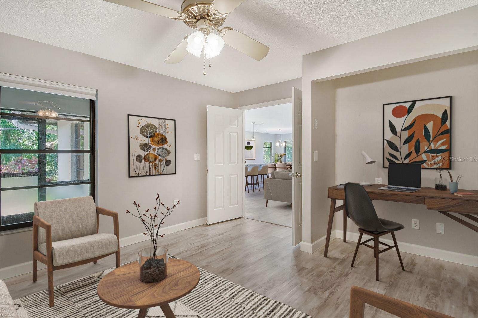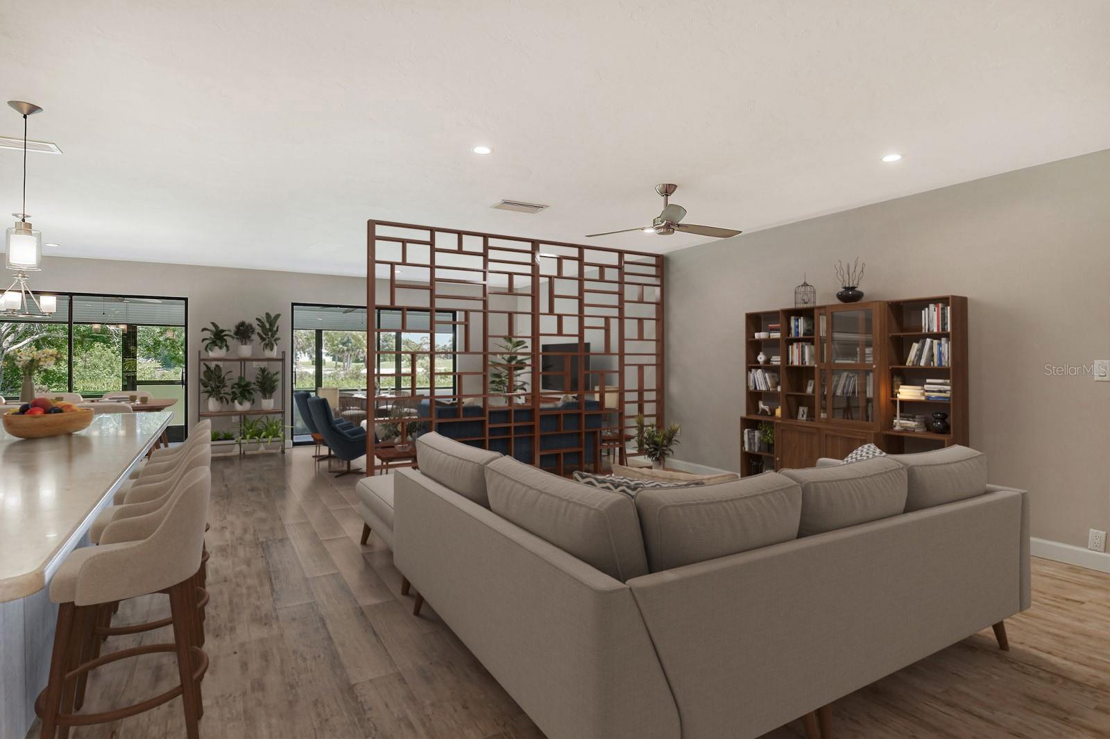 One or more photo(s) has been virtually staged. This is the most private location in the neighborhood! A truly rare find...Only here can you find long views of the lake which some consider a bird sanctuary, a view of the signature hole of Prestancia TPC golf course & wildlife abounding throughout the community! This 2 car garage, one level 3 bedroom (or study) 2 bath home is approximately 2200 square feet of immaculate modern luxury. The amazing privacy & the stunning views along with the impressive renovations create a palette ready for the creative you! Freshly painted inside and out, this light & bright open floor plan with a lot of attention to design & detail is so inviting. All this & nature’s backdrop calls you home and makes you want to stay. The dazzling dream kitchen is adorned with beautiful quartz countertops, attractive tile backsplash & GE Profile appliances. This end unit villa has windows on 3 sides bring light form the east in the morning and the west in the evening. The oversized primary bedroom suite encompasses the alluring views and in addition provides a sitting (or office) area to take it all in. The view is forever changing with so much to see. Grab your binoculars, sit back and be entertained! The ensuite bathroom provides an abundance of storage cabinets & drawers as well as dual sinks. The very tasteful walk-in shower with diamond coated glass provides an extra sparkle! You will find plenty of storage in the walk-in closet. This villa has a “split-plan” where the large guest bedroom is at the opposite end of the living space. It too, is a large bedroom with a walk-in closet. This quiet room has a view of another lake and a plethora of wildlife coming and going all day long. The guest bathroom has been updated with tasteful tiling & fixtures. The study or third bedroom provides ample room to spread out and also to use a second guest bedroom when needed, with double entry doors that can be opened up to the rest of the living area or closed for privacy. The new porcelain tiles and screens on the lanai & in the breezeway front entry add another quality touch to this vibrant living space. The air conditioning unit was replaced in 2020. New gutters & gutter guards were installed in 2022. A complete home water filtration system was installed in 2022. Hurricane shutters were new in 2023. The garage has a newly textured epoxy coating floor, cabinetry & a sink. Ready to move in! A delightful home to make your own!