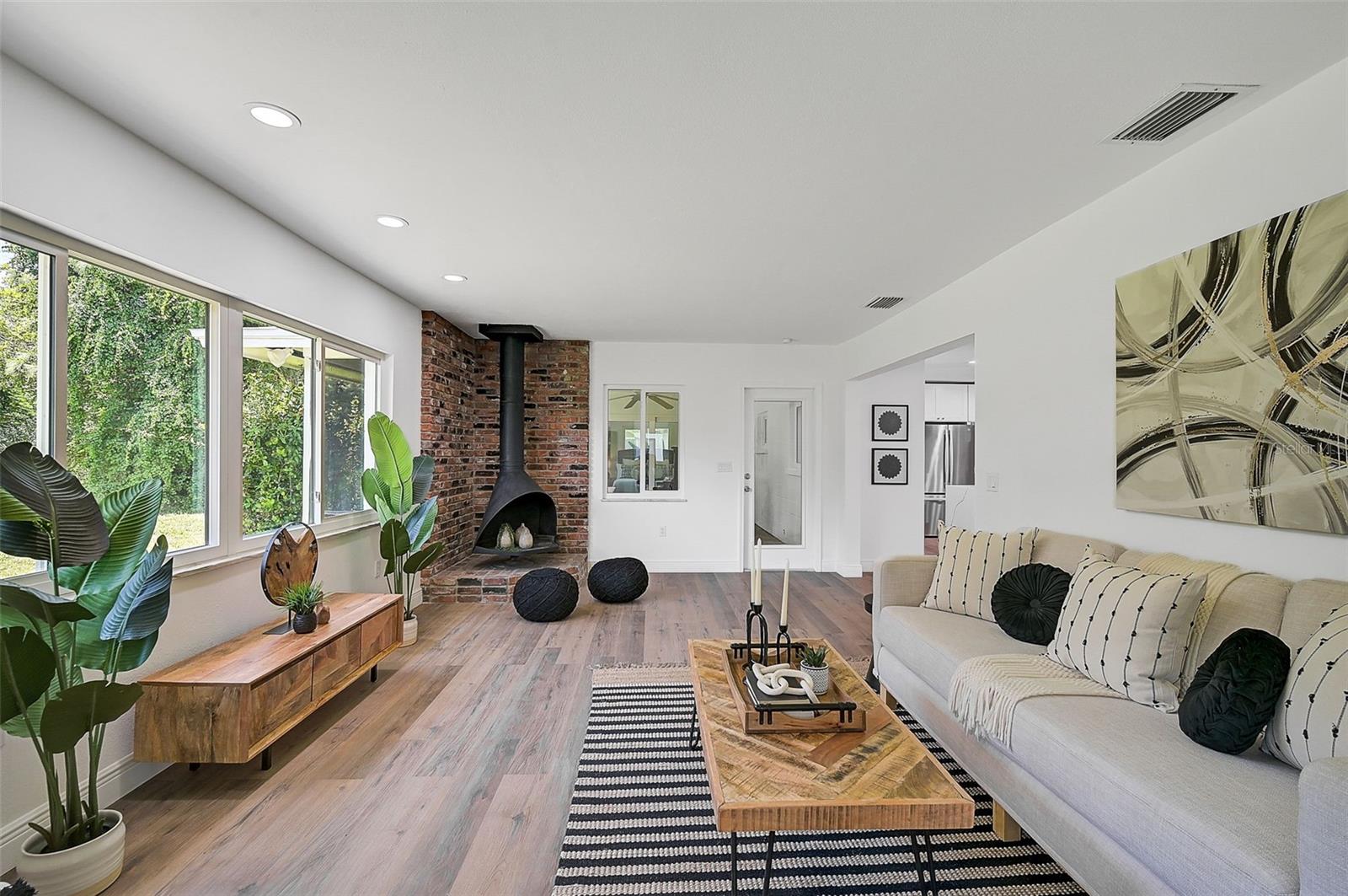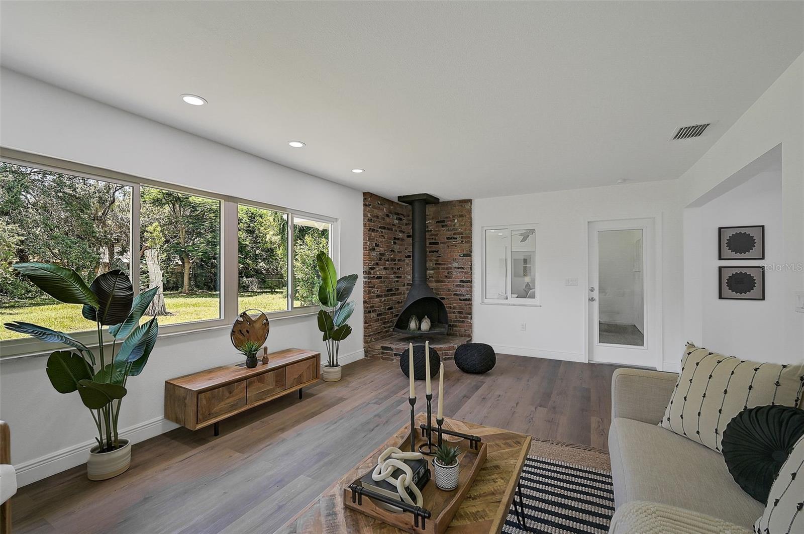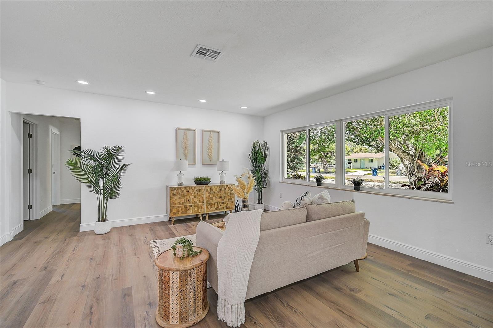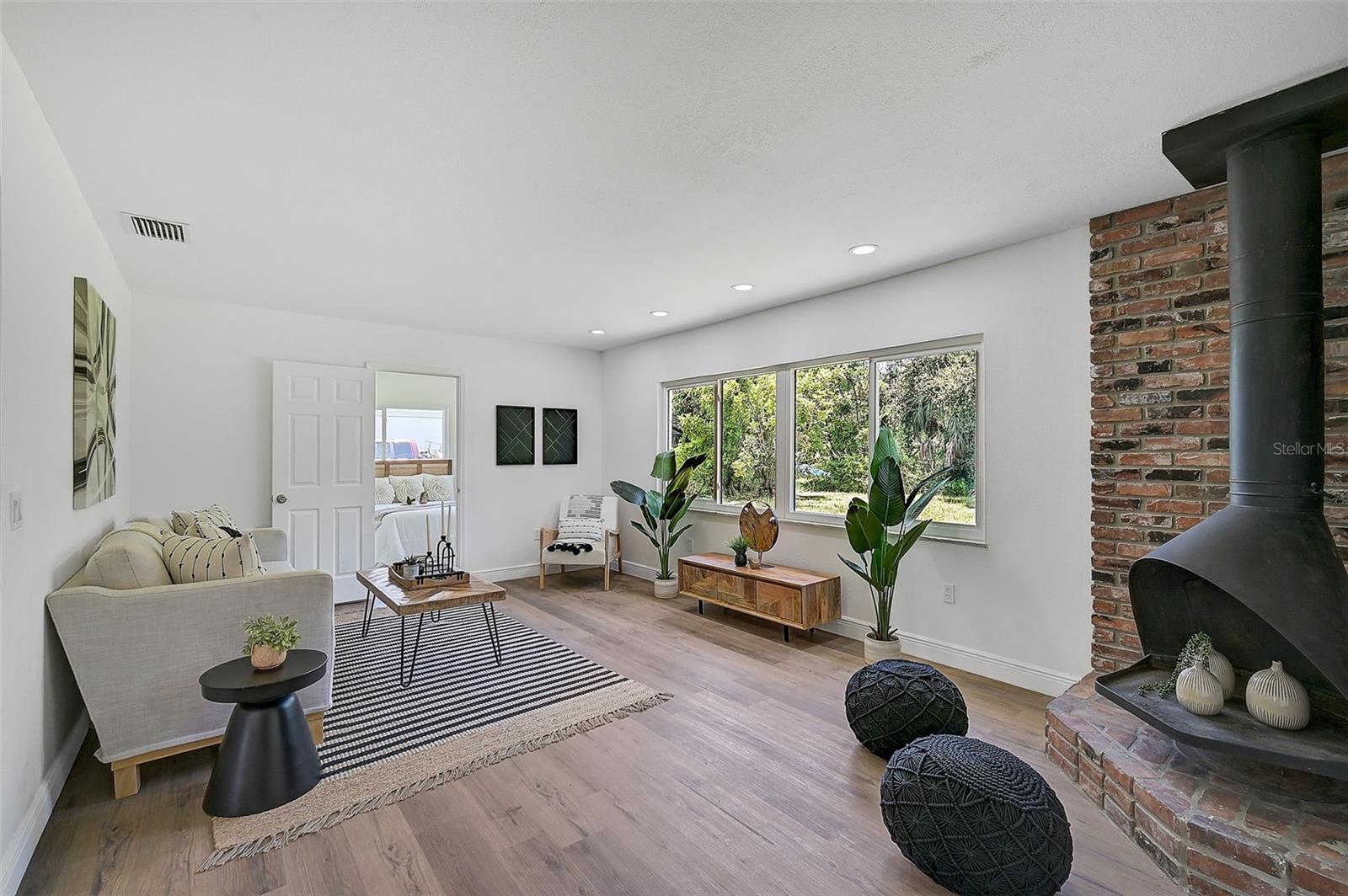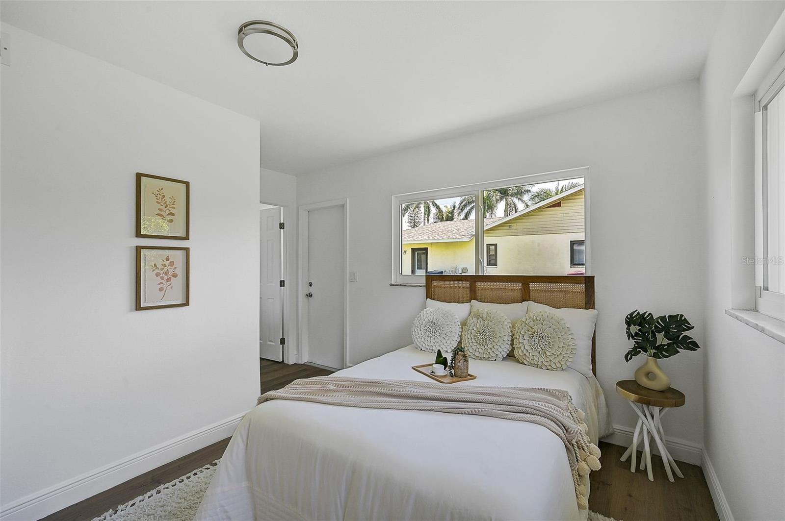 LOCATION, LOCATION, LOCATION! West of the Trail on a low-traffic street, this prime location offers beautiful water views from your own front yard! Just minutes to SRQ Airport, Ringling Museum, Bayfront, Downtown Sarasota, Beloved Beaches and more, you can enjoy all that Sarasota has to offer. Each bedroom features en-suite bathrooms with a powder bath as well off the kitchen. The Primary suite features an office/den/sitting area adjacent to as well as sliders going to the patio and oversized backyard. The second bedroom offers a nice layout with walk-in shower. Towards the back of the home there is the 3rd bedroom which could be a fantastic guest quarters or in-law suite as there is private entrance. This home has undergone a complete transformation with a newer roof (2021), a brand-new AC system, and a comprehensive renovation throughout the interior. Step inside to discover a bright, open layout that seamlessly unites the living spaces, illuminated by large hurricane impact windows and glass sliders that invite natural light at every turn. The heart of this home is undoubtedly the beautiful modern kitchen! The kitchen features a large center island with waterfall edge, built-in stovetop/vented hood, surrounded by brand new stainless steel appliances, a built-in oven, quartz countertops, tile backsplash, and an abundance of cabinet/counter space. Every detail, from the recessed lighting throughout to the luxury vinyl flooring has been meticulously selected for both style and durability. Inside there is a family room and generously sized living room, complete with a cozy brick surround fireplace. Great for relaxing evenings at home or hosting friends and family. Step outside to the covered lanai and enjoy the spacious yard, offering plenty of room for outdoor activities and entertaining. Plenty of room for a pool if one desires! A wonderful option as a primary home, vacation home or investment property as it is a Sarasota address but located in Manatee County where you can Airbnb. Don't miss the opportunity to see this beautiful property where luxury meets convenience in a location that's hard to beat. Reach out today to schedule a viewing!