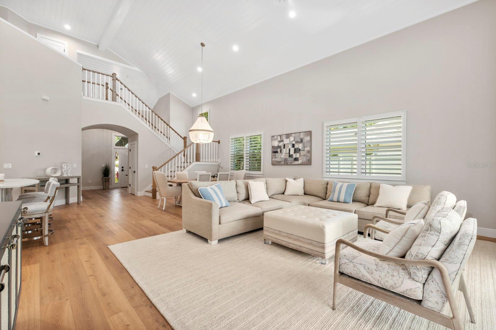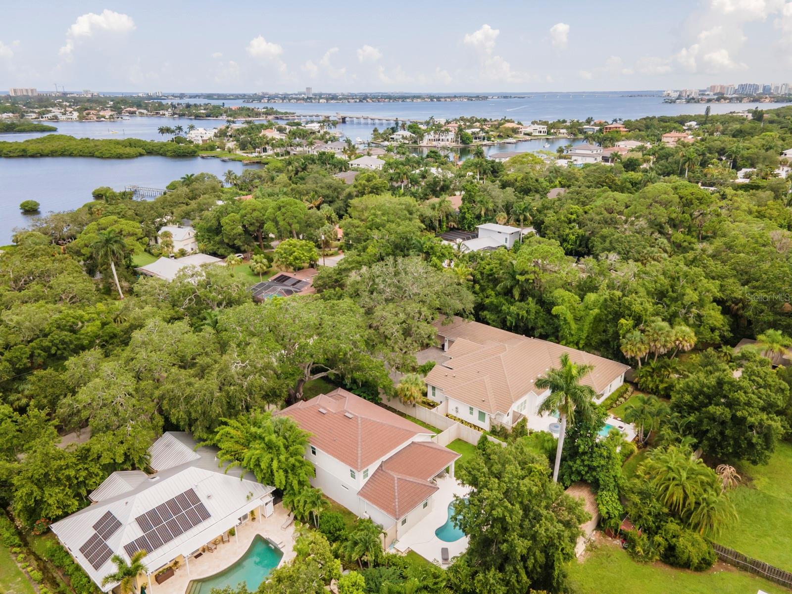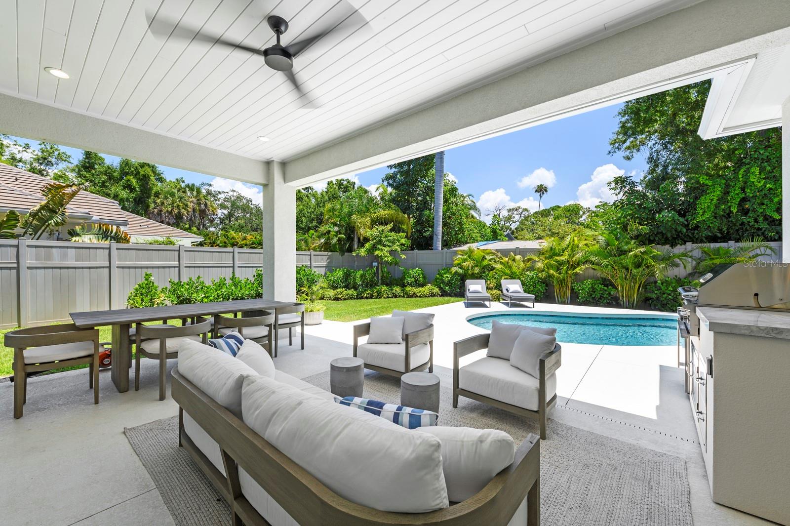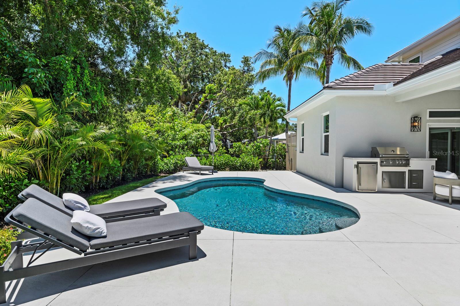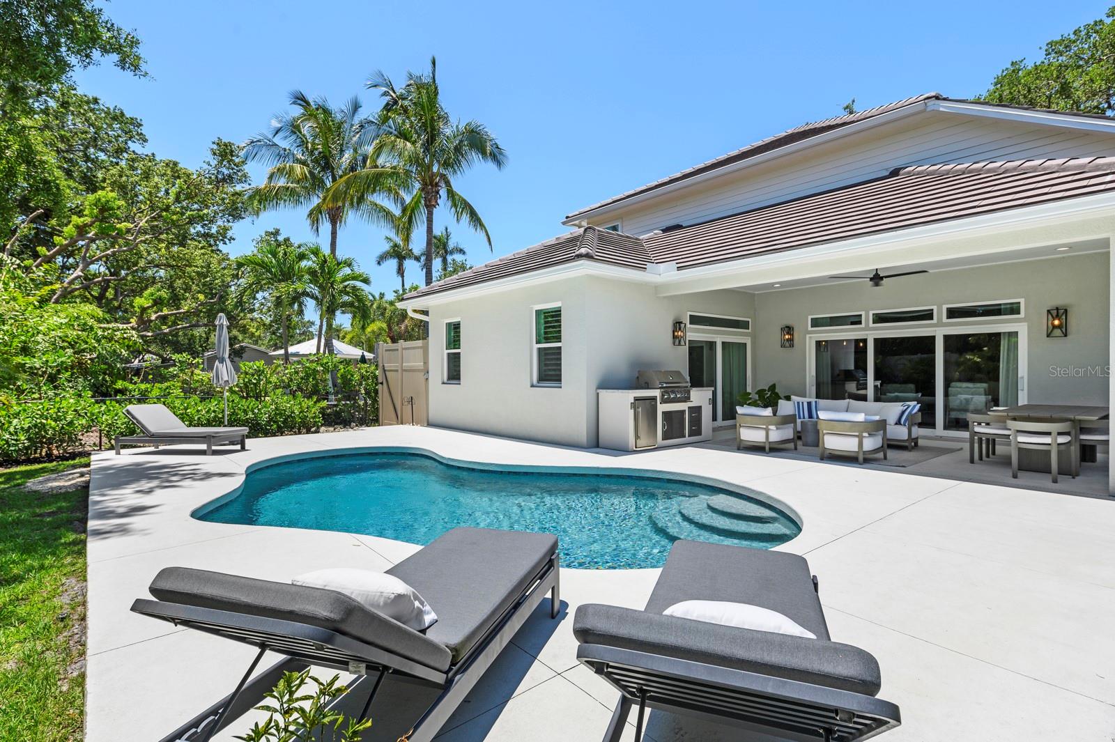 Available turnkey furnished...Discover this custom one of a kind residence nestled on a secluded dead end street in the highly sought after Johnson estates, a prime West of the trail location. This oversize lot offers a secure and safe environment for growing families or retires looking to relax and wind down. Boasting 4 bedrooms and 3.5 bathrooms this home is characterized by expansive ceilings, a versatile-layout, and premium finishes throughout. Noteworthy features include two primary bedrooms, wide plank flooring, vaulted ship-lapped ceilings, hurricane impact windows, and designer accents, showcasing a commitment to both styles and functionality. The residence is designed for the ultimate Florida lifestyle, with an enclosed backyard featuring a covered lanai, outdoor kitchen, sparkling pool, and lush tropical landscaping. Conveniently located in proximity to Siesta Key, Southside village, Sarasota Memorial Hospital, SarasotaBay, and the dynamic arts, restaurants, and nightlife scene of Sarasota. The property is served by top-rated schools and comes with the added benefit of no CDD or HOA fees, offering a perfect blend of luxury, convenience and a vibrant community.