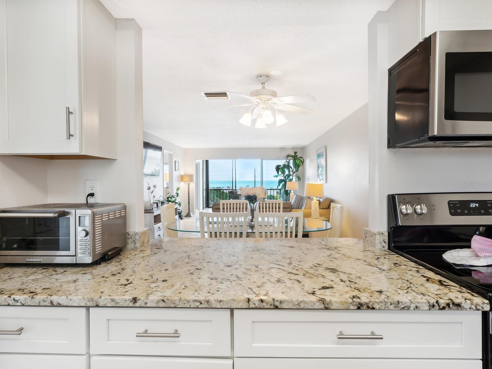 Boasting breathtaking Gulf views, a tastefully updated interior, and first-class amenities, this is more than just a property - it's an opportunity. Invest in your dream lifestyle or build a profitable rental portfolio with this updated fourth-floor condominium directly across from Siesta Key Beach. Crescent Royale's desirable location and impressive amenities make it a standout investment. Capture the coastal lifestyle with family and friends while enjoying gentle Gulf breezes at the Olympic-sized heated pool, gas grills and tables, a shuffleboard court, recreation room with a pool table, kitchen and fitness center. This gated community offers ample guest parking, a dedicated carport next to the elevator, laundry rooms on each floor and storage for beach chairs and toys. Offered turnkey furnished, this condominium is the perfect vacation escape with two generously sized bedrooms with ensuite baths, comfortable yet sophisticated furniture, and a recently remodeled kitchen showcasing granite countertops and modern stainless steel appliances. This corner unit is bright and sunny with natural sunlight from southern and western exposures, and effortlessly combines dining and living areas for entertaining and taking in the spectacular sunsets from your large enclosed patio. With onsite rental management available, the guesswork is taken out of making a sound financial investment if you should decide to capitalize on the opportunity.