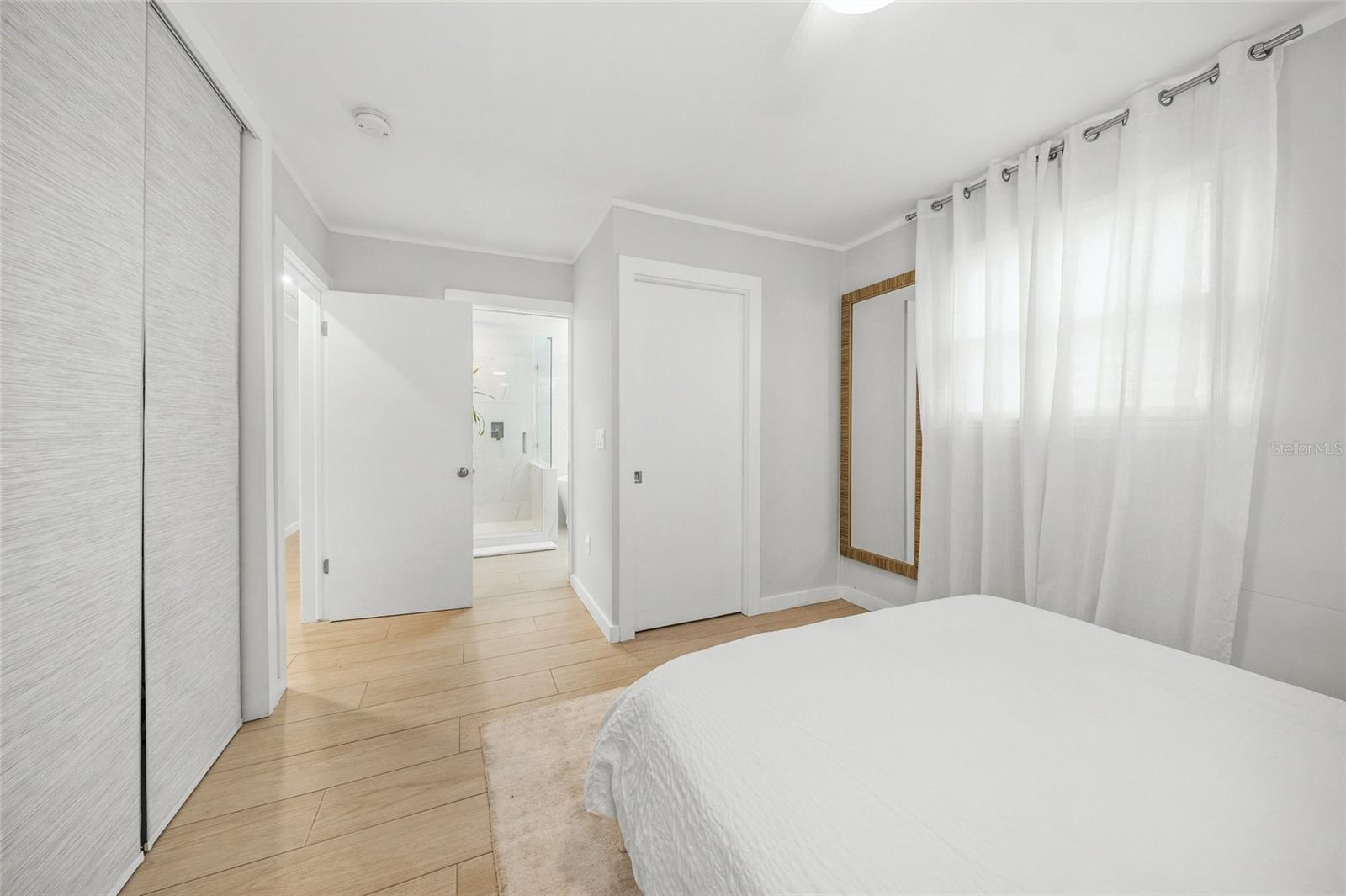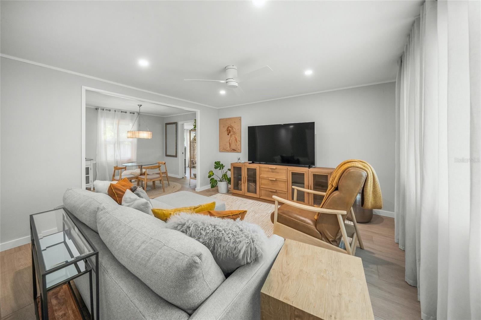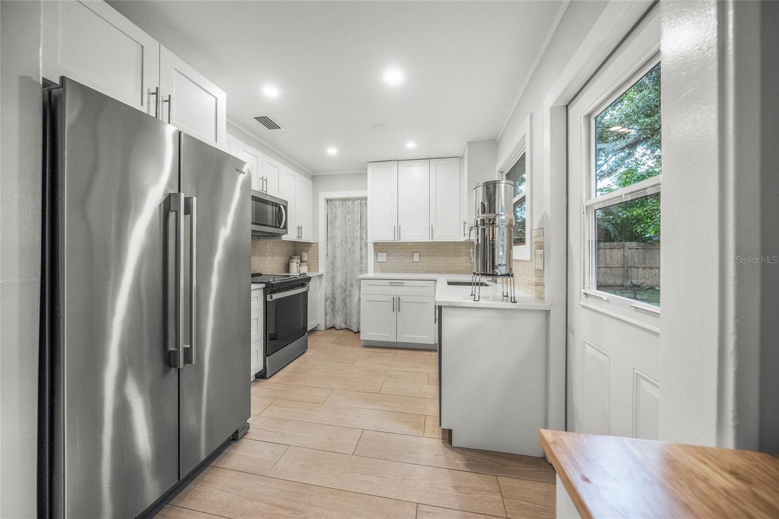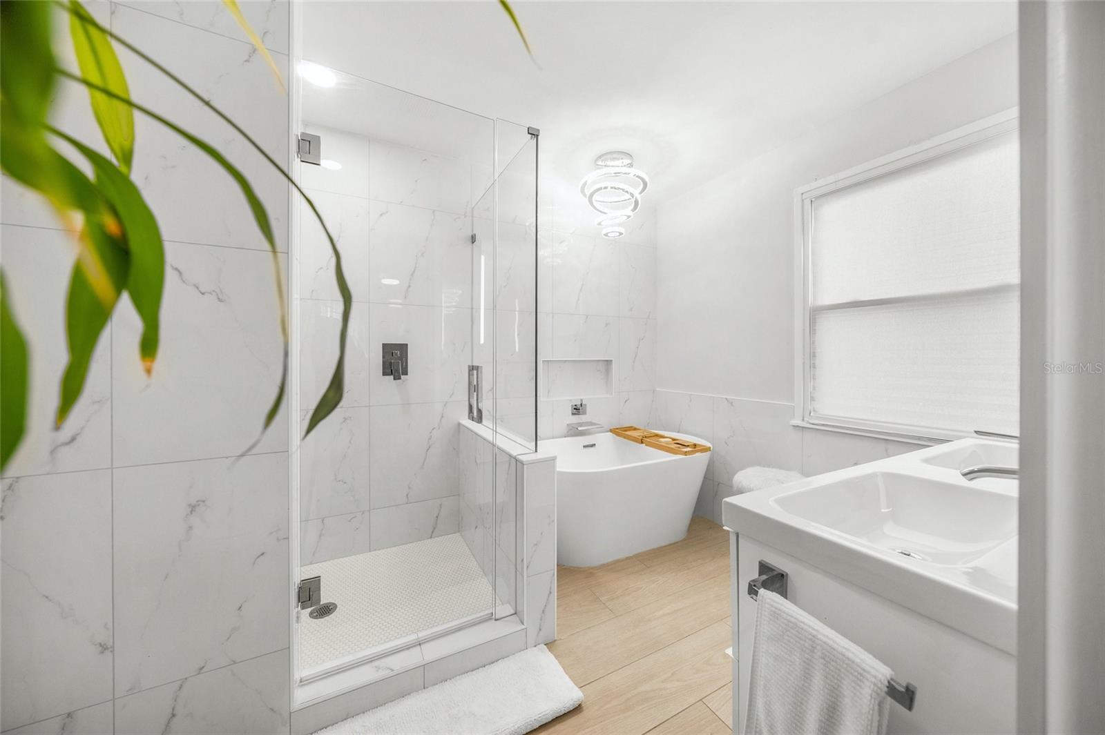 Welcome to your dream home, a fully renovated luxury oasis designed for modern living. This exquisite property showcases meticulous craftsmanship and top-tier upgrades throughout, offering the perfect blend of style and functionality. The spacious living room invites you to relax in comfort with a neutral palette, featuring plush furnishings and an abundance of natural light streaming through hurricane-grade windows. The newly designed kitchen is a chef's delight, boasting high-end stainless steel appliances, custom cabinetry, elegant countertops, and a new sink with updated plumbing. An added pantry provides ample storage for all your culinary needs. Experience tranquility in the master bedroom, complete with a walk-in closet and a lavish en-suite bathroom. The second bathroom has been artfully gutted and remodeled to provide a spa-like retreat, featuring premium fixtures and finishes. Both bathrooms exude sophistication with floor-to-ceiling tile work and modern amenities, ensuring a serene start and end to your day. Elegant porcelain plank floors run throughout the home, enhancing its contemporary aesthetic and providing easy maintenance. The sunroom is a versatile space equipped with a specialty outlet for a sauna, perfect for unwinding after a long day. The exterior, painted one year ago, exudes curb appeal with its fresh, weather-resistant finish. The property is framed by a beautifully maintained fence, complete with a wide gate designed for boat or large vehicle access. A magnificent Heritage Oak tree provides shade and character to the backyard, carefully trimmed and fertilized to ensure its health and longevity. The spacious backyard offers a serene setting with lush greenery and ample space for outdoor activities and gatherings, complete with a modern outdoor setup. Enjoy peace of mind with an ultraviolet purification system integrated into the A/C, new ductwork, and a relocated split A/C system to maximize indoor space and efficiency. With new drain lines, water lines, and electric updates, this home ensures reliable and efficient operation for years to come. This property represents a rare opportunity to own a meticulously updated home with every modern convenience. Schedule your private tour today and experience the epitome of luxury living.