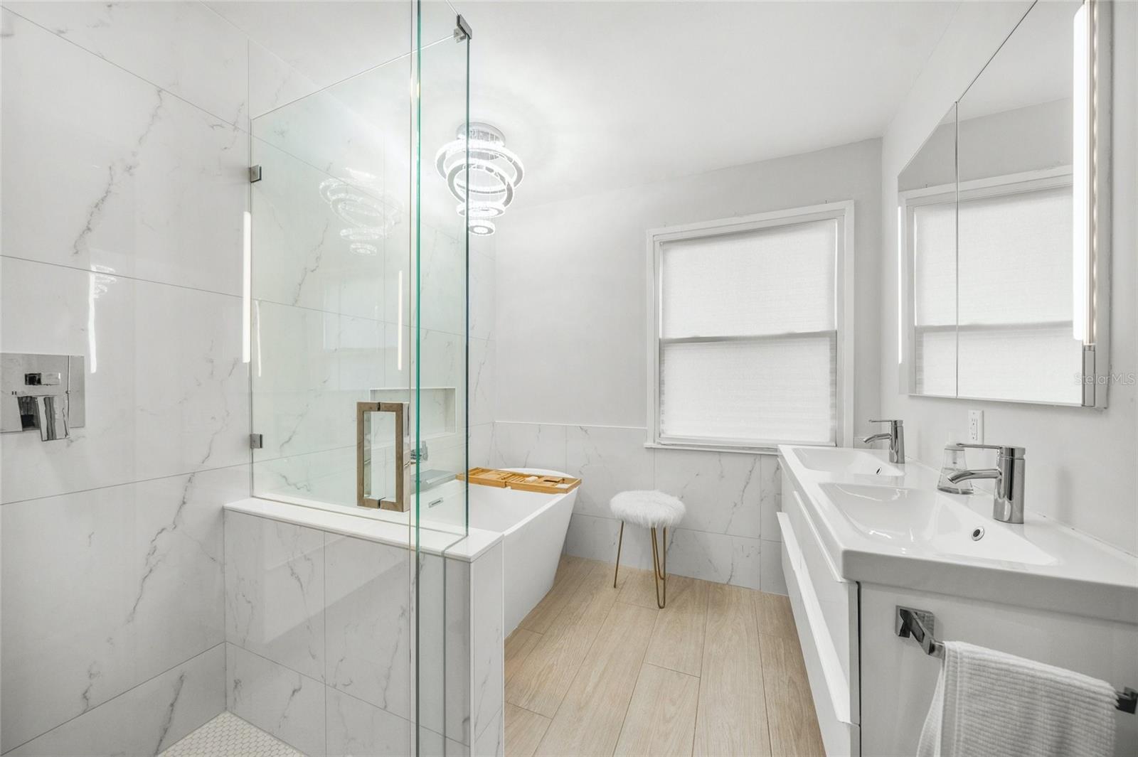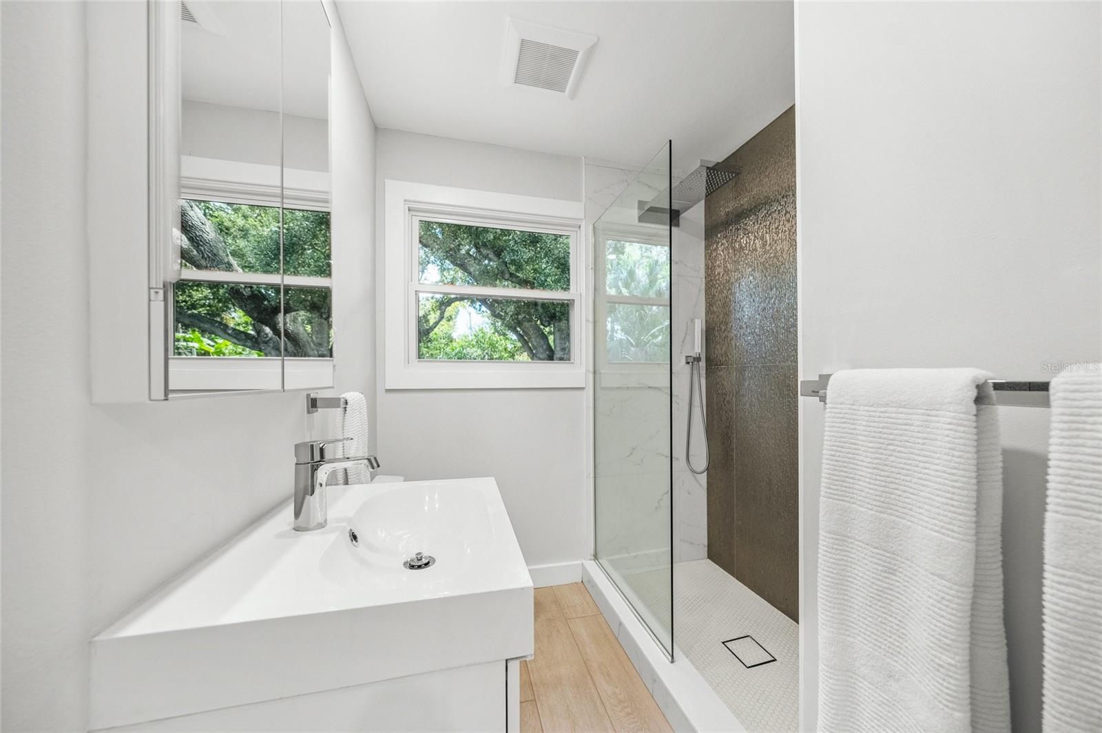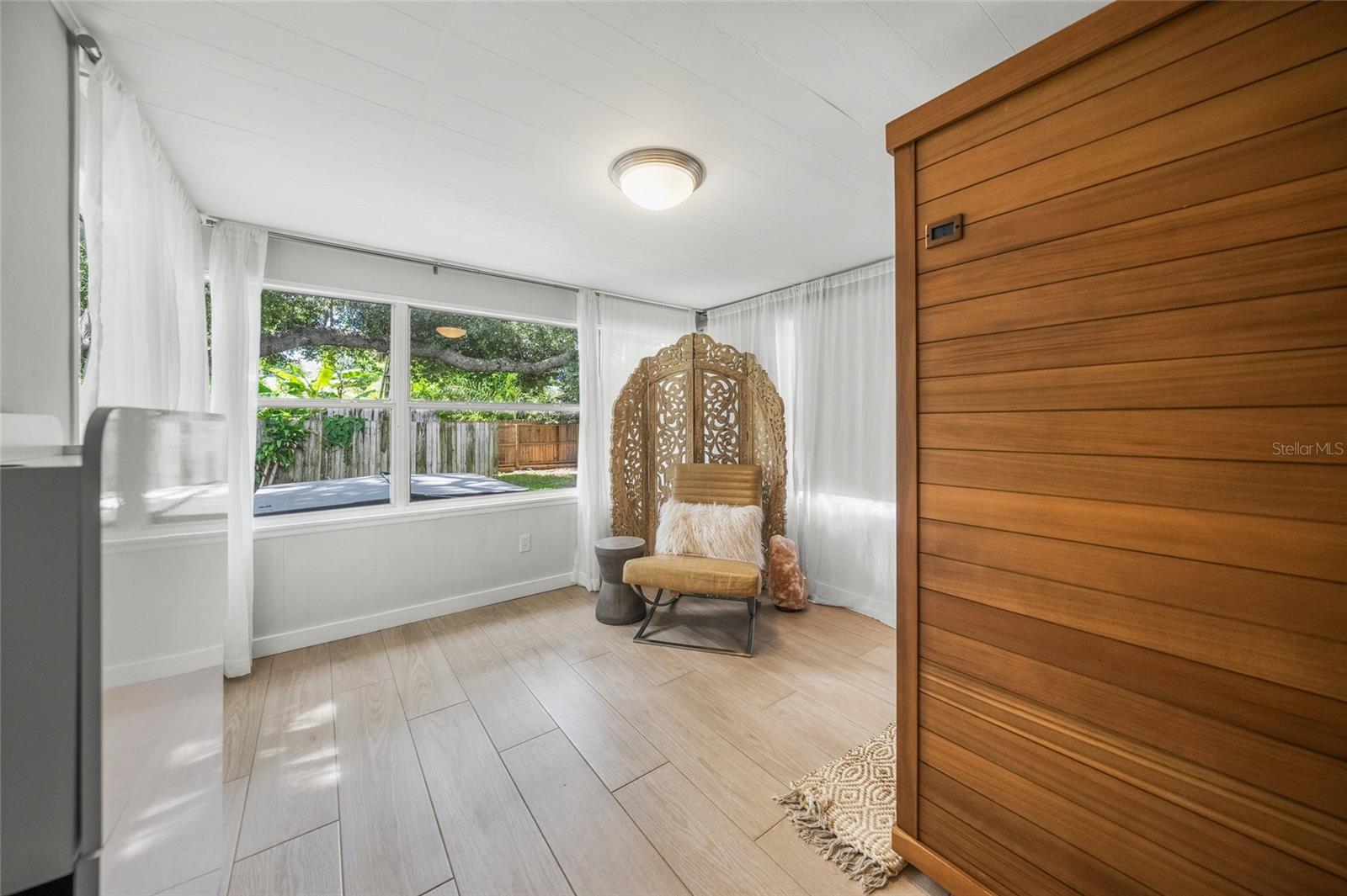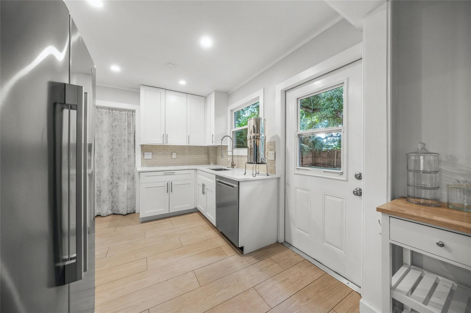 Welcome to your dream home, a fully renovated luxury oasis designed for modern living. This exquisite property showcases meticulous craftsmanship and top-tier upgrades throughout, offering the perfect blend of style and functionality. The spacious living room invites you to relax in comfort with a neutral palette, featuring plush furnishings and an abundance of natural light streaming through hurricane-grade windows. The newly designed kitchen is a chef's delight, boasting high-end stainless steel appliances, custom cabinetry, elegant countertops, and a new sink with updated plumbing. An added pantry provides ample storage for all your culinary needs. Experience tranquility in the master bedroom, complete with a walk-in closet and a lavish en-suite bathroom. The second bathroom has been artfully gutted and remodeled to provide a spa-like retreat, featuring premium fixtures and finishes. Both bathrooms exude sophistication with floor-to-ceiling tile work and modern amenities, ensuring a serene start and end to your day. Elegant porcelain plank floors run throughout the home, enhancing its contemporary aesthetic and providing easy maintenance. The sunroom is a versatile space equipped with a specialty outlet for a sauna, perfect for unwinding after a long day. The exterior, painted one year ago, exudes curb appeal with its fresh, weather-resistant finish. The property is framed by a beautifully maintained fence, complete with a wide gate designed for boat or large vehicle access. A magnificent Heritage Oak tree provides shade and character to the backyard, carefully trimmed and fertilized to ensure its health and longevity. The spacious backyard offers a serene setting with lush greenery and ample space for outdoor activities and gatherings, complete with a modern outdoor setup. Enjoy peace of mind with an ultraviolet purification system integrated into the A/C, new ductwork, and a relocated split A/C system to maximize indoor space and efficiency. With new drain lines, water lines, and electric updates, this home ensures reliable and efficient operation for years to come. This property represents a rare opportunity to own a meticulously updated home with every modern convenience. Schedule your private tour today and experience the epitome of luxury living.