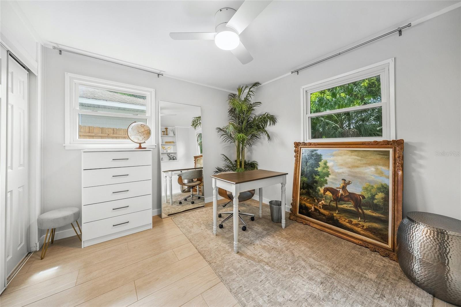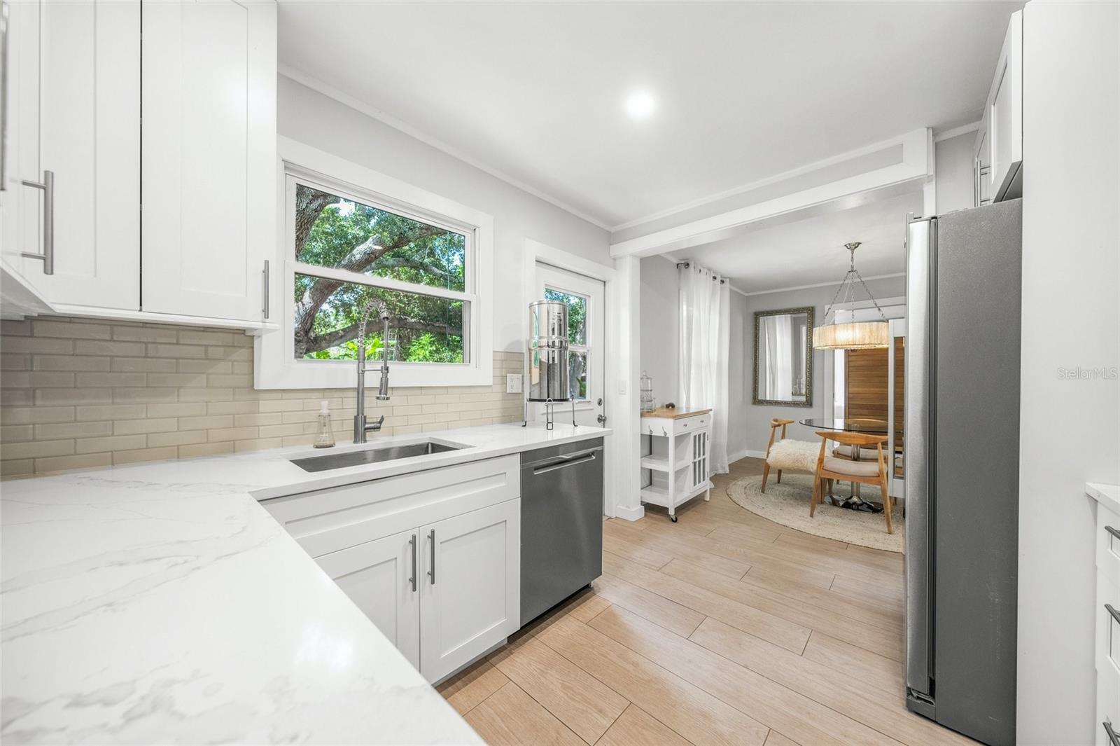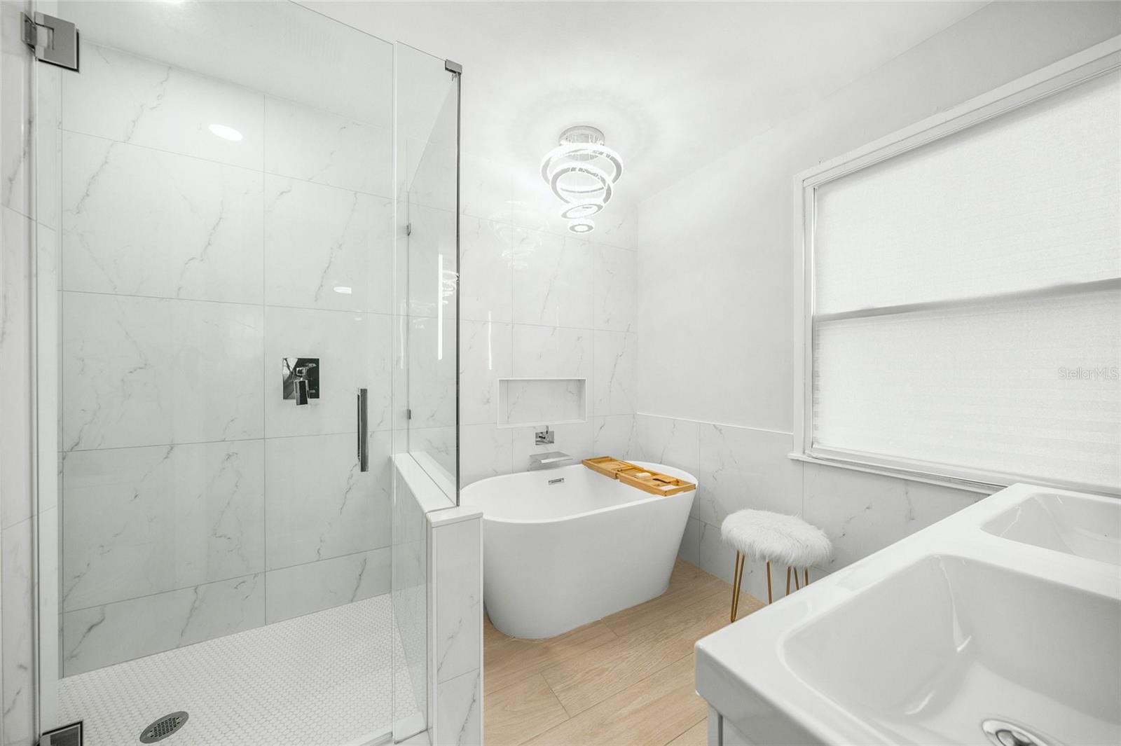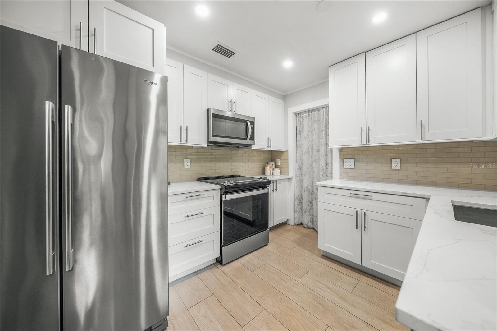 Welcome to your dream home, a fully renovated luxury oasis designed for modern living. This exquisite property showcases meticulous craftsmanship and top-tier upgrades throughout, offering the perfect blend of style and functionality. The spacious living room invites you to relax in comfort with a neutral palette, featuring plush furnishings and an abundance of natural light streaming through hurricane-grade windows. The newly designed kitchen is a chef's delight, boasting high-end stainless steel appliances, custom cabinetry, elegant countertops, and a new sink with updated plumbing. An added pantry provides ample storage for all your culinary needs. Experience tranquility in the master bedroom, complete with a walk-in closet and a lavish en-suite bathroom. The second bathroom has been artfully gutted and remodeled to provide a spa-like retreat, featuring premium fixtures and finishes. Both bathrooms exude sophistication with floor-to-ceiling tile work and modern amenities, ensuring a serene start and end to your day. Elegant porcelain plank floors run throughout the home, enhancing its contemporary aesthetic and providing easy maintenance. The sunroom is a versatile space equipped with a specialty outlet for a sauna, perfect for unwinding after a long day. The exterior, painted one year ago, exudes curb appeal with its fresh, weather-resistant finish. The property is framed by a beautifully maintained fence, complete with a wide gate designed for boat or large vehicle access. A magnificent Heritage Oak tree provides shade and character to the backyard, carefully trimmed and fertilized to ensure its health and longevity. The spacious backyard offers a serene setting with lush greenery and ample space for outdoor activities and gatherings, complete with a modern outdoor setup. Enjoy peace of mind with an ultraviolet purification system integrated into the A/C, new ductwork, and a relocated split A/C system to maximize indoor space and efficiency. With new drain lines, water lines, and electric updates, this home ensures reliable and efficient operation for years to come. This property represents a rare opportunity to own a meticulously updated home with every modern convenience. Schedule your private tour today and experience the epitome of luxury living.