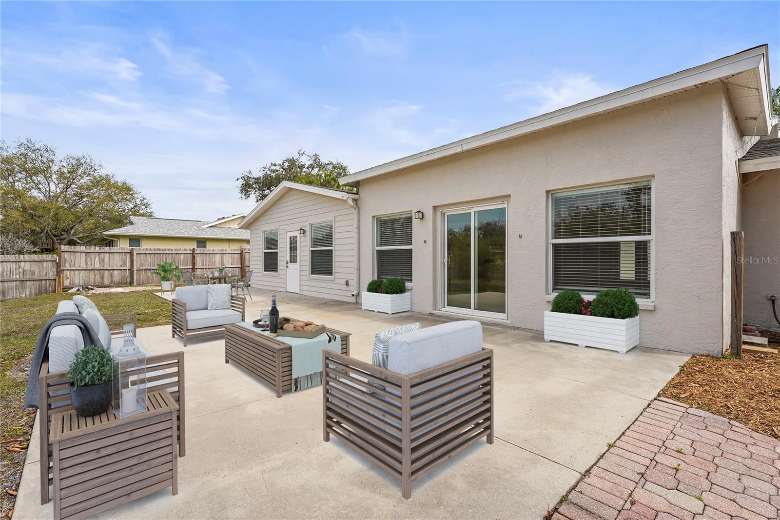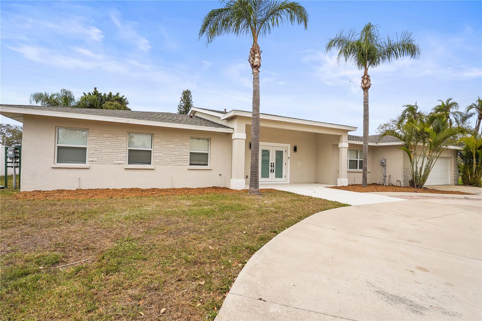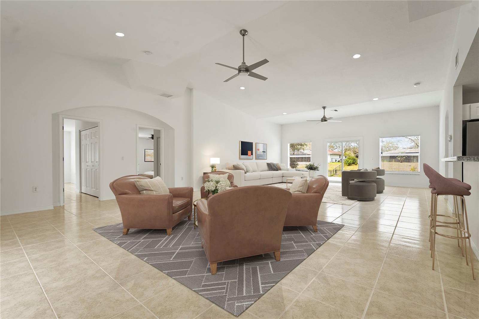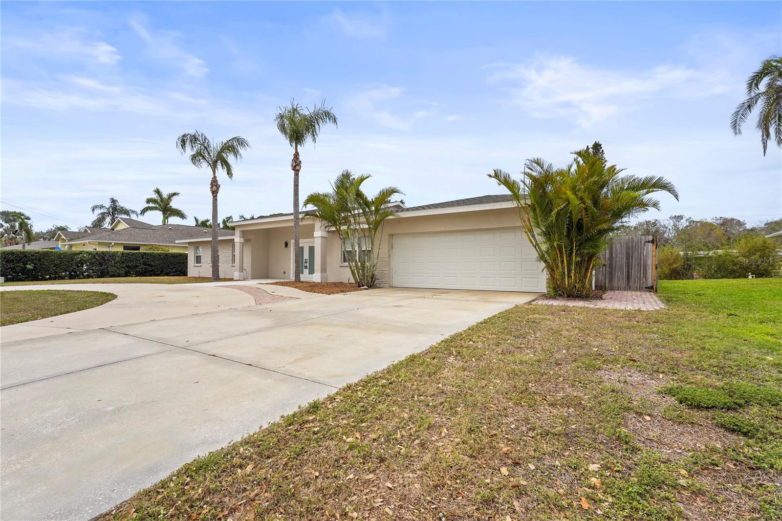 Welcome home to the highly sought-after South Gate community! Step through the elegant double-door entry into a spacious great room with soaring ceilings, perfect for entertaining. The home features a fully renovated kitchen, complete with two built-in ovens, a breakfast bar, and ample space for culinary creations. This split-plan home offers three bedrooms and three bathrooms, including a unique third bedroom with an adjoining bonus space—complete with a kitchenette, en-suite bathroom with a hydro tub, and private entry, making it ideal for guests or multi-generational living. Enjoy outdoor living on the large back patio, overlooking a mature landscaping and beautiful Phillippi Creek. Additional highlights include a brand-new roof installed in 2025, hurricane impact windows and garage door, two water heaters, newer AC and electrical, and an epoxy-finished garage floor for a polished look. The home was staged for photos. Don’t miss this rare gem in South Gate—schedule your showing today!