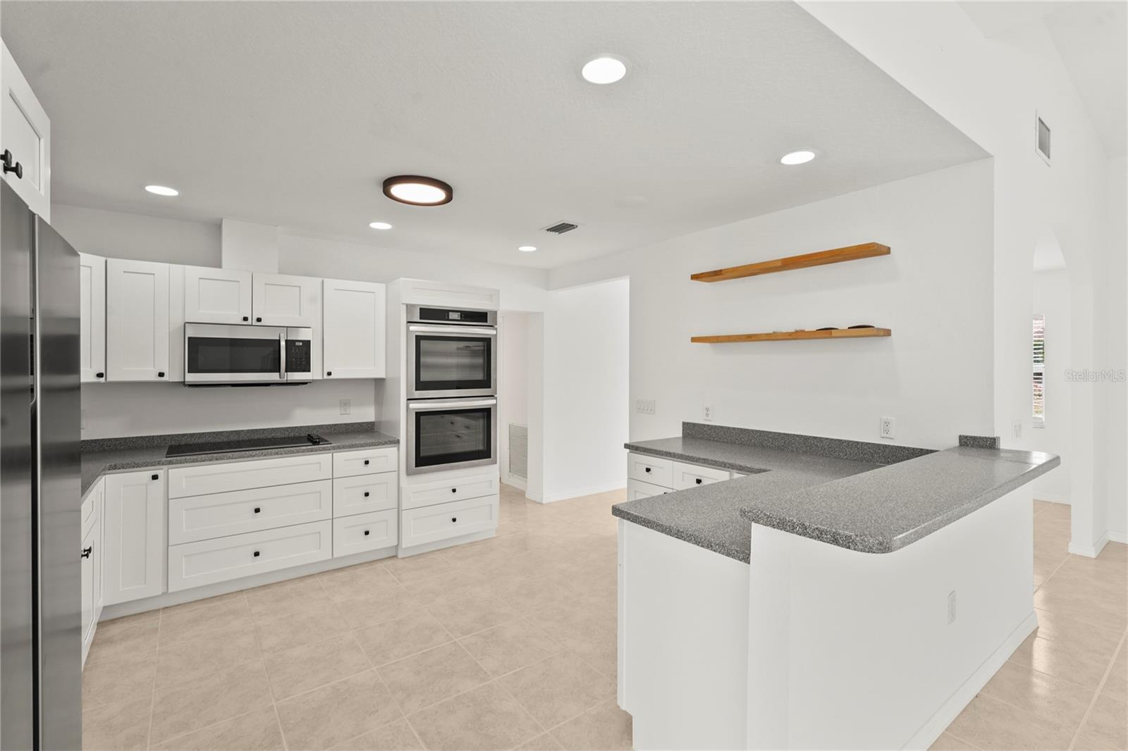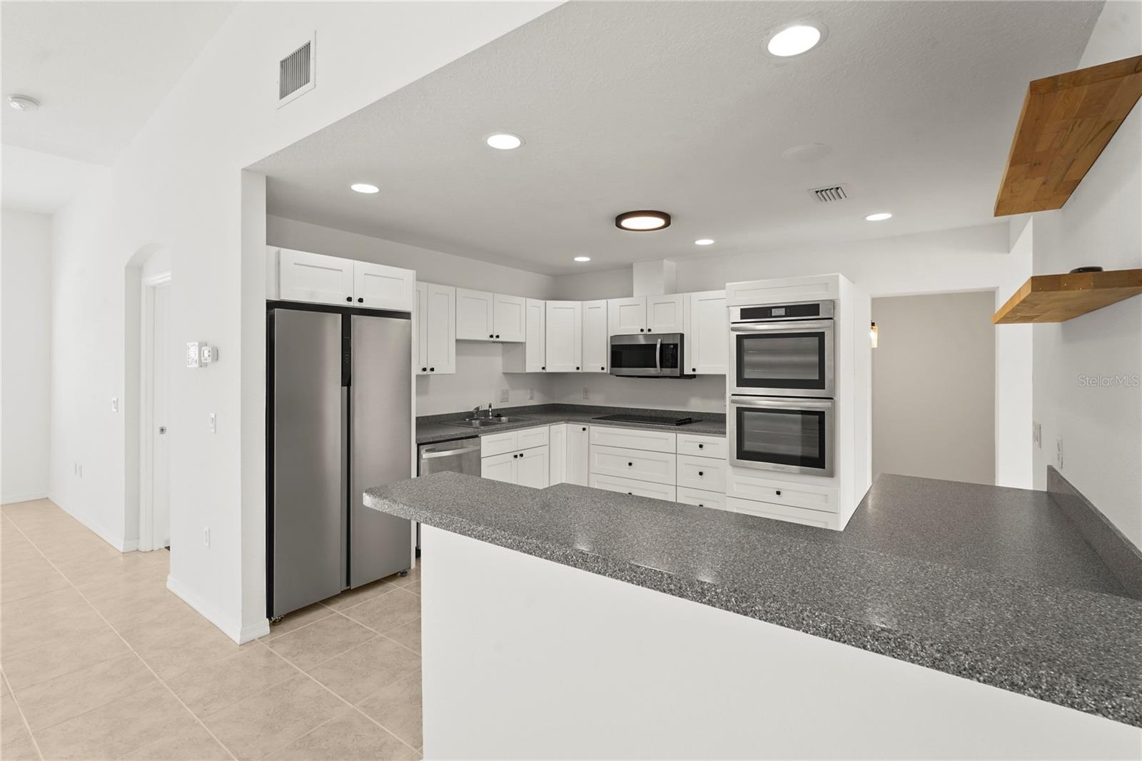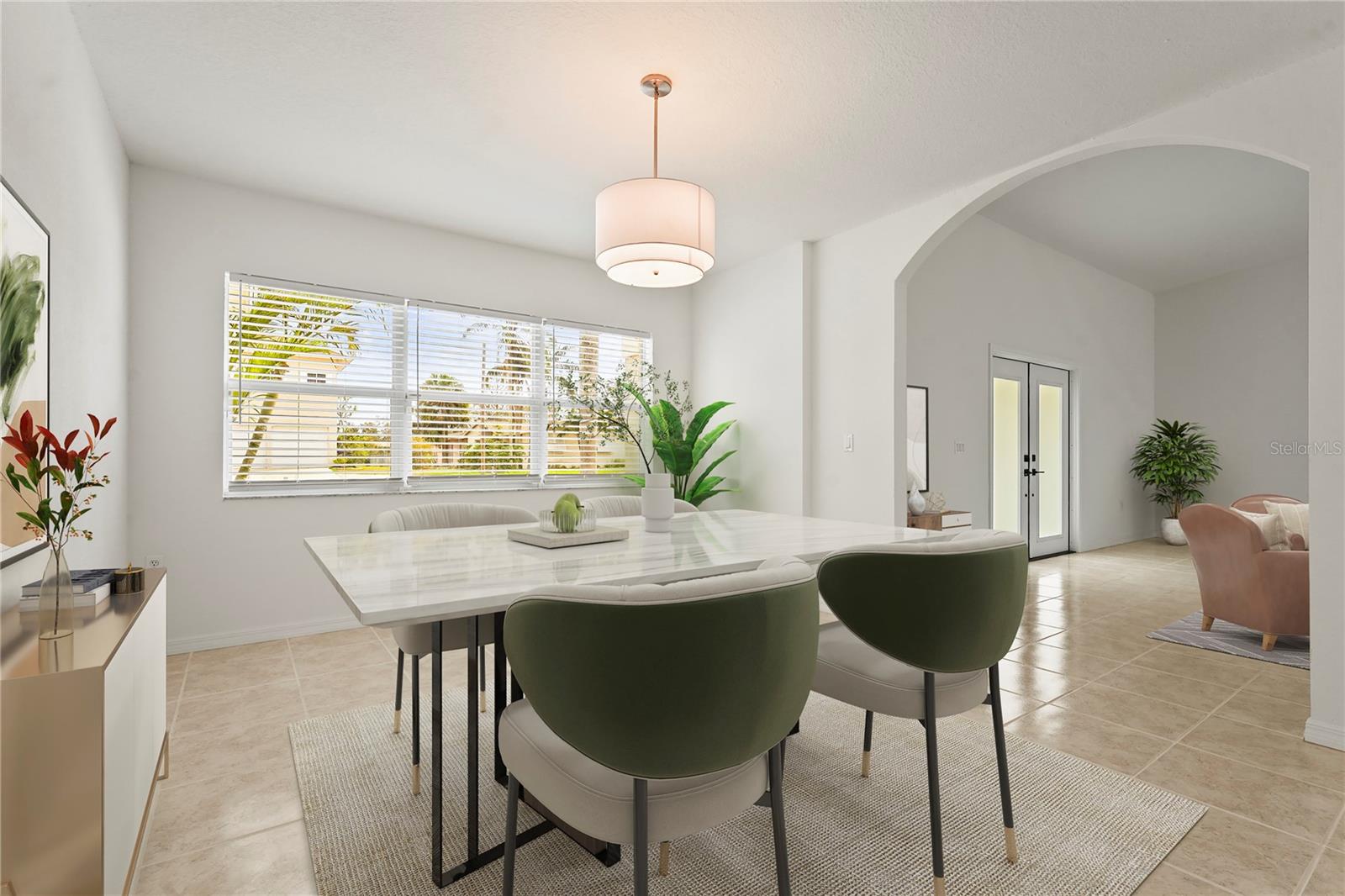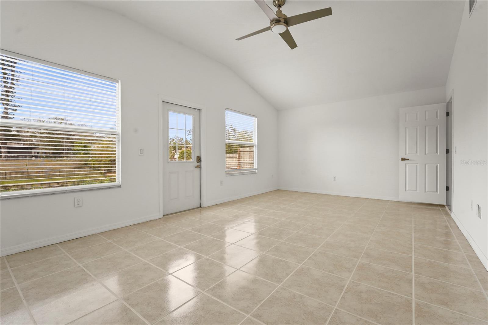 Welcome home to the highly sought-after South Gate community! Step through the elegant double-door entry into a spacious great room with soaring ceilings, perfect for entertaining. The home features a fully renovated kitchen, complete with two built-in ovens, a breakfast bar, and ample space for culinary creations. This split-plan home offers three bedrooms and three bathrooms, including a unique third bedroom with an adjoining bonus space—complete with a kitchenette, en-suite bathroom with a hydro tub, and private entry, making it ideal for guests or multi-generational living. Enjoy outdoor living on the large back patio, overlooking a mature landscaping and beautiful Phillippi Creek. Additional highlights include a brand-new roof installed in 2025, hurricane impact windows and garage door, two water heaters, newer AC and electrical, and an epoxy-finished garage floor for a polished look. The home was staged for photos. Don’t miss this rare gem in South Gate—schedule your showing today!