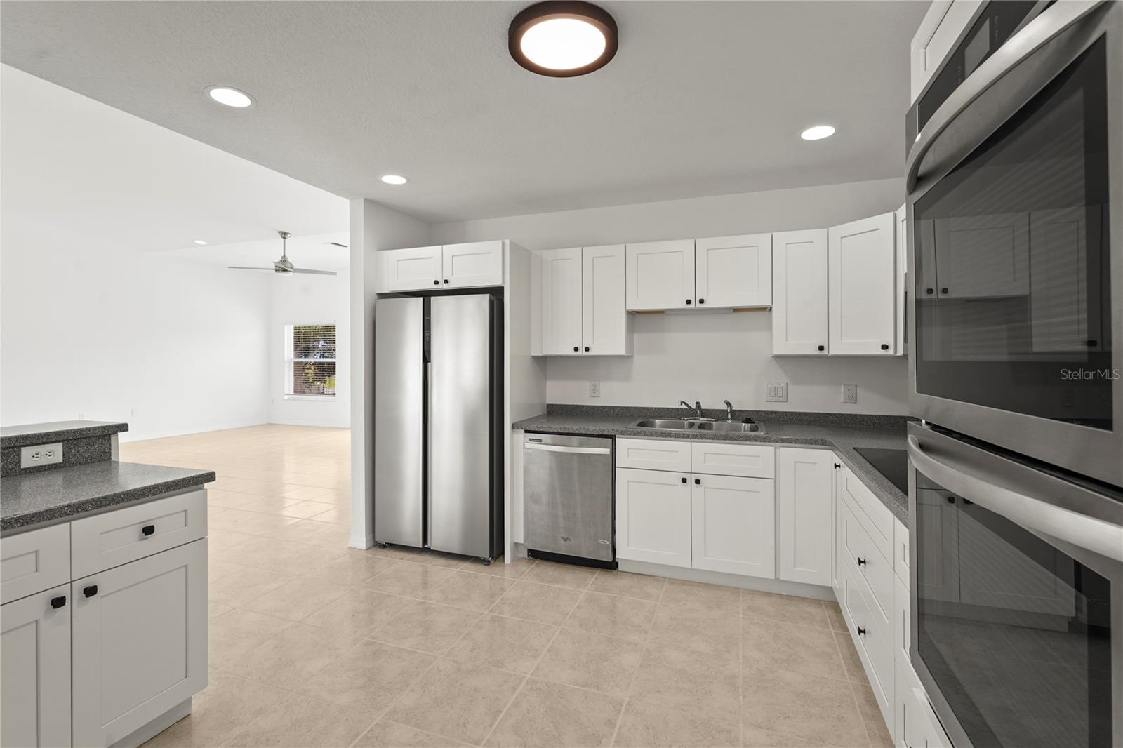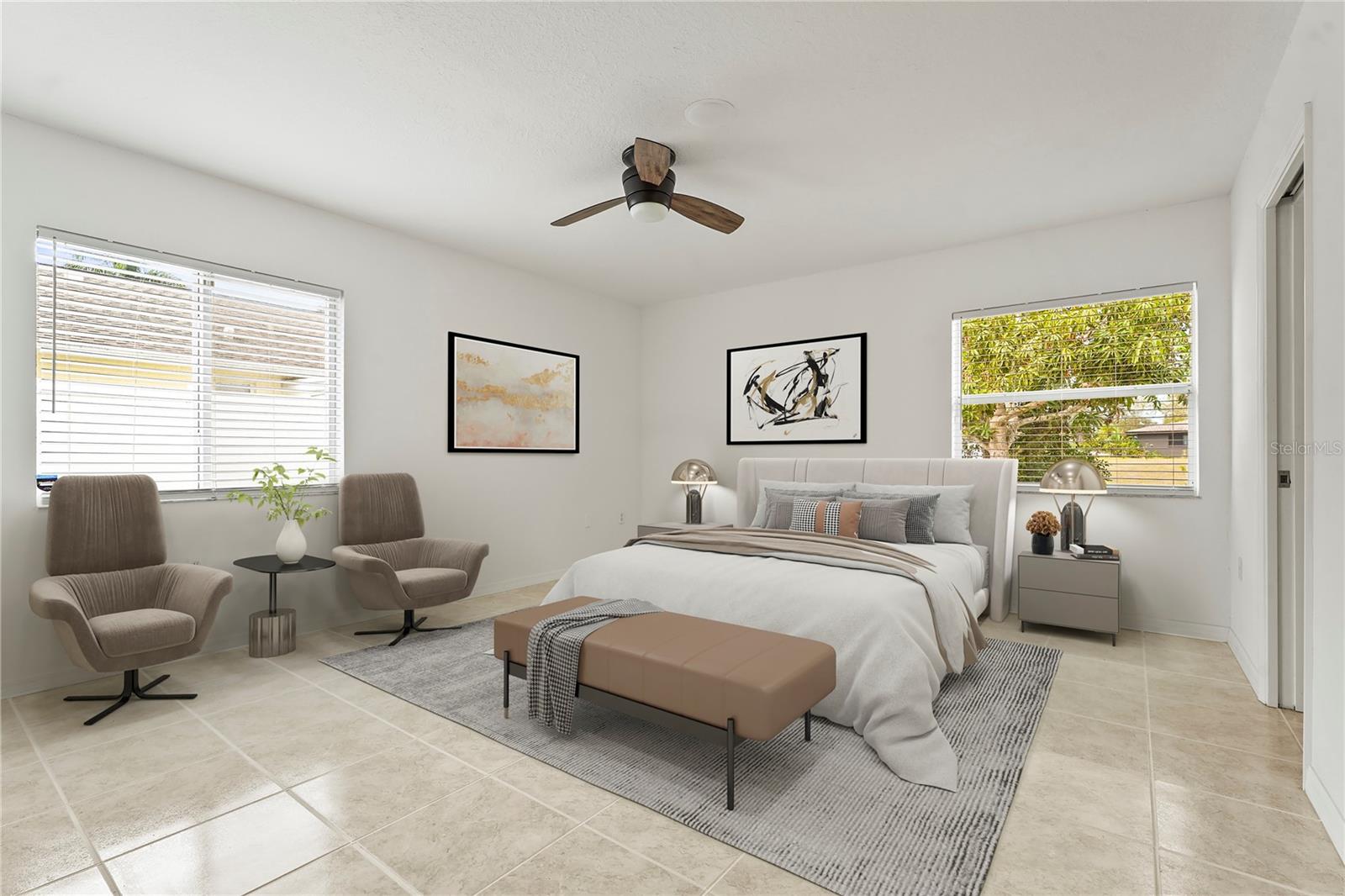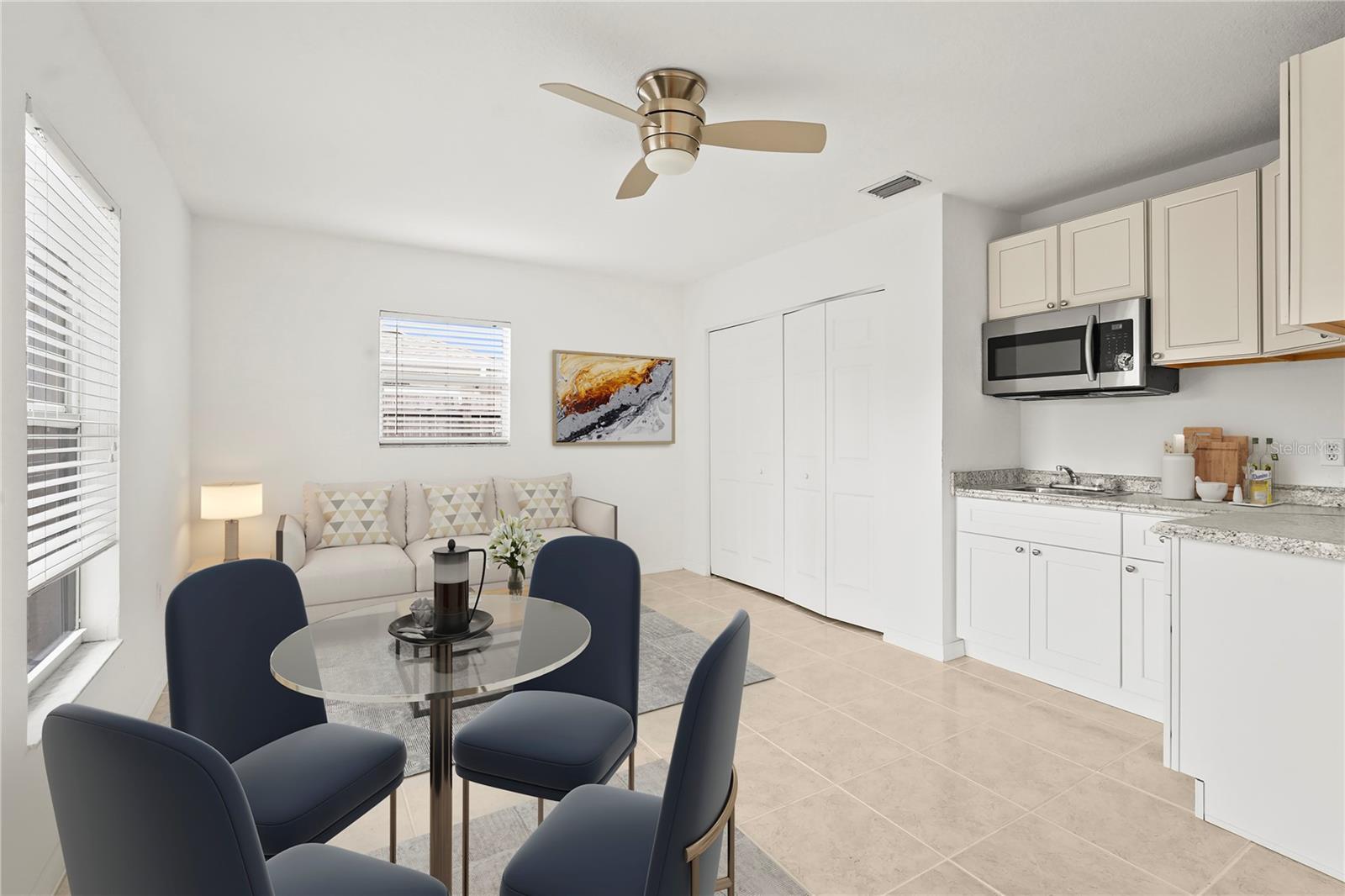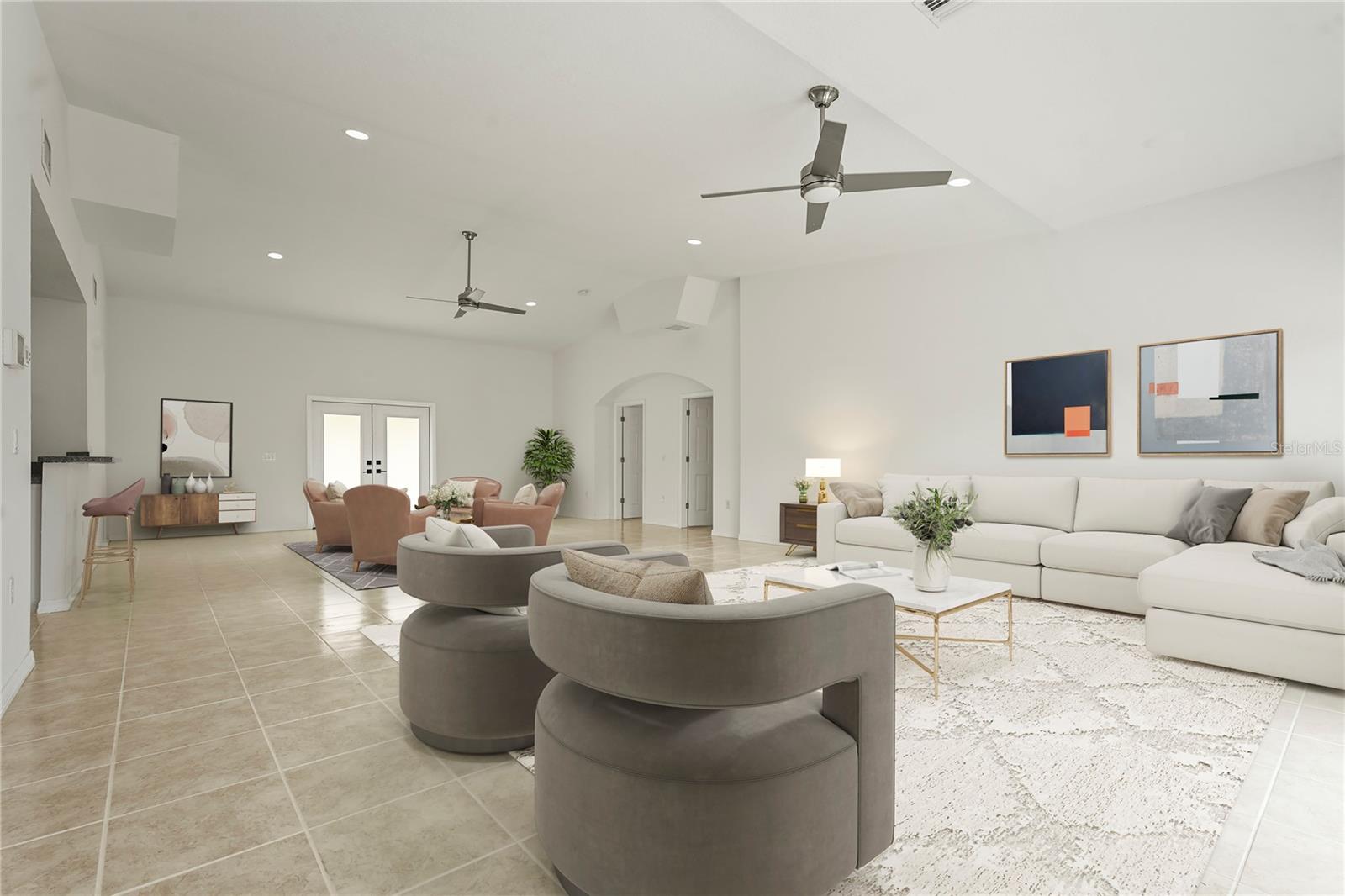 Welcome home to the highly sought-after South Gate community! Step through the elegant double-door entry into a spacious great room with soaring ceilings, perfect for entertaining. The home features a fully renovated kitchen, complete with two built-in ovens, a breakfast bar, and ample space for culinary creations. This split-plan home offers three bedrooms and three bathrooms, including a unique third bedroom with an adjoining bonus space—complete with a kitchenette, en-suite bathroom with a hydro tub, and private entry, making it ideal for guests or multi-generational living. Enjoy outdoor living on the large back patio, overlooking a mature landscaping and beautiful Phillippi Creek. Additional highlights include a brand-new roof installed in 2025, hurricane impact windows and garage door, two water heaters, newer AC and electrical, and an epoxy-finished garage floor for a polished look. The home was staged for photos. Don’t miss this rare gem in South Gate—schedule your showing today!