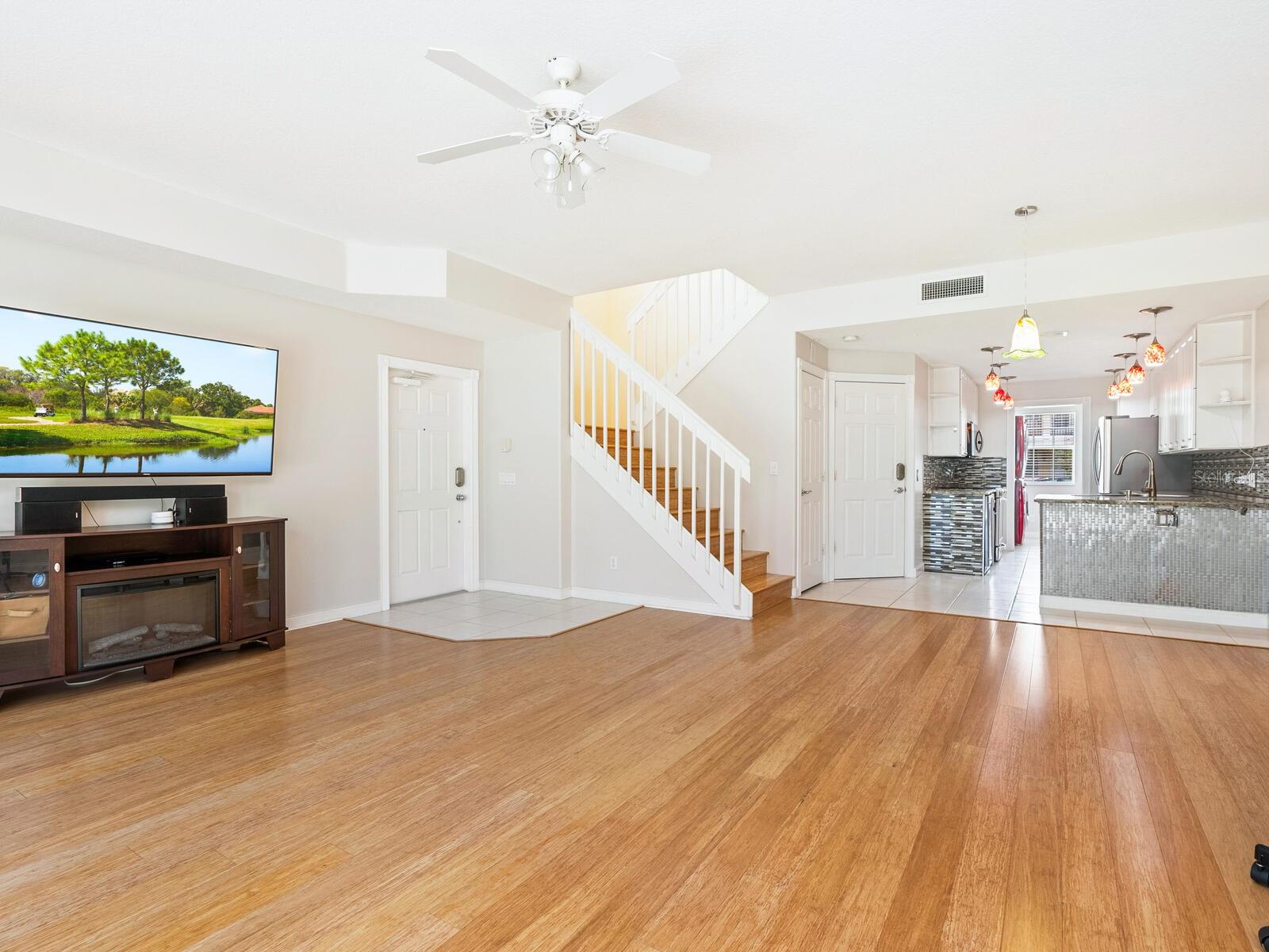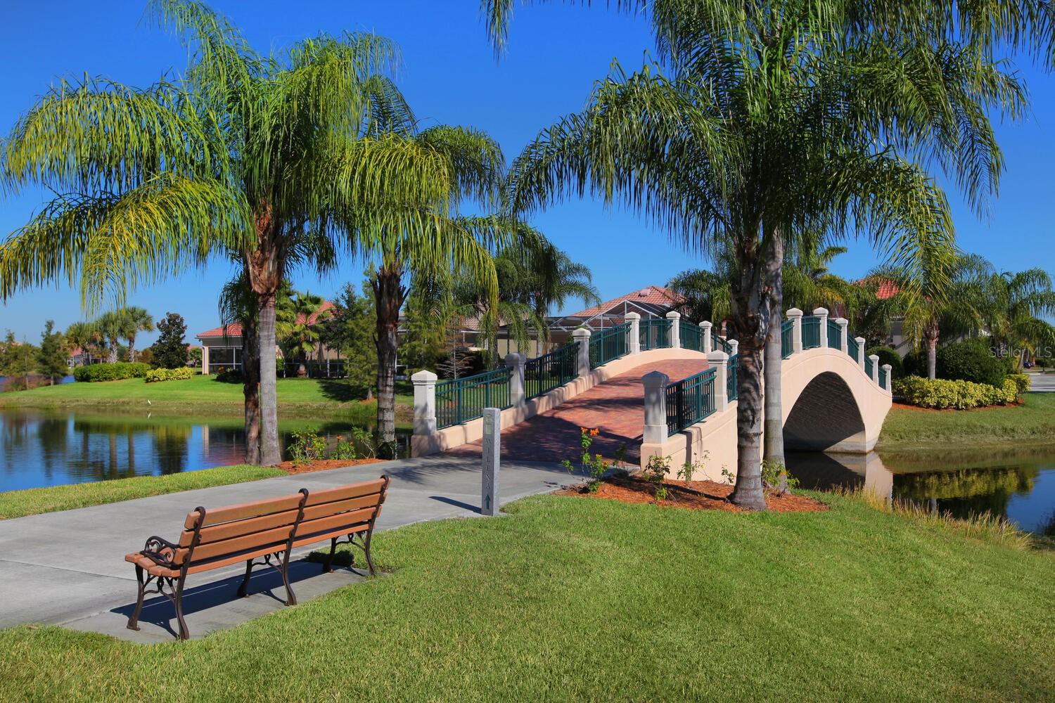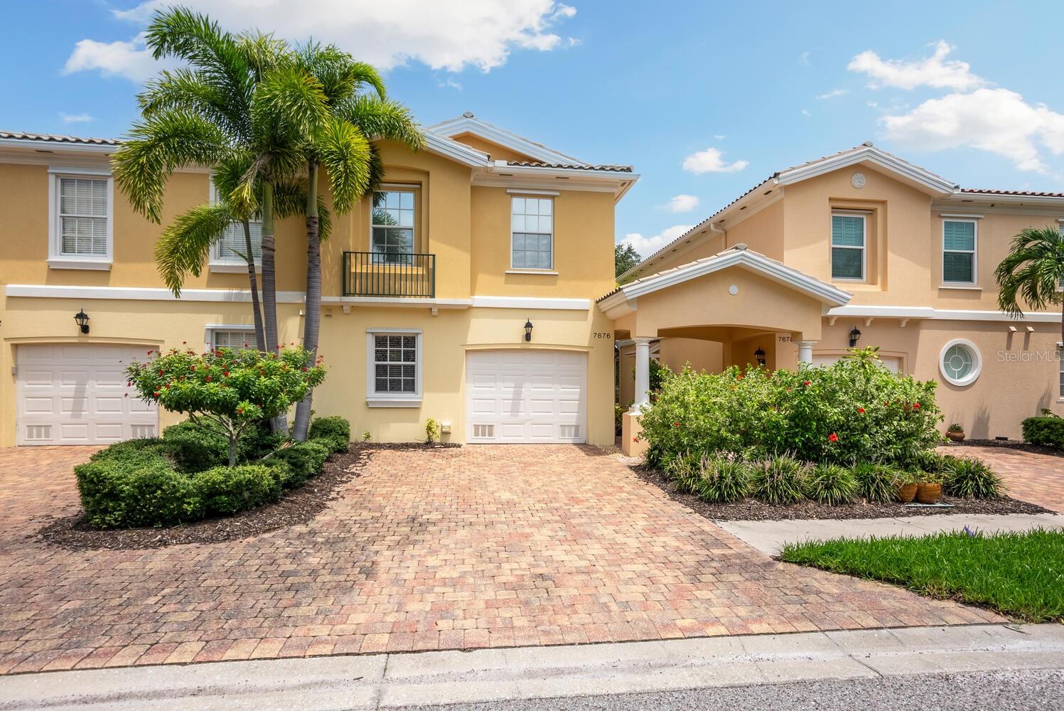 One or more photo(s) has been virtually staged. Step into this bright and airy 3-bedroom, 2.5-bath Catalina townhome, offering 1,628 sq. ft. of open, inviting space. Enjoy seamless indoor-outdoor living with a great room featuring impact-rated sliders that open to a spacious screened lanai—perfect for entertaining family or guests or simply relaxing in the lush, tropical surroundings. The home boasts a modern kitchen, bamboo flooring, and a luxurious primary suite with a preserve view, beautifully tiled walk-in shower, dual vanities, and soaking tub. Located in the picturesque, guard-gated Villagewalk community, this townhome offers access to a wealth of resort-style amenities including a clubhouse, fitness center, lagoon pool, lap pool, café, tennis, pickleball, basketball, bocce, and more. Enjoy miles of walking and biking paths, a full calendar of activities, and benefit from top-rated schools. With nearby shopping, dining, Legacy Trail, and Siesta Key Beach, plus quick access to downtown Sarasota and major airports, this is the ideal place to embrace your dream lifestyle.