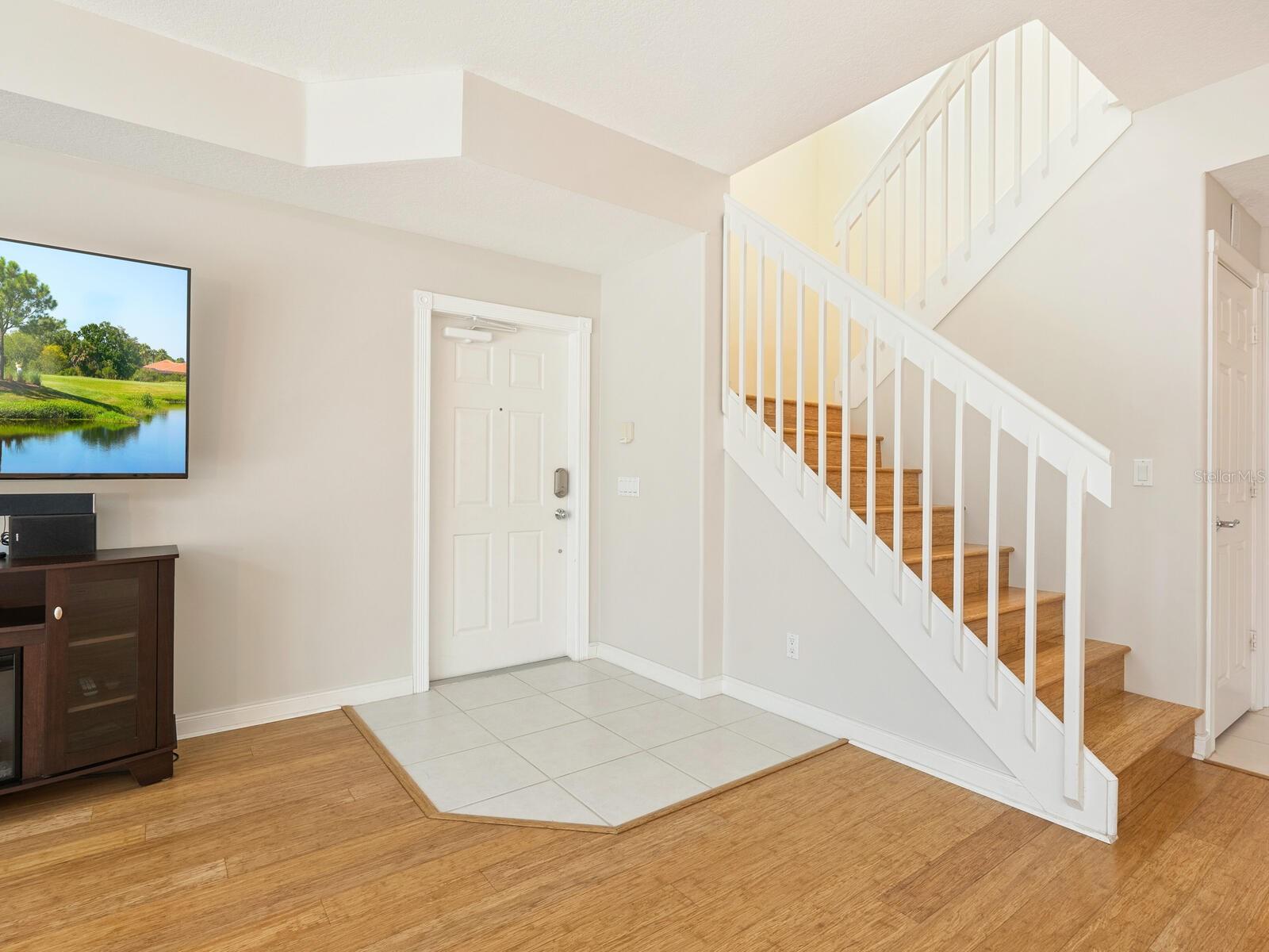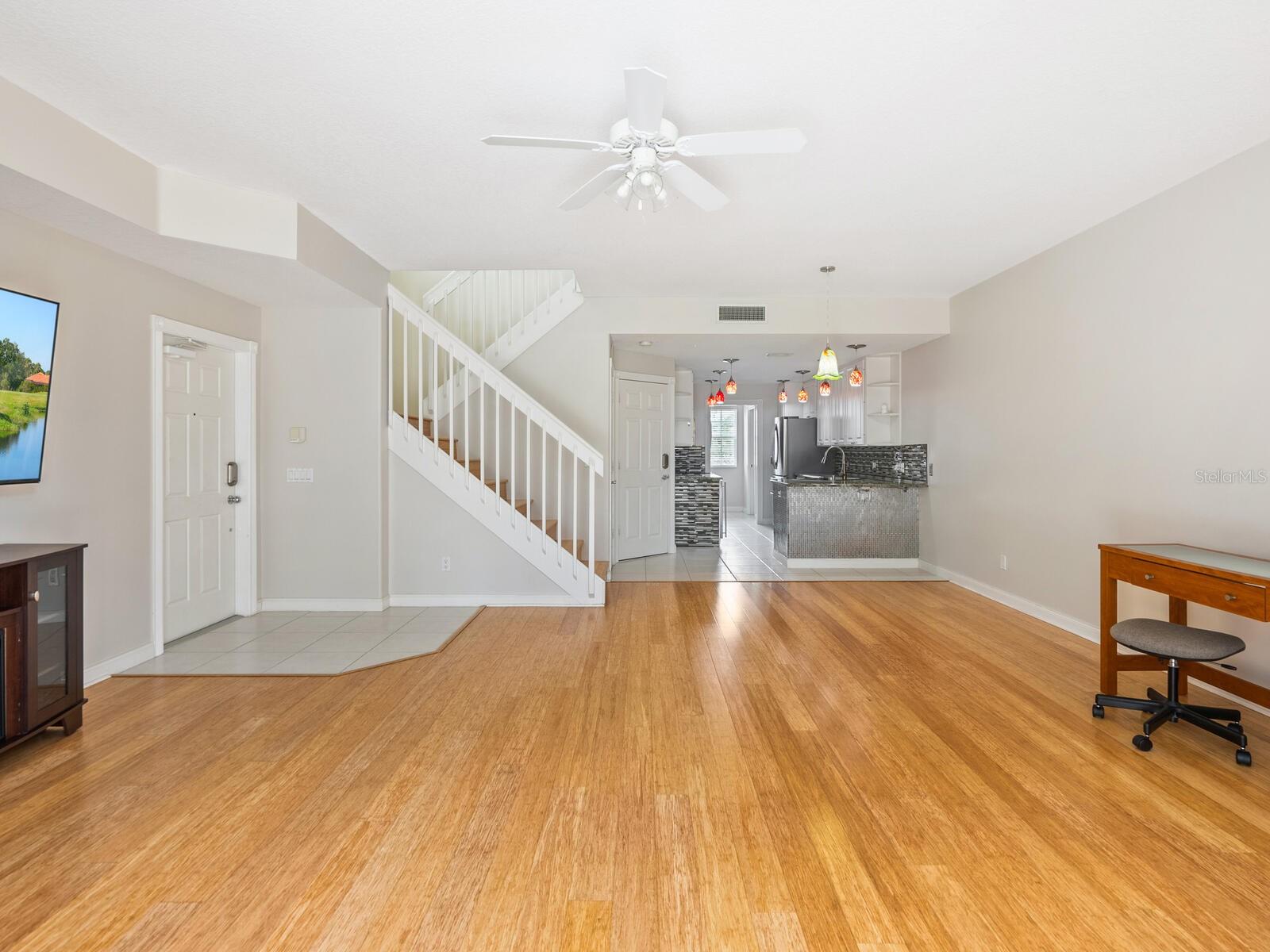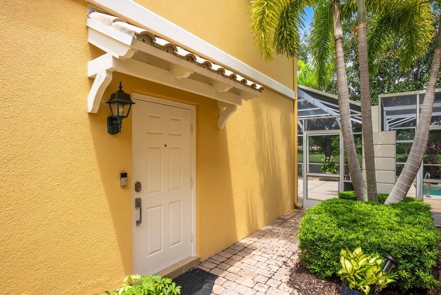 One or more photo(s) has been virtually staged. Step into this bright and airy 3-bedroom, 2.5-bath Catalina townhome, offering 1,628 sq. ft. of open, inviting space. Enjoy seamless indoor-outdoor living with a great room featuring impact-rated sliders that open to a spacious screened lanai—perfect for entertaining family or guests or simply relaxing in the lush, tropical surroundings. The home boasts a modern kitchen, bamboo flooring, and a luxurious primary suite with a preserve view, beautifully tiled walk-in shower, dual vanities, and soaking tub. Located in the picturesque, guard-gated Villagewalk community, this townhome offers access to a wealth of resort-style amenities including a clubhouse, fitness center, lagoon pool, lap pool, café, tennis, pickleball, basketball, bocce, and more. Enjoy miles of walking and biking paths, a full calendar of activities, and benefit from top-rated schools. With nearby shopping, dining, Legacy Trail, and Siesta Key Beach, plus quick access to downtown Sarasota and major airports, this is the ideal place to embrace your dream lifestyle.