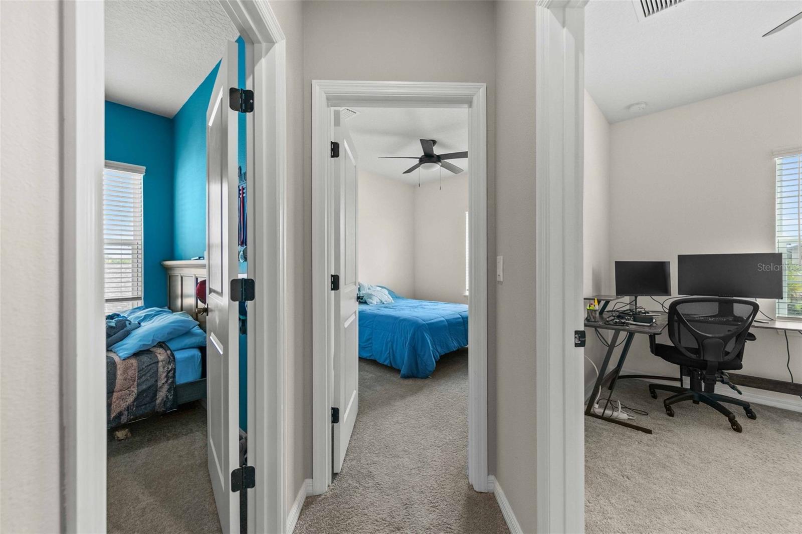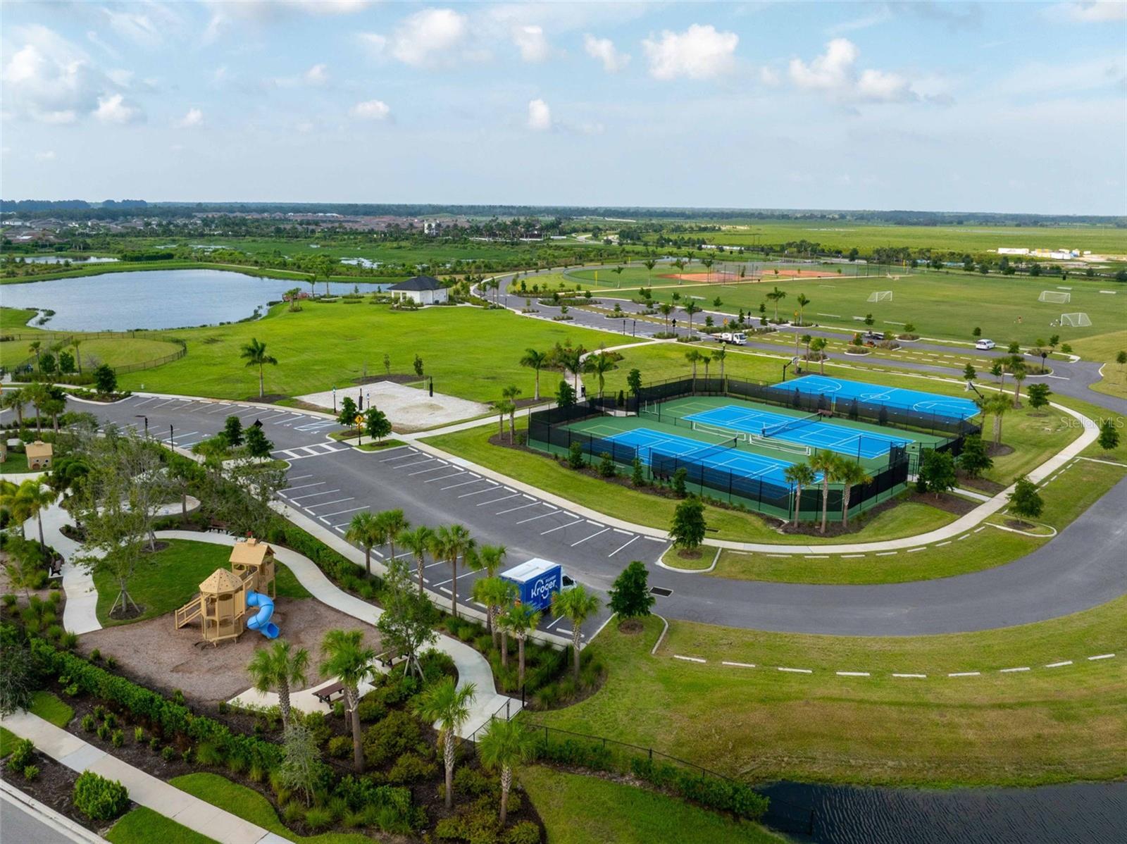 Available for Immediate Occupancy. Built in 2021, this beautiful 4 bedroom, 2.5 bathrooms home in Cassia at Skye Ranch. Starting in the fall 2025 you can walk the kids to the new K-8 school just outside the entrance gate.. High school to be built nearby. Walk to Pickleball, Tennis, extra large resort pool, separate junior Olympic lap pool, lots of pool decks with chairs, Soccer, indoor basketball, state of the art workout facilities, Cafe, Group classes, Summer Camps, Sand Volleyball, baseball, Playground, dog park. walking trails and bike paths The rear view is the back yard and a beautiful conservation area. The ground floor features laminate throughout with a spacious open floor plan. Beautiful kitchen with island and solid quartz counter tops. Living room has an electric fireplace. Open and spacious dining room. Large Flex space that can be used for what you need. Enjoy sitting on the screened lanai. The half bath and Laundry room with extra storage are off the flex space. Upstairs the master bedroom has a large en suite bathroom, Quartz counter tops, sitting room, walk in closet and beautiful views ! At the top of the stairs is the large game room with the master to the left and the 3 other bedrooms to the right. CDD is included in the real estate tax bill. Skye Ranch is located just a short drive to I-75. The beautiful beaches of Siesta Key, Downtown Sarasota, Downtown Waterside, UTC Mall are a short car ride away. New roof December 2024