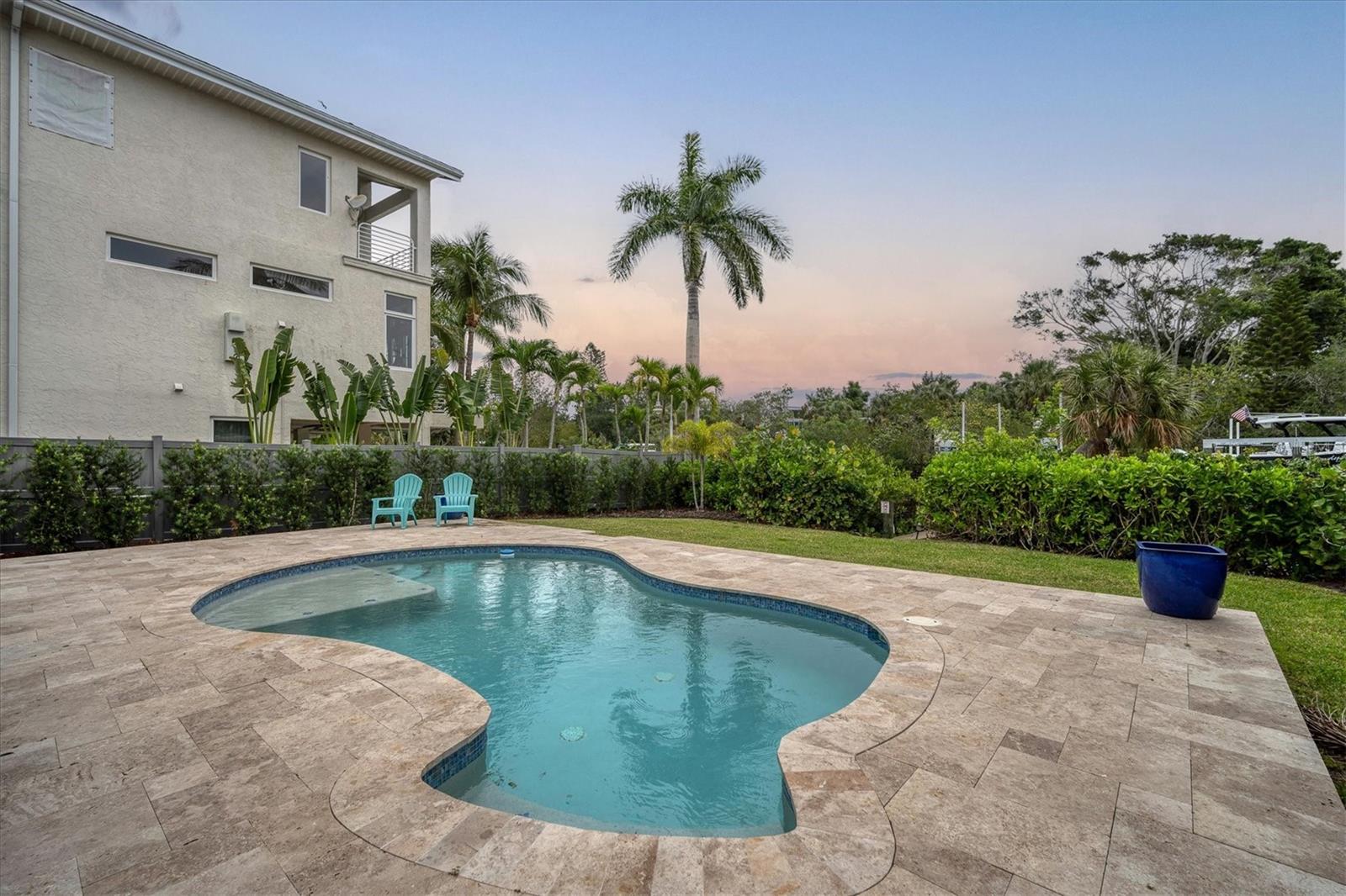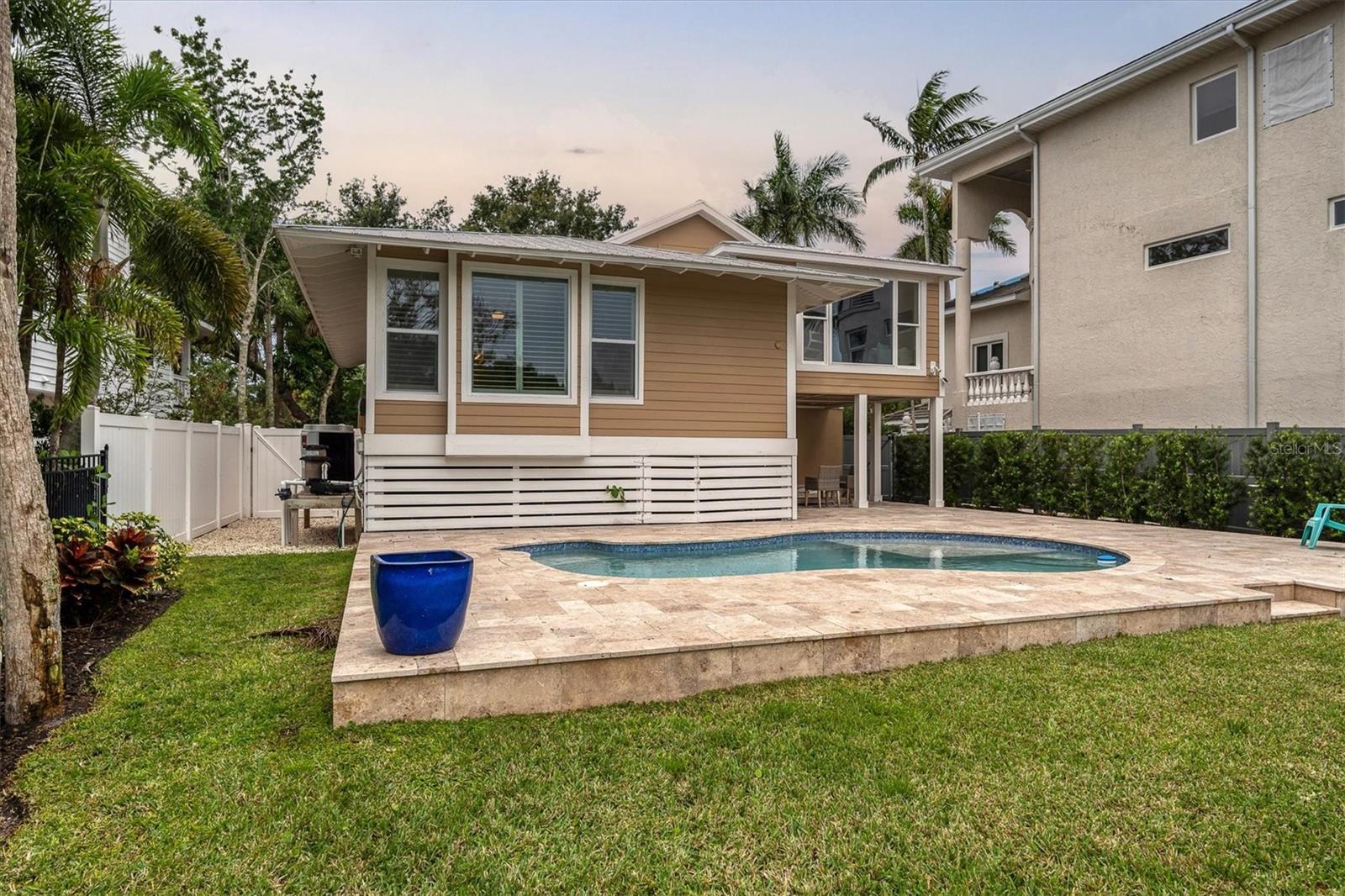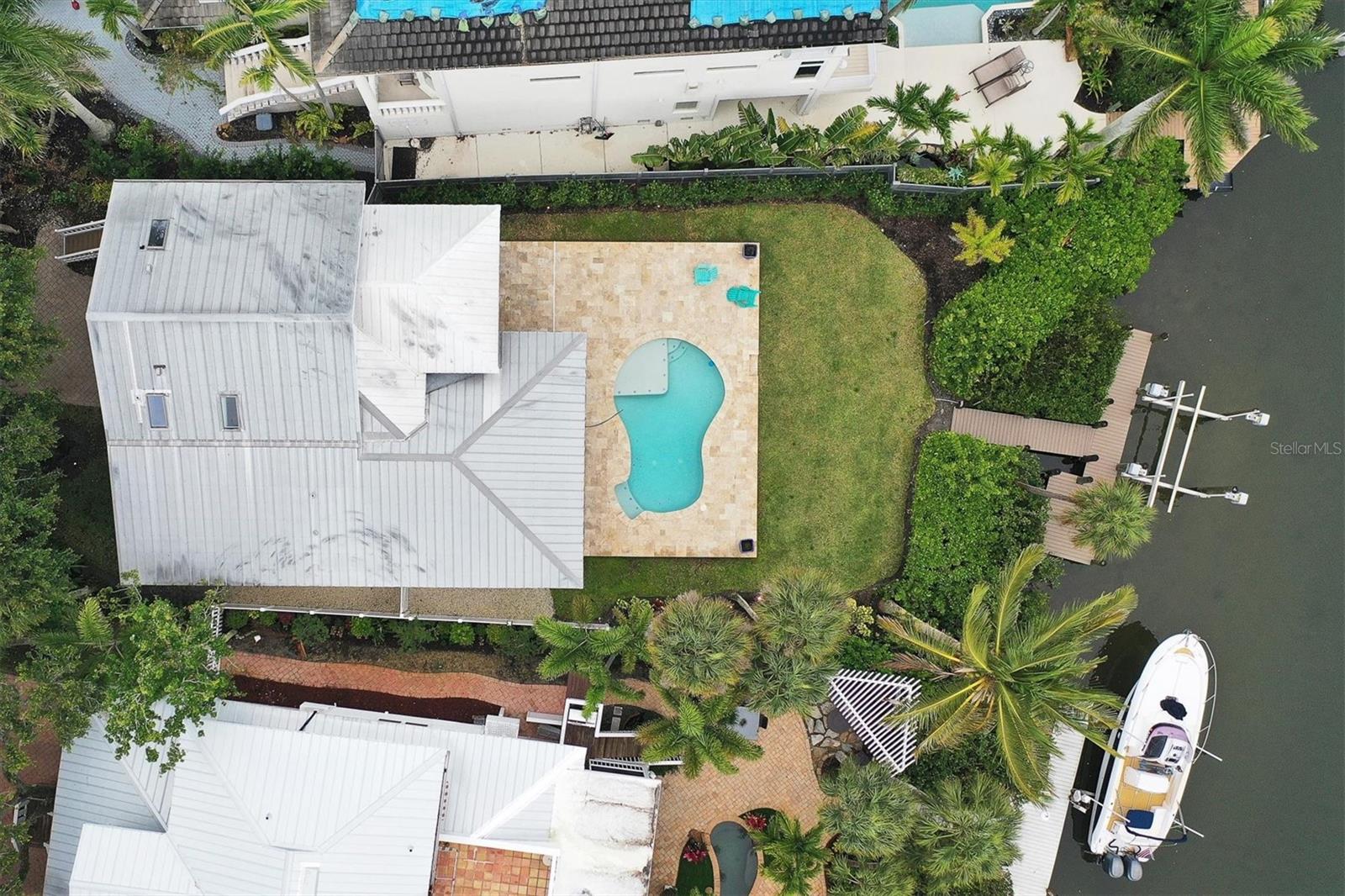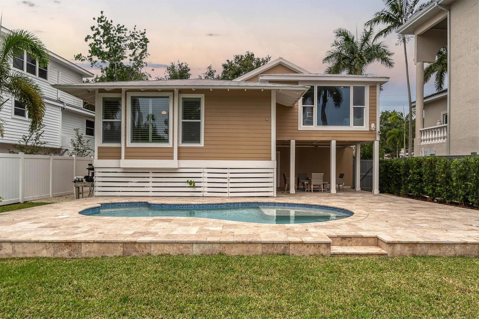 Discover your perfect Siesta Key sanctuary, where sophistication meets practicality. This exceptional three-bedroom, three-bath residence, positioned on the scenic Grand Canal, was meticulously renovated in 2021 to create a truly distinctive home. The renovation spared no expense, featuring a pristine pool with a travertine marble deck, a sleek modern kitchen, hurricane impact windows, two A/C systems, durable Hardie Board siding, elegant plantation shutters, and stylish luxury vinyl plank flooring. The property's impressive details continue with beautifully landscaped gardens, complete with custom lighting and irrigation. The primary bedroom is enhanced by a custom-built closet that includes an integrated washer and dryer, while the guest rooms and garage offer tailored closets and a practical workbench. A standout addition to the property is the newly constructed reinforced composite dock, designed and built by the esteemed Custom Dock and Davits Company. It features a 10,000-pound stainless steel beam-less cradle lift and provides effortless access to the Grand Canal, making it an ideal spot for boating enthusiasts. Don't miss the opportunity to experience this extraordinary home where elegance, convenience, and style come together. Arrange your viewing today and immerse yourself in the allure of Siesta Key living.