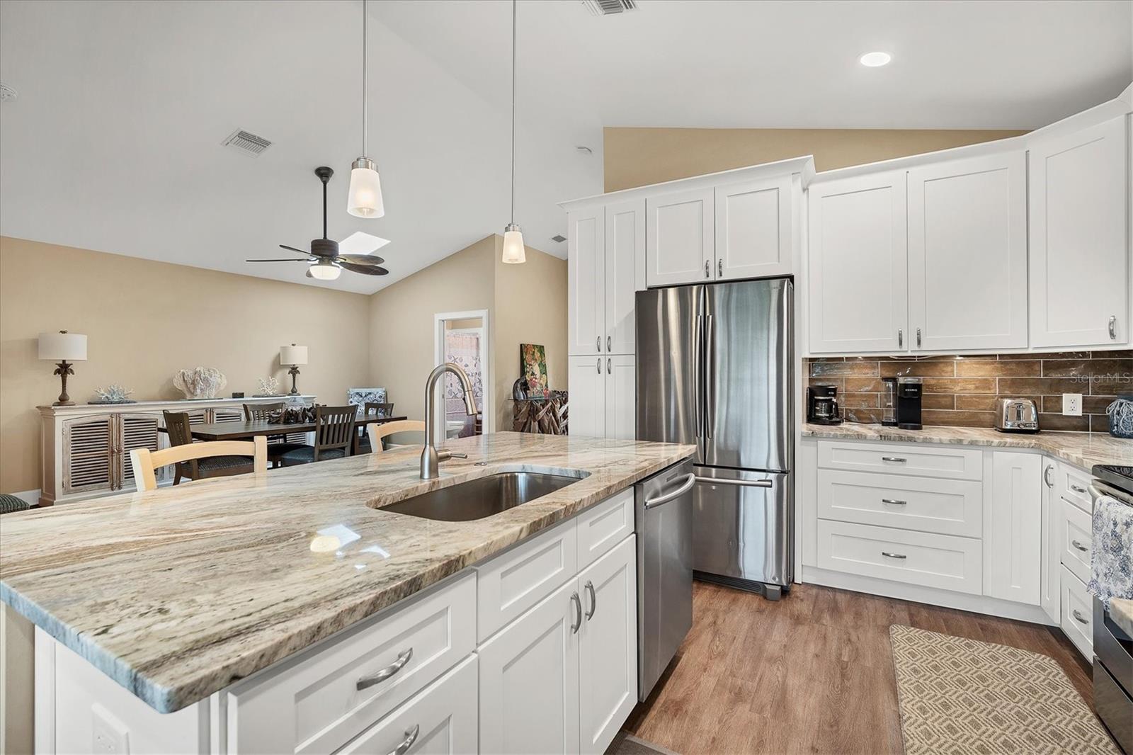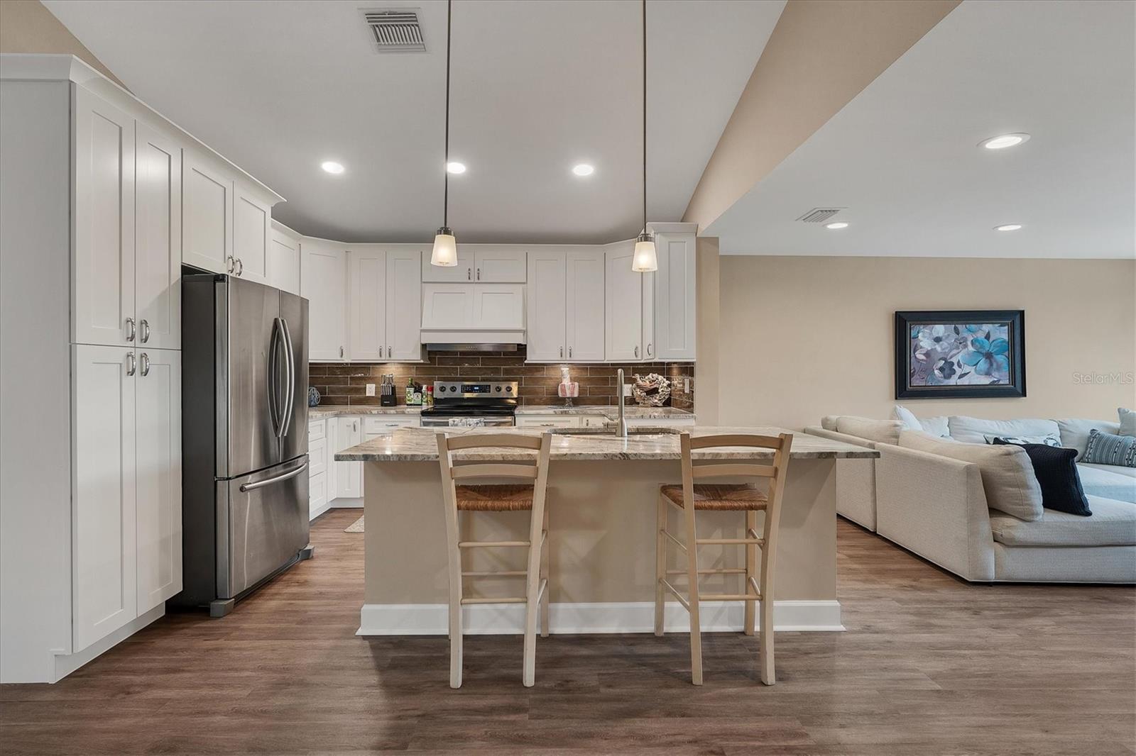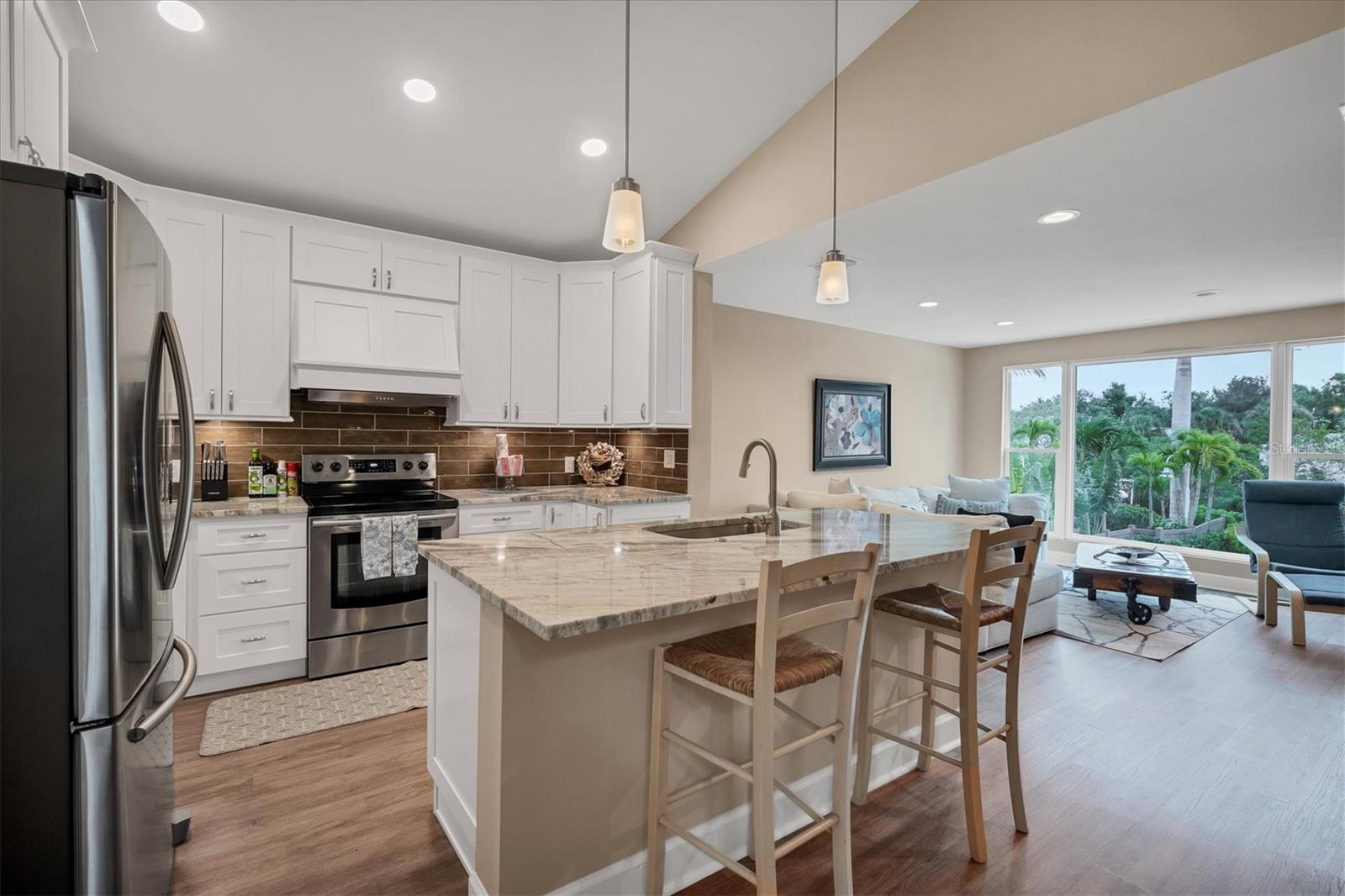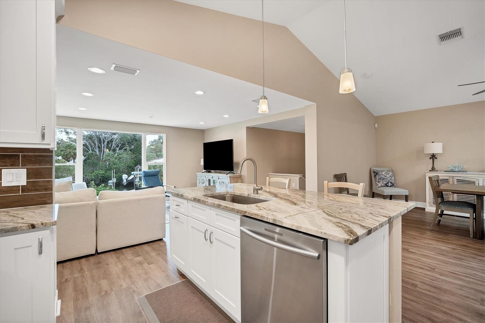 Discover your perfect Siesta Key sanctuary, where sophistication meets practicality. This exceptional three-bedroom, three-bath residence, positioned on the scenic Grand Canal, was meticulously renovated in 2021 to create a truly distinctive home. The renovation spared no expense, featuring a pristine pool with a travertine marble deck, a sleek modern kitchen, hurricane impact windows, two A/C systems, durable Hardie Board siding, elegant plantation shutters, and stylish luxury vinyl plank flooring. The property's impressive details continue with beautifully landscaped gardens, complete with custom lighting and irrigation. The primary bedroom is enhanced by a custom-built closet that includes an integrated washer and dryer, while the guest rooms and garage offer tailored closets and a practical workbench. A standout addition to the property is the newly constructed reinforced composite dock, designed and built by the esteemed Custom Dock and Davits Company. It features a 10,000-pound stainless steel beam-less cradle lift and provides effortless access to the Grand Canal, making it an ideal spot for boating enthusiasts. Don't miss the opportunity to experience this extraordinary home where elegance, convenience, and style come together. Arrange your viewing today and immerse yourself in the allure of Siesta Key living.
