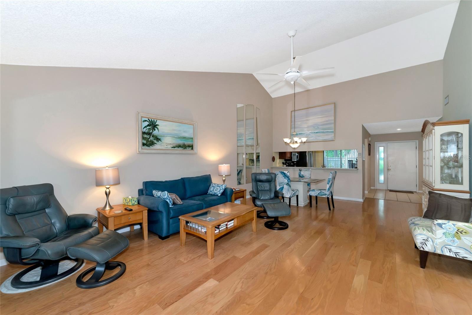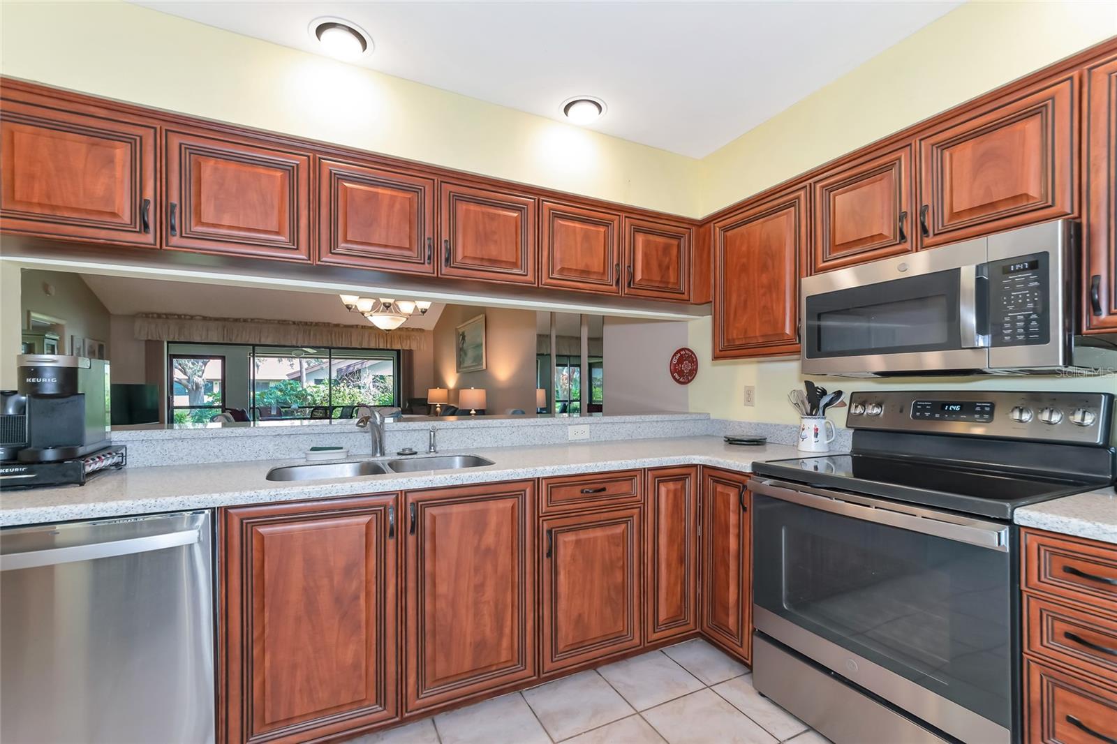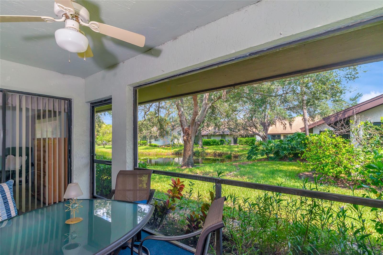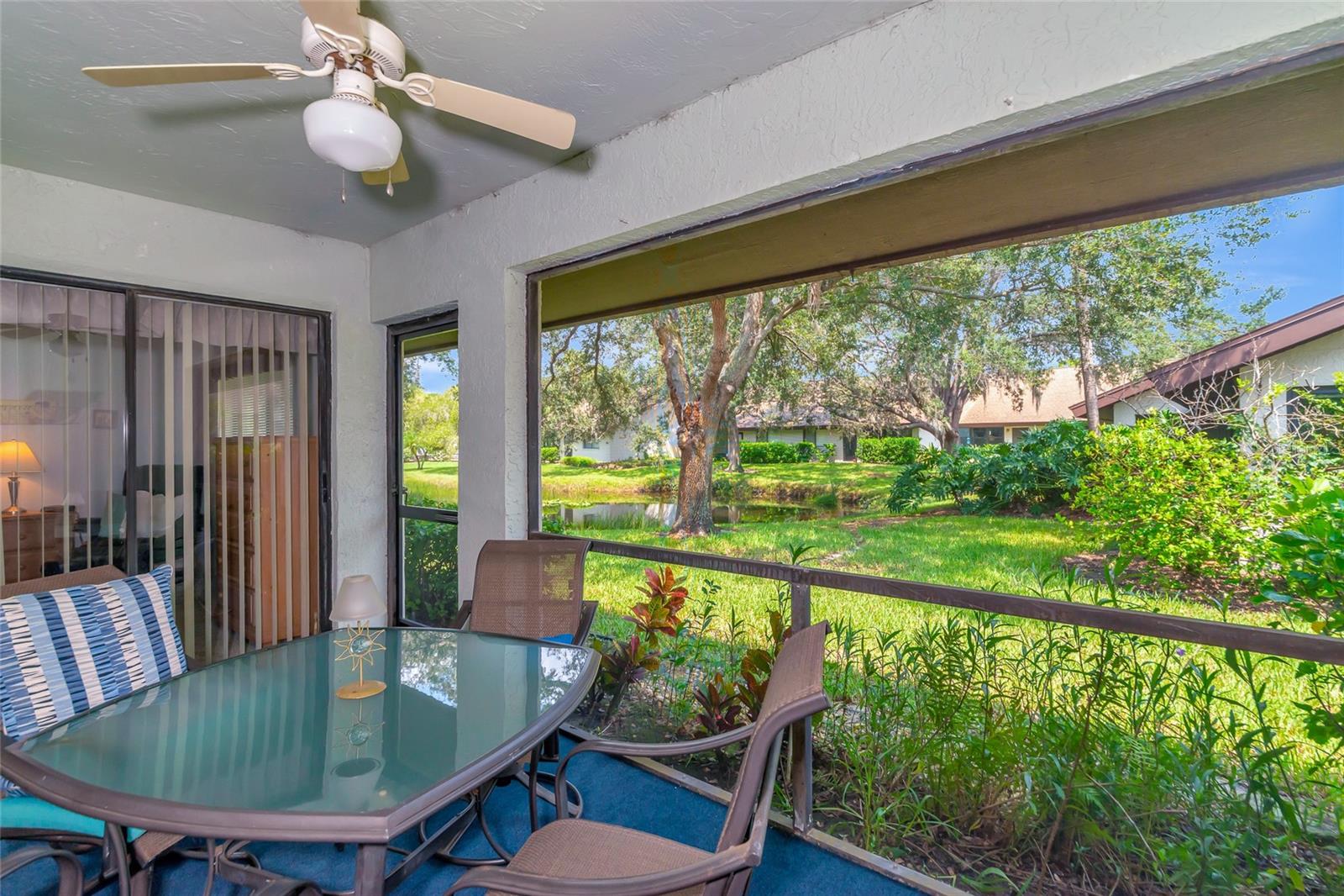 Experience serene, maintenance-free living with picturesque pond views in The Meadows, one of Sarasota's most sought-after communities. This beautiful home welcomes you with lush landscaping and a convenient one-car garage. Inside, you'll be welcomed by soaring ceilings, pristine tile and laminate flooring, and a striking wall of sliding doors and large windows that bathe the space in natural light. Just off the foyer, the fully equipped kitchen boasts a spacious breakfast bar ideal for morning coffee or casual conversations, complemented by sleek stainless steel appliances, updated wooden cabinetry, and direct access to the pergola for grilling or outdoor dining. The open-concept dining and living area is perfect for gatherings and entertaining. The primary bedroom is a luxurious retreat, complete with a private patio entrance, an expansive walk-in closet, dual vanities, and an updated walk-in shower, ideal for unwinding after a long day. An additional full bedroom and bathroom provide ample space for a home office or overnight guests. Relax in the gorgeous screen-enclosed lanai, where you can savor beautiful sunsets and a glass of wine on warm summer evenings. The Meadows is a vibrant community offering a fantastic fitness center, a resort-style pool, pickleball courts, dining venues, and access to three 18-hole golf courses and a top-tier tennis complex. Plus, you’re just a short drive from award-winning beaches and popular shopping destinations. Don’t wait to make your dream a reality—call today for more details!