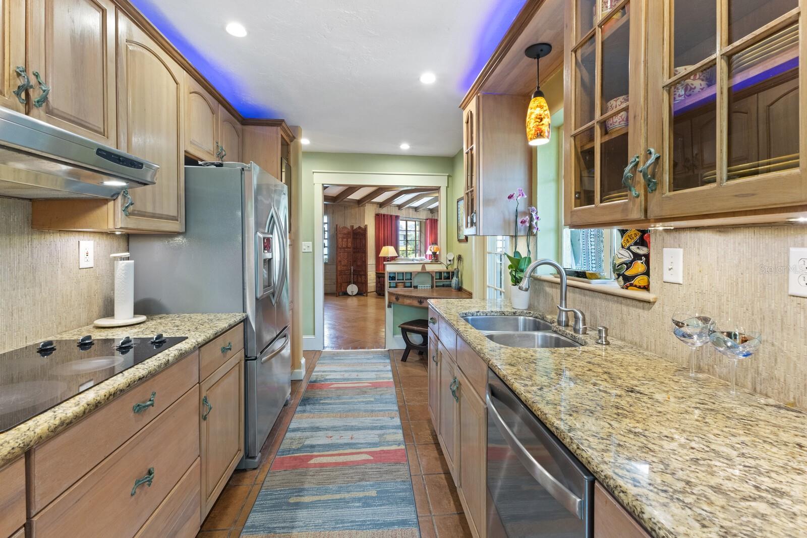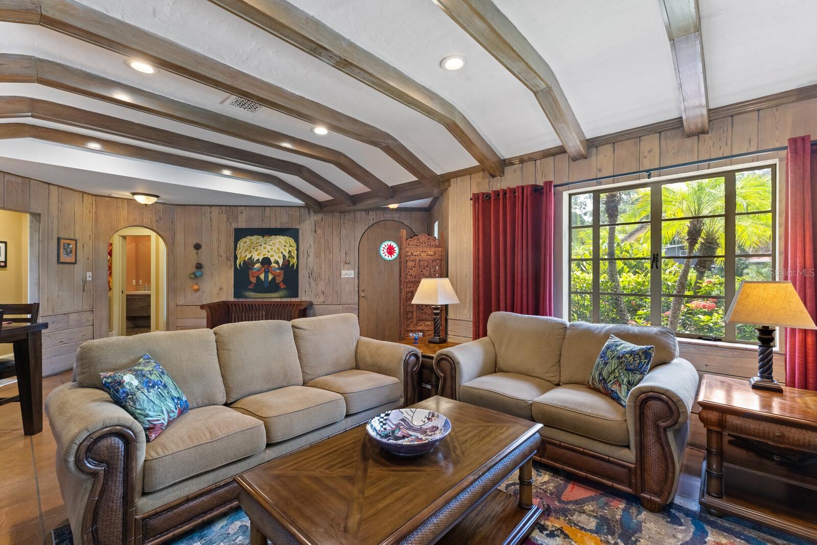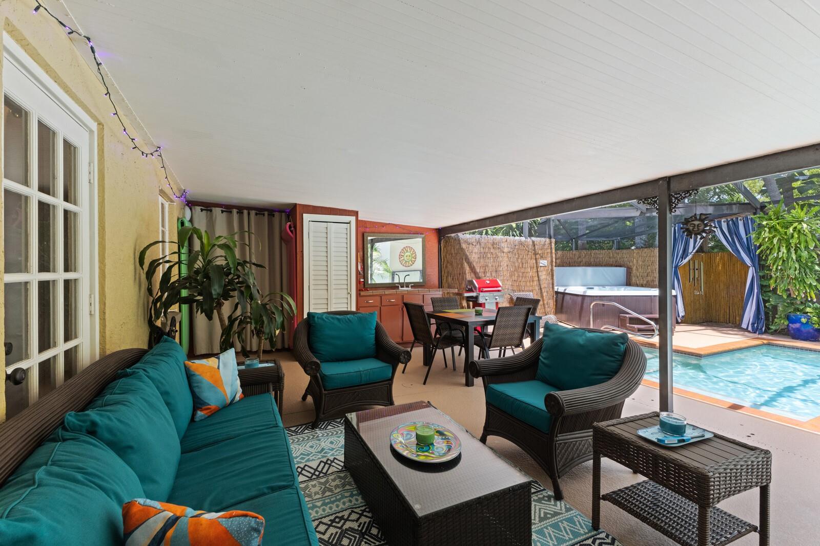 Move in Ready and not impacted by recent storms. Looking for a beautiful, vintage home in the Indian Beach neighborhood one block from a Sarasota Bayfront park? What if that home came with established, lucrative rental units providing built-in income? This opportunity might have it all for someone seeking a live/work situation in a highly desirable location. Historic charm abounds with stone porches, arched doorways, interior cypress panelling, beamed ceilings and a cozy fireplace. Yet, the amenities are updated and modern including stainless appliances, granite countertops and newer fixtures. The current floor plan allows for the owner's two bed, one & one half bath residence including an office, utility and private back yard retreat. There is also a two bed, one bath In-Law suite referred to as "romantic" and "pristine" in customer reviews. This idyllic getaway has a private, heated pool and tropical lanai. In addition, you'll find a one bed, one bath accessory dwelling unit with its own private pool and spa. Recently, a fully permitted additional bed/bath garage conversion was added to increase the potential of this opportunity. Each unit is spacious and distinctly seperate from the other allowing maximum privacy. Few details have been overlooked in this renovated ranch on a large corner parcel recognized by the City as multi-family. This property is nestled among the city's most significant cultural and educational institutions. Just two miles north of downtown and a short jaunt over the John Ringling Bridge to the beaches of Lido and Longboat Key.