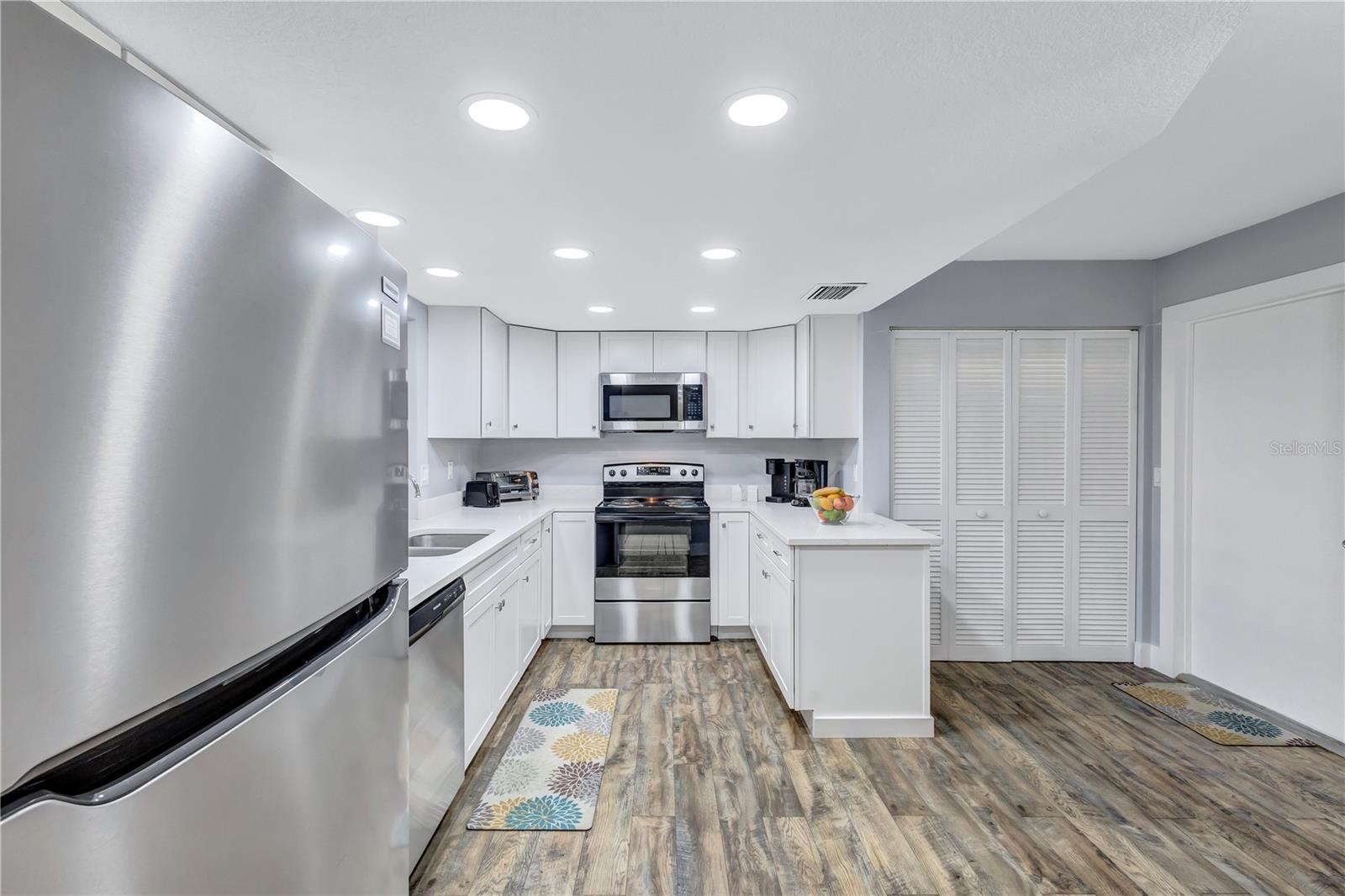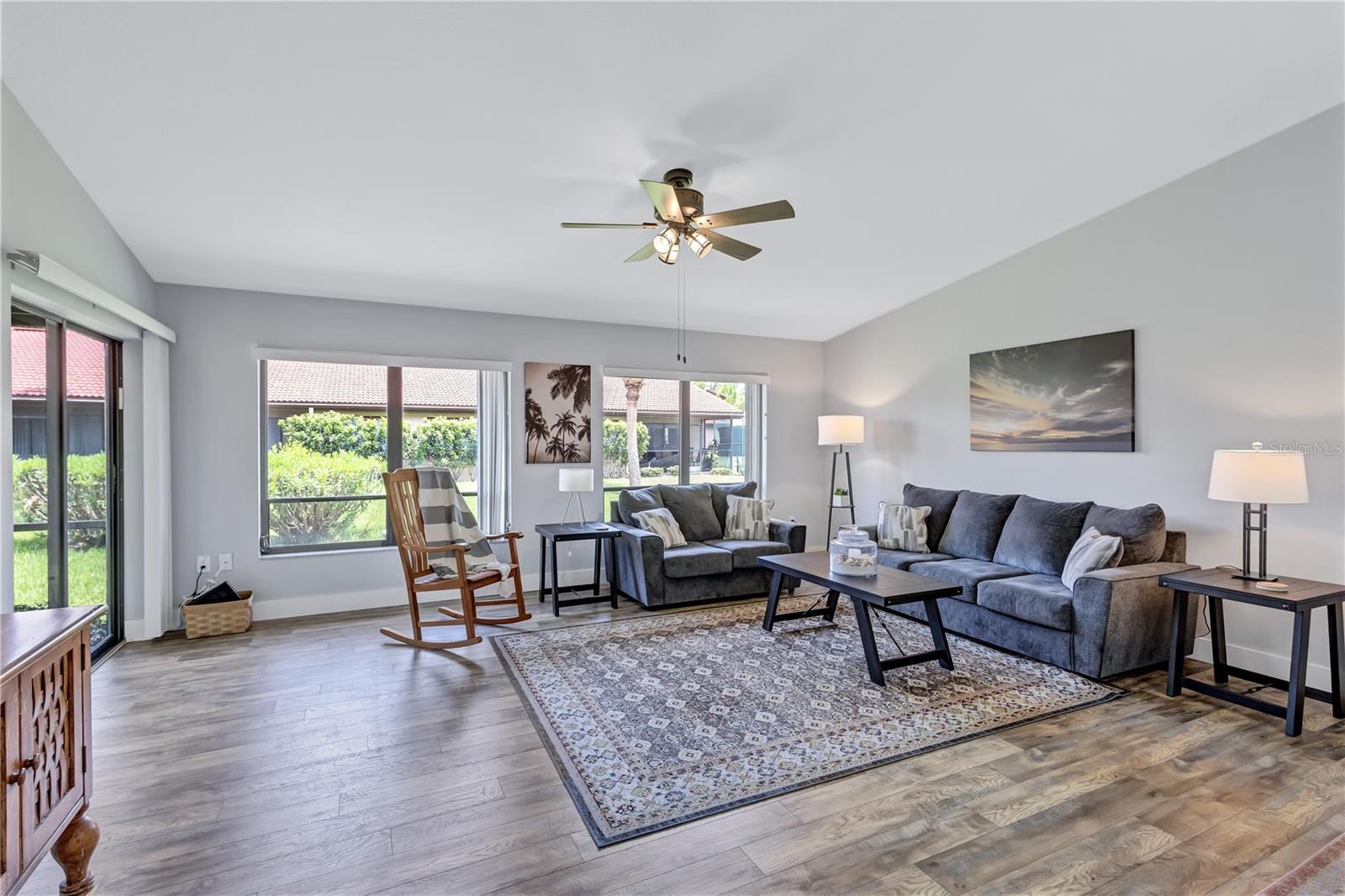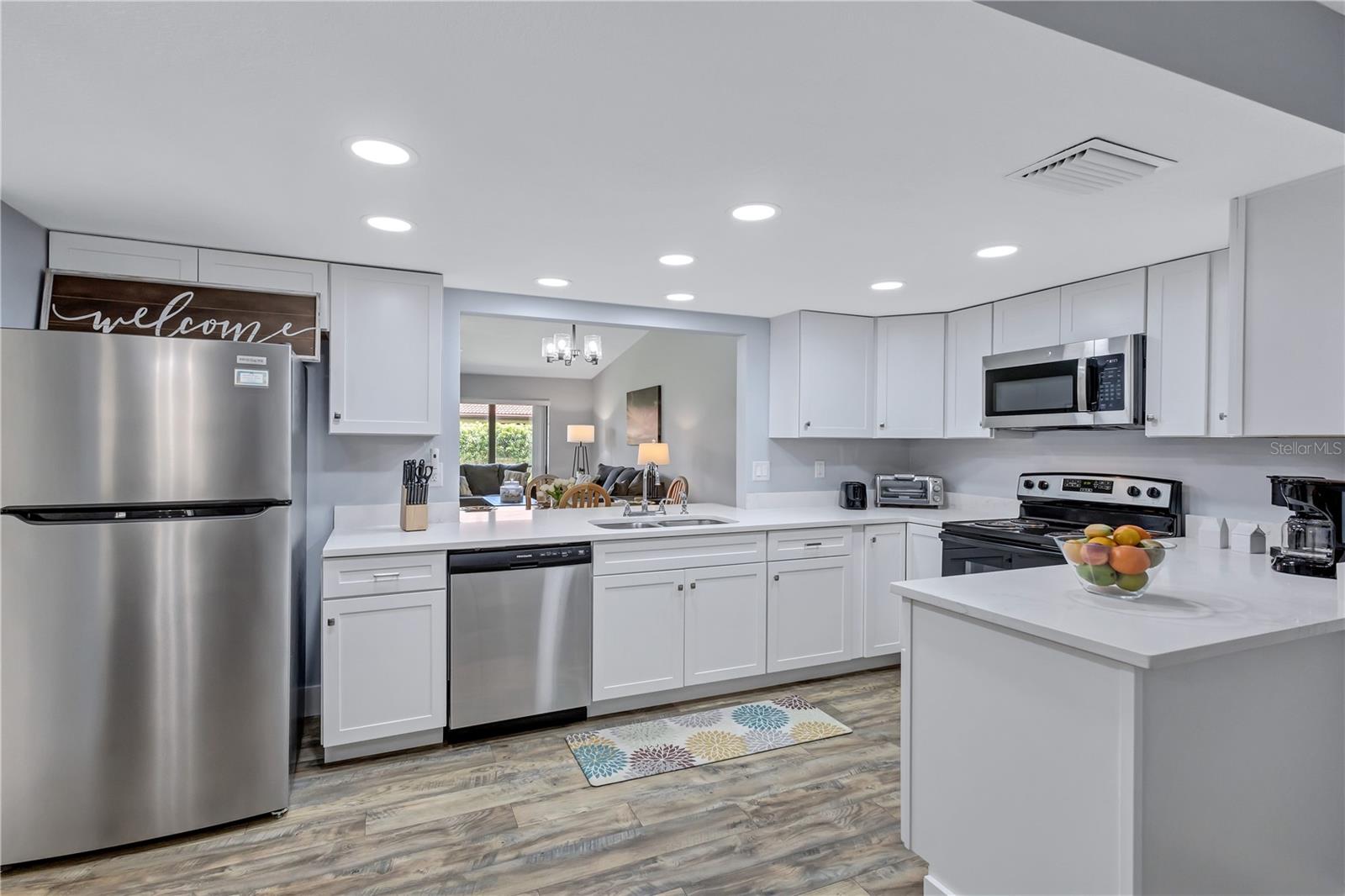 Your quiet oasis is nestled in the heart of Sarasota minutes to Siesta Key beaches, shopping, dining, and entertainment. Located in amenity-rich Village Des Pins, this villa-style condo community has grandfathered WEEKLY RENTAL opportunities perfect for second home buyers and investor needs. This two bedroom, two bath property is located in an excellent school district (and close to Pineview School for the Gifted) for full-time owners. Located on a quiet cul-de-sac street, this FULLY FURNISHED, newly remodeled unit includes updated kitchen and baths, recessed lighting, luxury vinyl flooring, new interiors doors, 5” baseboards throughout, and vaulted ceiling. A large skylight in the tiled entryway greets you as you enter this bright and airy home. The kitchen has new cabinets and countertops, a closet pantry, and an expanded kitchen/dining room pass-through. The roomy eat-in breakfast area is the perfect alcove for a home-office. The expansive great room with vaulted ceiling has windows overlooking the gardens and sliders to the covered/screened patio. The primary bedroom also has sliders to the patio along with an oversized walk-in closet and en-suite bath. The second bedroom has two walls of windows and is perfect for family and guests. This home boasts inside washer/dryer and an attached one-car garage plus driveway parking. Village Des Pins is a beautifully landscaped 25-acre community with pool, clubhouse, tennis and pickleball courts, a putting green, shuffleboard, grilling areas, and beautiful water features. Don’t missing this opportunity to enjoy all Sarasota has to offer!