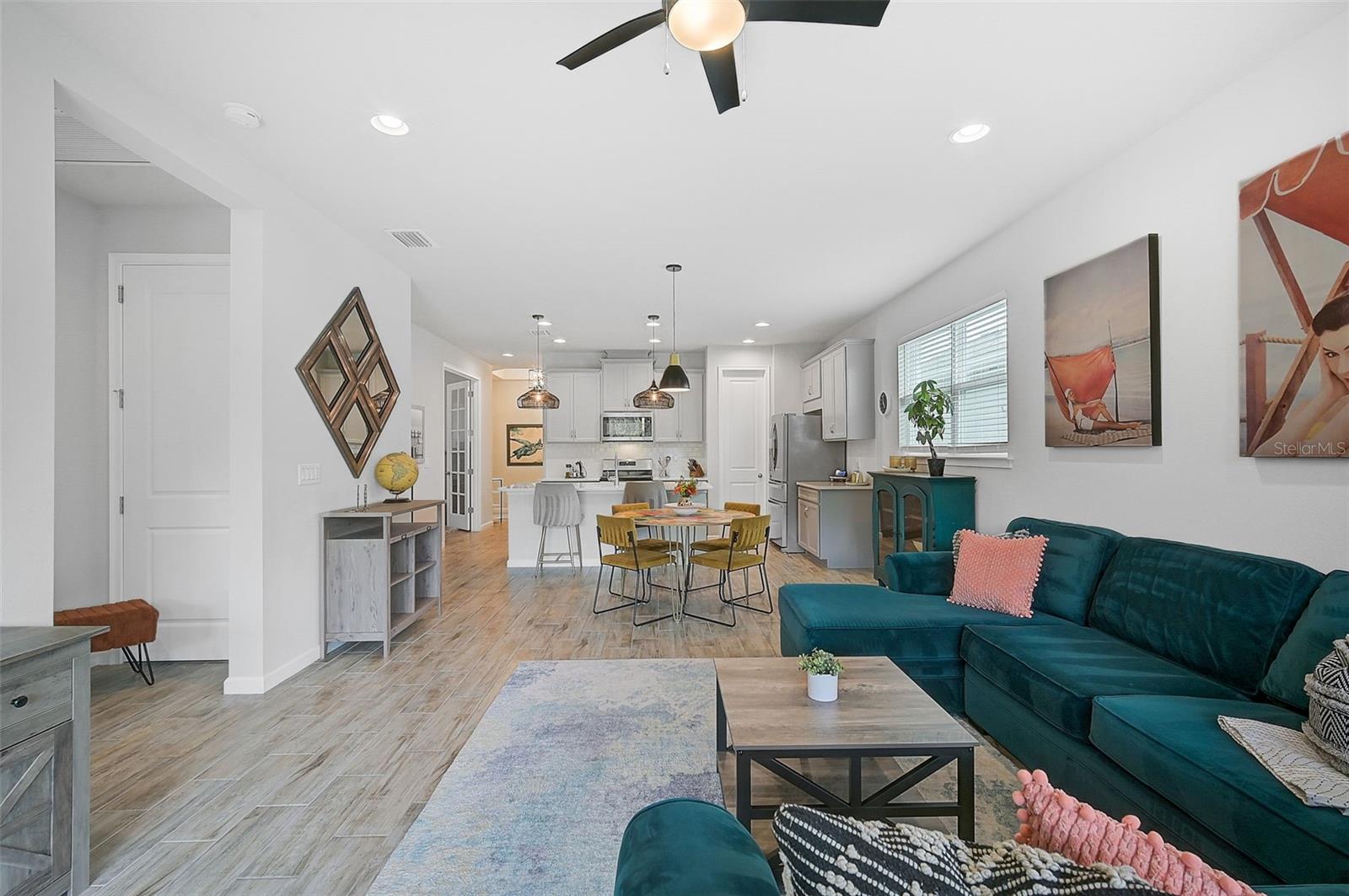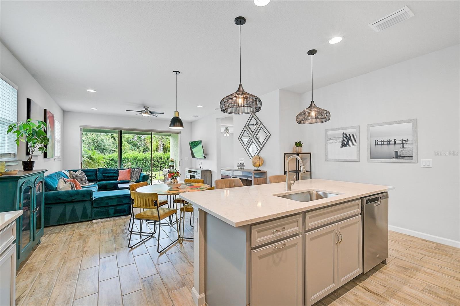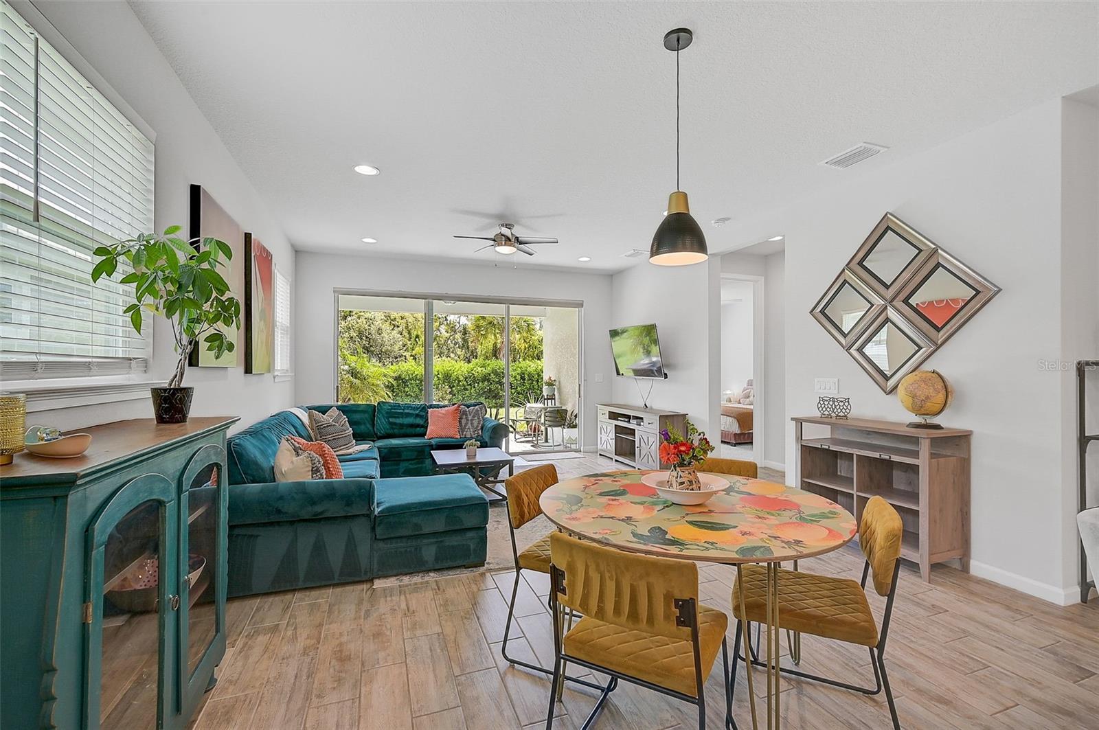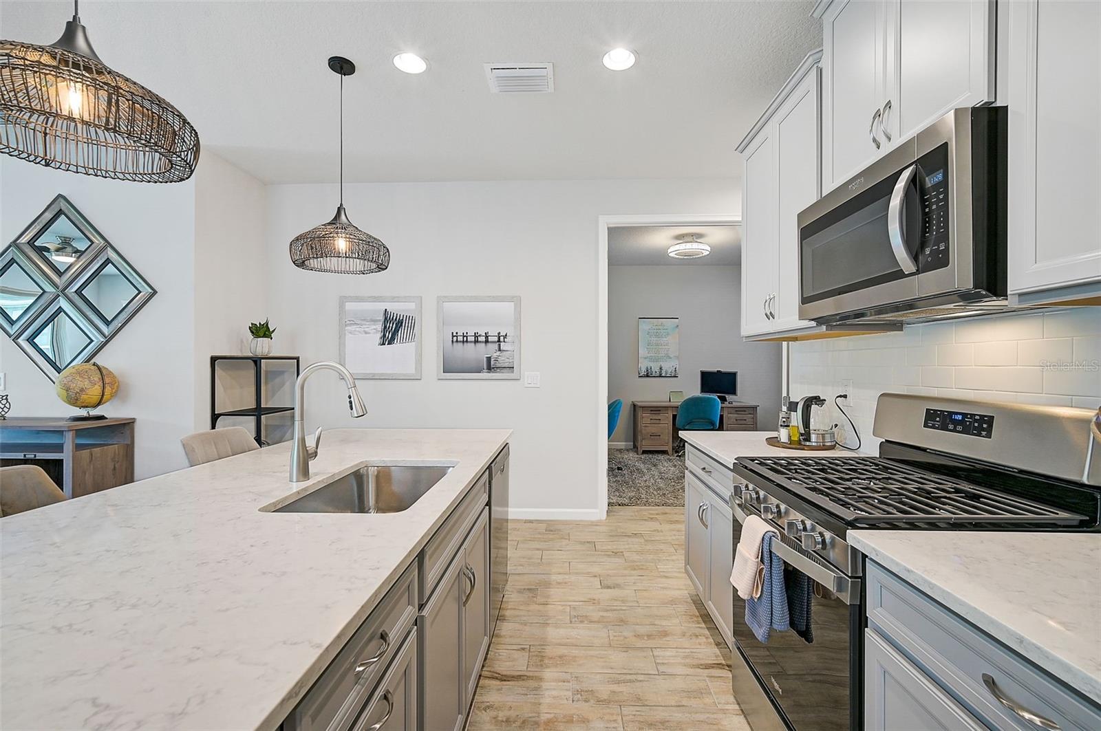WELCOME TO YOUR NEW FLORIDA VILLA! Built in 2021 by Mattamy Homes, the popular Bayport model has 2 BEDROOMS, 2 BATHROOMS, +DEN and a 2 CAR GARAGE with an OPEN CONCEPT FLOOR PLAN! MOVE-IN READY NOW - NO NEED TO WAIT FOR NEW CONSTRUCTION! Sunrise Preserve, with NO CDD FEES, is an AMENITY RICH COMMUNITY with a beautiful clubhouse, heated community pool, hot tub, fitness center, tennis and pickleball courts, an ACTIVE SOCIAL CALENDAR, walking trails and more! PALMER RANCH IS ONE OF SARASOTA’S FAVORITE PLANNED COMMUNITIES with its proximity to the Gulf of Mexico, Siesta Key’s white sandy beaches, the Legacy Trail and easy access to “I-75”. Sunrise Preserve is in Ashton Elementary School, Sarasota Middle School, Riverview High School district with Pine View School just minutes away as well! Great curb appeal with a coastal vibe and lush landscaping is just what you’d hope to see in your Florida home! Entering the home is the foyer with a 10’ tray ceiling with crown molding and designer lighting. Your eyes will be immediately drawn to the OPEN CONCEPT living space and then beyond to the outdoor space and backyard. The flex room to the right has double 8’ French doors and could be used as an office, den, music or art room or even a third bedroom! Ceramic tile plank flooring throughout the main living areas of this home provides continuity. As you continue to the main living area – the OPEN CONCEPT DESIGN with a beautiful neutral color palette – includes the kitchen, living room and dining room space. The gourmet kitchen, with its timeless 42” shaker style cabinetry is a soft grey, light quartz countertops, clean white glass subway tile backsplash for the perfect subtle contrast, and an expansive island with seating for three and designer pendant lighting, is the heart of this home. Stainless appliances include your refrigerator with French doors, a refrigerated exterior drawer and a freezer drawer below, the dishwasher, sink, microwave oven and gas range. A walk-in pantry completes the kitchen. The living room with 9’ ceilings is open, spacious and has three 8’ sliding glass doors that open to the covered, paver lanai. Sellers have especially enjoyed the spaciousness and privacy of the lush, green backyard. Seclusion is offered in this split-bedroom layout. The ensuite primary bathroom has a dual sink vanity, a spacious walk-in shower with built-in bench seats, a linen closet and a very generous primary closet. The split floor plan offers you and your guests plenty of privacy with the 2nd bedroom and guest bathroom at the front of the home while the primary suite is at the back of the home. SOME FURNISHINGS AVAILABLE UNDER A SEPARATE BILL OF SALE. You’re going to love living in Sunrise Preserve, living the Florida Lifestyle and enjoying all that Sarasota & the Suncoast have to offer! DON’T WAIT – SCHEDULE A SHOWING & MAKE YOUR OFFER TODAY!