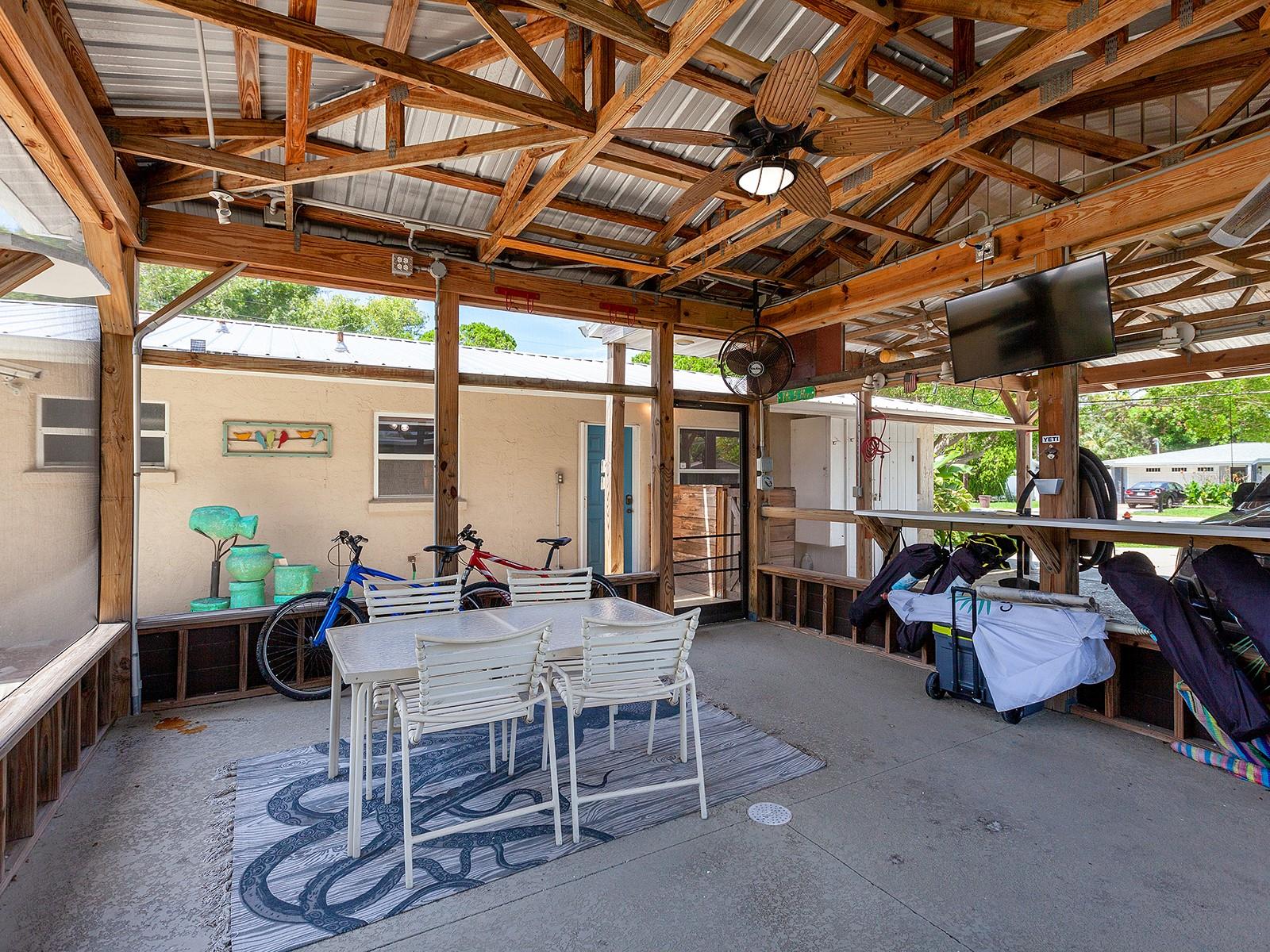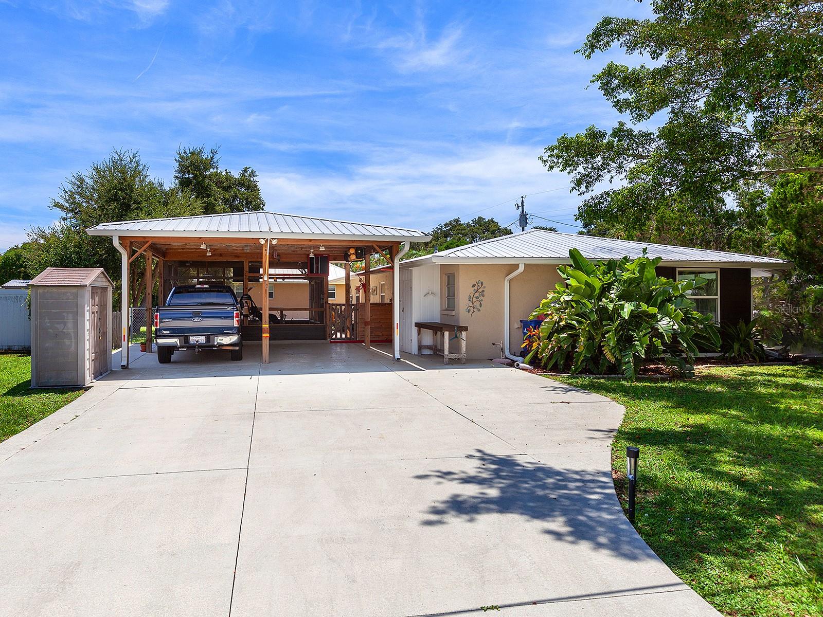 Embrace the mid-century Florida vibe of this charming single-family home tucked away in Siesta Heights. This cozy corner lot gem offers 1,493 square feet of living space with 3 bedrooms and 2 bathrooms, creating the perfect retreat for you to kick back and relax. With a cool western exposure, this home is drenched in natural light. The master bedroom, with generous windows and a calming color scheme, is the perfect retreat for rest and relaxation with peaceful neighborhood views. The kitchen boasts stainless steel appliances, perfect for cooking up delicious meals and hosting for a great time together. For added convenience, a washer and dryer are included, making laundry day a breeze. Outdoor living is a joy with a generously sized backyard, a well-maintained front yard. Enjoy the custom-built screened-in outdoor patio area ideal for relaxation or hosting gatherings. This home features a custom-built metal roof "pole barn" for covered parking, with 9 feet of clearance for your boat storage. This is a prime location, with privacy, and vacation-style living. The property is sold fully furnished and can be rented short term. Don't let this sweet Sarasota spot slip through your fingers - grab the chance to make this lovely property your new home!