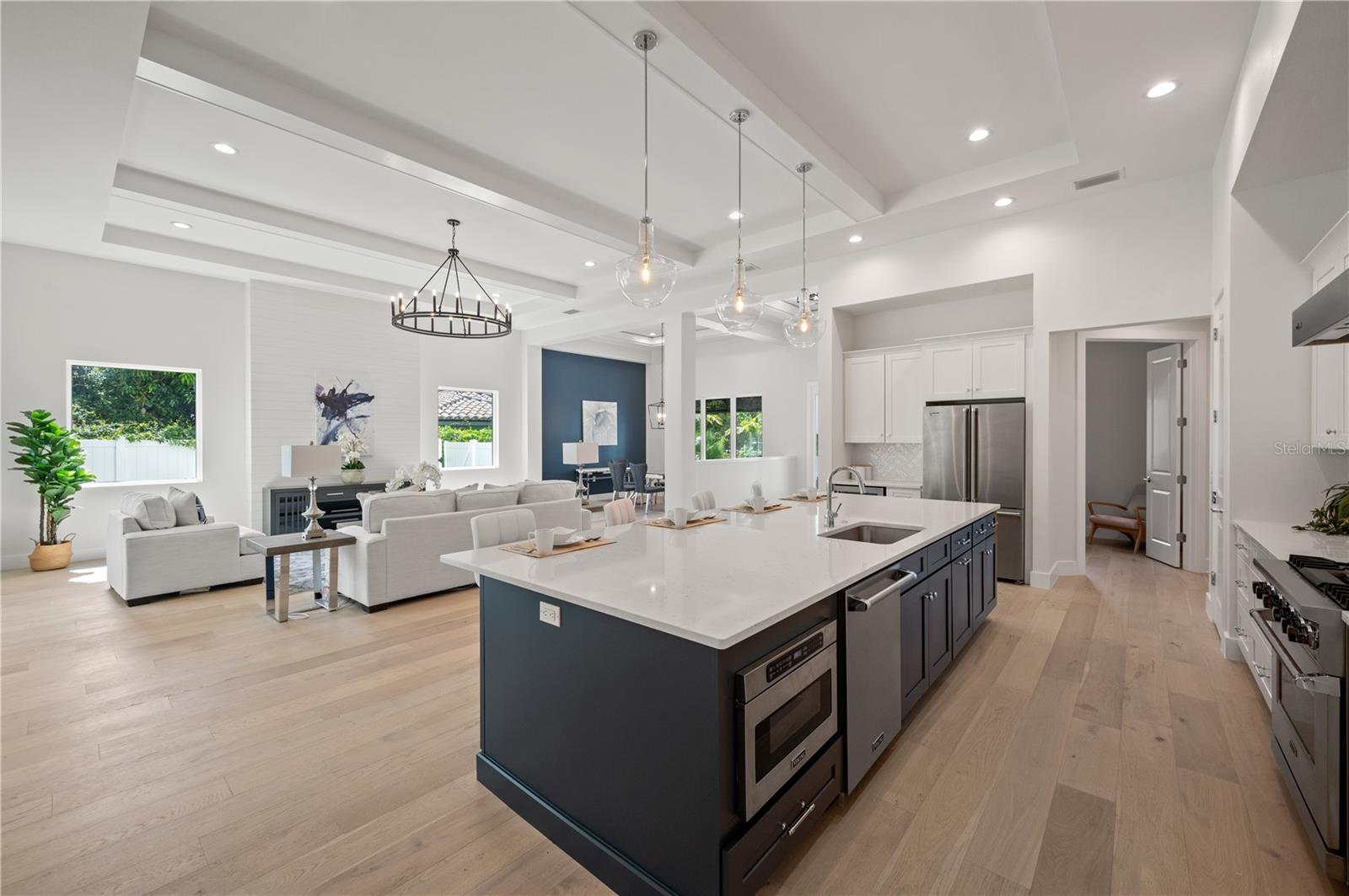 Introducing an exquisite new construction home nestled in the heart of Sarasota. Developed by M&J Pham Development, this stunning residence offers an unparalleled combination of luxurious comfort and unbeatable location. As you enter this dazzling property, you will be greeted by an open and spacious floor plan that features high ceilings, natural light, and high quality finishes throughout. The home features a modern and elegant kitchen with top-of-the-line Viking appliances, quartz countertops, and custom cabinetry. Two patios with an outdoor kitchen and additional island seamlessly blend indoor and outdoor living with meticulously planned landscaping and pool area. The master bedroom of this gorgeous home is a true sanctuary, offering a plush and peaceful retreat after a long day. It boasts an ample layout with plenty of room, and large windows to let in unrestricted natural light, providing a bright and airy feel that's perfect for relaxation. The room also features a generously sized walk-in closet with abundant space for storage and organization as well as a private terrace for you to easily enjoy the outdoor scenery. The master bathroom is equally impressive, featuring a soaking tub and a separate shower that's great for unwinding after a long day. The opulent finishes and high-end materials used throughout the space add to the lavish feel of this spectacular master suite, making it the best place to recharge and rejuvenate. As you ascend the grand staircase to the upper level of the lavish estate, you are met with a breathtaking sight of three cozy bedrooms. Each of the three bedrooms are spacious, and private, with its own bathroom. This setup is perfect for families or groups of friends looking to stay together in comfort and convenience. Situated between Siesta Key and Downtown Sarasota, you will have easy access to some of the best beaches, restaurants, and shopping that Sarasota has to offer.