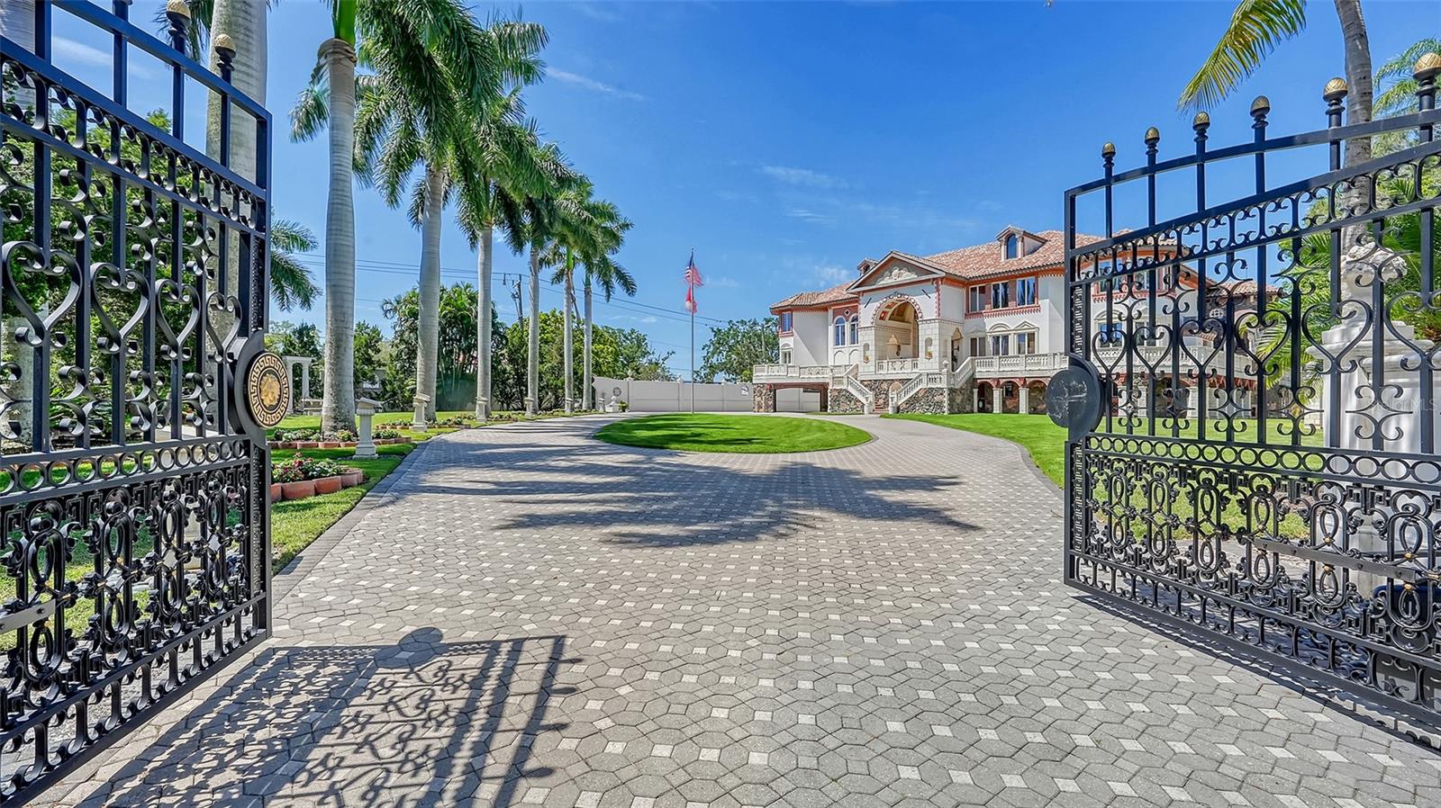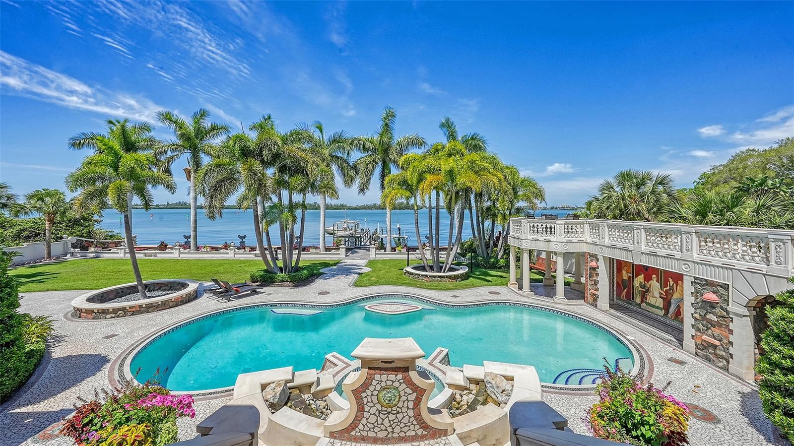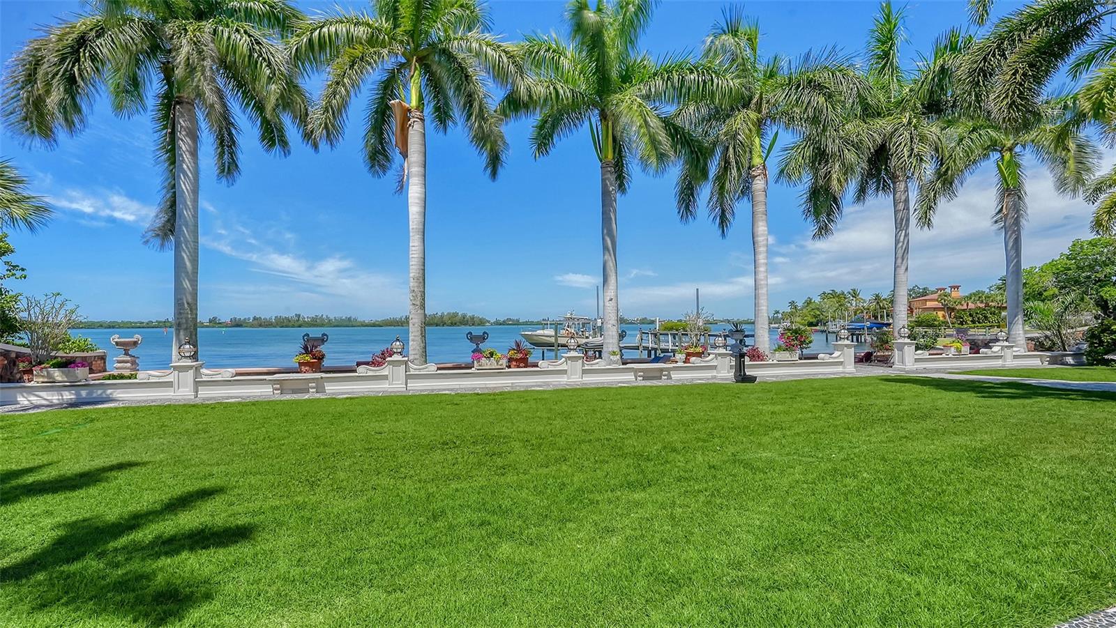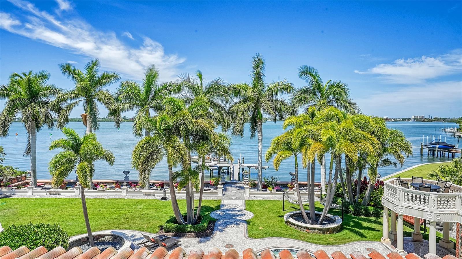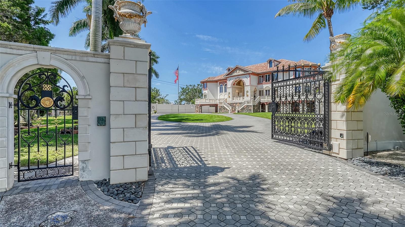 Welcome to 1310 South Lake Shore Drive. Picture yourself in this nearly 10,697 sq. ft. (plus 4,185 sq, ft. of air-conditioned garages and hobby/storage space) Neo-Classical Italian Renaissance Villa sitting on 1.21 Bayfront acres in Oyster Bay Estates. Featuring panoramic water views, this mainland residence, adjacent to The Field Club, is directly on Little Sarasota Bay (146' frontage). Enter this glamorous walled and gated estate and be instantly transported to a grand villa in Tuscany. The owners traveled extensively throughout Europe to capture the architectural details necessary to create a truly extraordinary "Old World" residence. Then calling upon design ques from Villa del Balbianello (Lake Como) and Casa Casuarina (Gianni Versace) the multiyear restoration and expansion of an already special home was completed in 2020 under the supervision of a classically trained Italian architect. Gracious "public" spaces, four bedrooms, four baths (2 half baths), and extensive outdoor spaces were intently curated to surround you with true Italian luxury. From the hand-wrought gate, highly detailed exterior, Venetian plaster walls, custom moldings with 23 carat gold leaf, hand-painted frescos, unique balustrades, pecky Cypress ceilings to the Clive Christian inspired Kitchen, and accompanying caterer's kitchen, every way your eyes travel brings a new surprise. The magnificent bay views are perfect complements to be enjoyed from inside, extensive terraces, beautiful gardens, or the dock with a 20,000-pound boat lift and accompanying jet ski lifts. This outrageous yet practical residence boasts breathtaking, panoramic views throughout the day and evening. The exterior employs roof tiles imported from Italy, 100-year-old reclaimed Chicago bricks, fallen Florida pecky Cypress wood, and 60 tons of Pennsylvania fieldstone. Unique exterior features include enclosed water sports storage areas, a separate enclosed mechanical room with handmade doors and bronze hardware, a propane-powered generator (separately enclosed with handmade doors and sufficient to run the entire home), an exterior shower area adjoined by a hand-painted Italian fresco, an octagonal covered sitting area and an outdoor bath adjacent to the pool area. The unusual 400 square foot outdoor kitchen is of a unique, submerged design with a 60-inch propane gas grill-concealed and operated by an appliance elevator. The decorative privacy wall spans 657 feet along a handmade adjacent lighted Amalfi-style decorative walkway with gold-leaf private entrance gate to The Club. A 146-foot sea wall discloses a hand-cast Corbels on the outside, a long, large seating area, and spans the entire width of the property for peace of mind. The home is overbuilt with concrete pilasters extending to solid granite and extending to the roof joists. Elements of the legendary mosaic pool by the genius Gianni Versace are displayed in the mosaics in the deck and pool area of the estate. Truly one of-a-kind residence offering gracious living now and for generations to come. Very private, but moments away from all the many cultural venues, restaurants, shopping, medical facilities, and attractions that Sarasota offers. Be prepared to be amazed!