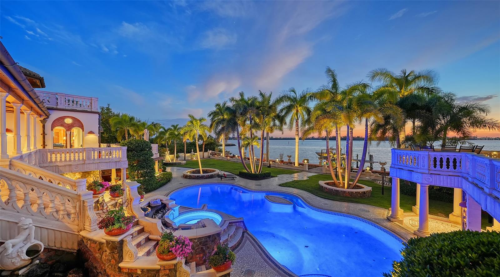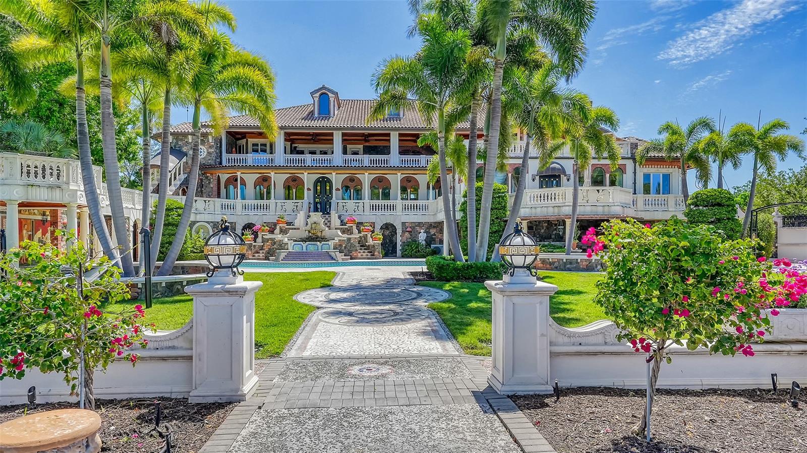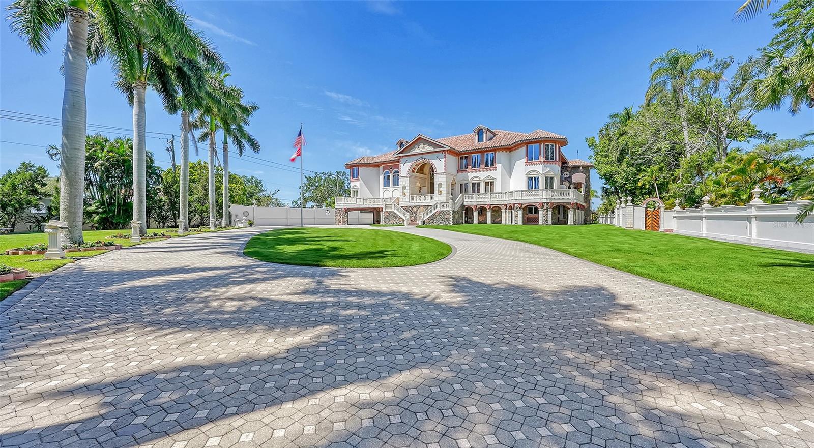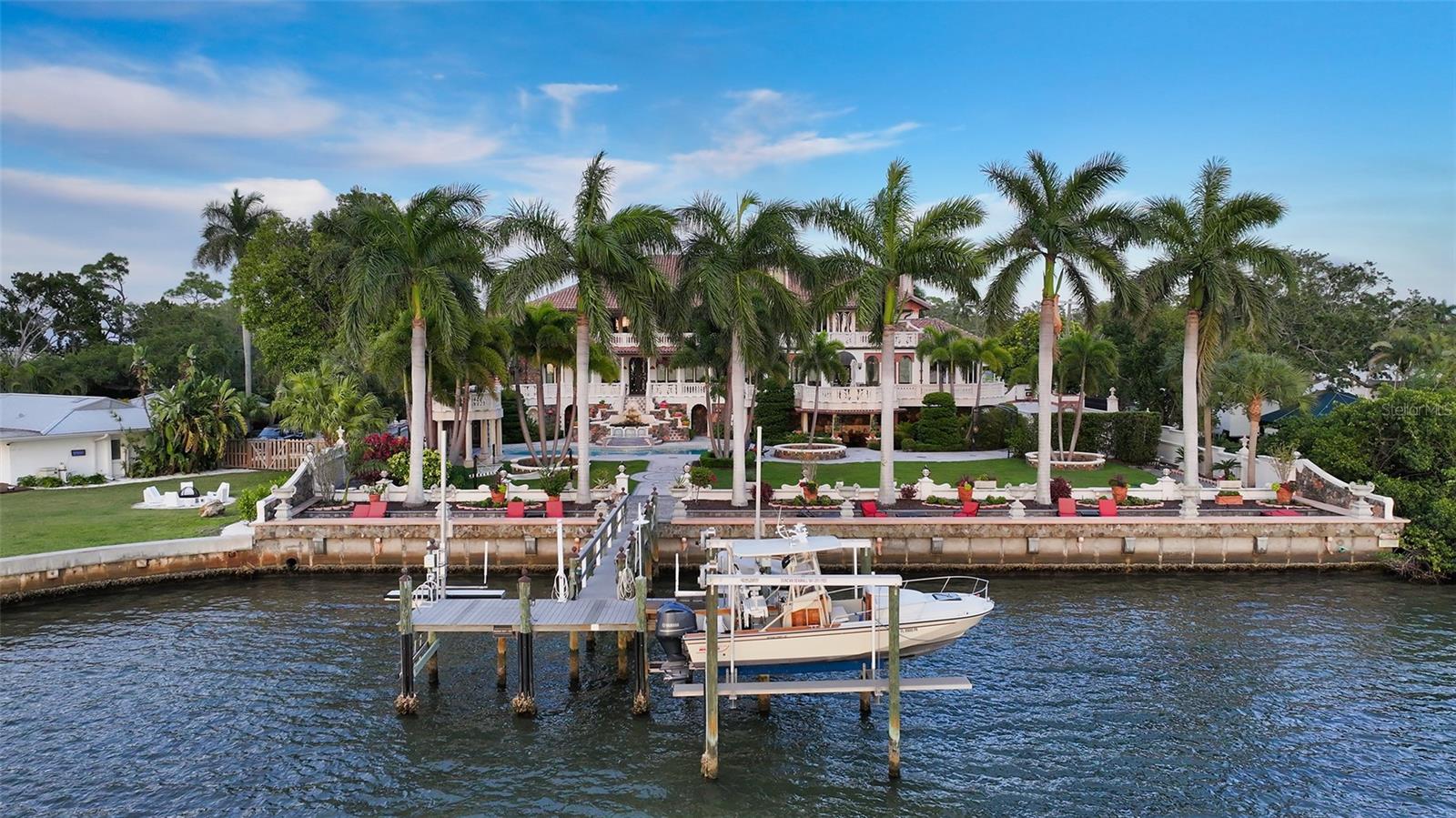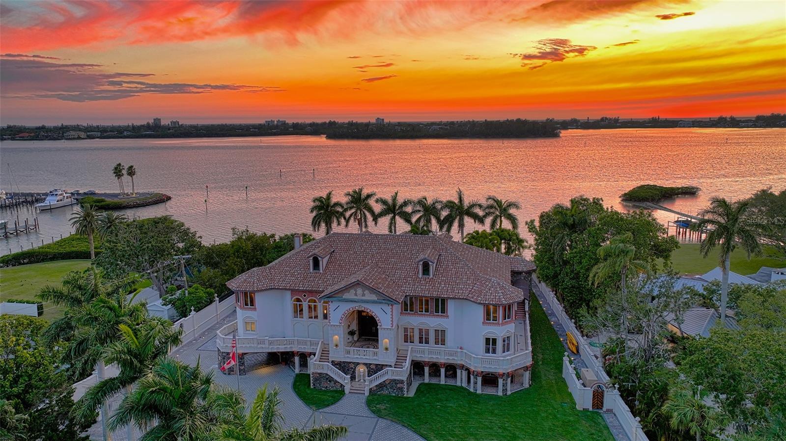 Welcome to 1310 South Lake Shore Drive. Picture yourself in this nearly 10,697 sq. ft. (plus 4,185 sq, ft. of air-conditioned garages and hobby/storage space) Neo-Classical Italian Renaissance Villa sitting on 1.21 Bayfront acres in Oyster Bay Estates. Featuring panoramic water views, this mainland residence, adjacent to The Field Club, is directly on Little Sarasota Bay (146' frontage). Enter this glamorous walled and gated estate and be instantly transported to a grand villa in Tuscany. The owners traveled extensively throughout Europe to capture the architectural details necessary to create a truly extraordinary "Old World" residence. Then calling upon design ques from Villa del Balbianello (Lake Como) and Casa Casuarina (Gianni Versace) the multiyear restoration and expansion of an already special home was completed in 2020 under the supervision of a classically trained Italian architect. Gracious "public" spaces, four bedrooms, four baths (2 half baths), and extensive outdoor spaces were intently curated to surround you with true Italian luxury. From the hand-wrought gate, highly detailed exterior, Venetian plaster walls, custom moldings with 23 carat gold leaf, hand-painted frescos, unique balustrades, pecky Cypress ceilings to the Clive Christian inspired Kitchen, and accompanying caterer's kitchen, every way your eyes travel brings a new surprise. The magnificent bay views are perfect complements to be enjoyed from inside, extensive terraces, beautiful gardens, or the dock with a 20,000-pound boat lift and accompanying jet ski lifts. This outrageous yet practical residence boasts breathtaking, panoramic views throughout the day and evening. The exterior employs roof tiles imported from Italy, 100-year-old reclaimed Chicago bricks, fallen Florida pecky Cypress wood, and 60 tons of Pennsylvania fieldstone. Unique exterior features include enclosed water sports storage areas, a separate enclosed mechanical room with handmade doors and bronze hardware, a propane-powered generator (separately enclosed with handmade doors and sufficient to run the entire home), an exterior shower area adjoined by a hand-painted Italian fresco, an octagonal covered sitting area and an outdoor bath adjacent to the pool area. The unusual 400 square foot outdoor kitchen is of a unique, submerged design with a 60-inch propane gas grill-concealed and operated by an appliance elevator. The decorative privacy wall spans 657 feet along a handmade adjacent lighted Amalfi-style decorative walkway with gold-leaf private entrance gate to The Club. A 146-foot sea wall discloses a hand-cast Corbels on the outside, a long, large seating area, and spans the entire width of the property for peace of mind. The home is overbuilt with concrete pilasters extending to solid granite and extending to the roof joists. Elements of the legendary mosaic pool by the genius Gianni Versace are displayed in the mosaics in the deck and pool area of the estate. Truly one of-a-kind residence offering gracious living now and for generations to come. Very private, but moments away from all the many cultural venues, restaurants, shopping, medical facilities, and attractions that Sarasota offers. Be prepared to be amazed!