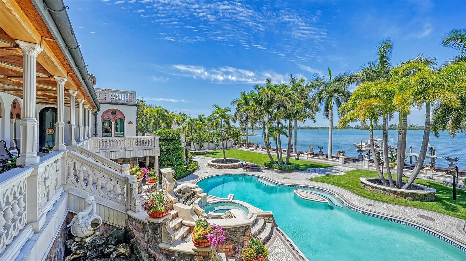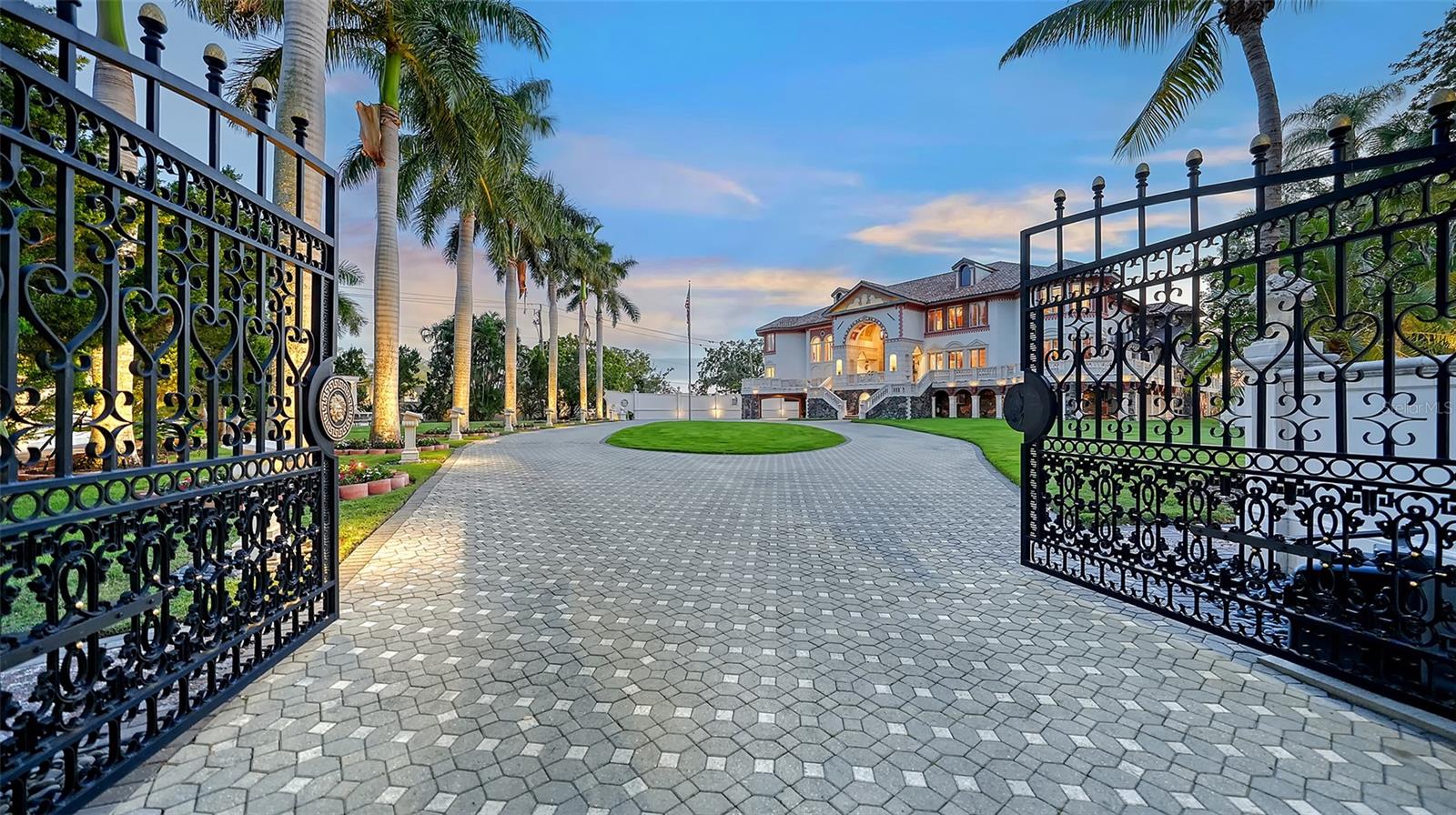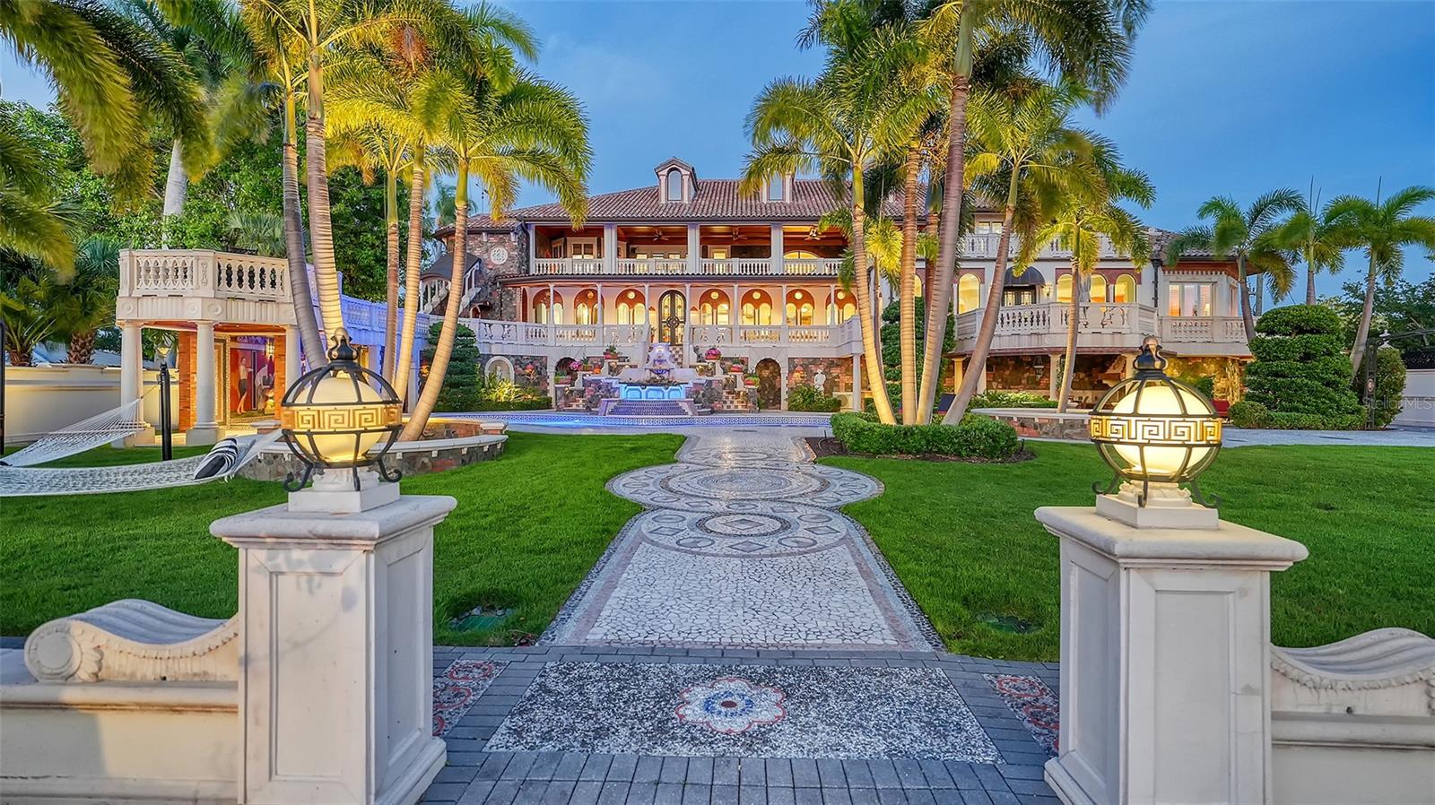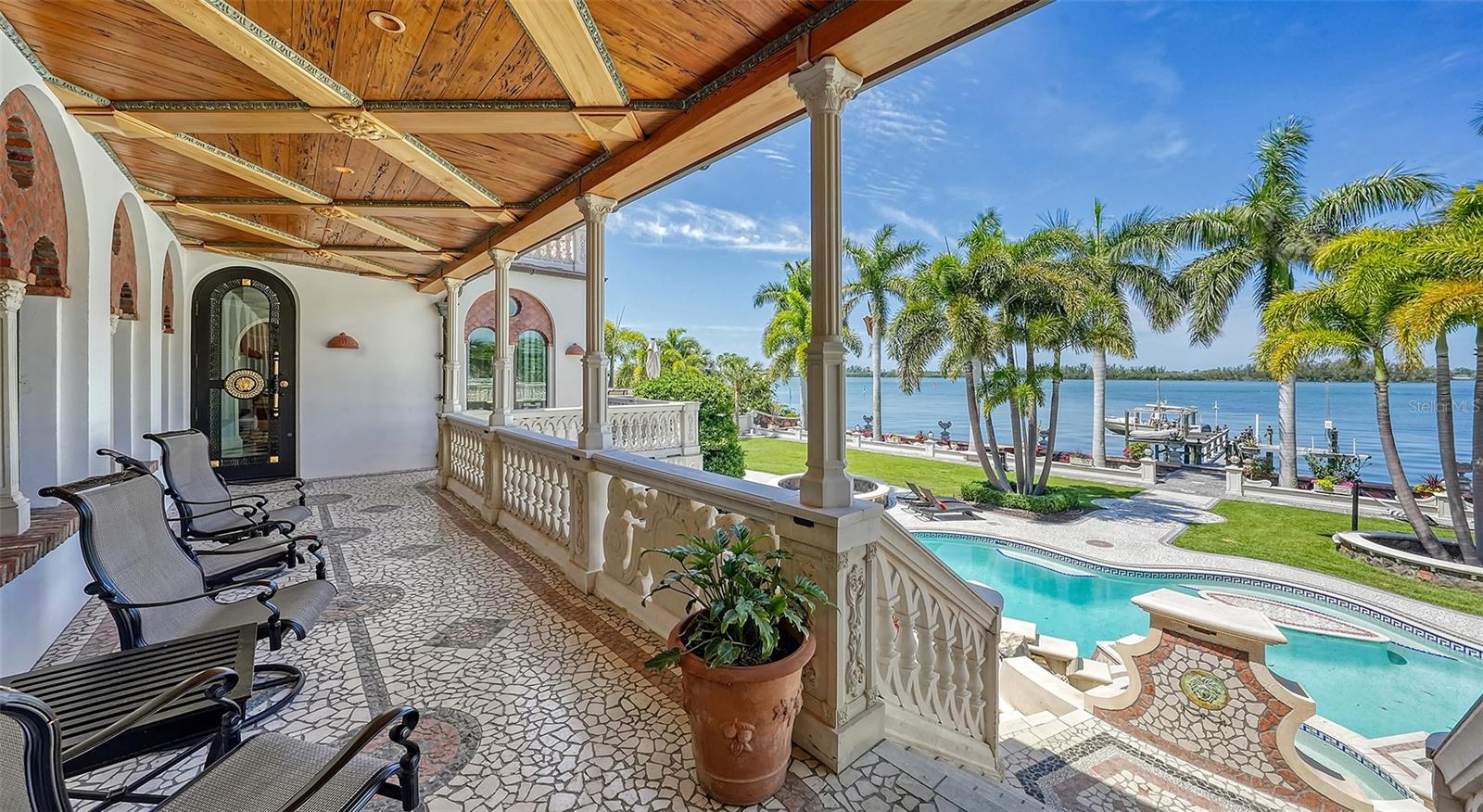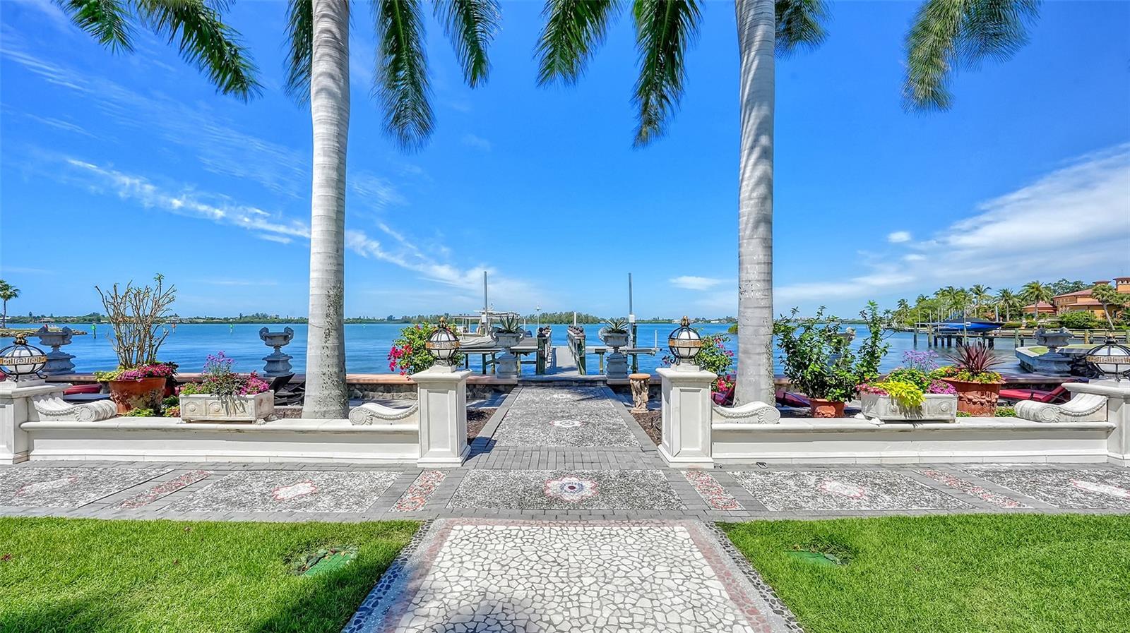 Welcome to 1310 South Lake Shore Drive. Picture yourself in this nearly 10,697 sq. ft. (plus 4,185 sq, ft. of air-conditioned garages and hobby/storage space) Neo-Classical Italian Renaissance Villa sitting on 1.21 Bayfront acres in Oyster Bay Estates. Featuring panoramic water views, this mainland residence, adjacent to The Field Club, is directly on Little Sarasota Bay (146' frontage). Enter this glamorous walled and gated estate and be instantly transported to a grand villa in Tuscany. The owners traveled extensively throughout Europe to capture the architectural details necessary to create a truly extraordinary "Old World" residence. Then calling upon design ques from Villa del Balbianello (Lake Como) and Casa Casuarina (Gianni Versace) the multiyear restoration and expansion of an already special home was completed in 2020 under the supervision of a classically trained Italian architect. Gracious "public" spaces, four bedrooms, four baths (2 half baths), and extensive outdoor spaces were intently curated to surround you with true Italian luxury. From the hand-wrought gate, highly detailed exterior, Venetian plaster walls, custom moldings with 23 carat gold leaf, hand-painted frescos, unique balustrades, pecky Cypress ceilings to the Clive Christian inspired Kitchen, and accompanying caterer's kitchen, every way your eyes travel brings a new surprise. The magnificent bay views are perfect complements to be enjoyed from inside, extensive terraces, beautiful gardens, or the dock with a 20,000-pound boat lift and accompanying jet ski lifts. This outrageous yet practical residence boasts breathtaking, panoramic views throughout the day and evening. The exterior employs roof tiles imported from Italy, 100-year-old reclaimed Chicago bricks, fallen Florida pecky Cypress wood, and 60 tons of Pennsylvania fieldstone. Unique exterior features include enclosed water sports storage areas, a separate enclosed mechanical room with handmade doors and bronze hardware, a propane-powered generator (separately enclosed with handmade doors and sufficient to run the entire home), an exterior shower area adjoined by a hand-painted Italian fresco, an octagonal covered sitting area and an outdoor bath adjacent to the pool area. The unusual 400 square foot outdoor kitchen is of a unique, submerged design with a 60-inch propane gas grill-concealed and operated by an appliance elevator. The decorative privacy wall spans 657 feet along a handmade adjacent lighted Amalfi-style decorative walkway with gold-leaf private entrance gate to The Club. A 146-foot sea wall discloses a hand-cast Corbels on the outside, a long, large seating area, and spans the entire width of the property for peace of mind. The home is overbuilt with concrete pilasters extending to solid granite and extending to the roof joists. Elements of the legendary mosaic pool by the genius Gianni Versace are displayed in the mosaics in the deck and pool area of the estate. Truly one of-a-kind residence offering gracious living now and for generations to come. Very private, but moments away from all the many cultural venues, restaurants, shopping, medical facilities, and attractions that Sarasota offers. Be prepared to be amazed!