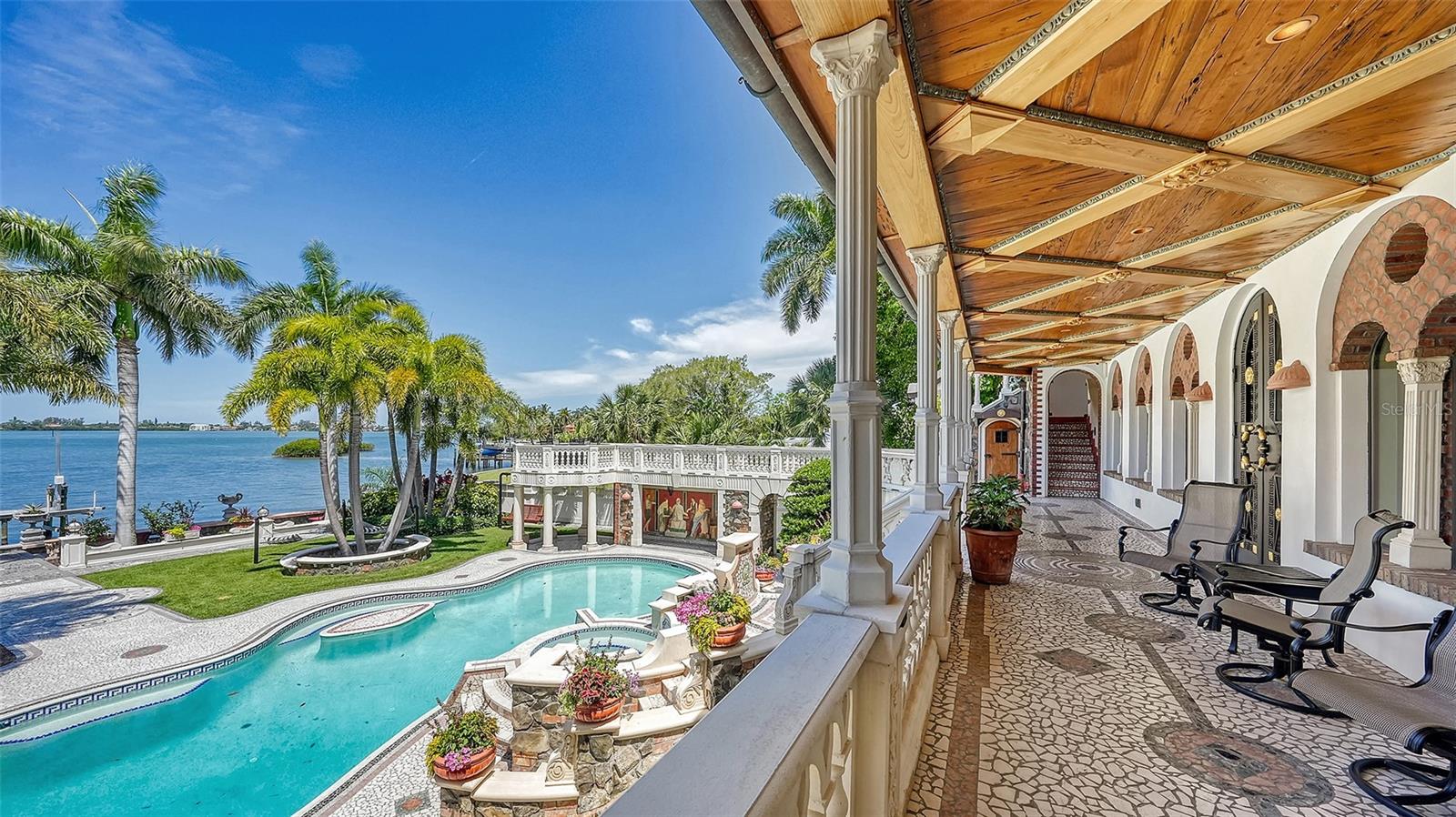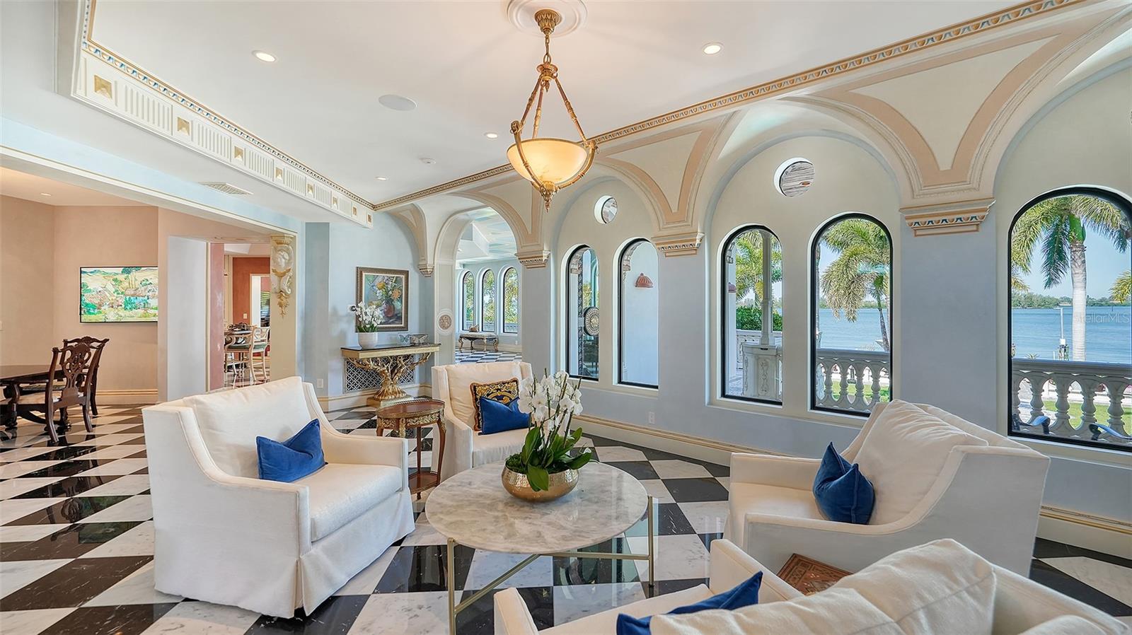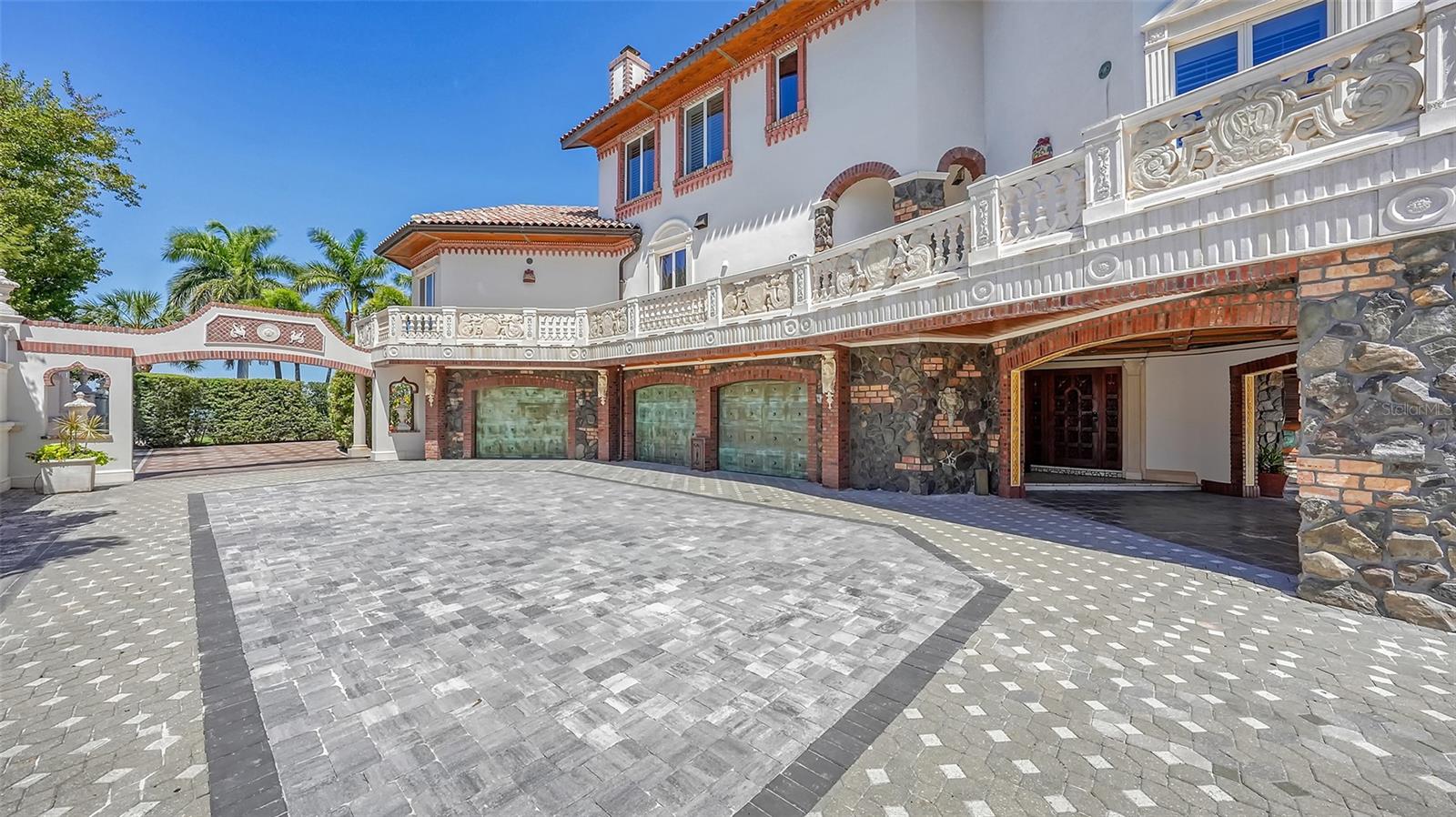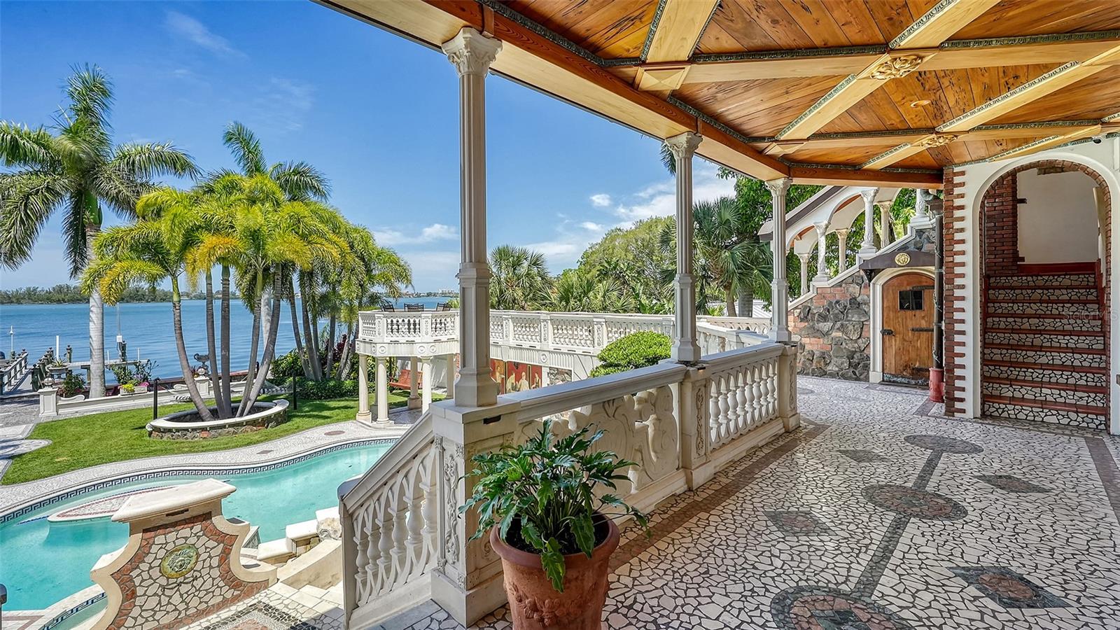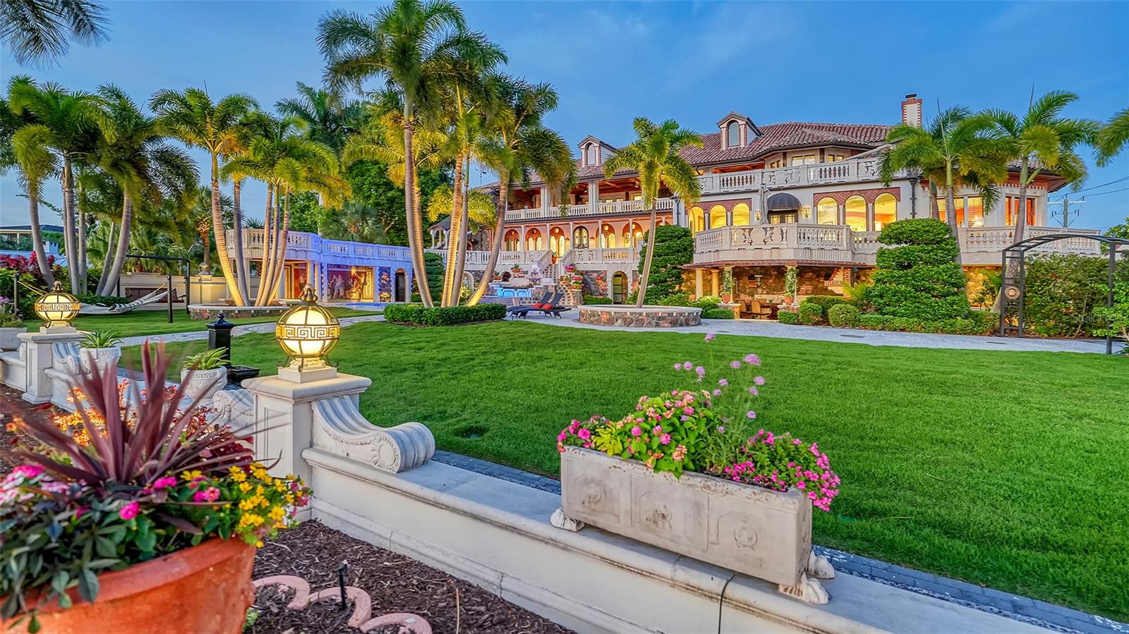 Welcome to 1310 South Lake Shore Drive. Picture yourself in this nearly 10,697 sq. ft. (plus 4,185 sq, ft. of air-conditioned garages and hobby/storage space) Neo-Classical Italian Renaissance Villa sitting on 1.21 Bayfront acres in Oyster Bay Estates. Featuring panoramic water views, this mainland residence, adjacent to The Field Club, is directly on Little Sarasota Bay (146' frontage). Enter this glamorous walled and gated estate and be instantly transported to a grand villa in Tuscany. The owners traveled extensively throughout Europe to capture the architectural details necessary to create a truly extraordinary "Old World" residence. Then calling upon design ques from Villa del Balbianello (Lake Como) and Casa Casuarina (Gianni Versace) the multiyear restoration and expansion of an already special home was completed in 2020 under the supervision of a classically trained Italian architect. Gracious "public" spaces, four bedrooms, four baths (2 half baths), and extensive outdoor spaces were intently curated to surround you with true Italian luxury. From the hand-wrought gate, highly detailed exterior, Venetian plaster walls, custom moldings with 23 carat gold leaf, hand-painted frescos, unique balustrades, pecky Cypress ceilings to the Clive Christian inspired Kitchen, and accompanying caterer's kitchen, every way your eyes travel brings a new surprise. The magnificent bay views are perfect complements to be enjoyed from inside, extensive terraces, beautiful gardens, or the dock with a 20,000-pound boat lift and accompanying jet ski lifts. This outrageous yet practical residence boasts breathtaking, panoramic views throughout the day and evening. The exterior employs roof tiles imported from Italy, 100-year-old reclaimed Chicago bricks, fallen Florida pecky Cypress wood, and 60 tons of Pennsylvania fieldstone. Unique exterior features include enclosed water sports storage areas, a separate enclosed mechanical room with handmade doors and bronze hardware, a propane-powered generator (separately enclosed with handmade doors and sufficient to run the entire home), an exterior shower area adjoined by a hand-painted Italian fresco, an octagonal covered sitting area and an outdoor bath adjacent to the pool area. The unusual 400 square foot outdoor kitchen is of a unique, submerged design with a 60-inch propane gas grill-concealed and operated by an appliance elevator. The decorative privacy wall spans 657 feet along a handmade adjacent lighted Amalfi-style decorative walkway with gold-leaf private entrance gate to The Club. A 146-foot sea wall discloses a hand-cast Corbels on the outside, a long, large seating area, and spans the entire width of the property for peace of mind. The home is overbuilt with concrete pilasters extending to solid granite and extending to the roof joists. Elements of the legendary mosaic pool by the genius Gianni Versace are displayed in the mosaics in the deck and pool area of the estate. Truly one of-a-kind residence offering gracious living now and for generations to come. Very private, but moments away from all the many cultural venues, restaurants, shopping, medical facilities, and attractions that Sarasota offers. Be prepared to be amazed!